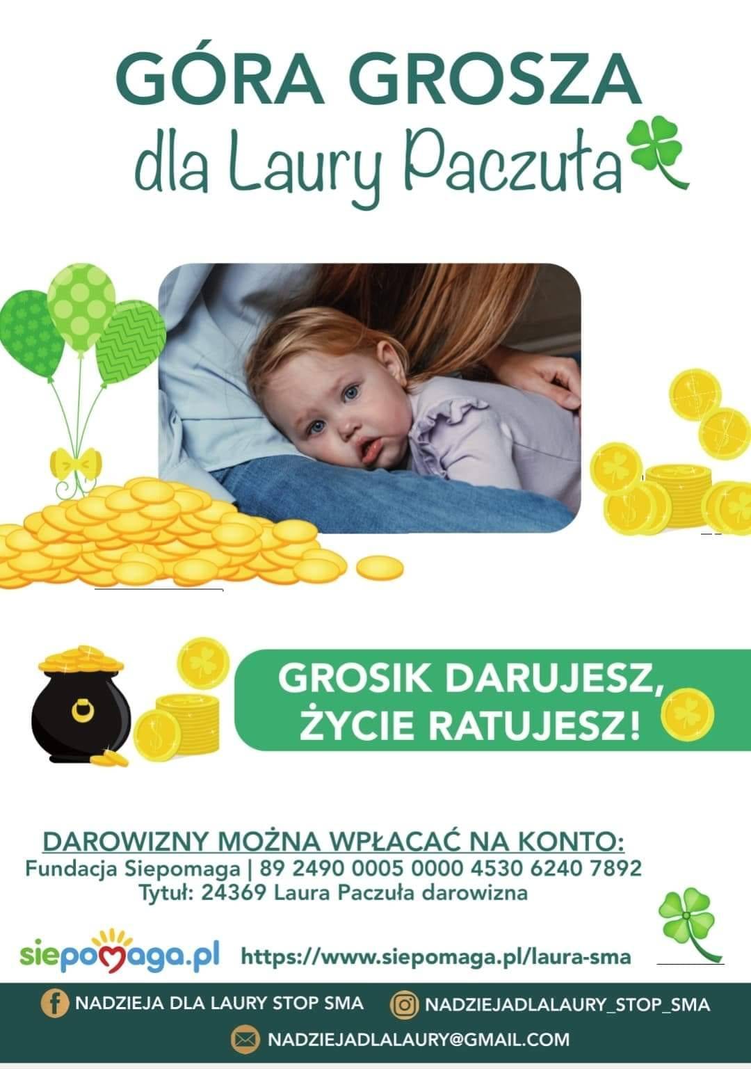 Chcemy również dorzucić swoją cegiełkę, aby przyspieszyć uzbieranie 9 000 000 złotych na lek, który uratuje Laurze życie. Dlatego też inicjujemy akcję #wierszykidlaLaury i wzywamy wszystkich do działania. Czas płynie nieubłaganie, a tu liczy się każda minuta! Wyzwanie polega na stworzeniu wierszyka dla malutkiej Laury, zamieszczenie go w Internecie, oznaczenie #wierszykidlaLaury i nominowanie dwóch szkół lub innych placówek oświatowych do wyzwania. Nominacja wiąże się również ze zorganizowaniem zbiórki pieniędzy, które zostaną wpłacone na konto Laury https://siepomaga.pl/laura-sma
