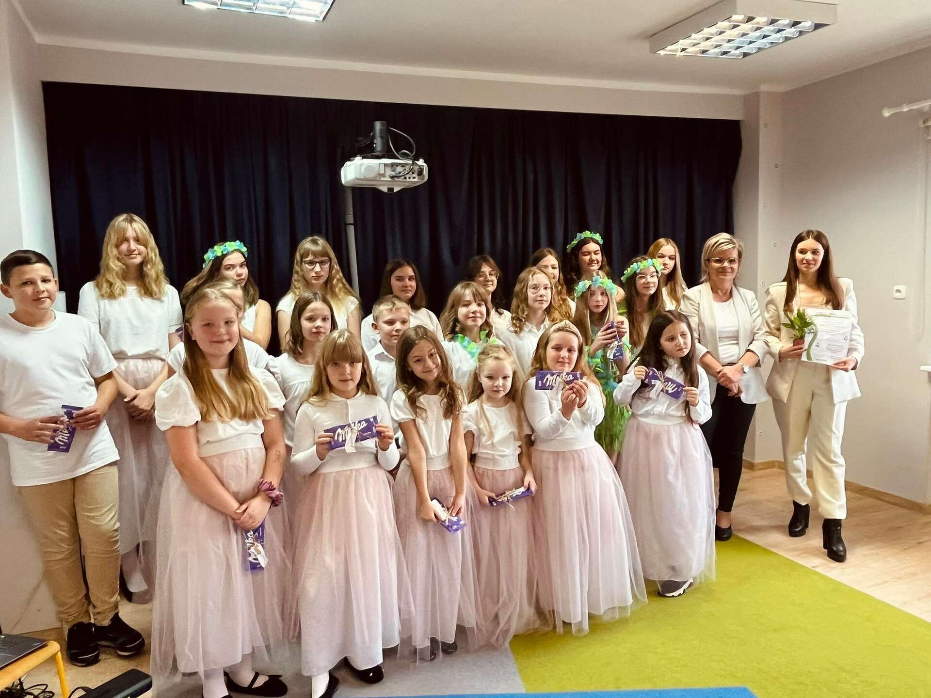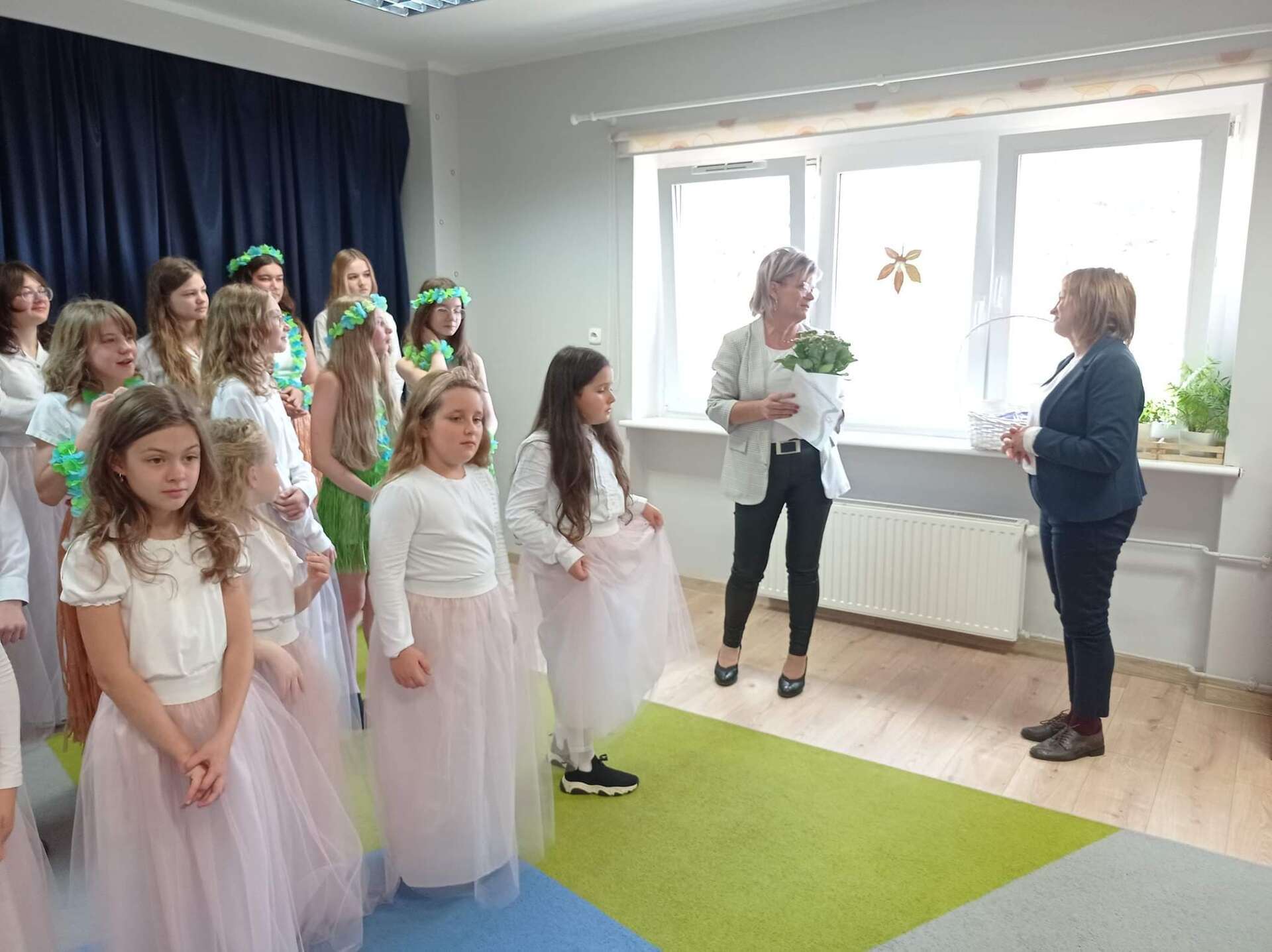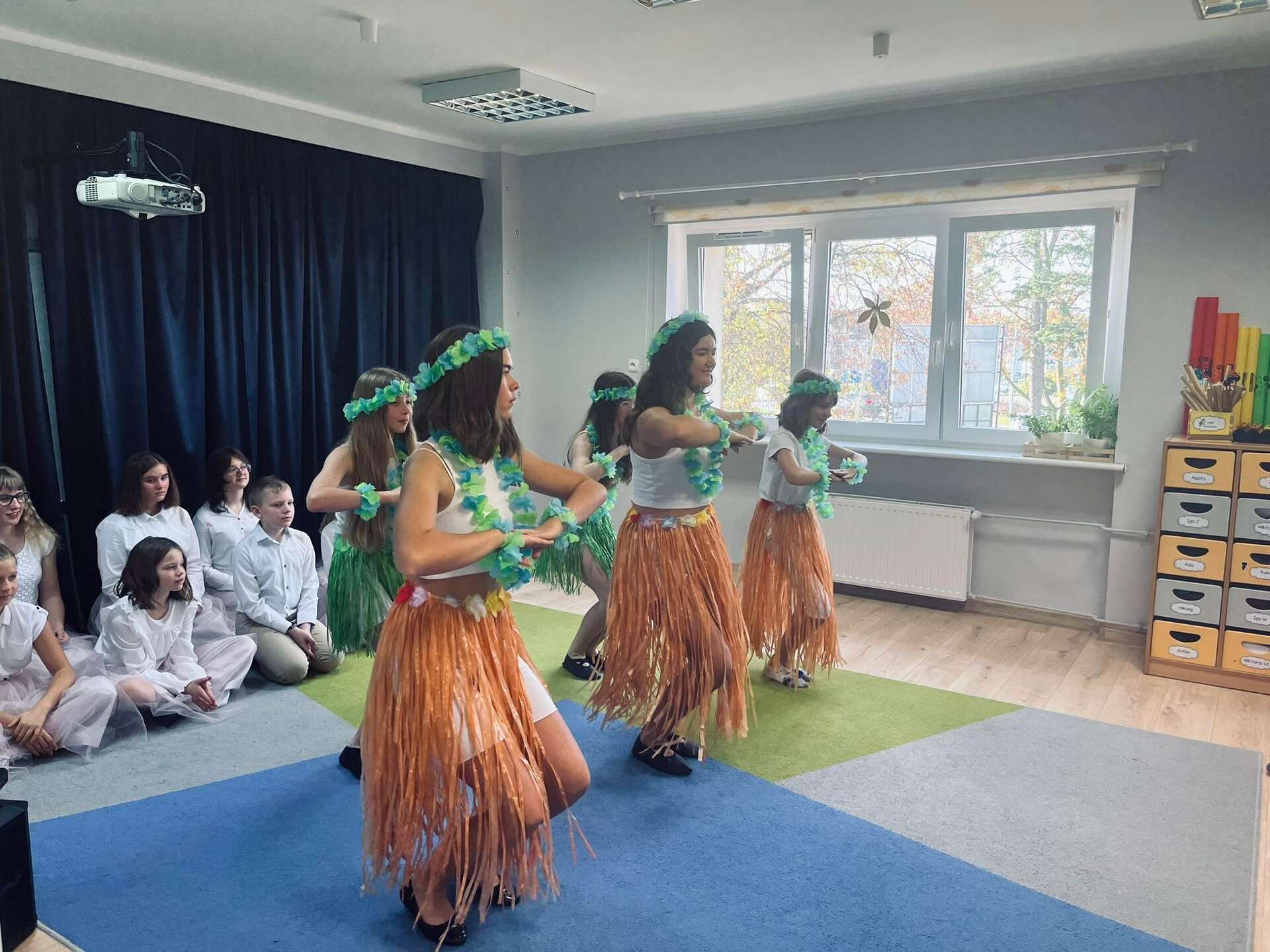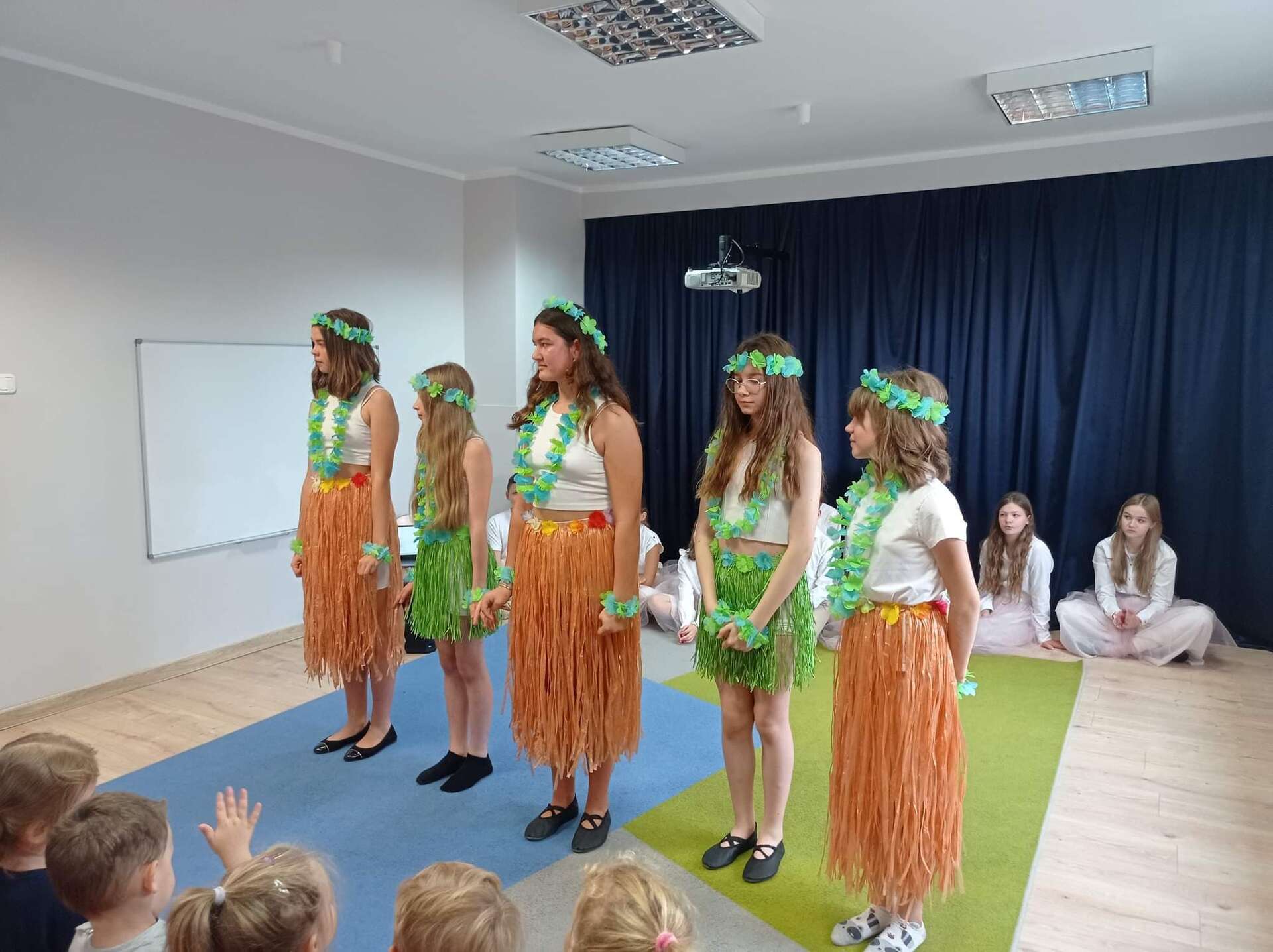 Ten dzień na długo zostanie w pamięci wszystkich dzieci i pracowników przedszkola. Uczestniczyliśmy bowiem w koncercie w wykonaniu chóru dziecięcego z Niepublicznej Szkoły Podstawowej Azymut w Mostach, który prowadzi p. Aneta Suchta. Dzieci wykonały piosenki do zekranizowanych popularnych baśni. Wysłuchaliśmy między innymi piosenek z filmów : "Pocahontas", "Kraina Lodu", "Tarzan", " Merida Waleczna" i "Król Lew". Dodatkową atrakcją był przepiękny "Tanic hawajski", który wykonała grupa dziewcząt.