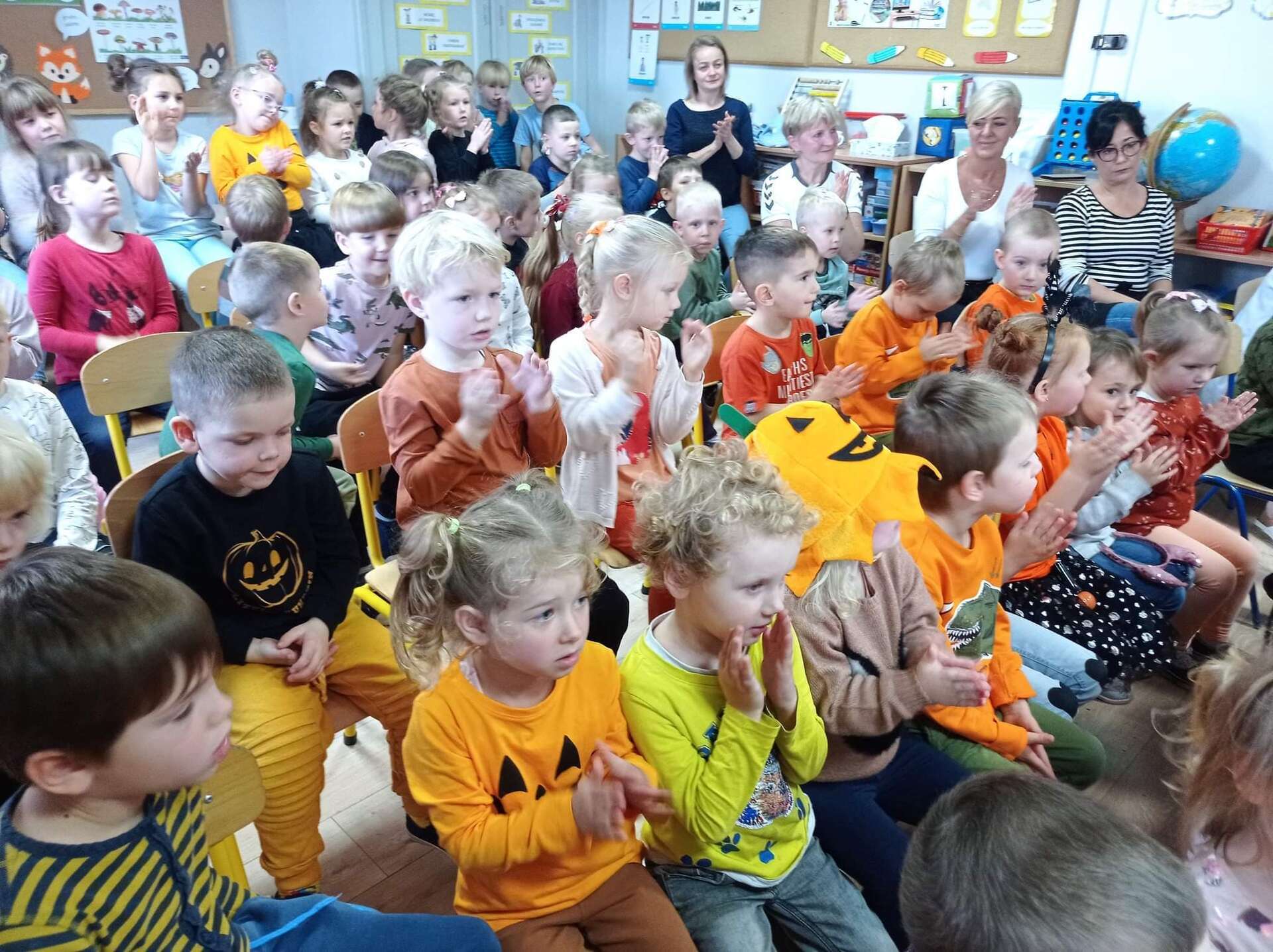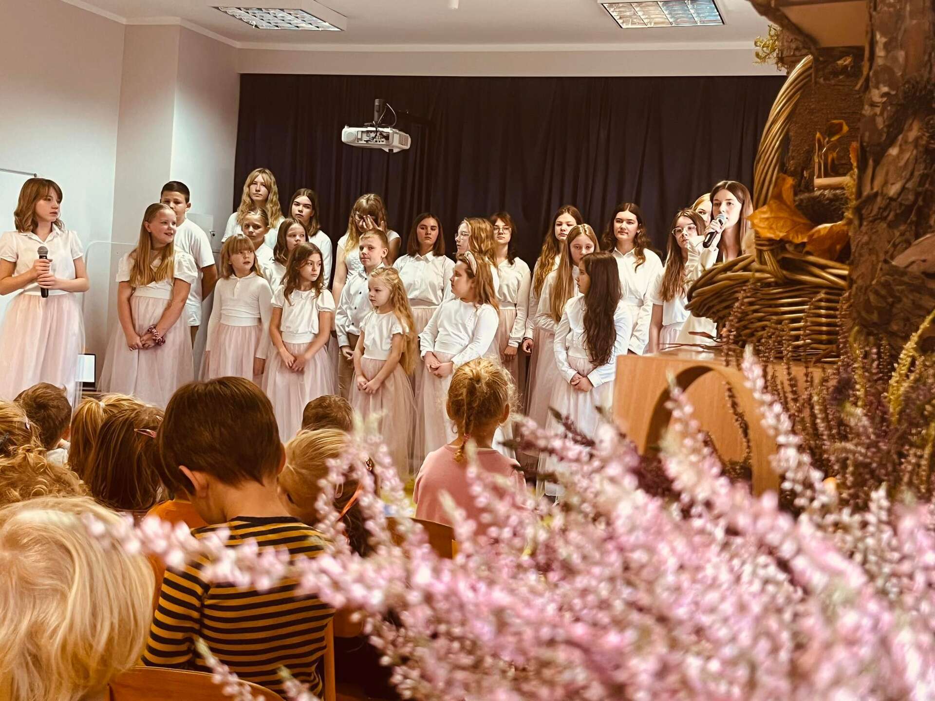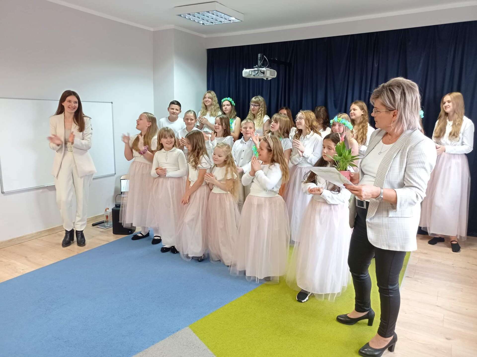 Ten dzień na długo zostanie w pamięci wszystkich dzieci i pracowników przedszkola. Uczestniczyliśmy bowiem w koncercie w wykonaniu chóru dziecięcego z Niepublicznej Szkoły Podstawowej Azymut w Mostach, który prowadzi p. Aneta Suchta. Dzieci wykonały piosenki do zekranizowanych popularnych baśni. Wysłuchaliśmy między innymi piosenek z filmów : "Pocahontas", "Kraina Lodu", "Tarzan", " Merida Waleczna" i "Król Lew". Dodatkową atrakcją był przepiękny "Tanic hawajski", który wykonała grupa dziewcząt.