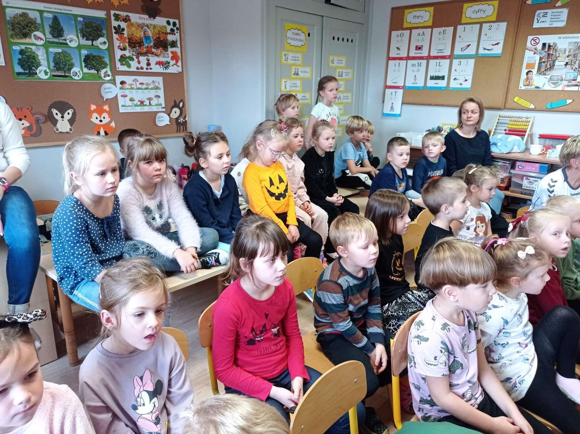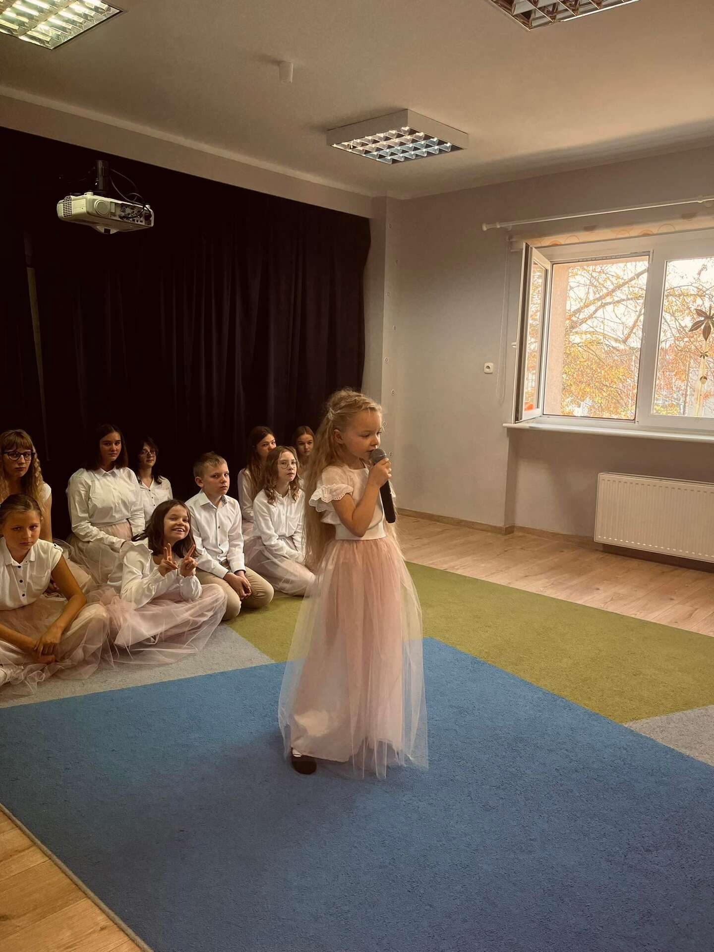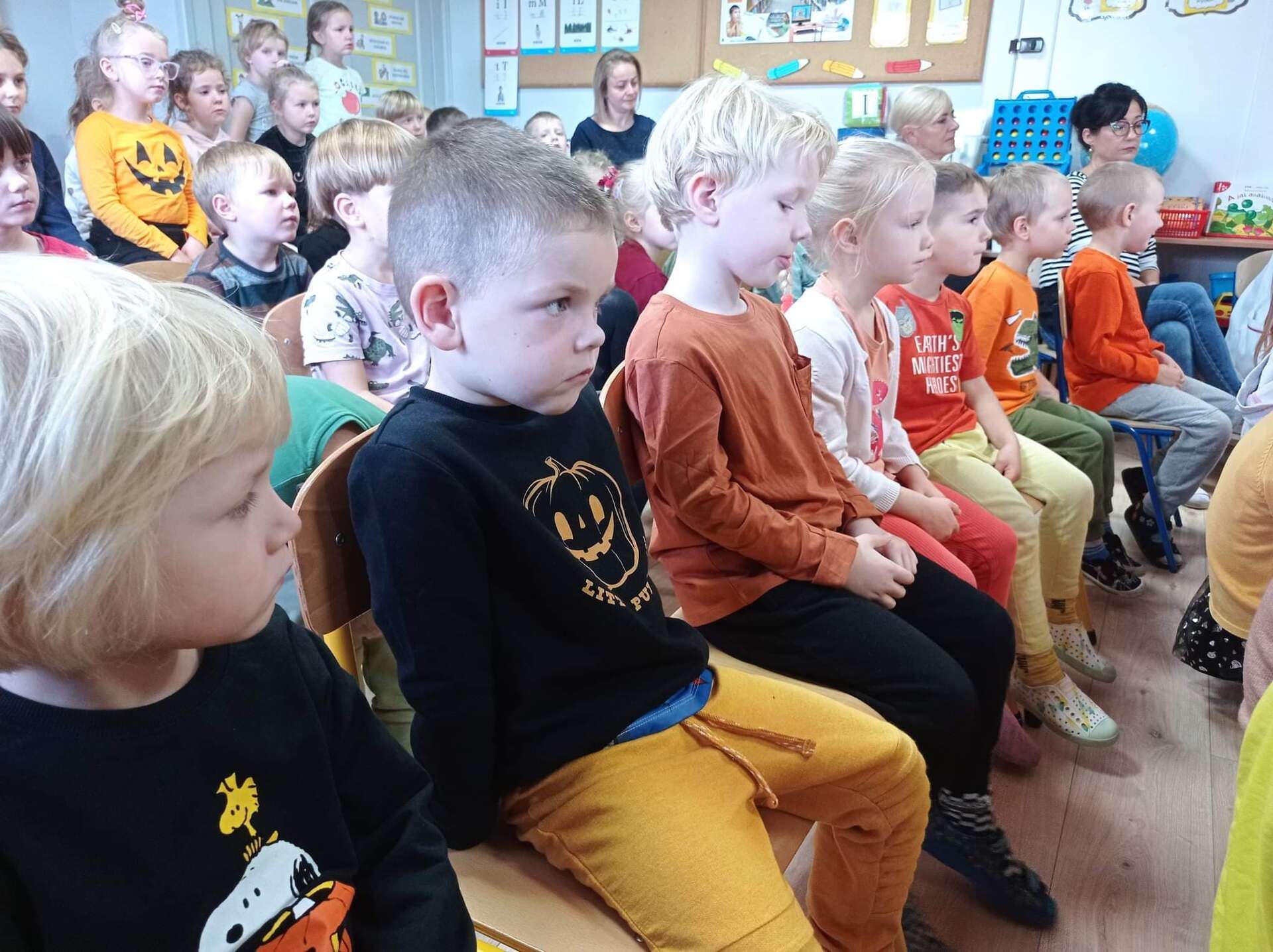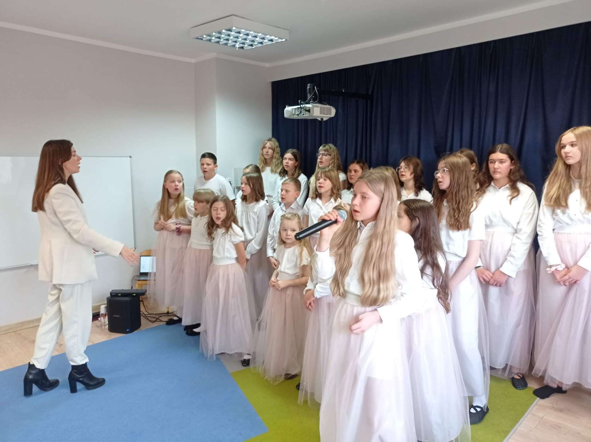 Ten dzień na długo zostanie w pamięci wszystkich dzieci i pracowników przedszkola. Uczestniczyliśmy bowiem w koncercie w wykonaniu chóru dziecięcego z Niepublicznej Szkoły Podstawowej Azymut w Mostach, który prowadzi p. Aneta Suchta. Dzieci wykonały piosenki do zekranizowanych popularnych baśni. Wysłuchaliśmy między innymi piosenek z filmów : "Pocahontas", "Kraina Lodu", "Tarzan", " Merida Waleczna" i "Król Lew". Dodatkową atrakcją był przepiękny "Tanic hawajski", który wykonała grupa dziewcząt.