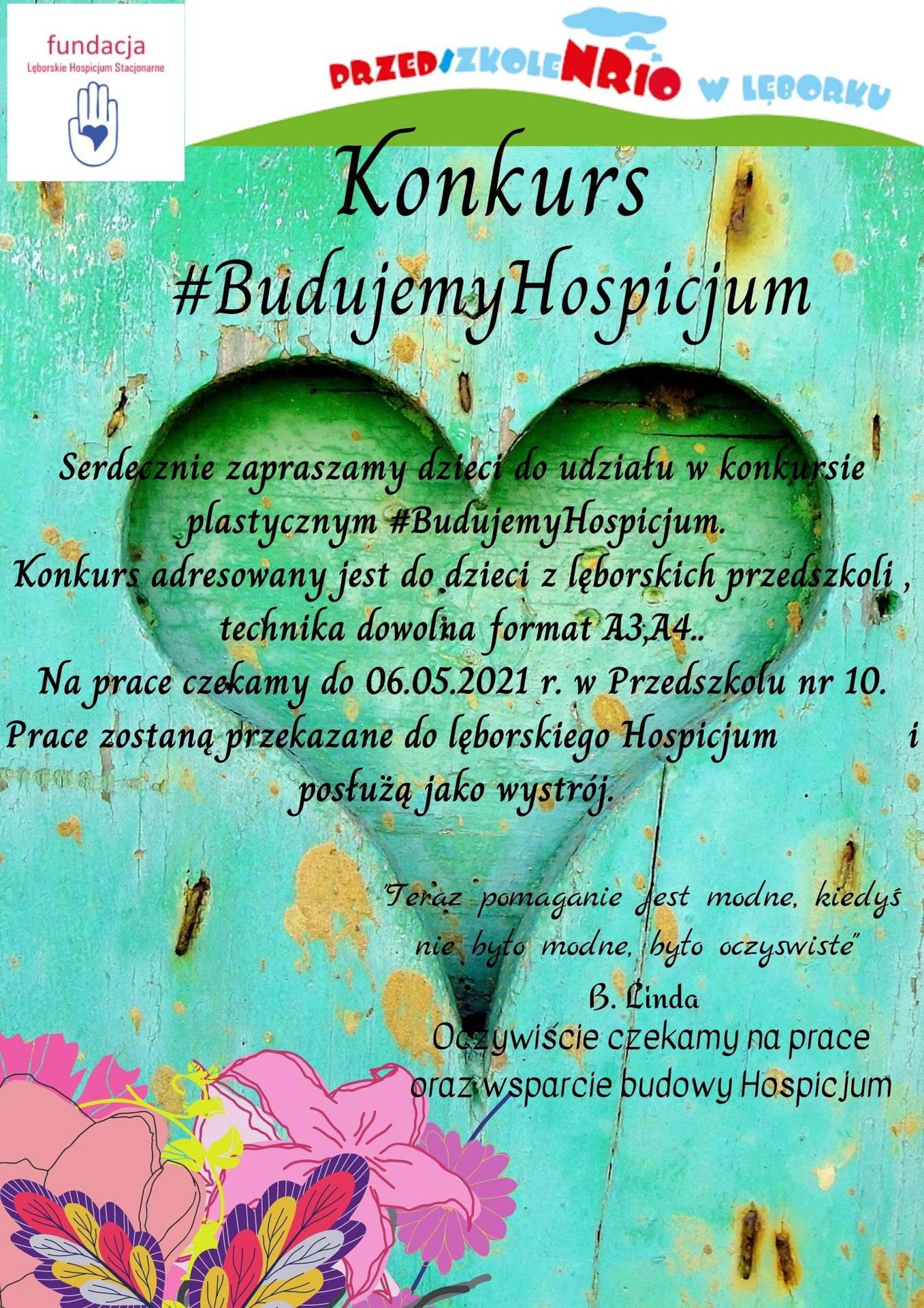 Serdecznie zachęcamy dzieci z naszego przedszkola do udziału w konkursie #BudujemyHospicjum.