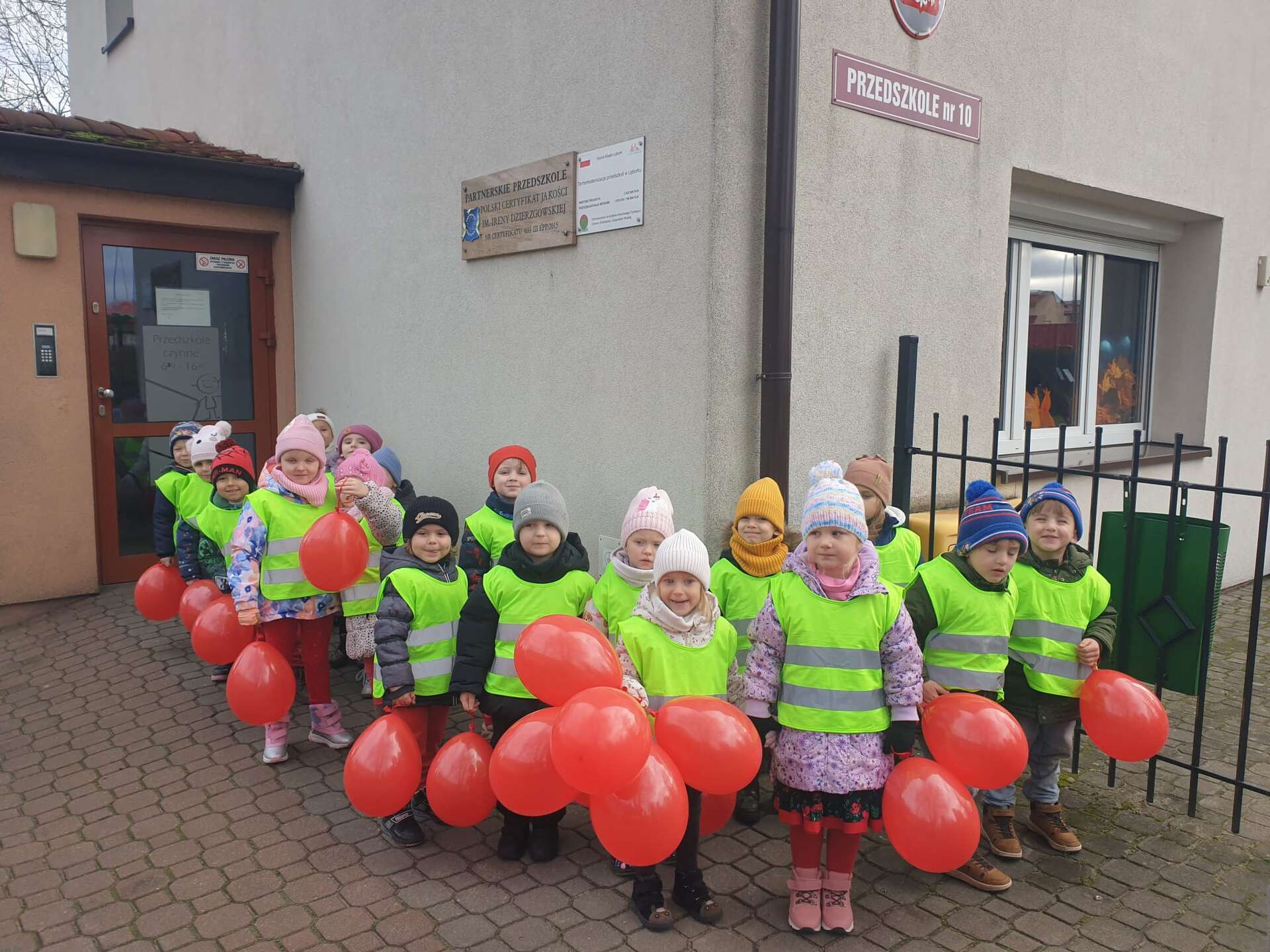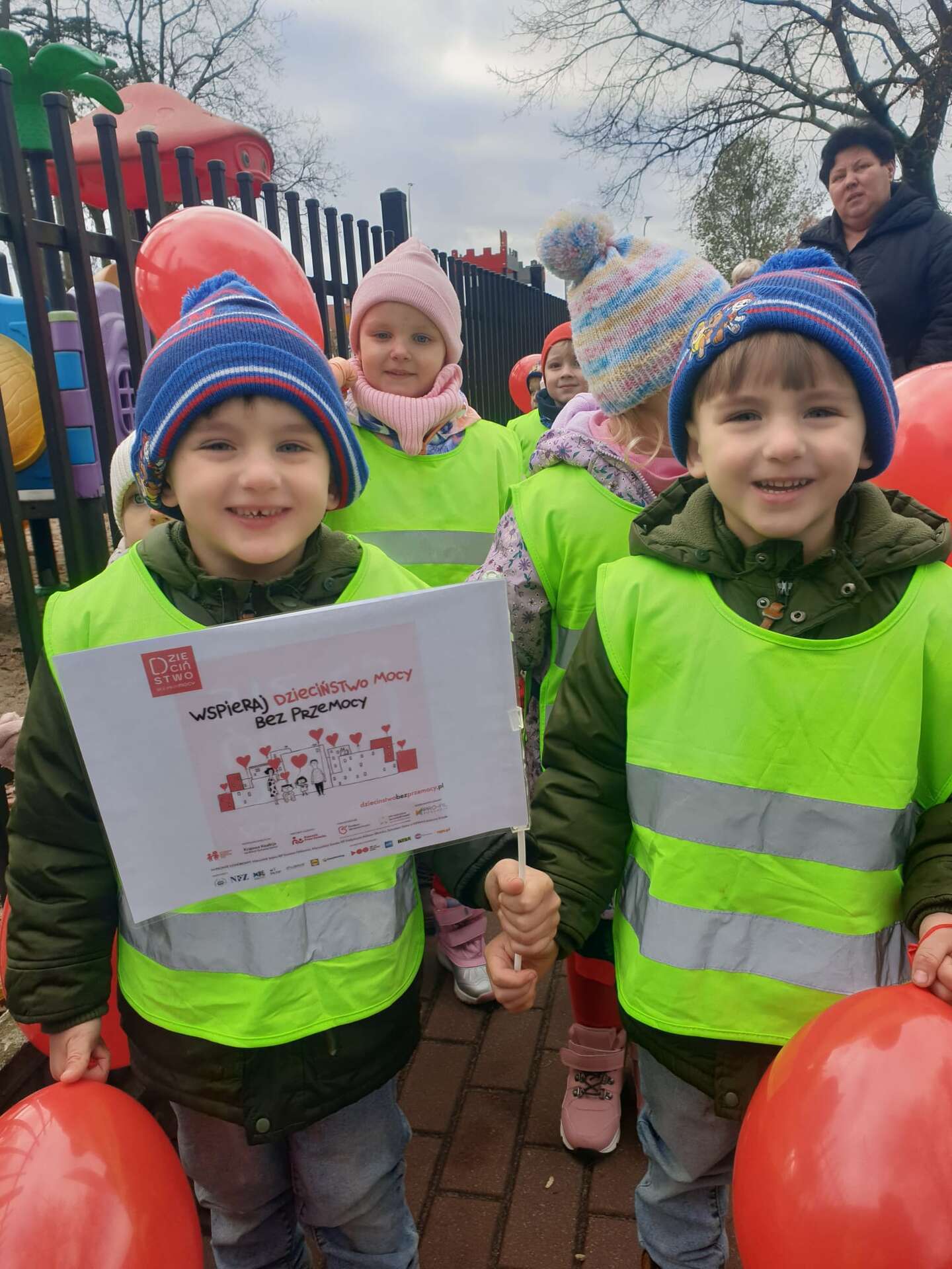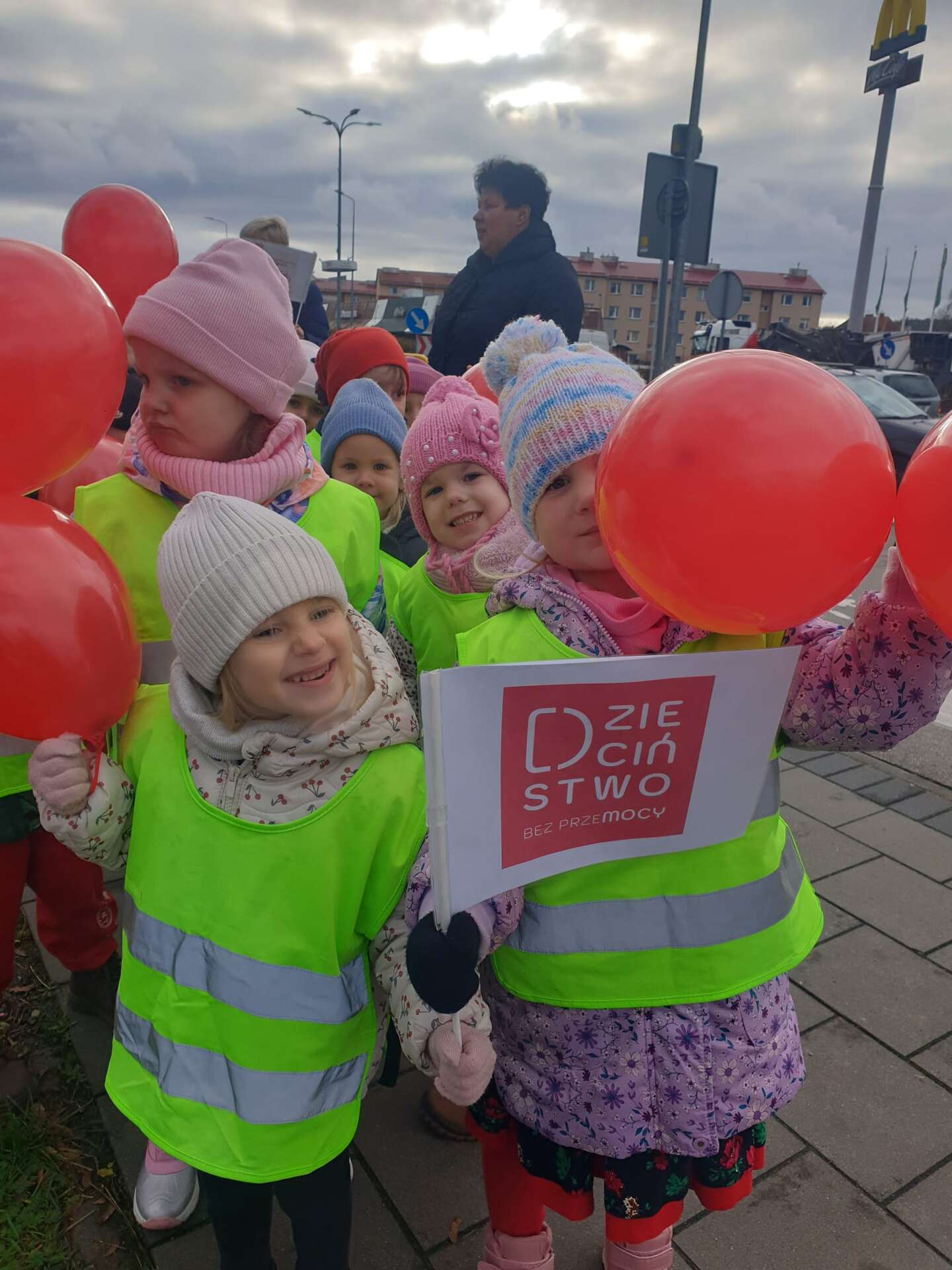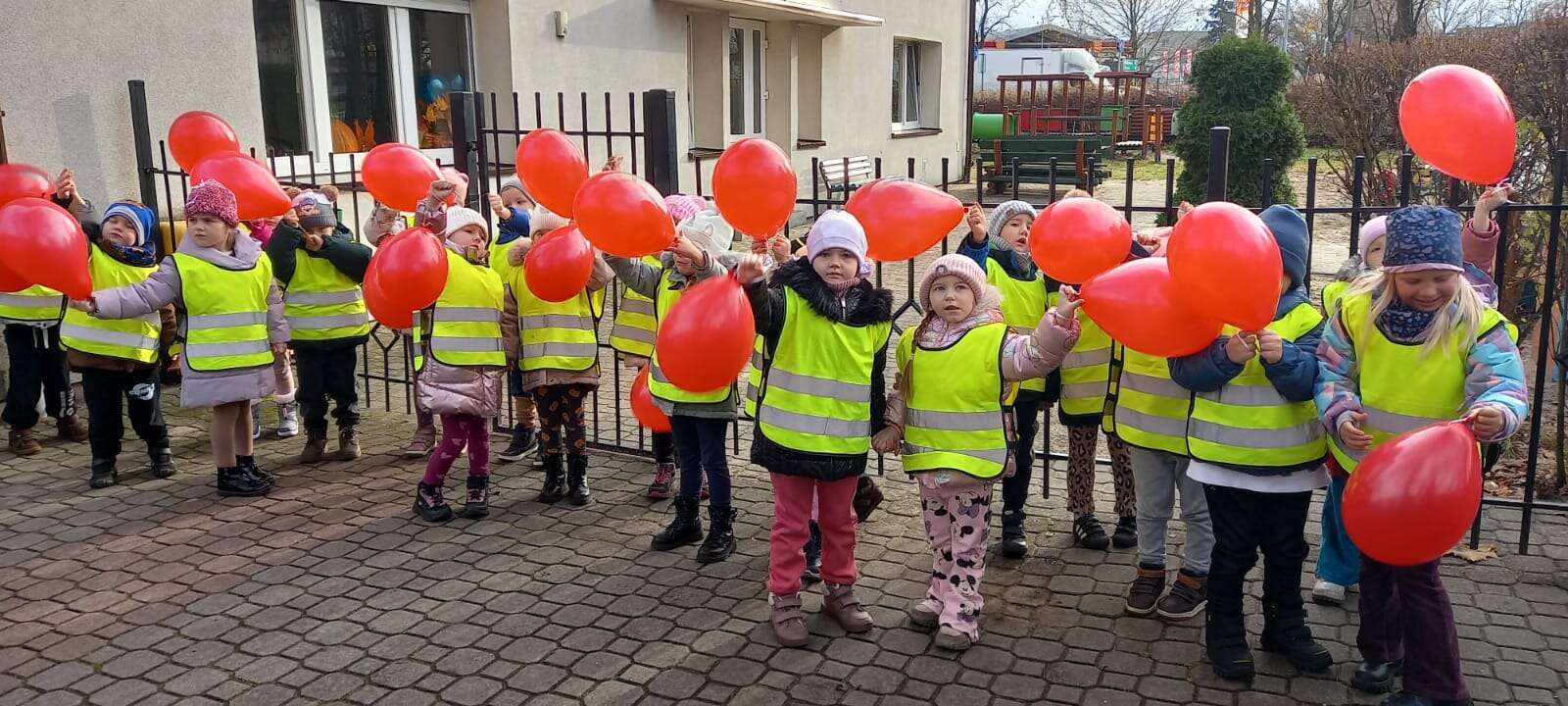 W ramach kampanii społecznej " Dzieciństwo bez przemocy" nasze przedszkolaki uczestniczyły w zajęciach promujących bezpieczeństwo i ochronę dzieci. Finałem inicjatyw był symboliczny przemarsz ulicami miasta, podczas którego dzieci niosły czerwone baloniki - znak sprzeciwu wobec przemocy. Na zakończenie, w ogrodzie przedszkolnym dzieci wypuściły baloniki do nieba, podkreślając wspólne dążenie do bezpiecznego i pełnego wsparcia dla środowiska najmłodszych.