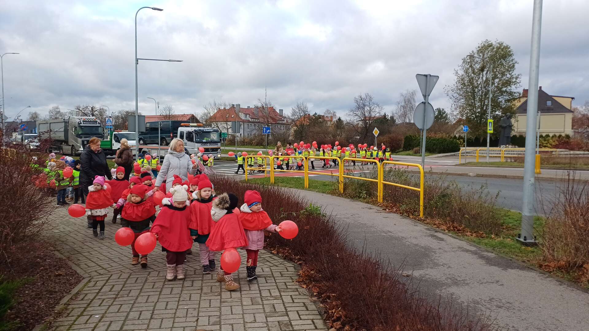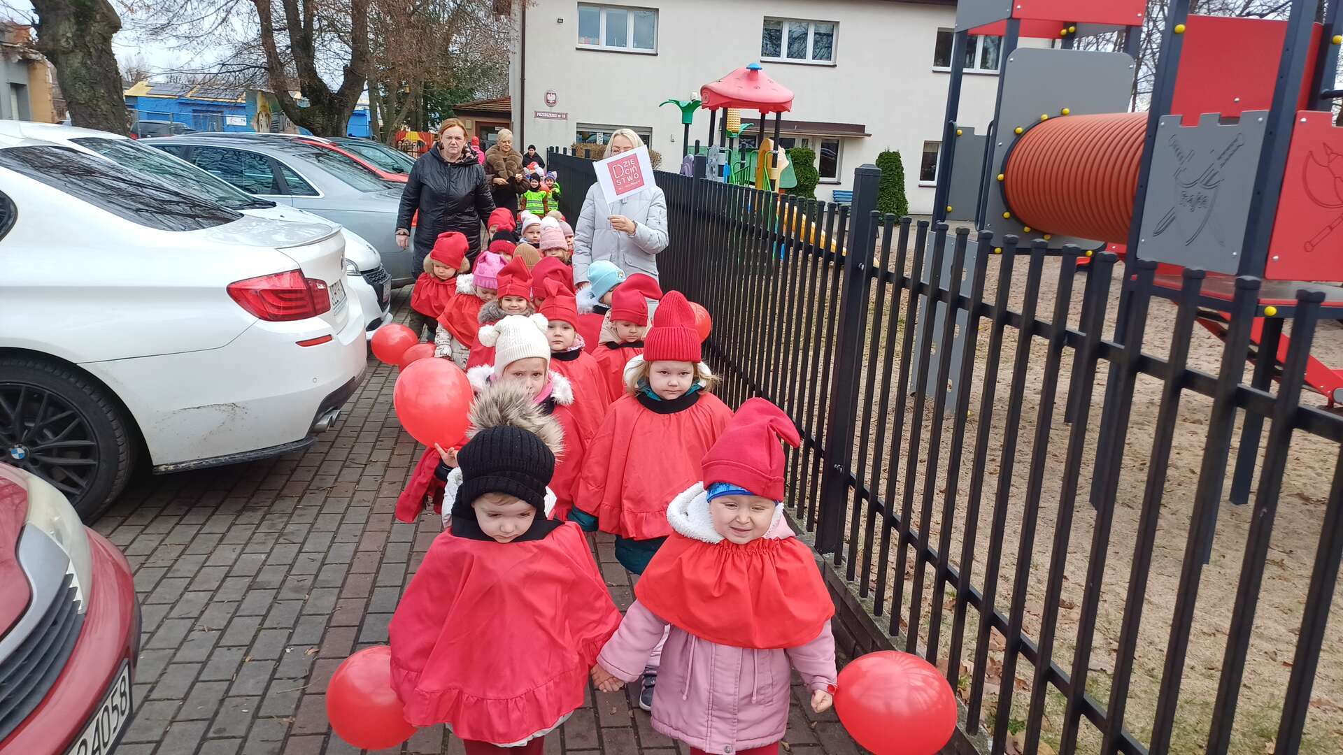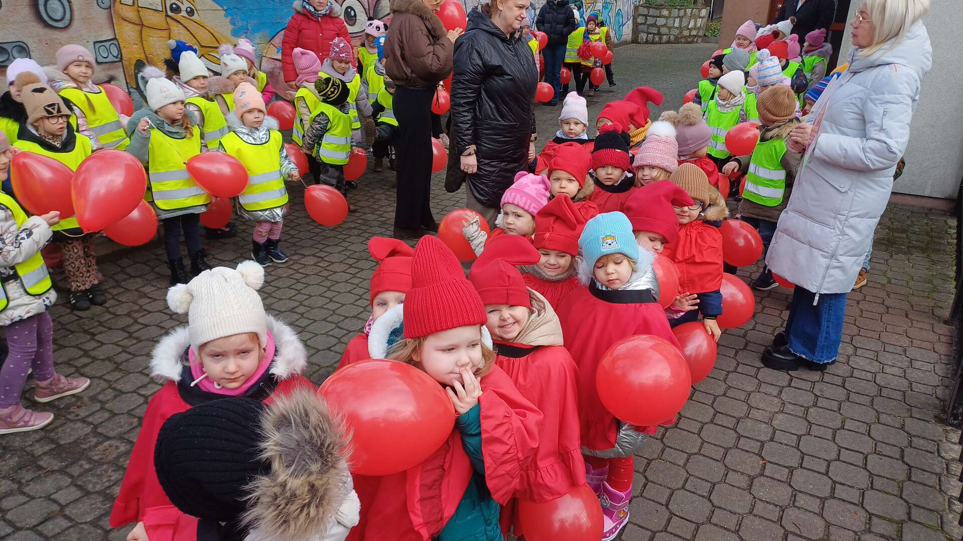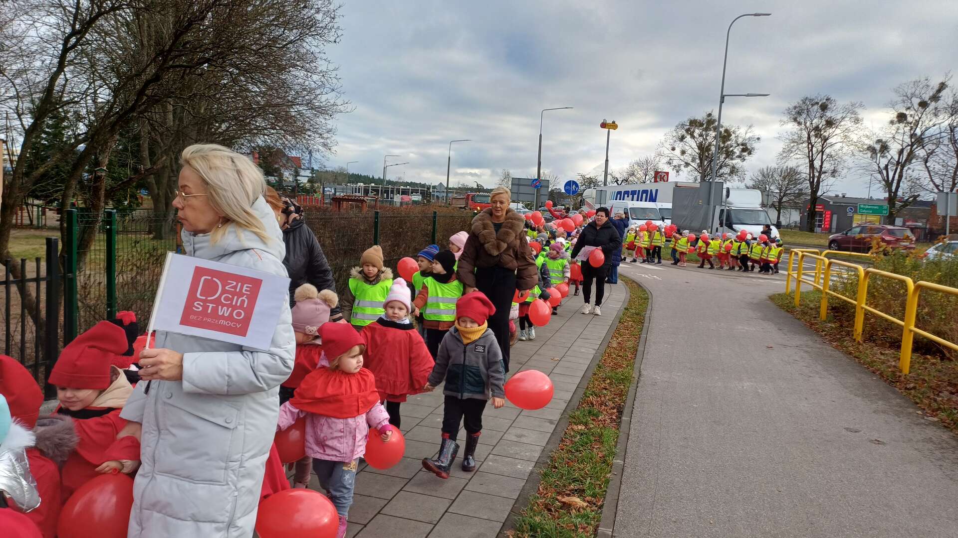 W ramach kampanii społecznej " Dzieciństwo bez przemocy" nasze przedszkolaki uczestniczyły w zajęciach promujących bezpieczeństwo i ochronę dzieci. Finałem inicjatyw był symboliczny przemarsz ulicami miasta, podczas którego dzieci niosły czerwone baloniki - znak sprzeciwu wobec przemocy. Na zakończenie, w ogrodzie przedszkolnym dzieci wypuściły baloniki do nieba, podkreślając wspólne dążenie do bezpiecznego i pełnego wsparcia dla środowiska najmłodszych.