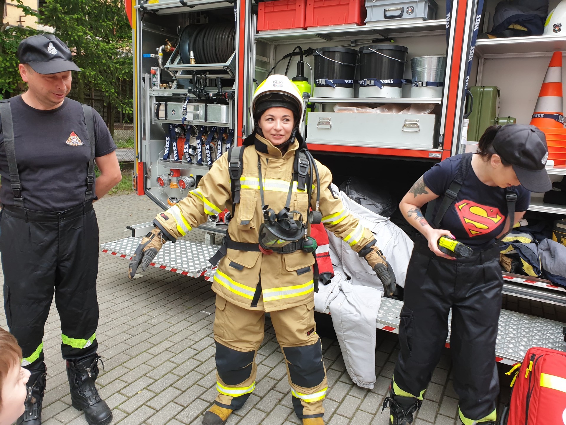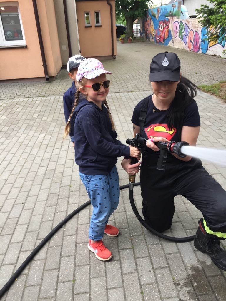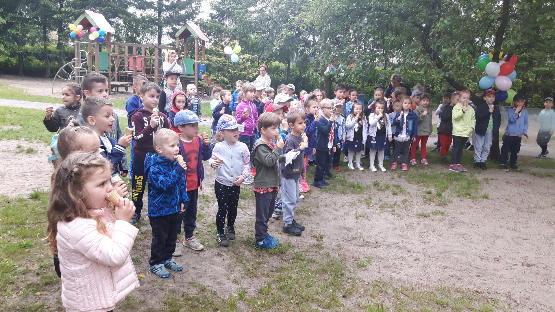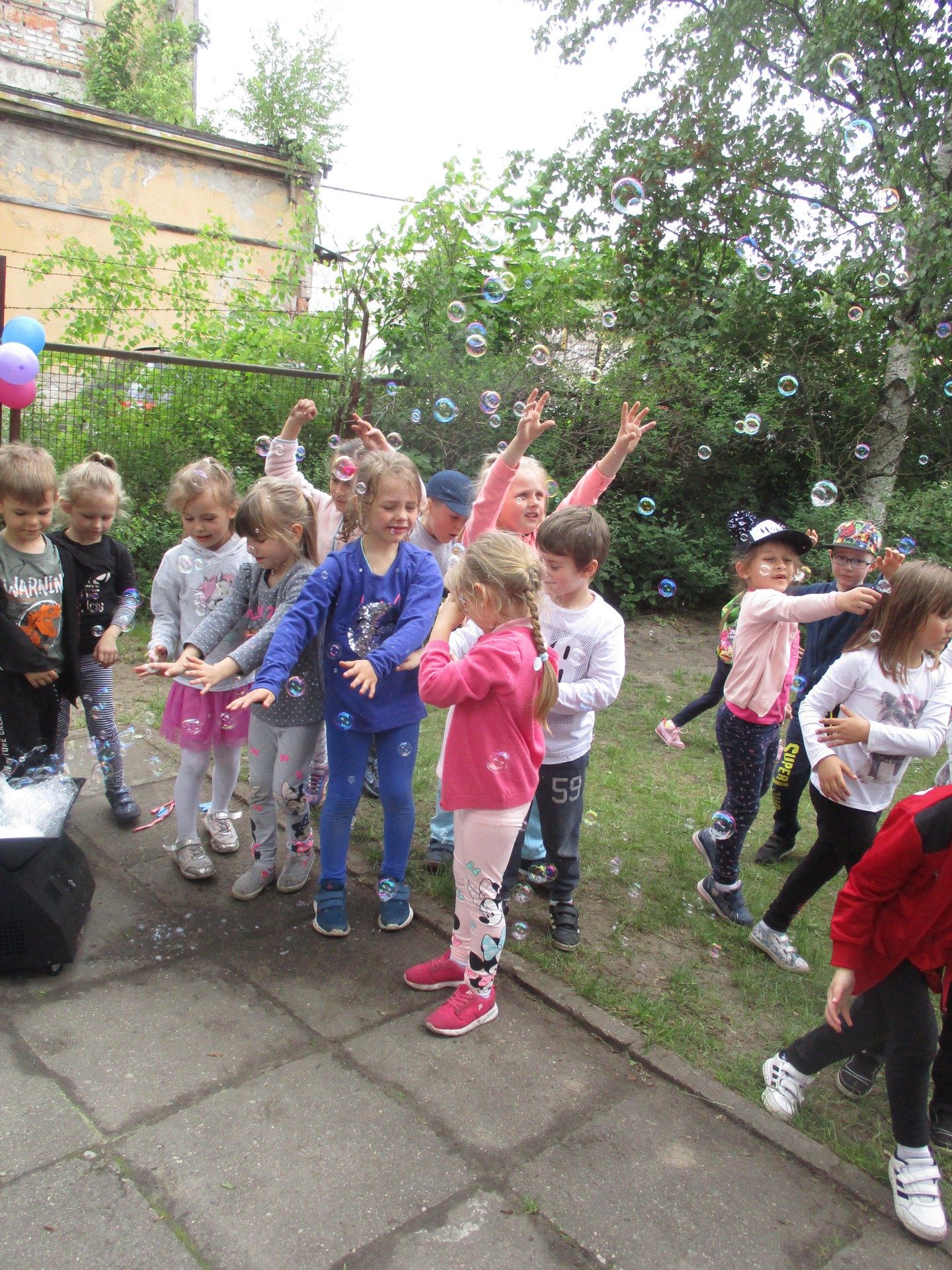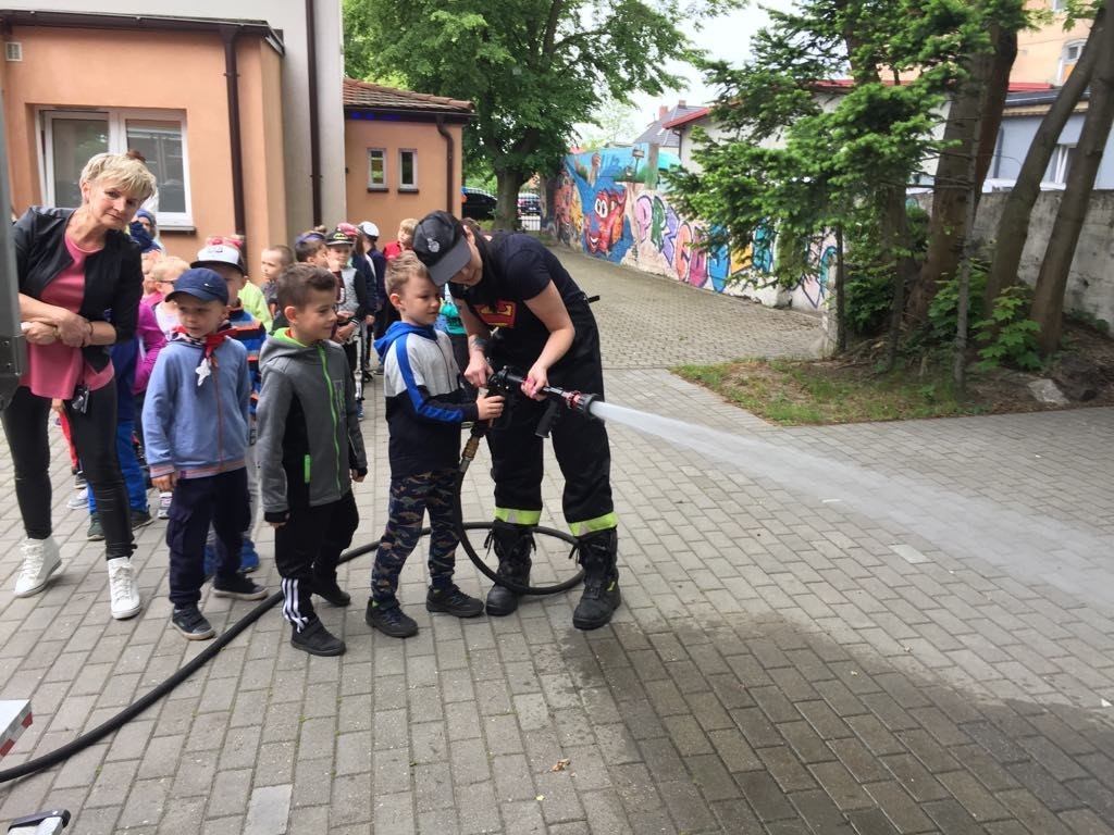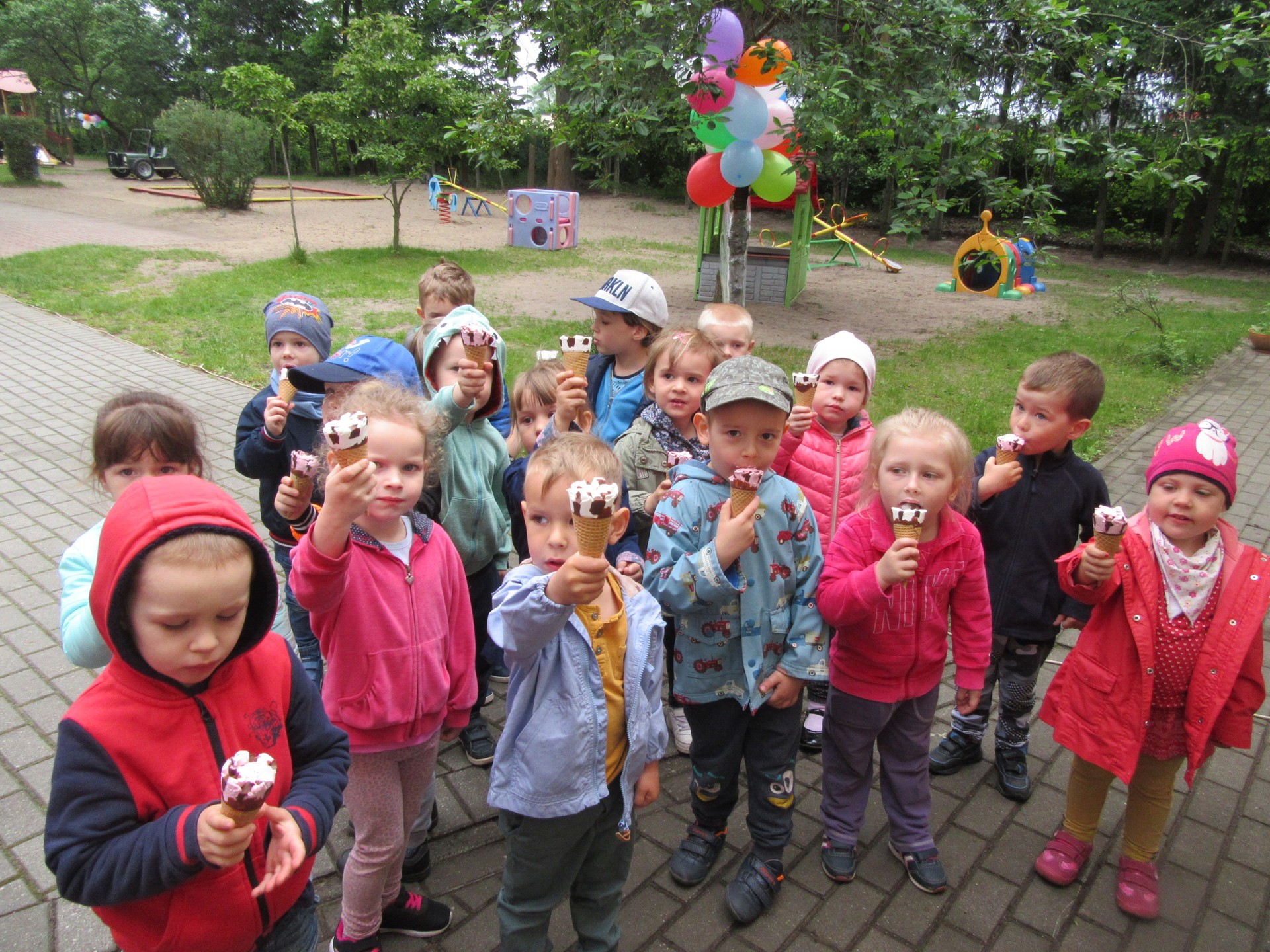 Dzień obfitował w liczne atrakcje. Na początek wóz strażacki , dzieci mogły obejrzeć go od środka a także zobaczyć jak działa wąż strażacki. Nasza Pani Dyrektor zamieniła się na chwilę w strażaka prezentując się w pełnym stroju strażackim. Tego dnia gościliśmy w naszej placówce animatora zabaw, który prowadził z dziećmi zabawy taneczne, tworzył wspaniałe bańki mydlane oraz różności z balonów. Dzieci malowały farbami na strechu oraz brały udział w zawodach sportowych. Nie zabrakło tego dnia słodkości, nasi milusińscy dostali lody oraz mogły częstować się pysznymi ciastami zrobionymi przez rodziców. Nie zabrakło też wesołych zabaw na świeżym powietrzu.