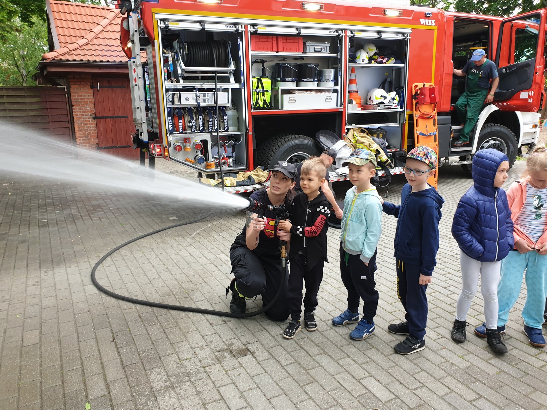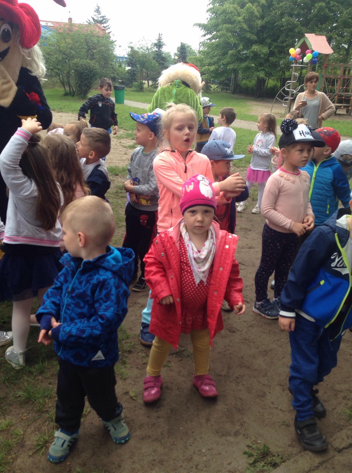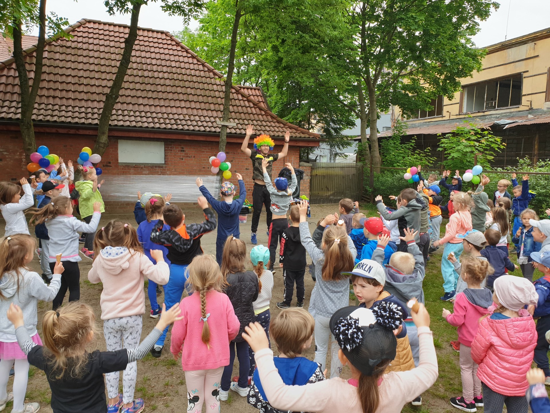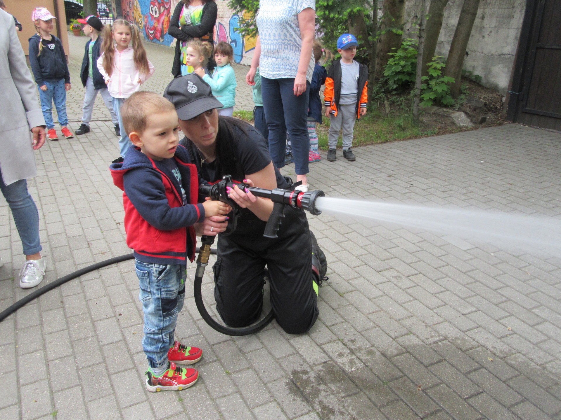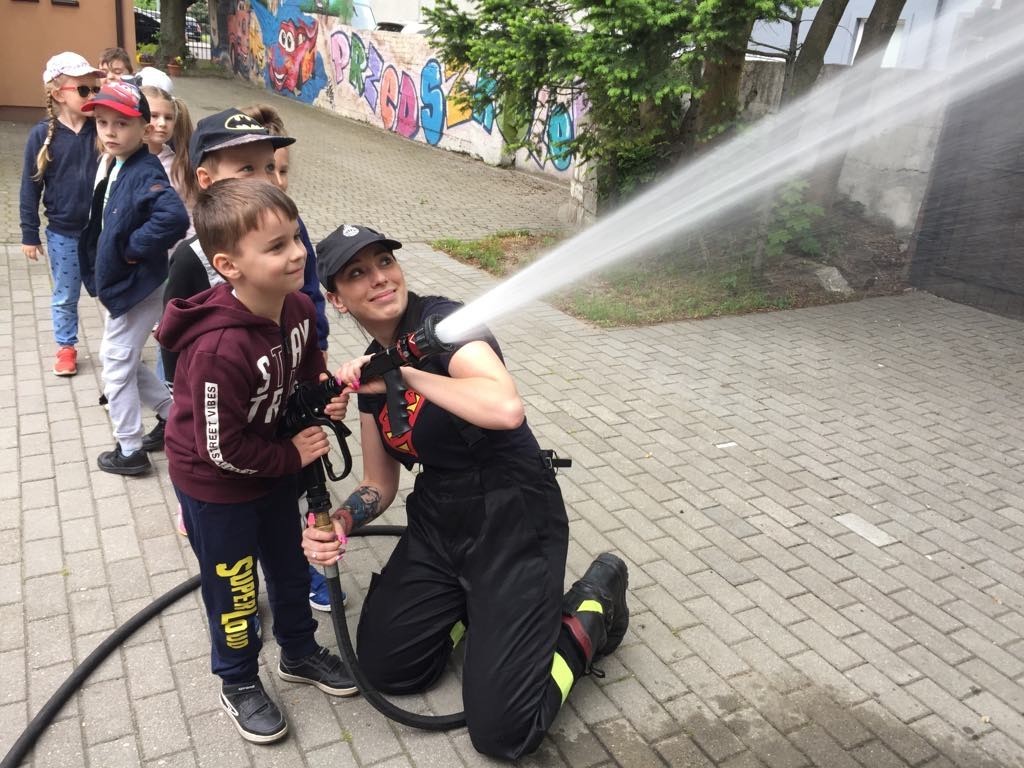 Dzień obfitował w liczne atrakcje. Na początek wóz strażacki , dzieci mogły obejrzeć go od środka a także zobaczyć jak działa wąż strażacki. Nasza Pani Dyrektor zamieniła się na chwilę w strażaka prezentując się w pełnym stroju strażackim. Tego dnia gościliśmy w naszej placówce animatora zabaw, który prowadził z dziećmi zabawy taneczne, tworzył wspaniałe bańki mydlane oraz różności z balonów. Dzieci malowały farbami na strechu oraz brały udział w zawodach sportowych. Nie zabrakło tego dnia słodkości, nasi milusińscy dostali lody oraz mogły częstować się pysznymi ciastami zrobionymi przez rodziców. Nie zabrakło też wesołych zabaw na świeżym powietrzu.