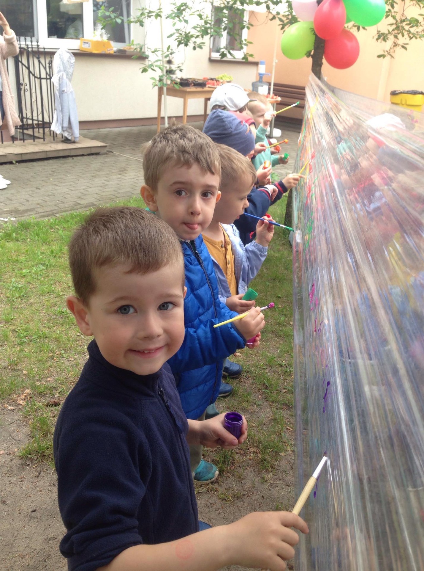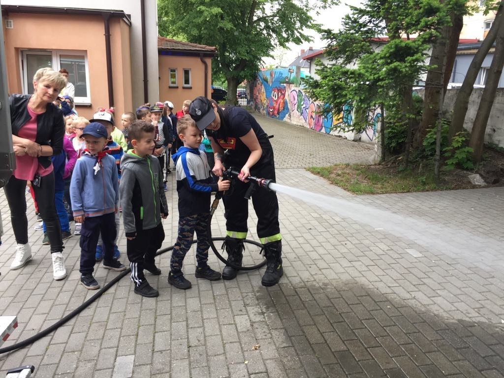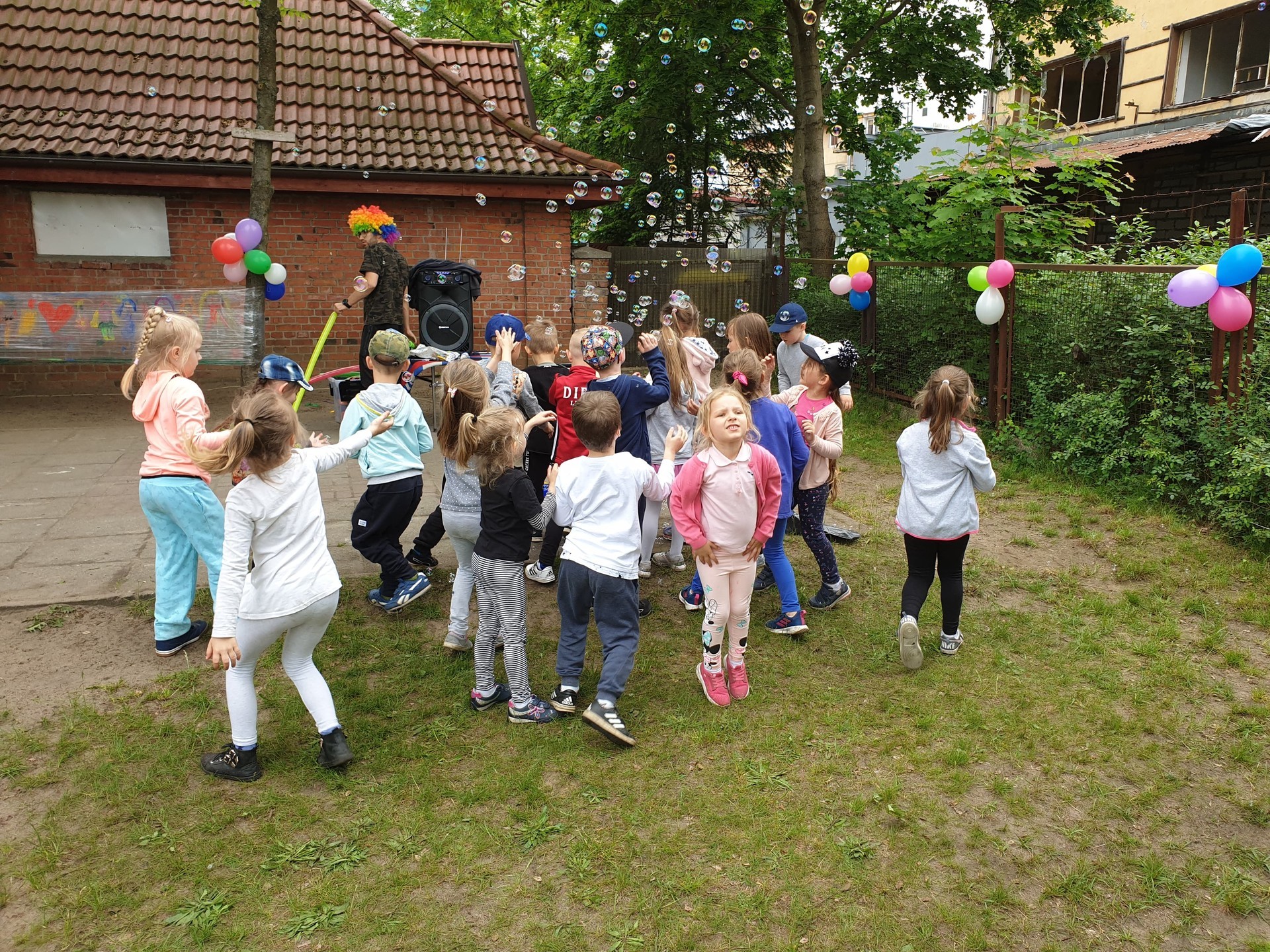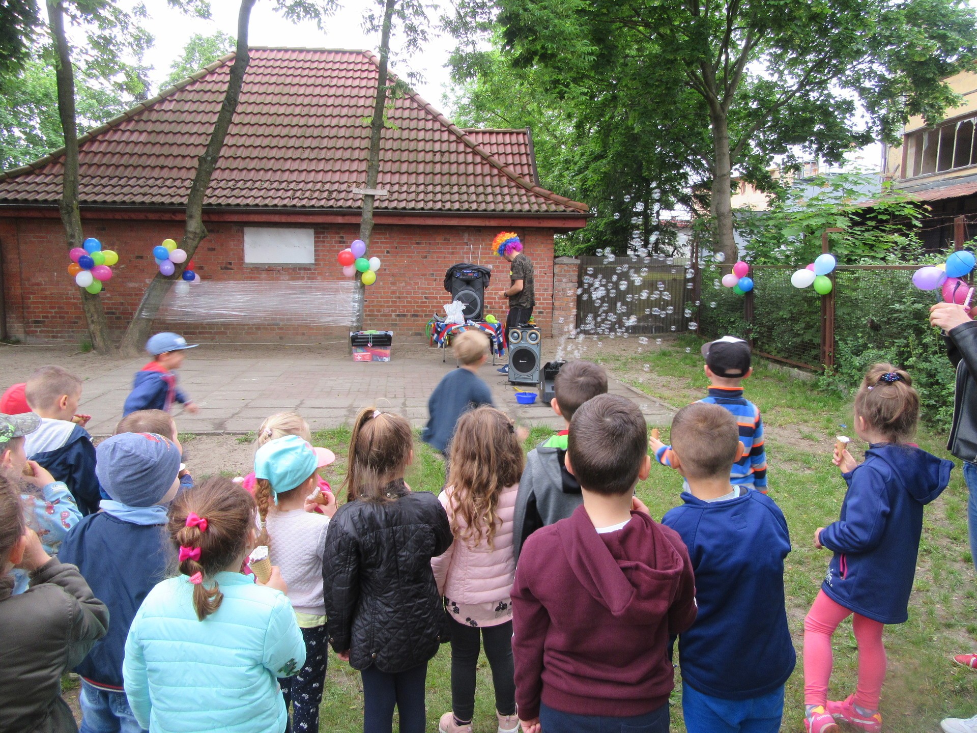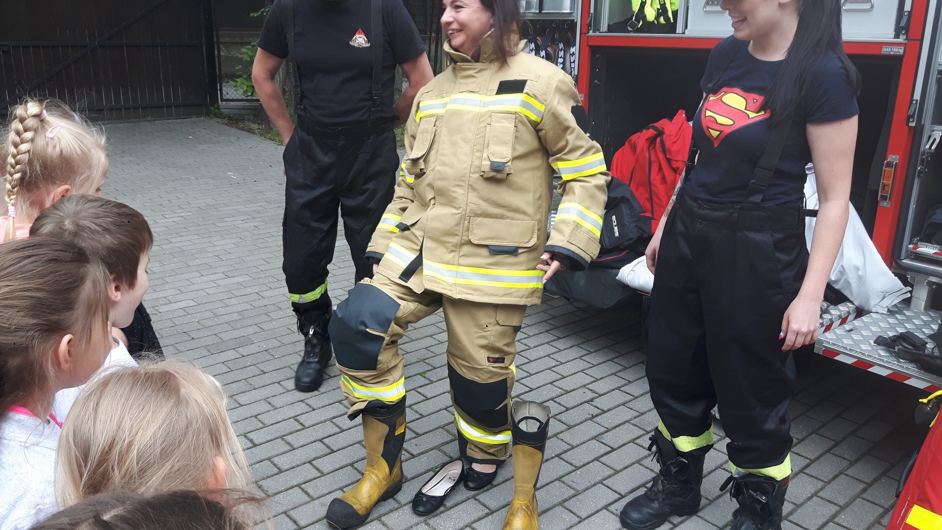 Dzień obfitował w liczne atrakcje. Na początek wóz strażacki , dzieci mogły obejrzeć go od środka a także zobaczyć jak działa wąż strażacki. Nasza Pani Dyrektor zamieniła się na chwilę w strażaka prezentując się w pełnym stroju strażackim. Tego dnia gościliśmy w naszej placówce animatora zabaw, który prowadził z dziećmi zabawy taneczne, tworzył wspaniałe bańki mydlane oraz różności z balonów. Dzieci malowały farbami na strechu oraz brały udział w zawodach sportowych. Nie zabrakło tego dnia słodkości, nasi milusińscy dostali lody oraz mogły częstować się pysznymi ciastami zrobionymi przez rodziców. Nie zabrakło też wesołych zabaw na świeżym powietrzu.
