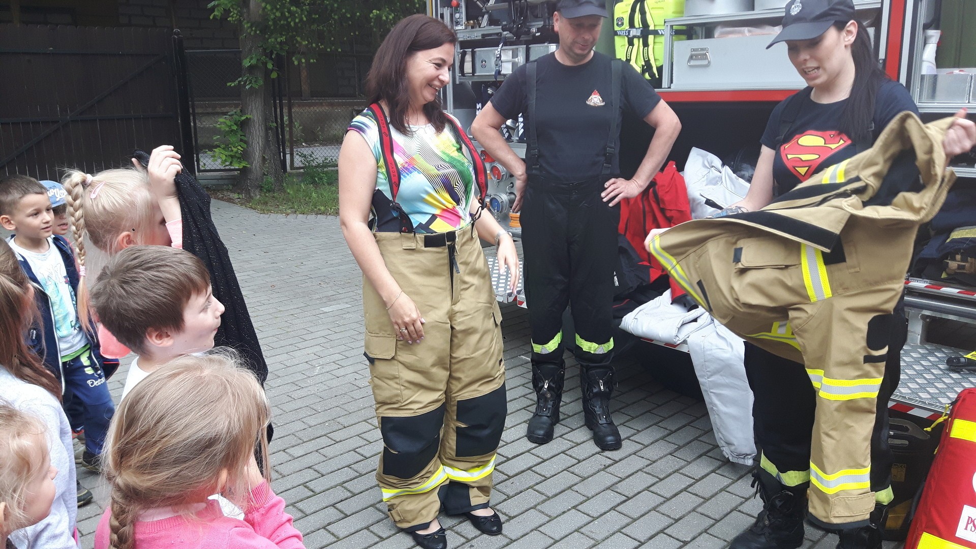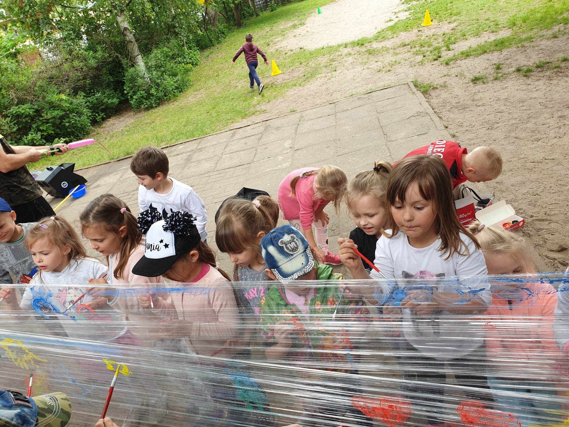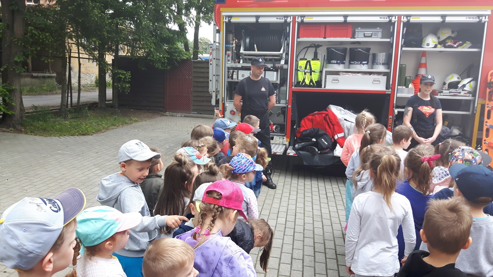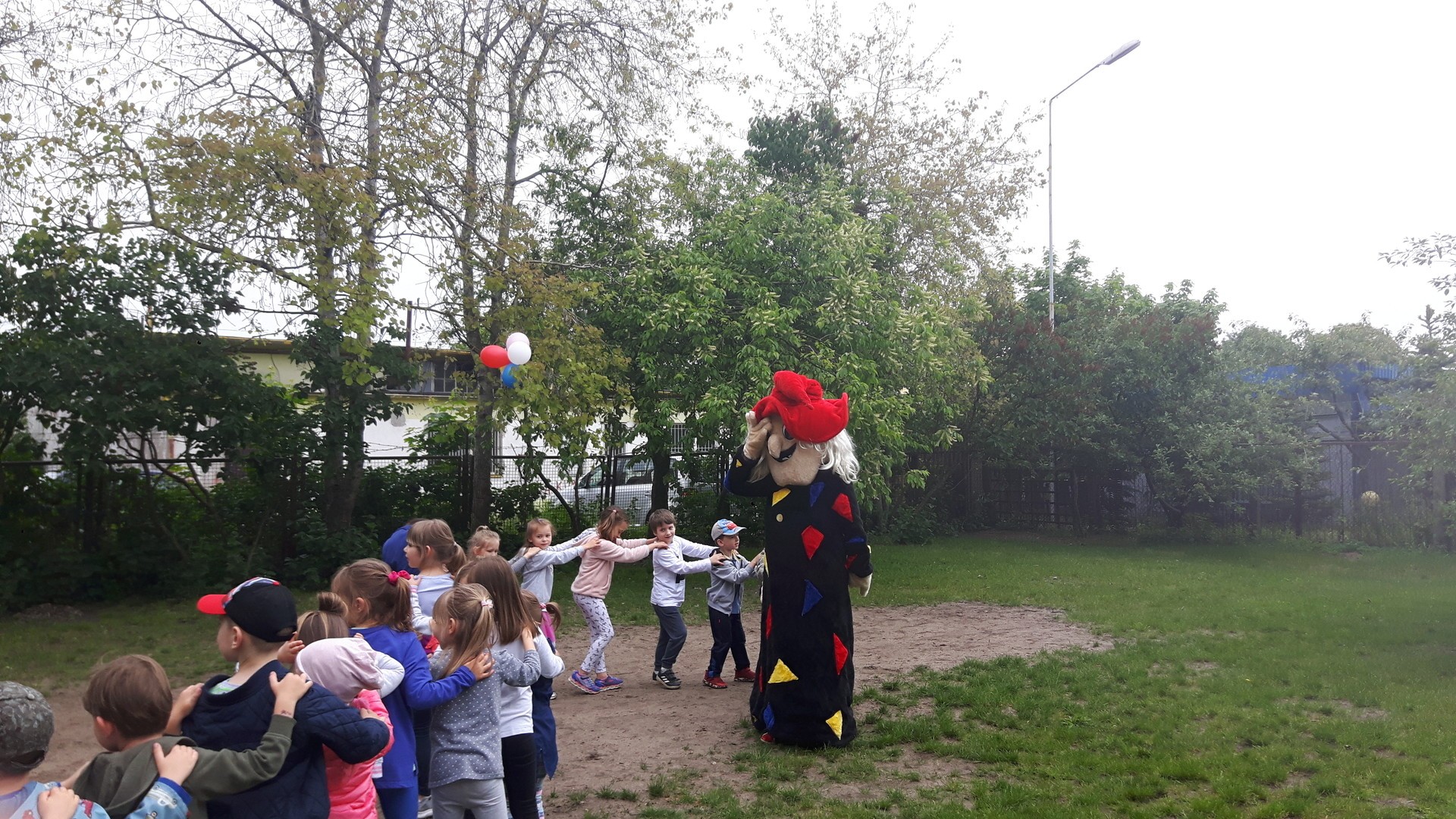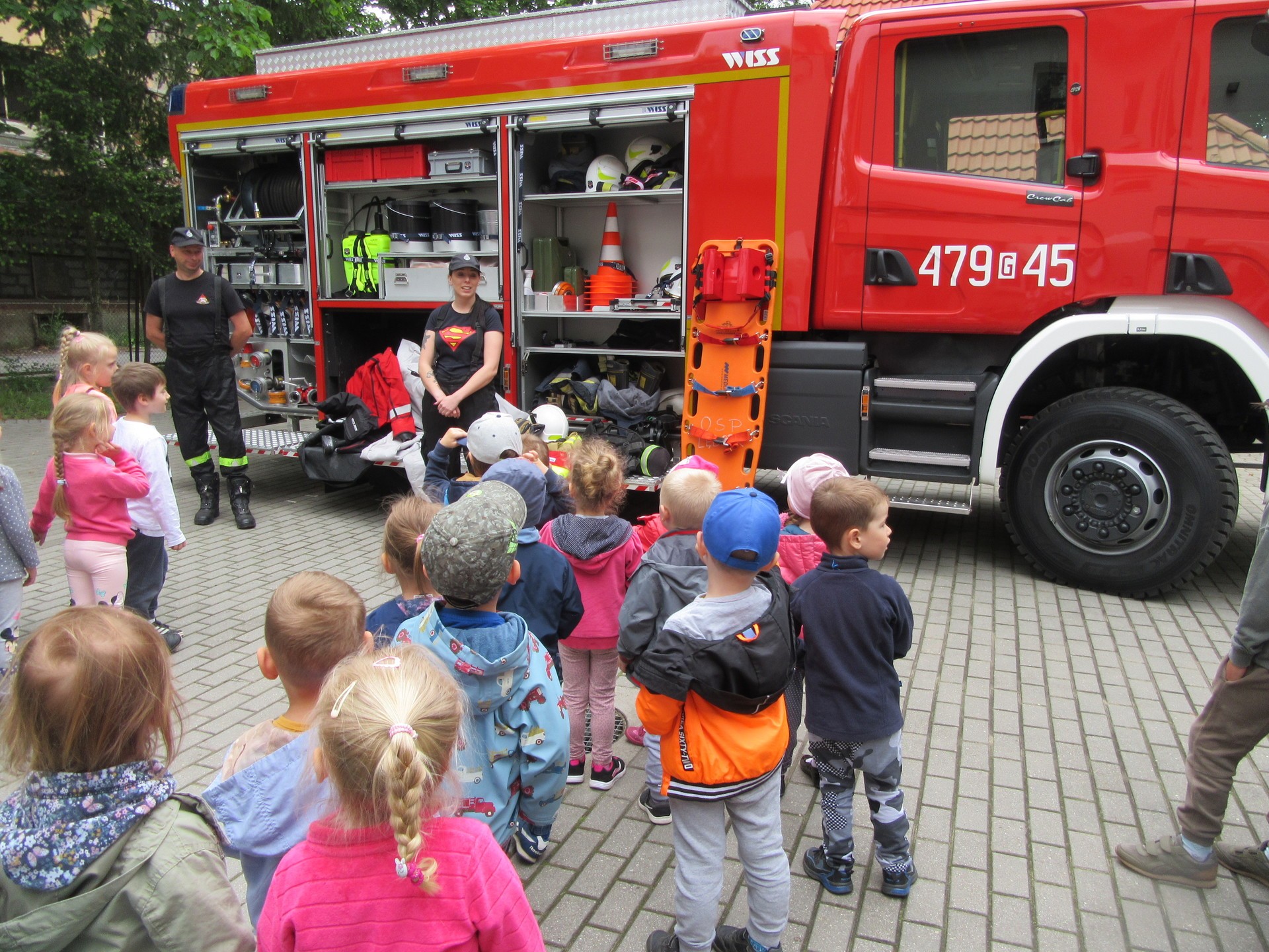 Dzień obfitował w liczne atrakcje. Na początek wóz strażacki , dzieci mogły obejrzeć go od środka a także zobaczyć jak działa wąż strażacki. Nasza Pani Dyrektor zamieniła się na chwilę w strażaka prezentując się w pełnym stroju strażackim. Tego dnia gościliśmy w naszej placówce animatora zabaw, który prowadził z dziećmi zabawy taneczne, tworzył wspaniałe bańki mydlane oraz różności z balonów. Dzieci malowały farbami na strechu oraz brały udział w zawodach sportowych. Nie zabrakło tego dnia słodkości, nasi milusińscy dostali lody oraz mogły częstować się pysznymi ciastami zrobionymi przez rodziców. Nie zabrakło też wesołych zabaw na świeżym powietrzu.