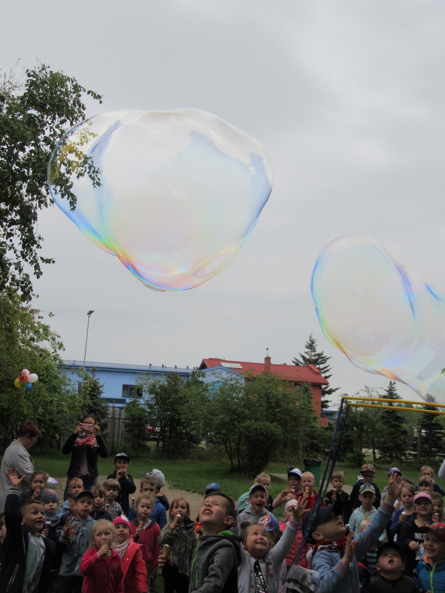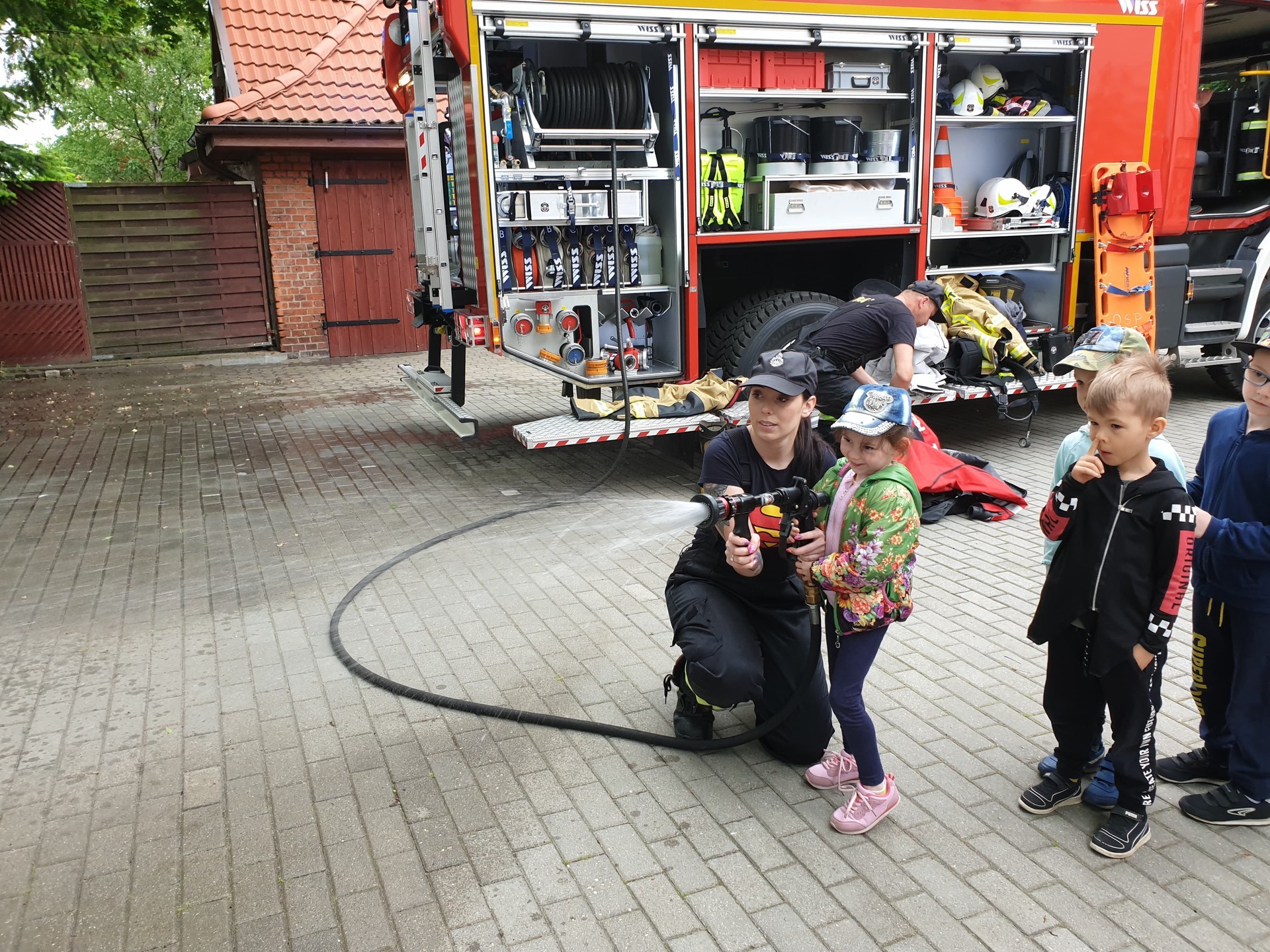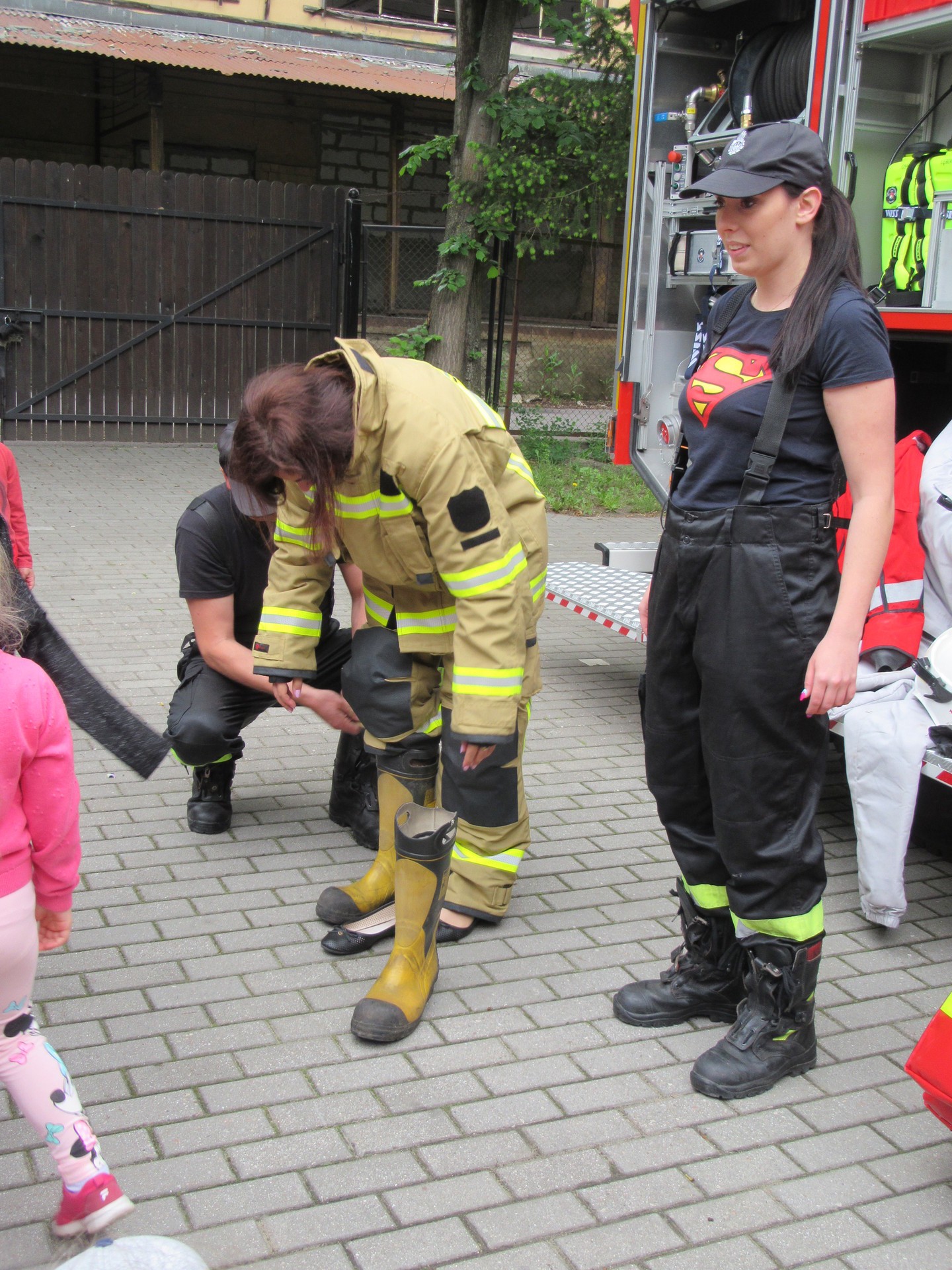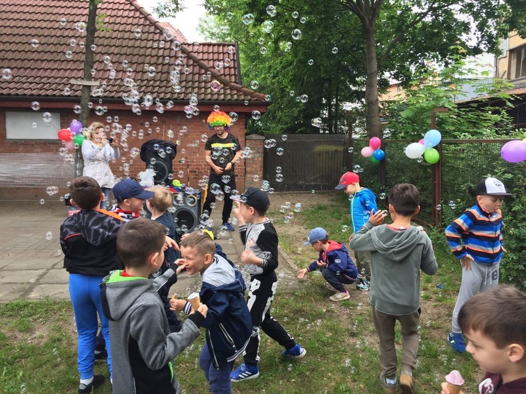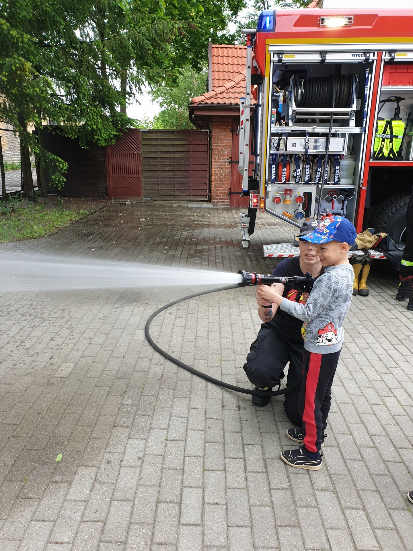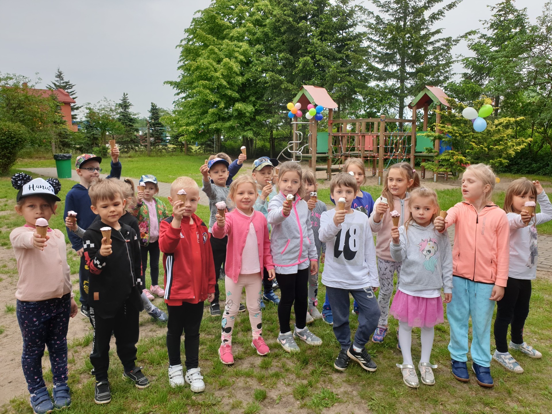 Dzień obfitował w liczne atrakcje. Na początek wóz strażacki , dzieci mogły obejrzeć go od środka a także zobaczyć jak działa wąż strażacki. Nasza Pani Dyrektor zamieniła się na chwilę w strażaka prezentując się w pełnym stroju strażackim. Tego dnia gościliśmy w naszej placówce animatora zabaw, który prowadził z dziećmi zabawy taneczne, tworzył wspaniałe bańki mydlane oraz różności z balonów. Dzieci malowały farbami na strechu oraz brały udział w zawodach sportowych. Nie zabrakło tego dnia słodkości, nasi milusińscy dostali lody oraz mogły częstować się pysznymi ciastami zrobionymi przez rodziców. Nie zabrakło też wesołych zabaw na świeżym powietrzu.
