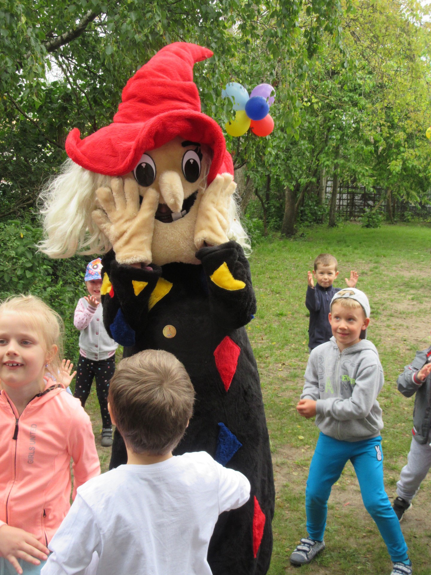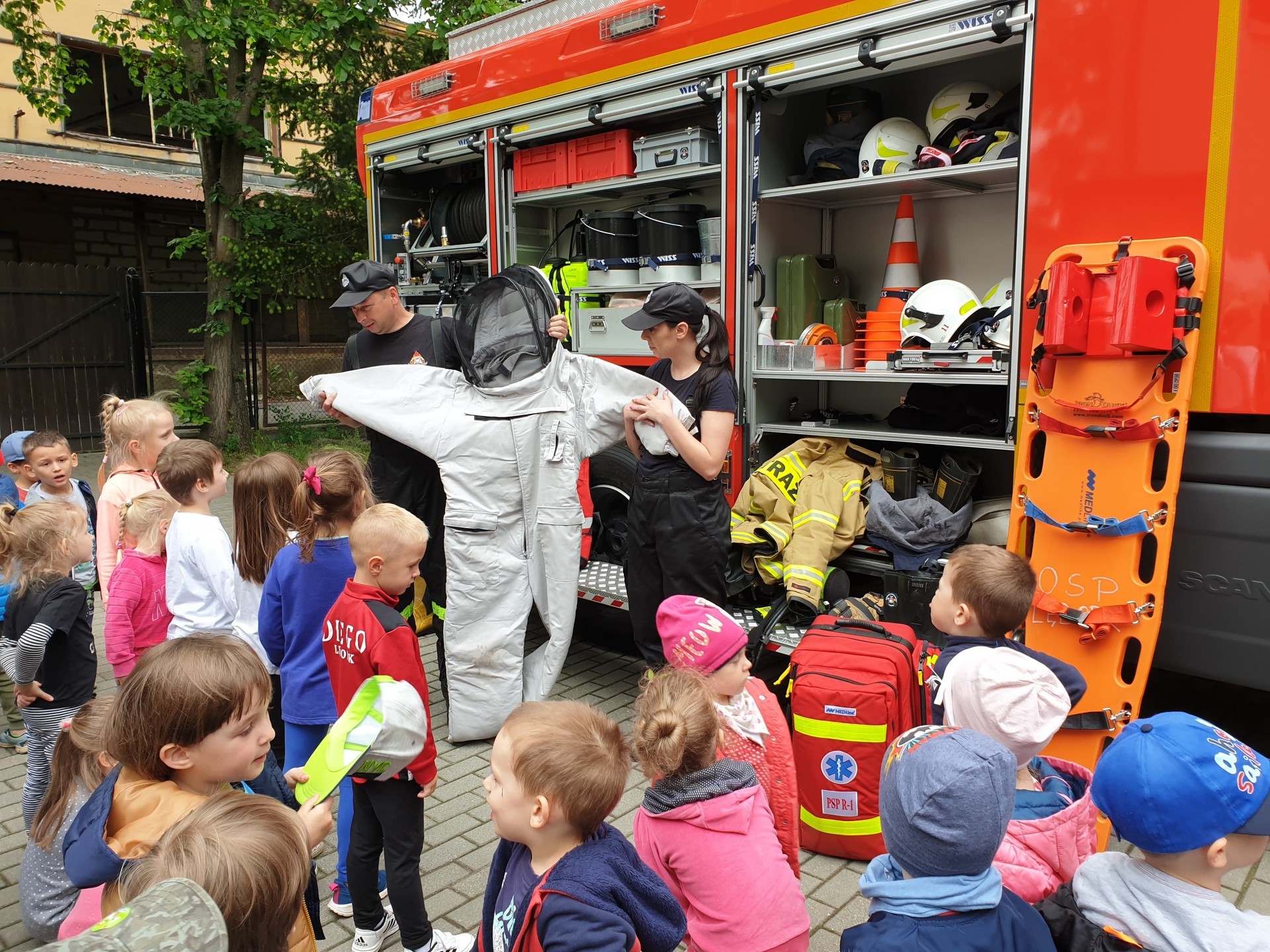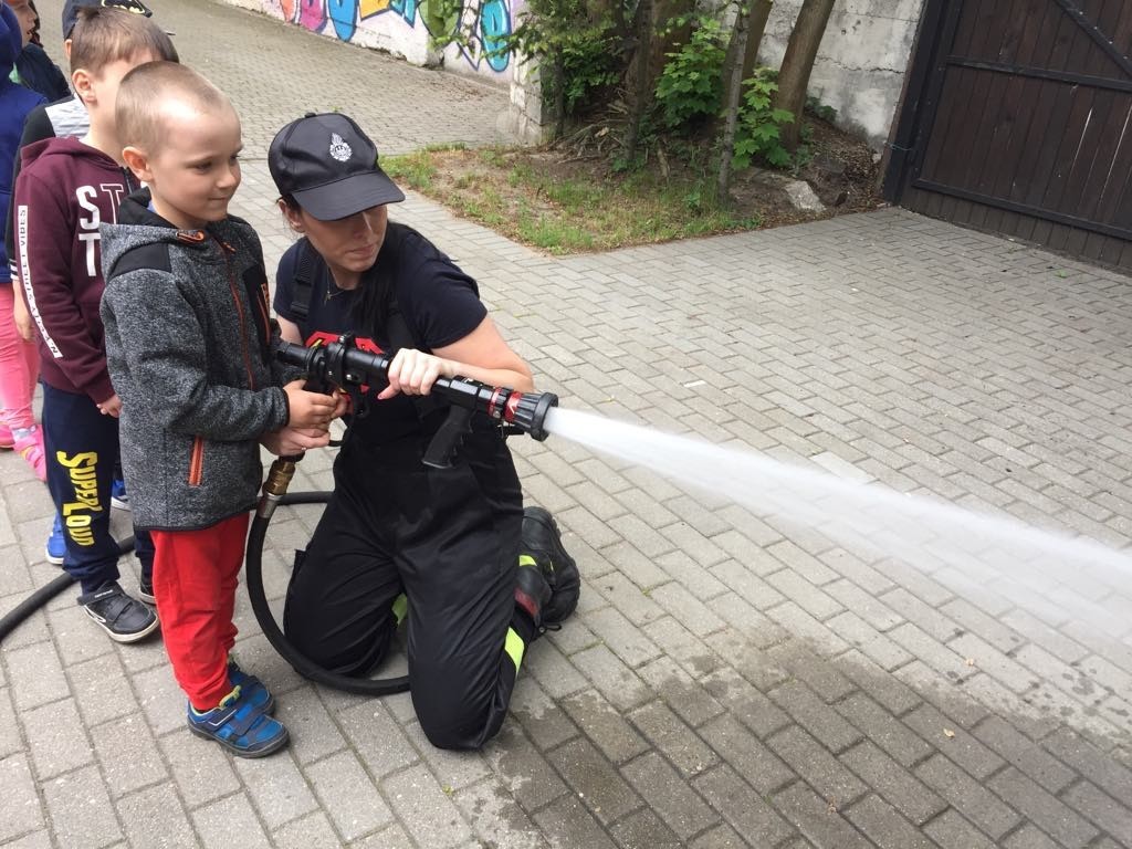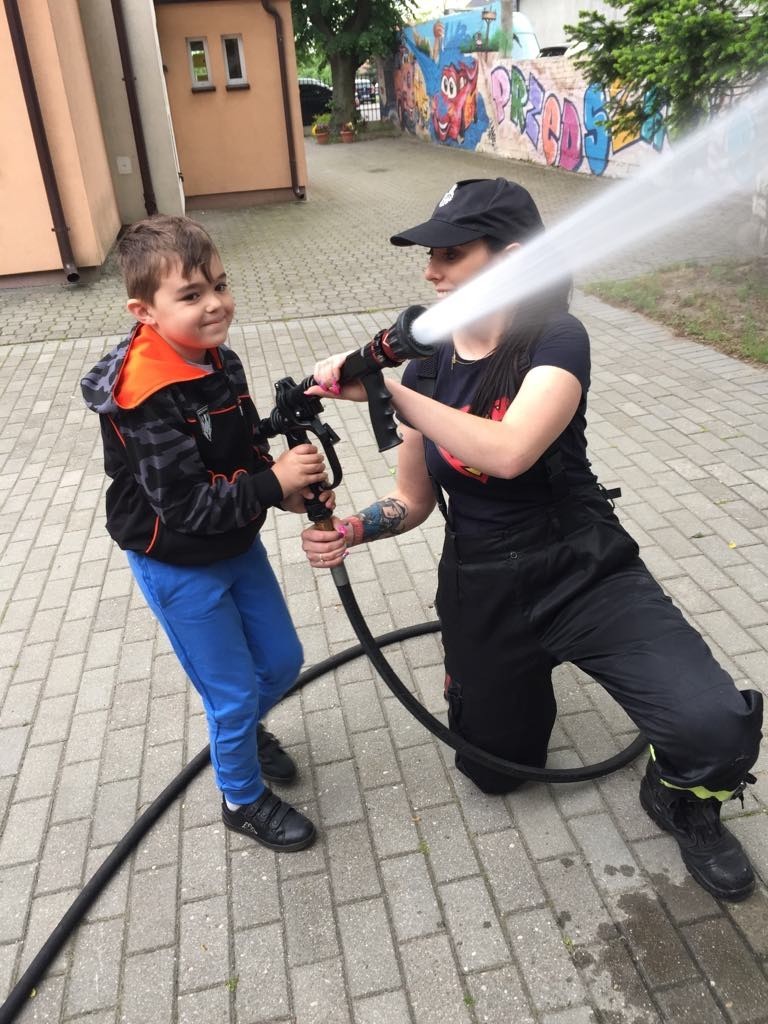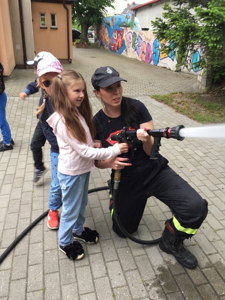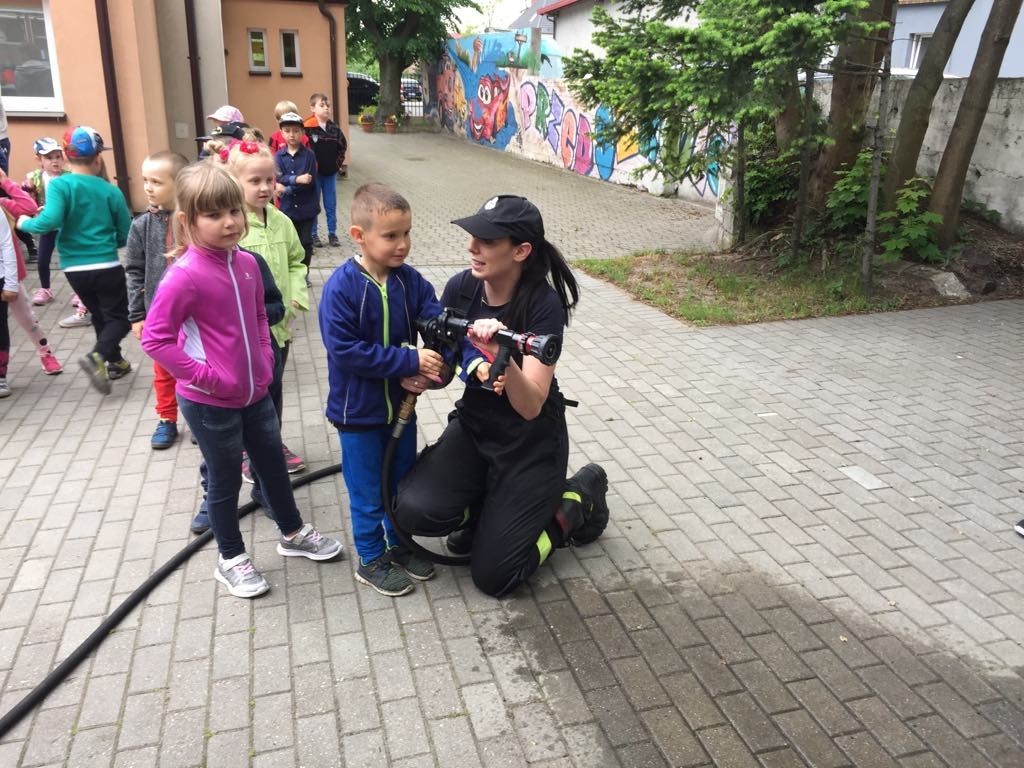 Dzień obfitował w liczne atrakcje. Na początek wóz strażacki , dzieci mogły obejrzeć go od środka a także zobaczyć jak działa wąż strażacki. Nasza Pani Dyrektor zamieniła się na chwilę w strażaka prezentując się w pełnym stroju strażackim. Tego dnia gościliśmy w naszej placówce animatora zabaw, który prowadził z dziećmi zabawy taneczne, tworzył wspaniałe bańki mydlane oraz różności z balonów. Dzieci malowały farbami na strechu oraz brały udział w zawodach sportowych. Nie zabrakło tego dnia słodkości, nasi milusińscy dostali lody oraz mogły częstować się pysznymi ciastami zrobionymi przez rodziców. Nie zabrakło też wesołych zabaw na świeżym powietrzu.
