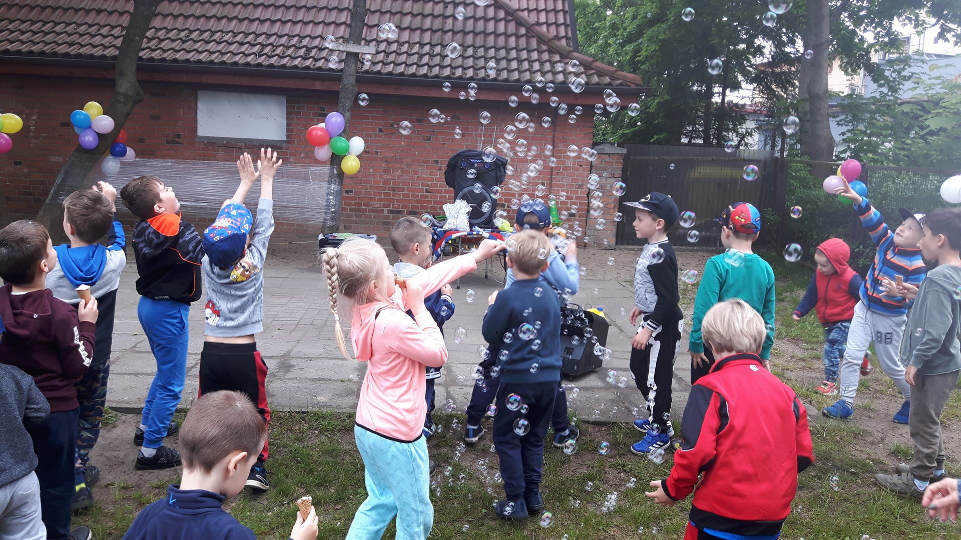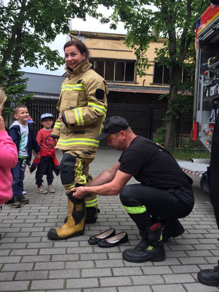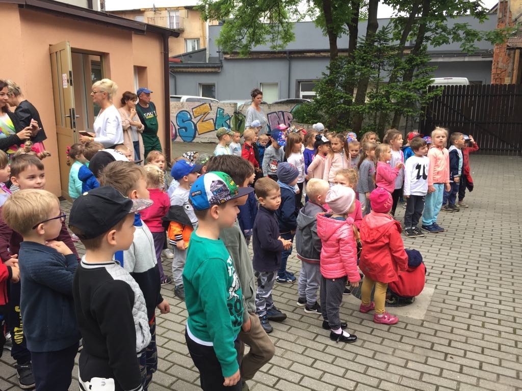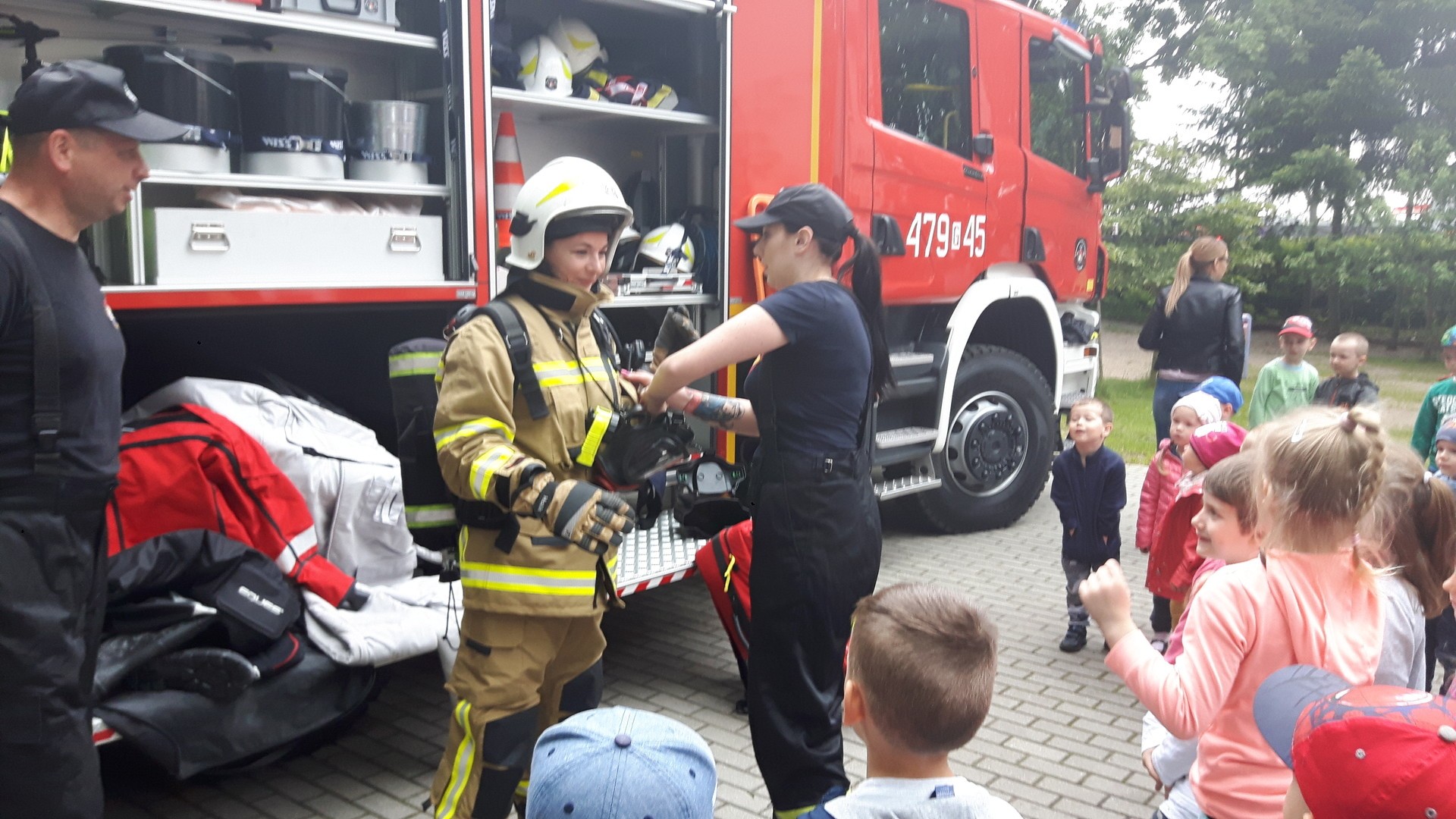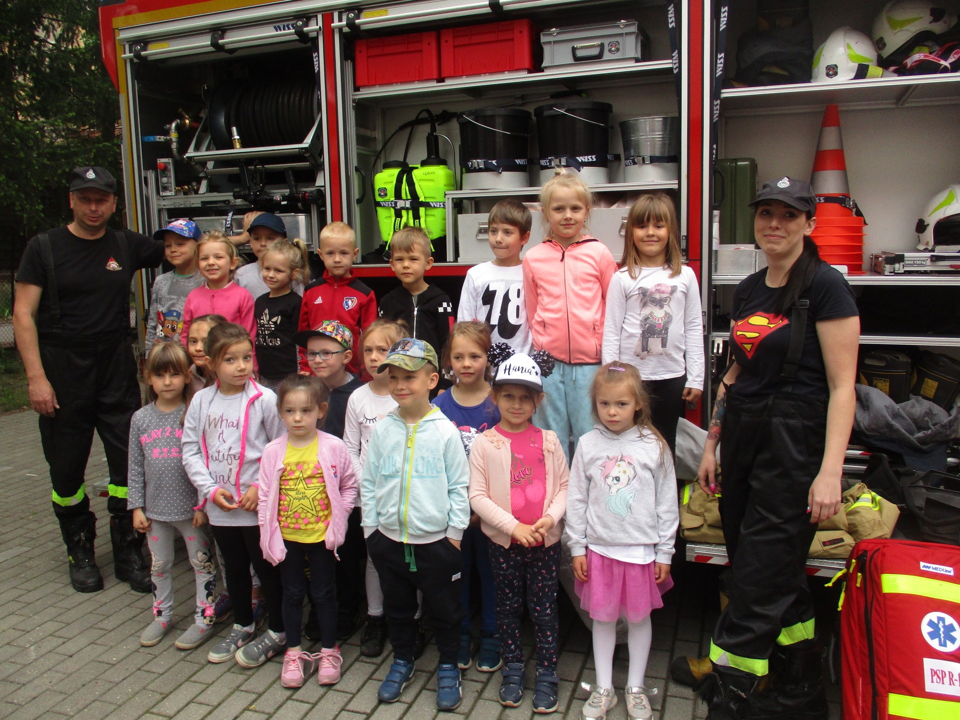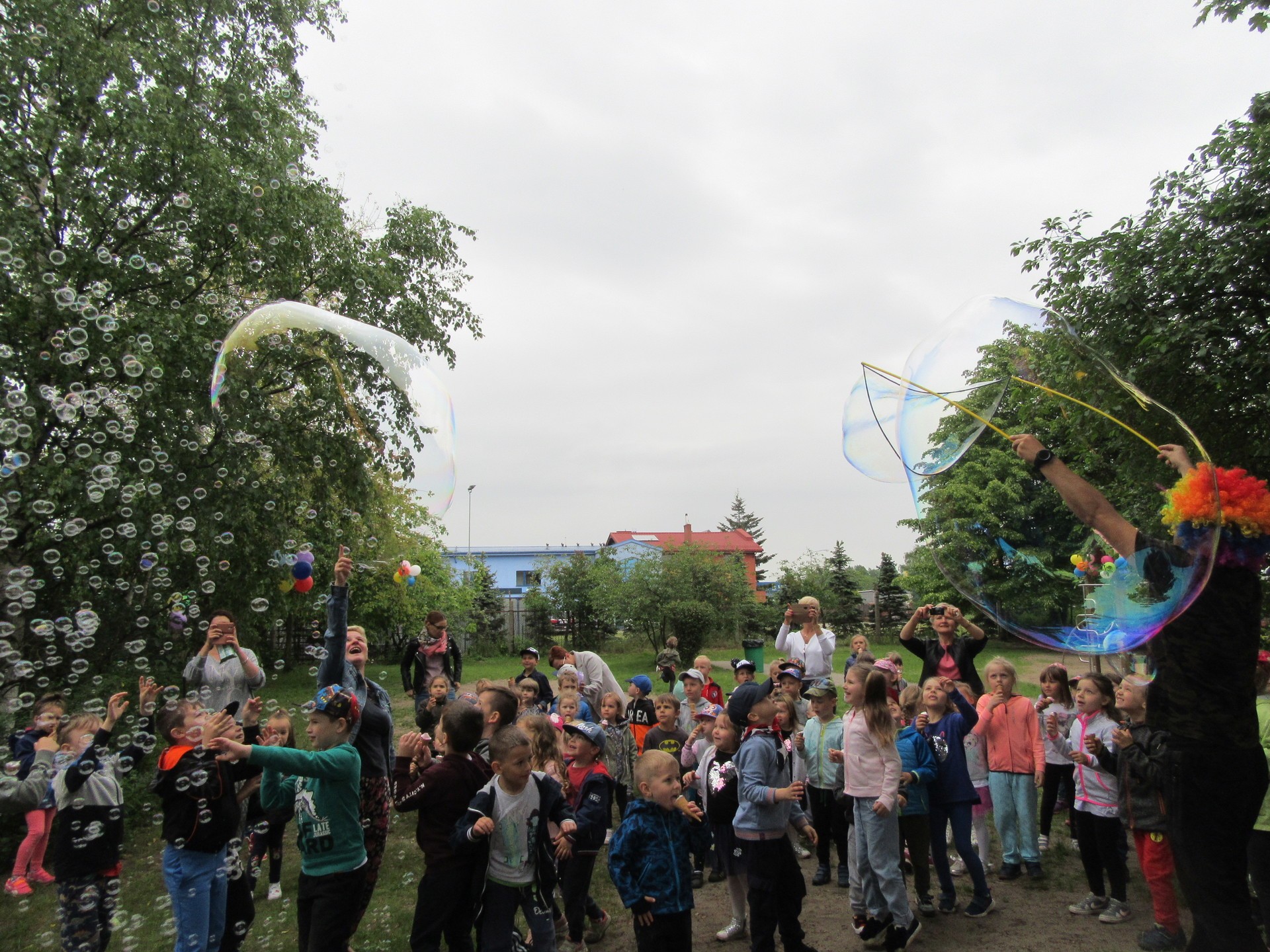 Dzień obfitował w liczne atrakcje. Na początek wóz strażacki , dzieci mogły obejrzeć go od środka a także zobaczyć jak działa wąż strażacki. Nasza Pani Dyrektor zamieniła się na chwilę w strażaka prezentując się w pełnym stroju strażackim. Tego dnia gościliśmy w naszej placówce animatora zabaw, który prowadził z dziećmi zabawy taneczne, tworzył wspaniałe bańki mydlane oraz różności z balonów. Dzieci malowały farbami na strechu oraz brały udział w zawodach sportowych. Nie zabrakło tego dnia słodkości, nasi milusińscy dostali lody oraz mogły częstować się pysznymi ciastami zrobionymi przez rodziców. Nie zabrakło też wesołych zabaw na świeżym powietrzu.