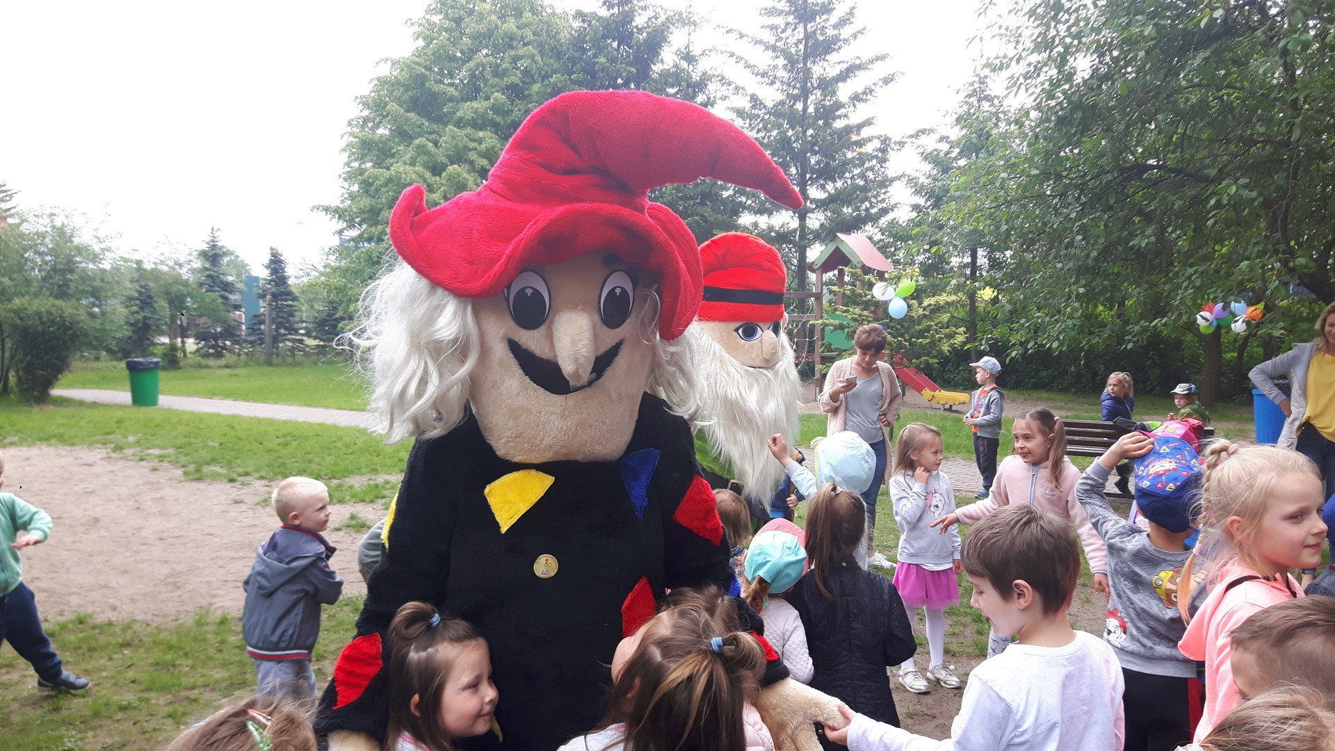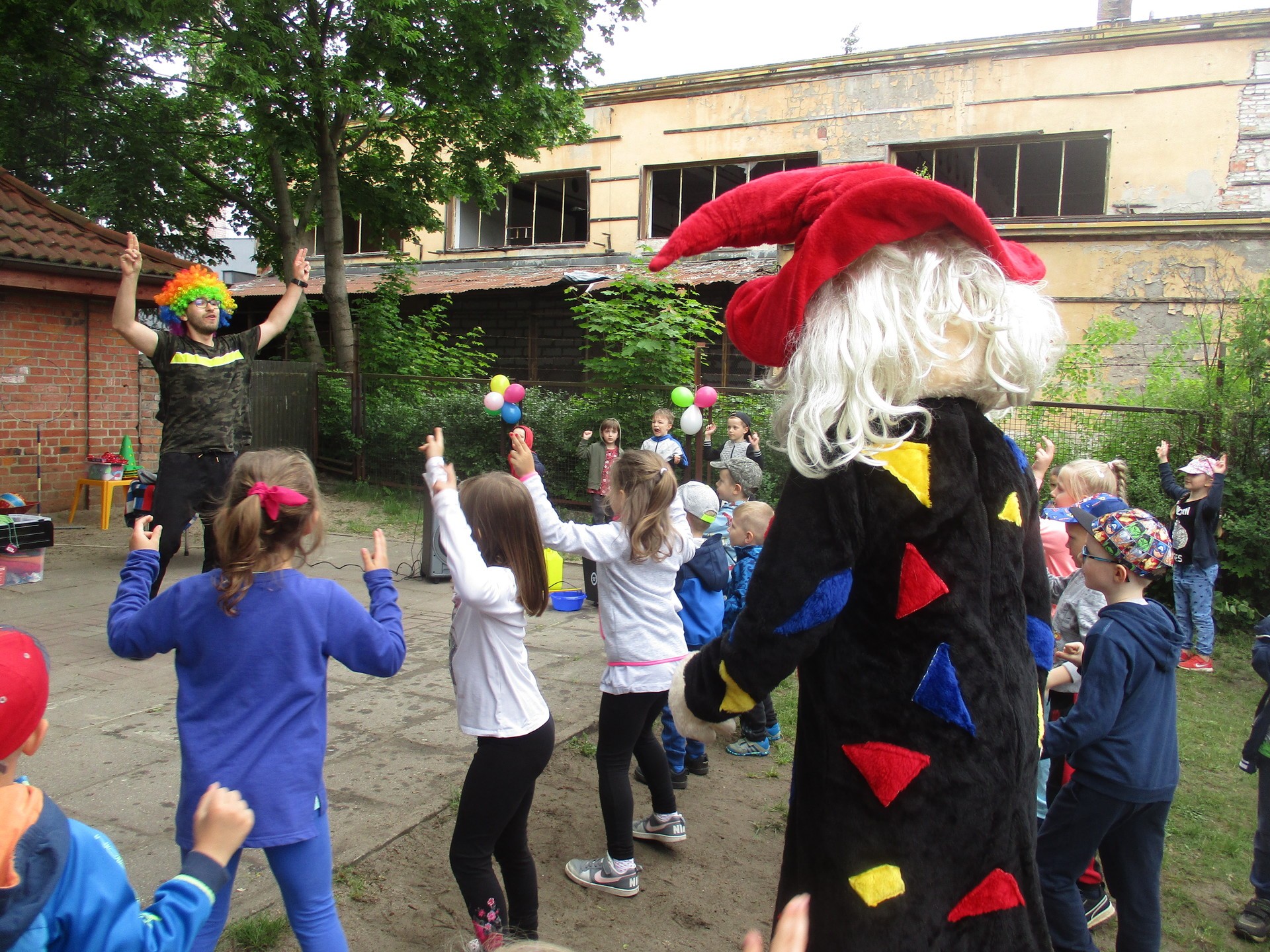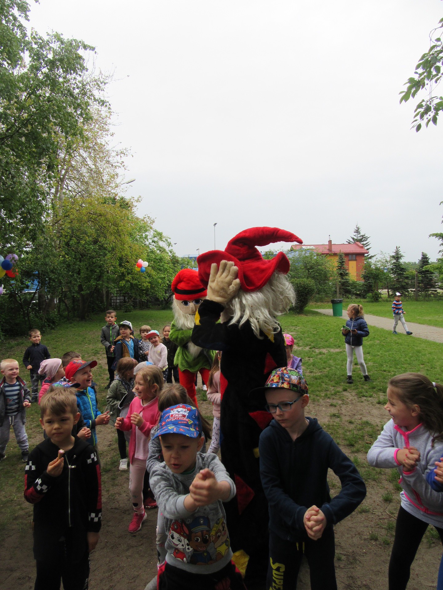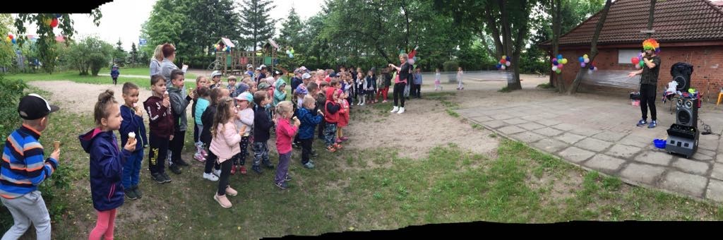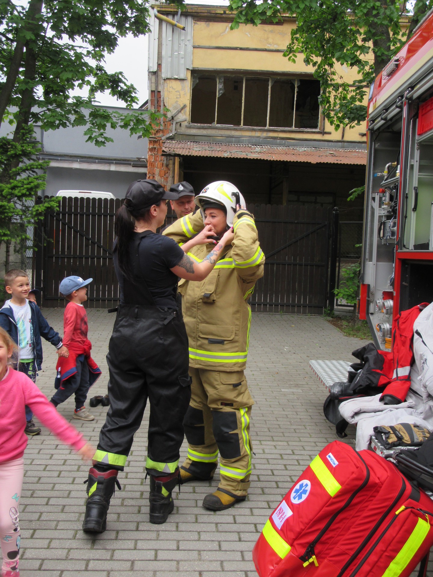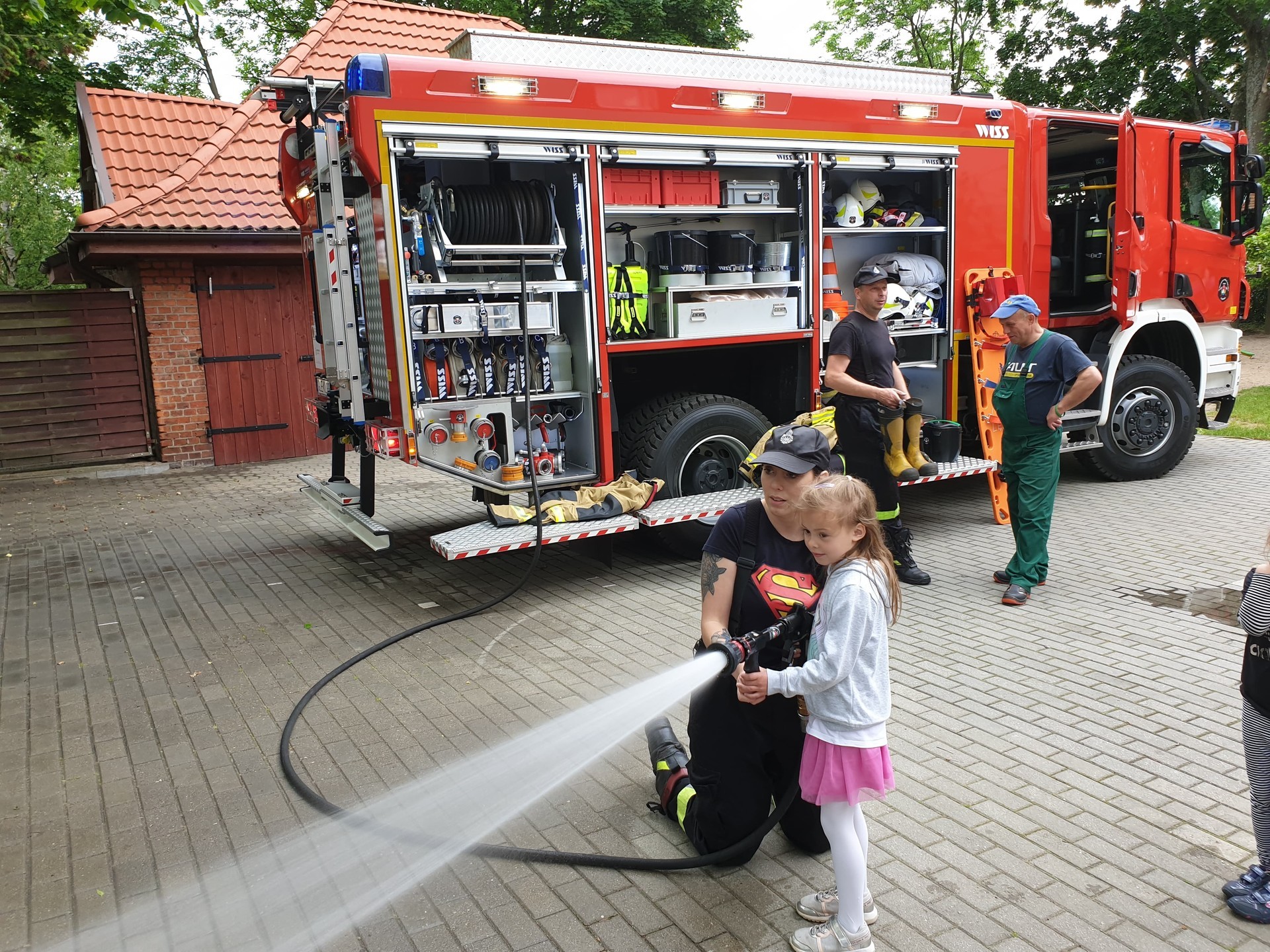 Dzień obfitował w liczne atrakcje. Na początek wóz strażacki , dzieci mogły obejrzeć go od środka a także zobaczyć jak działa wąż strażacki. Nasza Pani Dyrektor zamieniła się na chwilę w strażaka prezentując się w pełnym stroju strażackim. Tego dnia gościliśmy w naszej placówce animatora zabaw, który prowadził z dziećmi zabawy taneczne, tworzył wspaniałe bańki mydlane oraz różności z balonów. Dzieci malowały farbami na strechu oraz brały udział w zawodach sportowych. Nie zabrakło tego dnia słodkości, nasi milusińscy dostali lody oraz mogły częstować się pysznymi ciastami zrobionymi przez rodziców. Nie zabrakło też wesołych zabaw na świeżym powietrzu.