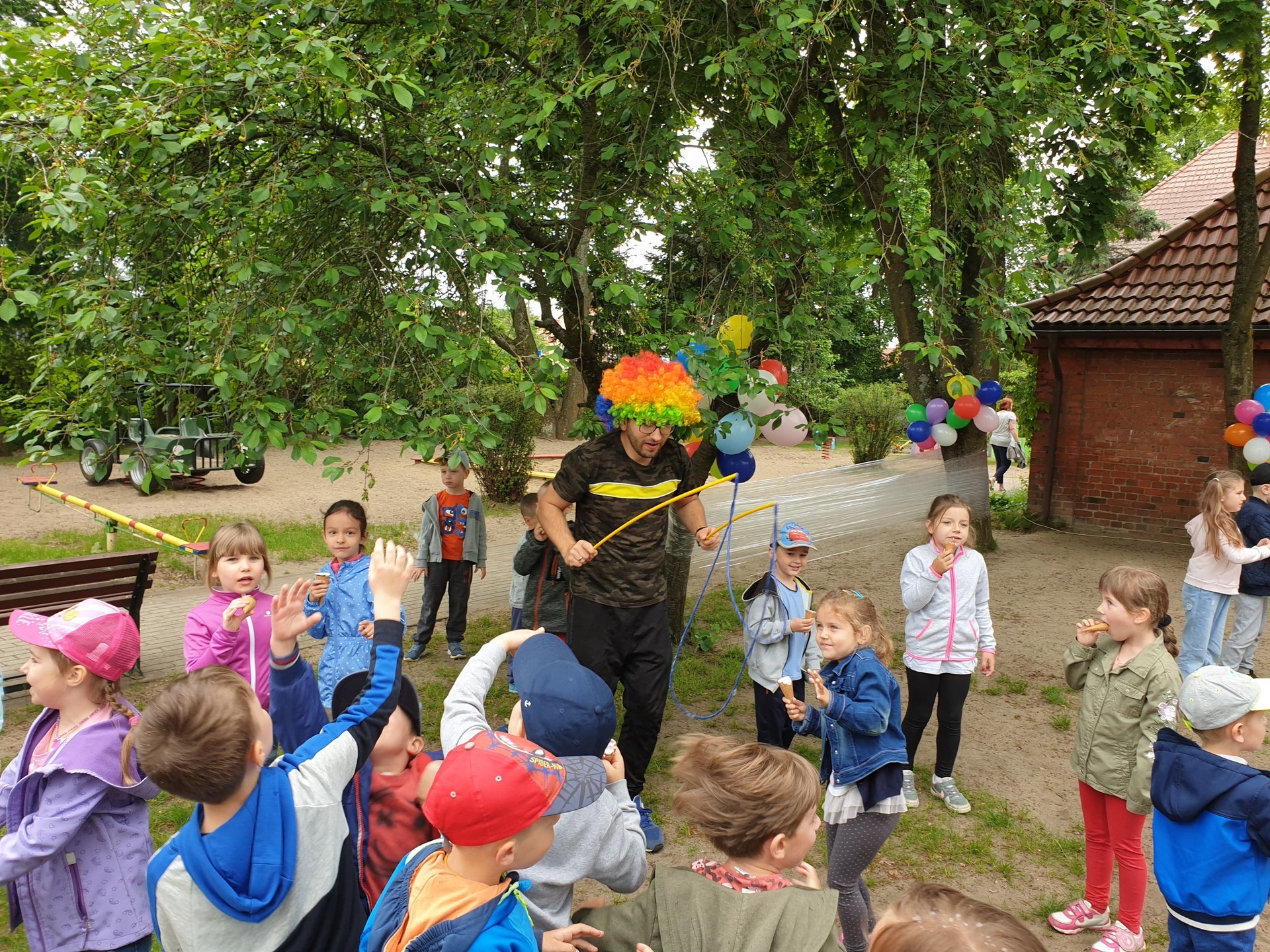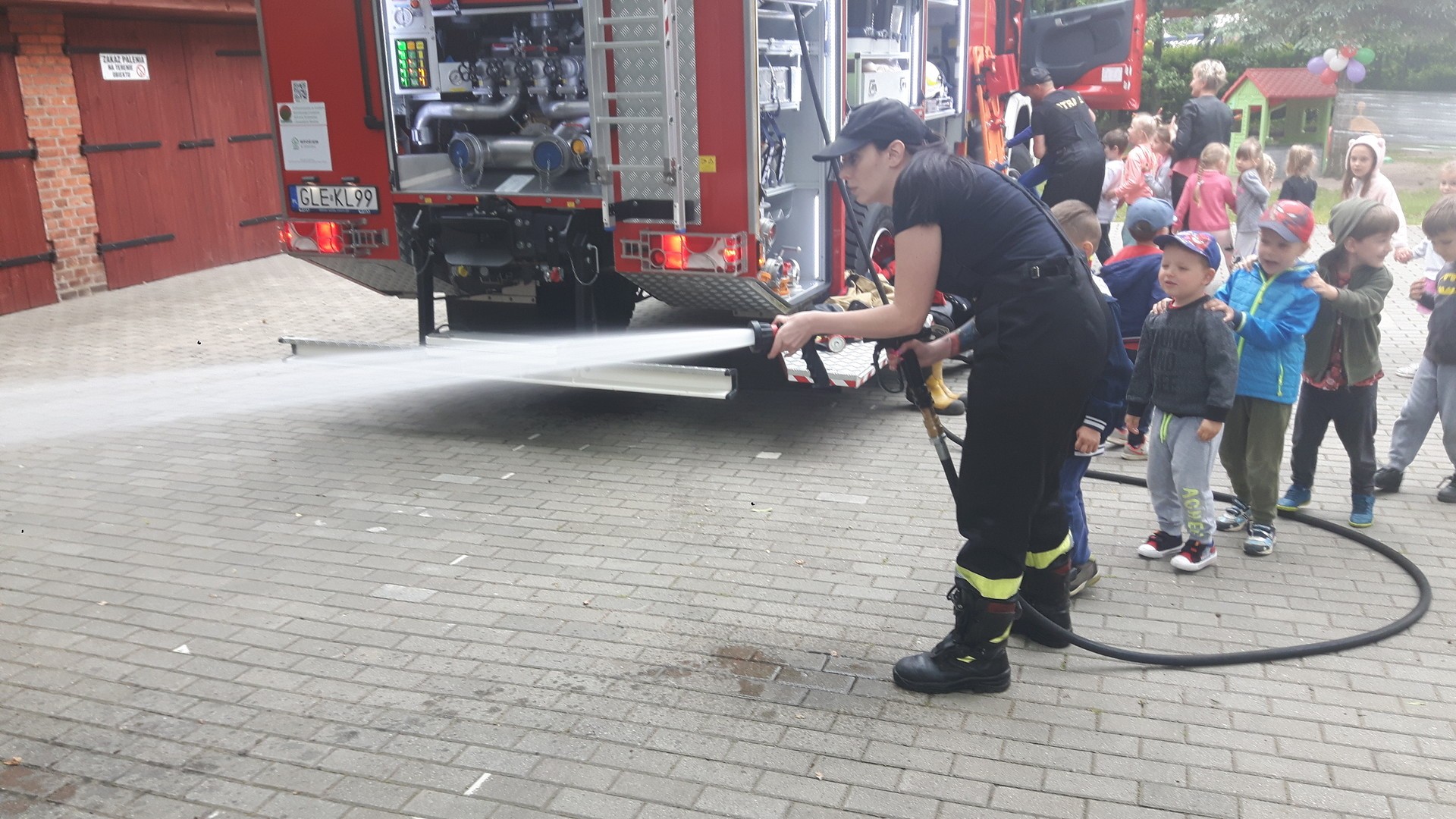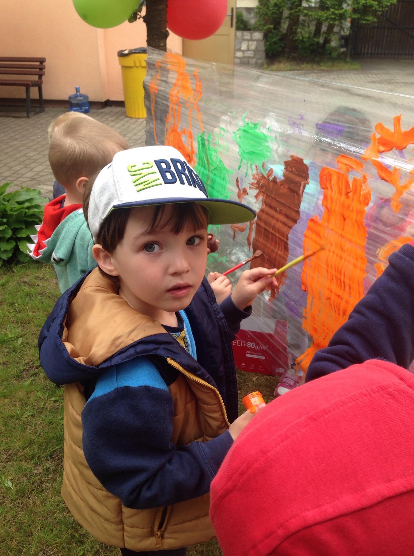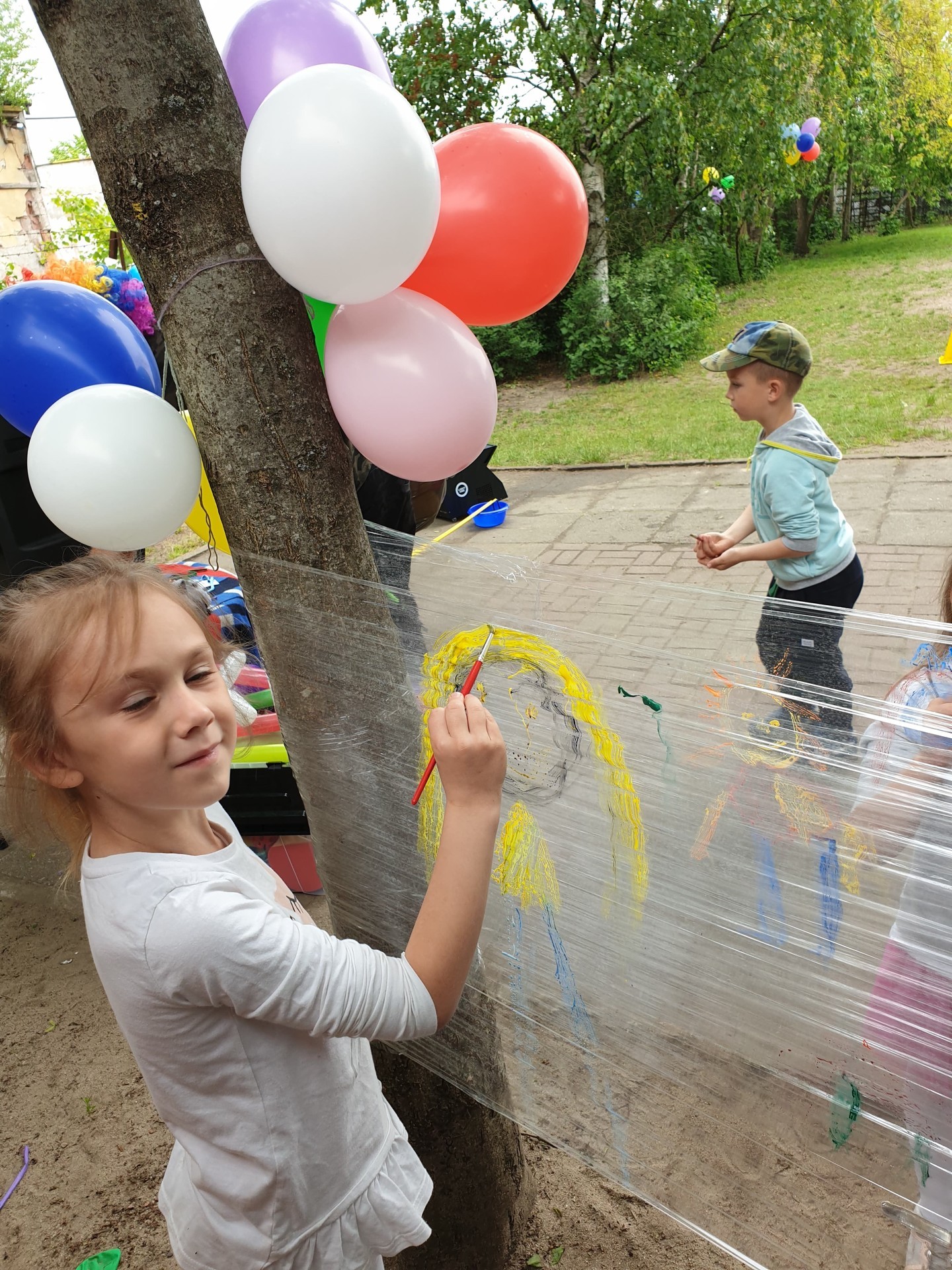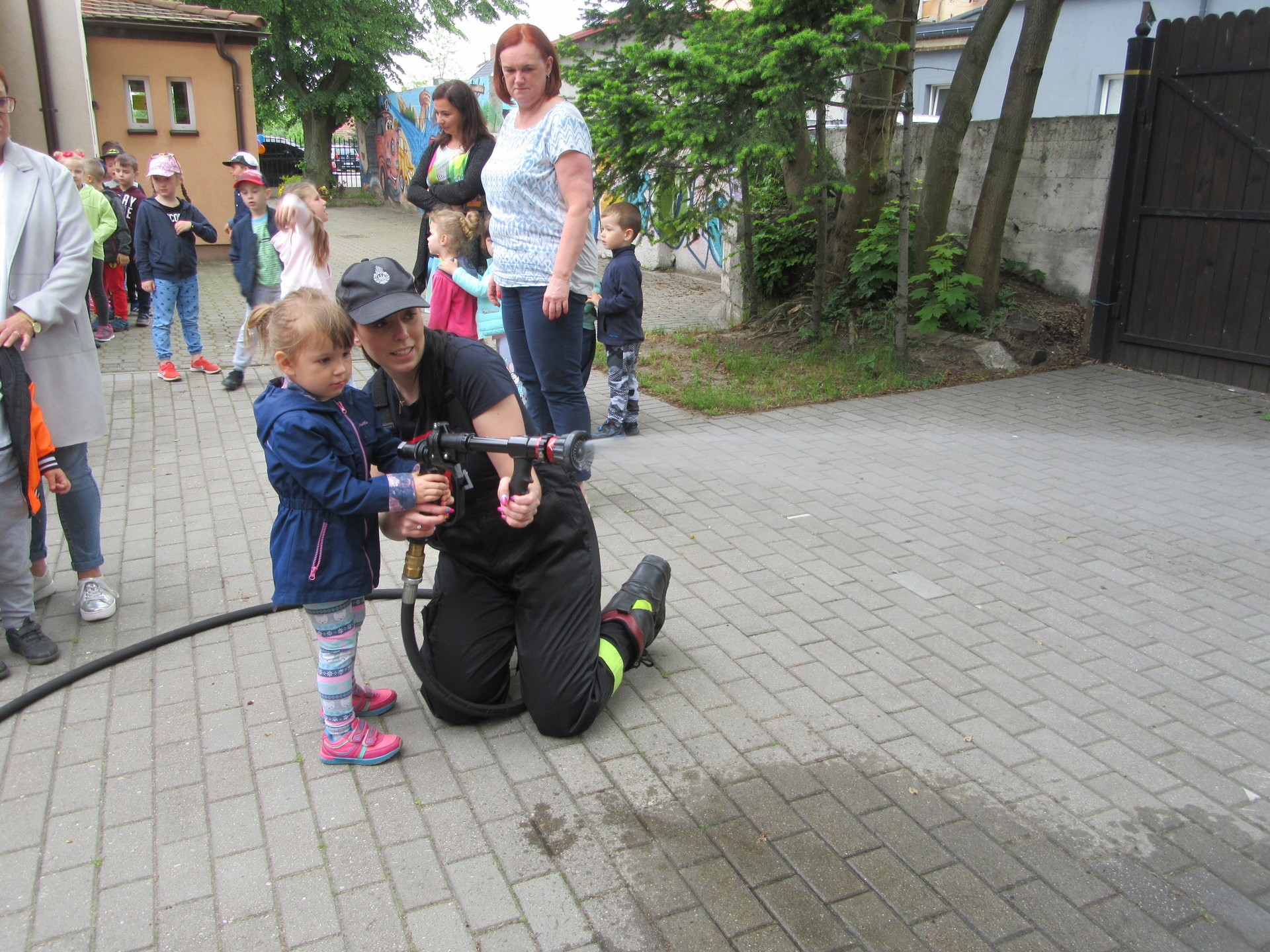 Dzień obfitował w liczne atrakcje. Na początek wóz strażacki , dzieci mogły obejrzeć go od środka a także zobaczyć jak działa wąż strażacki. Nasza Pani Dyrektor zamieniła się na chwilę w strażaka prezentując się w pełnym stroju strażackim. Tego dnia gościliśmy w naszej placówce animatora zabaw, który prowadził z dziećmi zabawy taneczne, tworzył wspaniałe bańki mydlane oraz różności z balonów. Dzieci malowały farbami na strechu oraz brały udział w zawodach sportowych. Nie zabrakło tego dnia słodkości, nasi milusińscy dostali lody oraz mogły częstować się pysznymi ciastami zrobionymi przez rodziców. Nie zabrakło też wesołych zabaw na świeżym powietrzu.