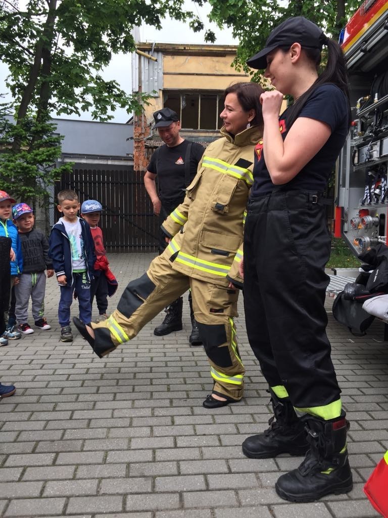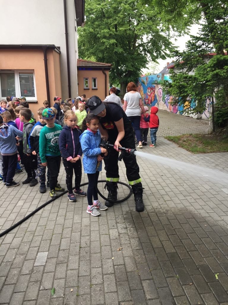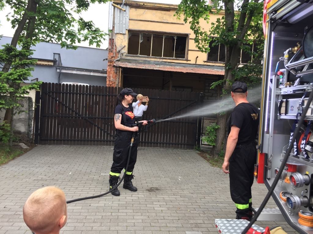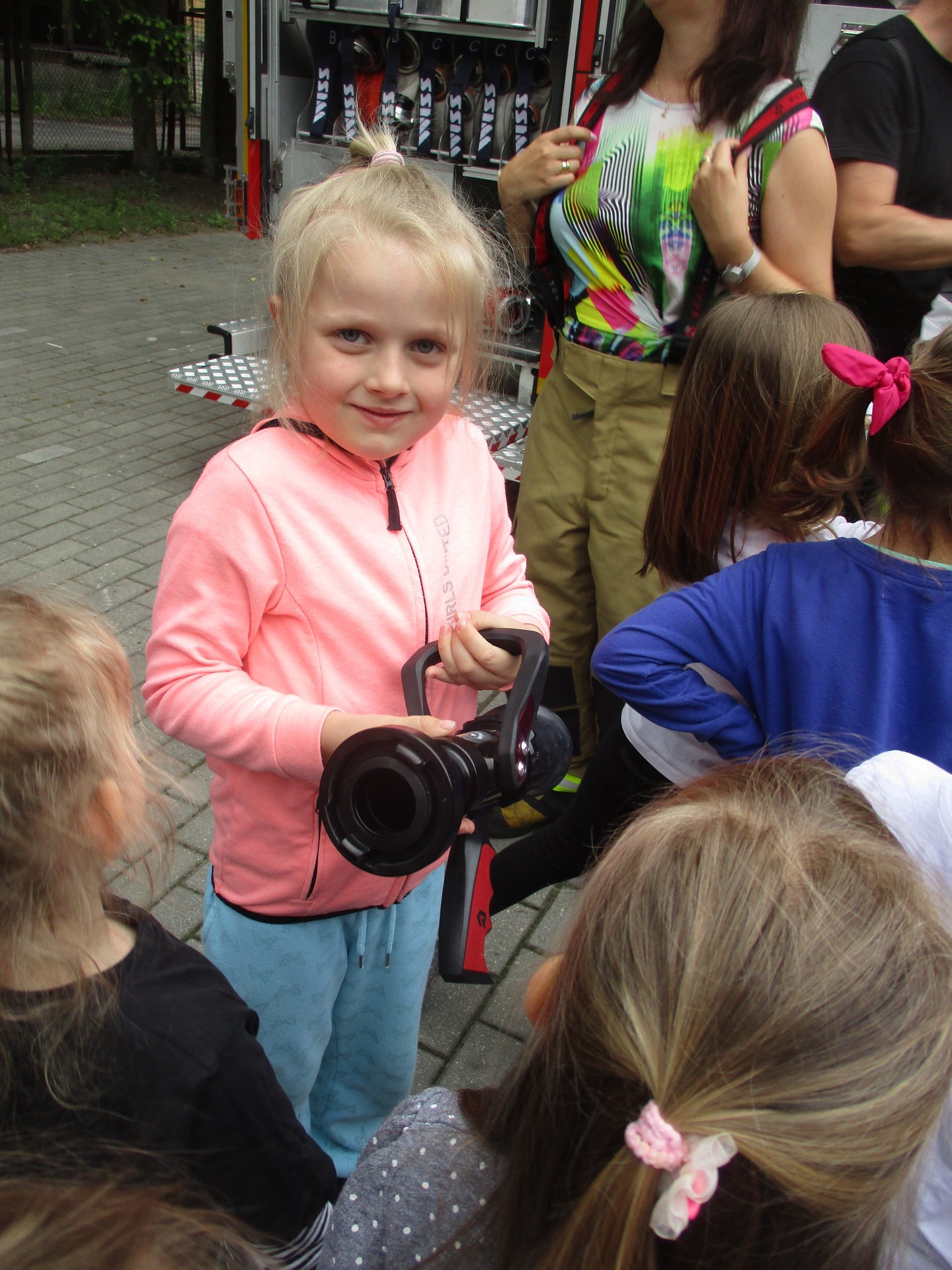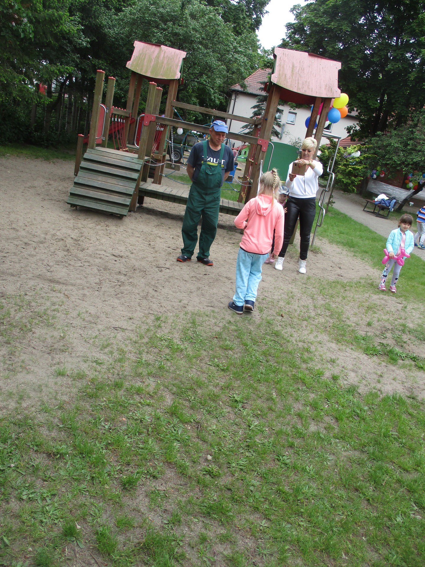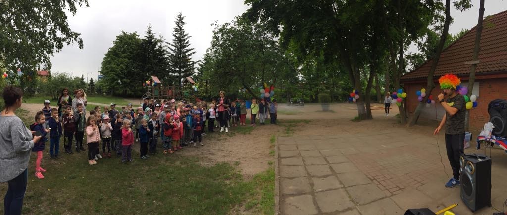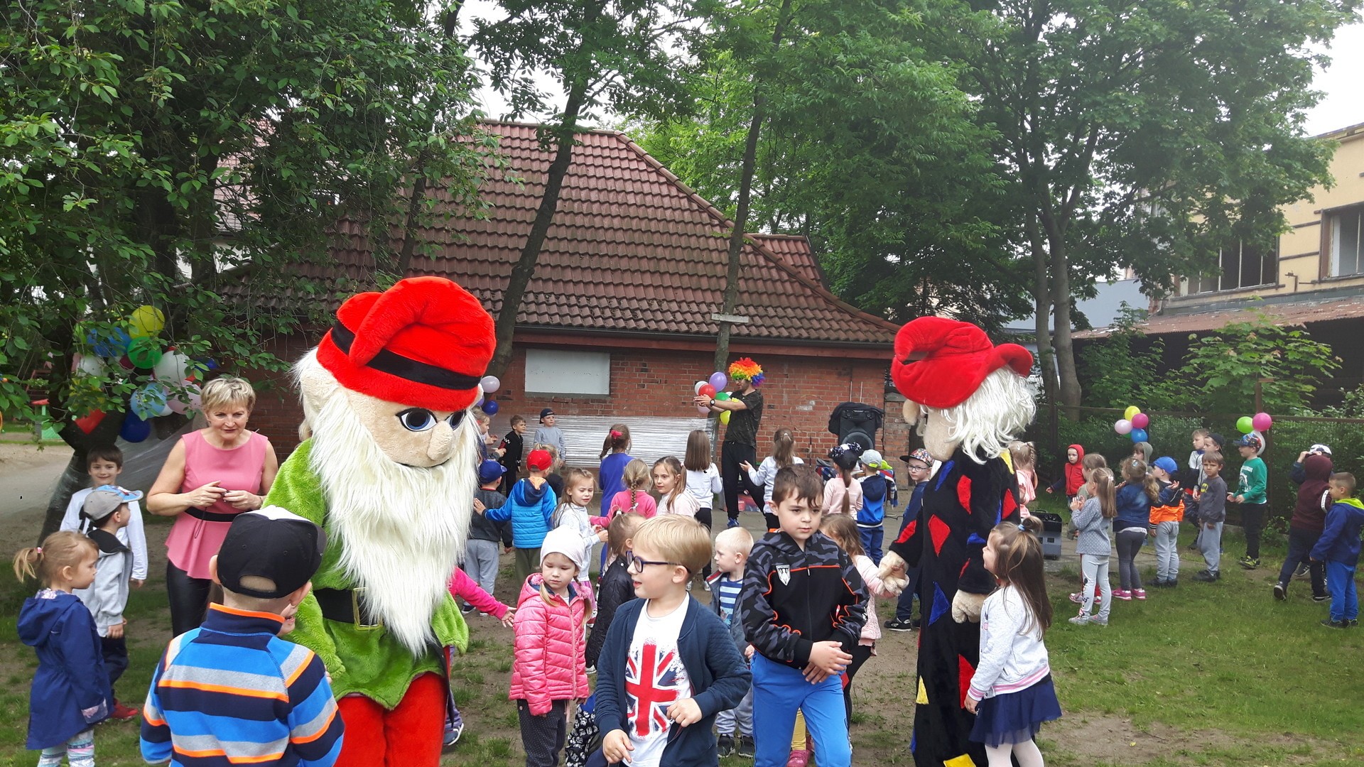 Dzień obfitował w liczne atrakcje. Na początek wóz strażacki , dzieci mogły obejrzeć go od środka a także zobaczyć jak działa wąż strażacki. Nasza Pani Dyrektor zamieniła się na chwilę w strażaka prezentując się w pełnym stroju strażackim. Tego dnia gościliśmy w naszej placówce animatora zabaw, który prowadził z dziećmi zabawy taneczne, tworzył wspaniałe bańki mydlane oraz różności z balonów. Dzieci malowały farbami na strechu oraz brały udział w zawodach sportowych. Nie zabrakło tego dnia słodkości, nasi milusińscy dostali lody oraz mogły częstować się pysznymi ciastami zrobionymi przez rodziców. Nie zabrakło też wesołych zabaw na świeżym powietrzu.
