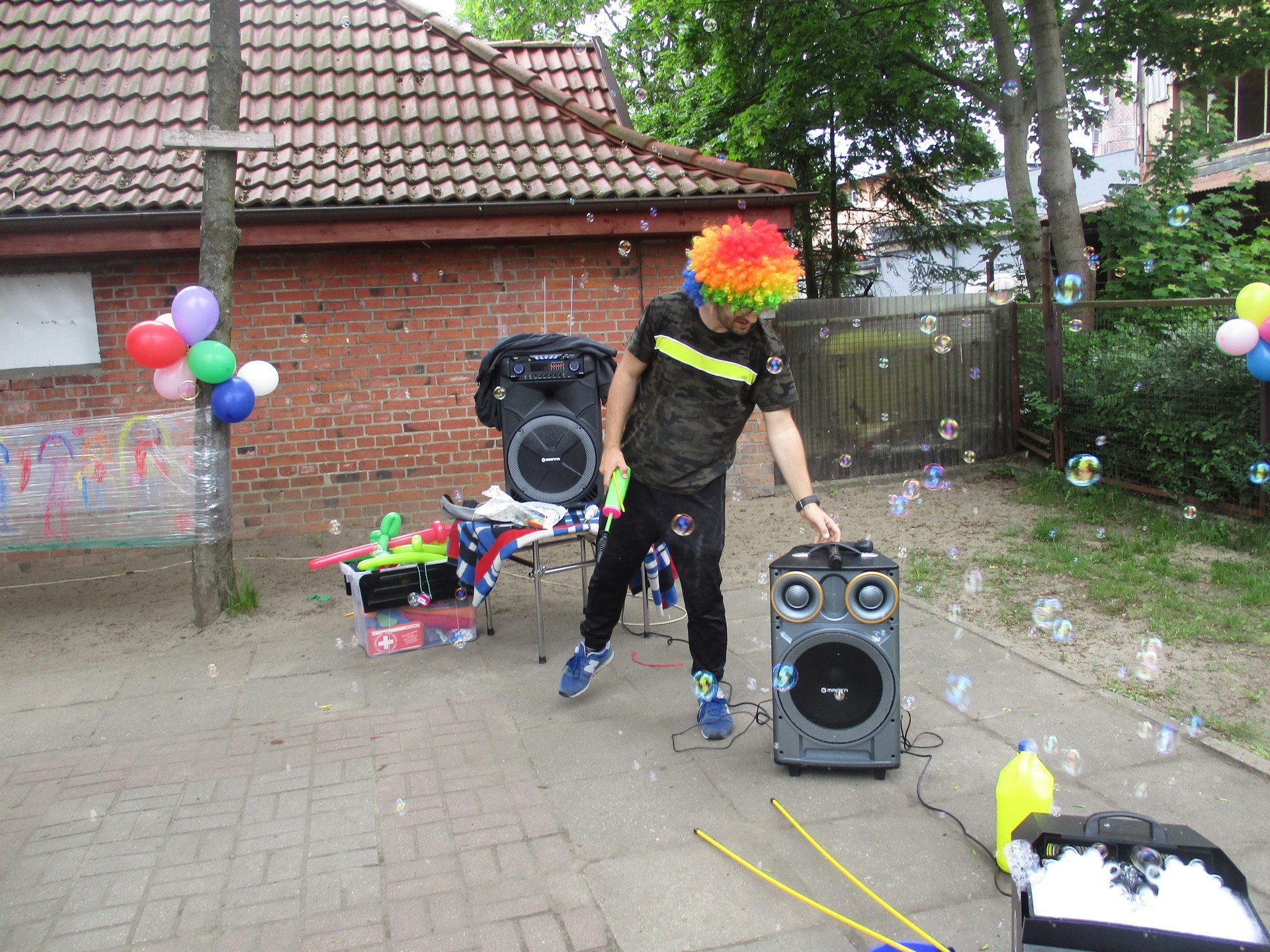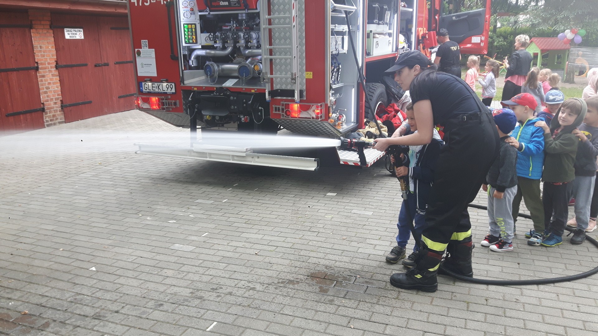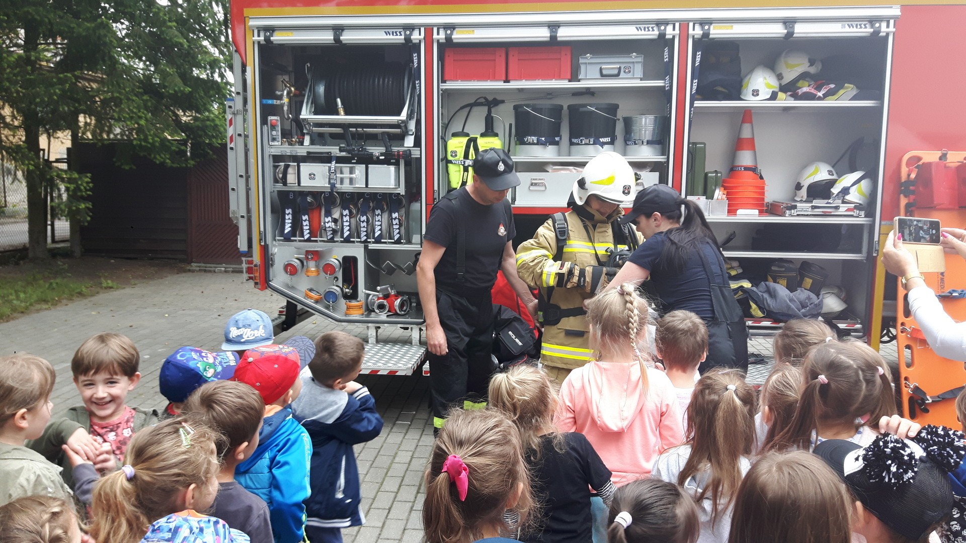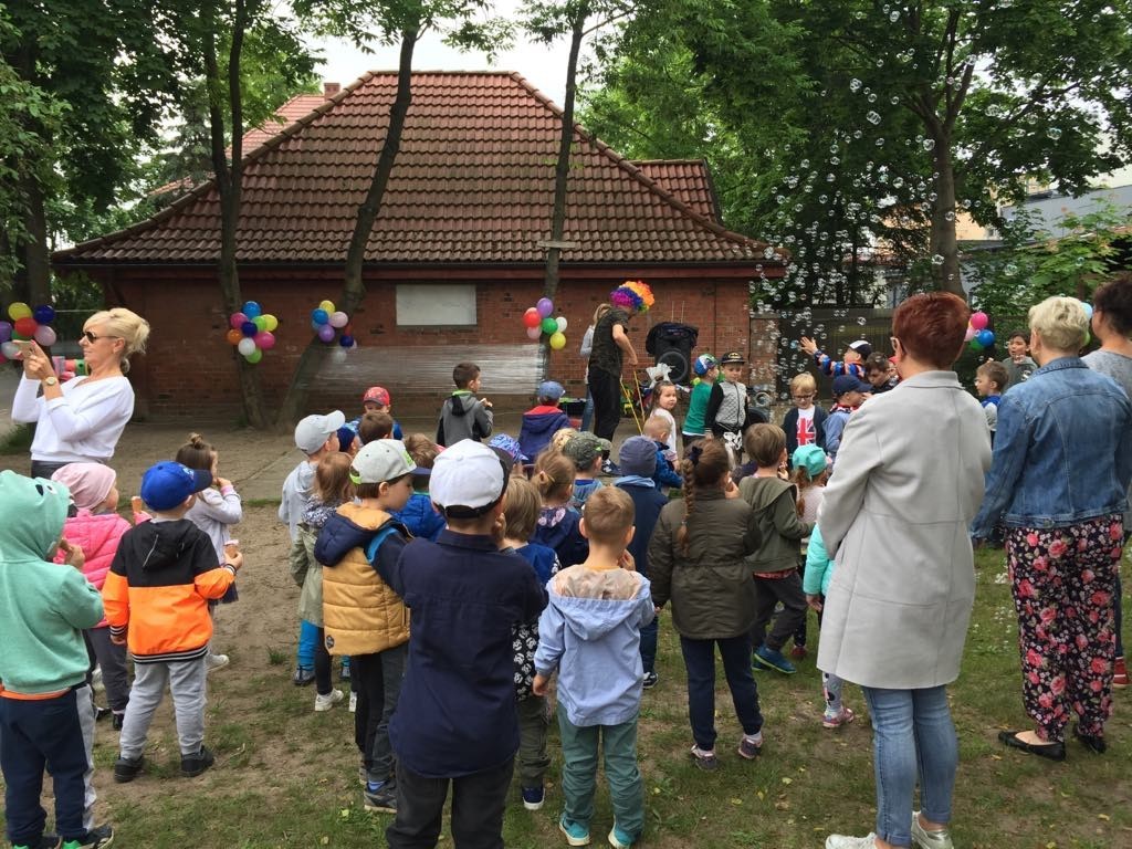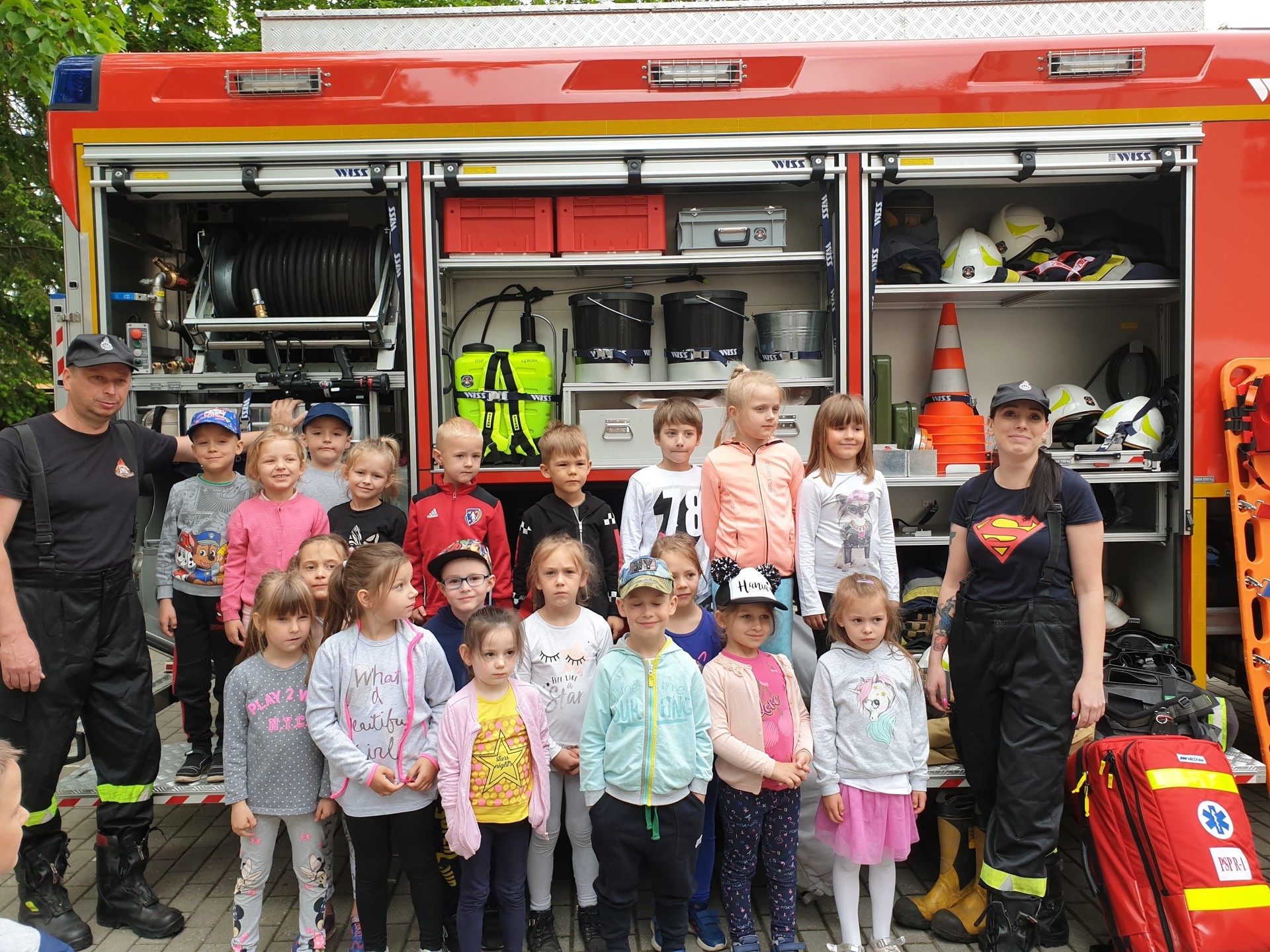 Dzień obfitował w liczne atrakcje. Na początek wóz strażacki , dzieci mogły obejrzeć go od środka a także zobaczyć jak działa wąż strażacki. Nasza Pani Dyrektor zamieniła się na chwilę w strażaka prezentując się w pełnym stroju strażackim. Tego dnia gościliśmy w naszej placówce animatora zabaw, który prowadził z dziećmi zabawy taneczne, tworzył wspaniałe bańki mydlane oraz różności z balonów. Dzieci malowały farbami na strechu oraz brały udział w zawodach sportowych. Nie zabrakło tego dnia słodkości, nasi milusińscy dostali lody oraz mogły częstować się pysznymi ciastami zrobionymi przez rodziców. Nie zabrakło też wesołych zabaw na świeżym powietrzu.
