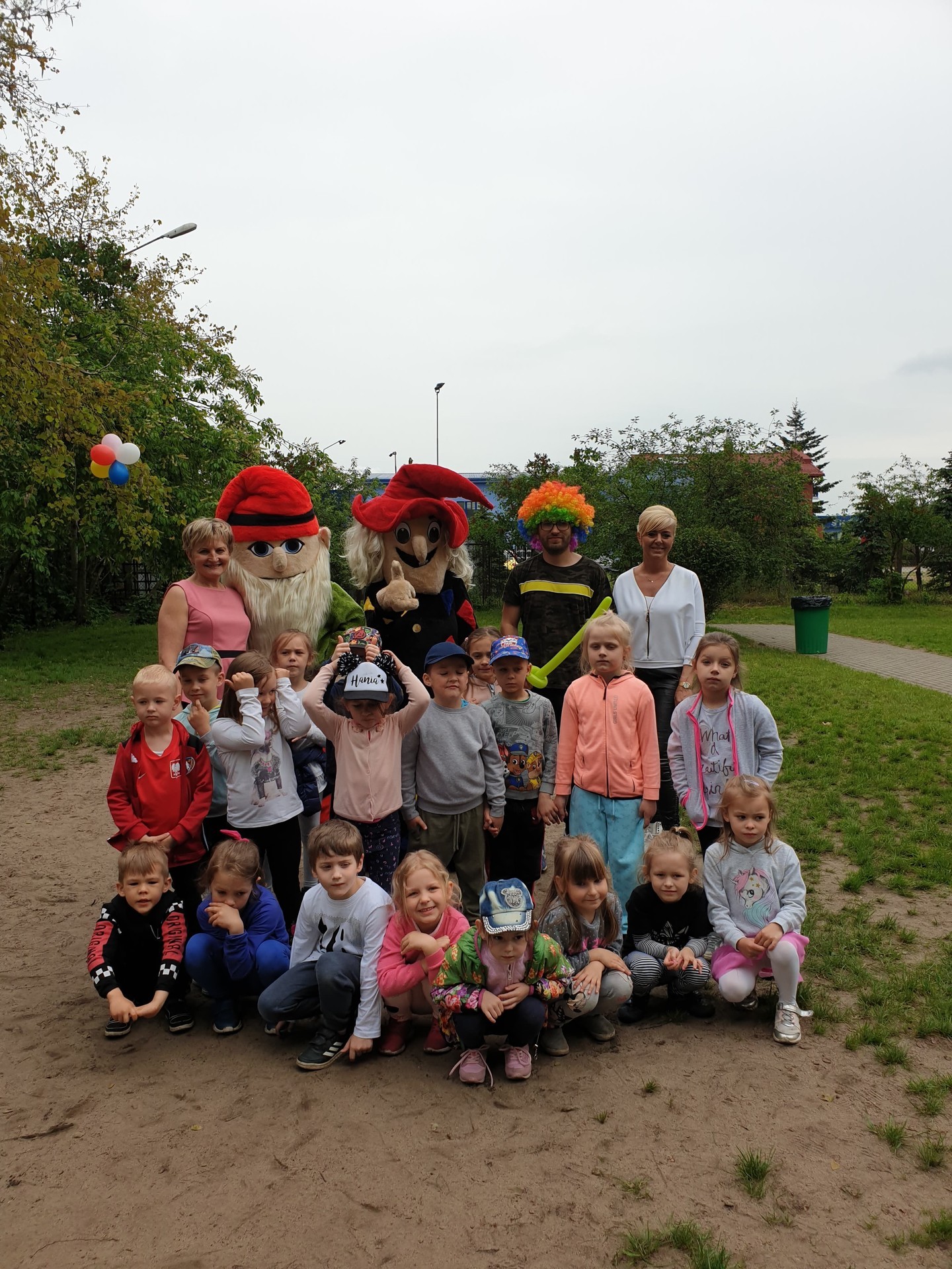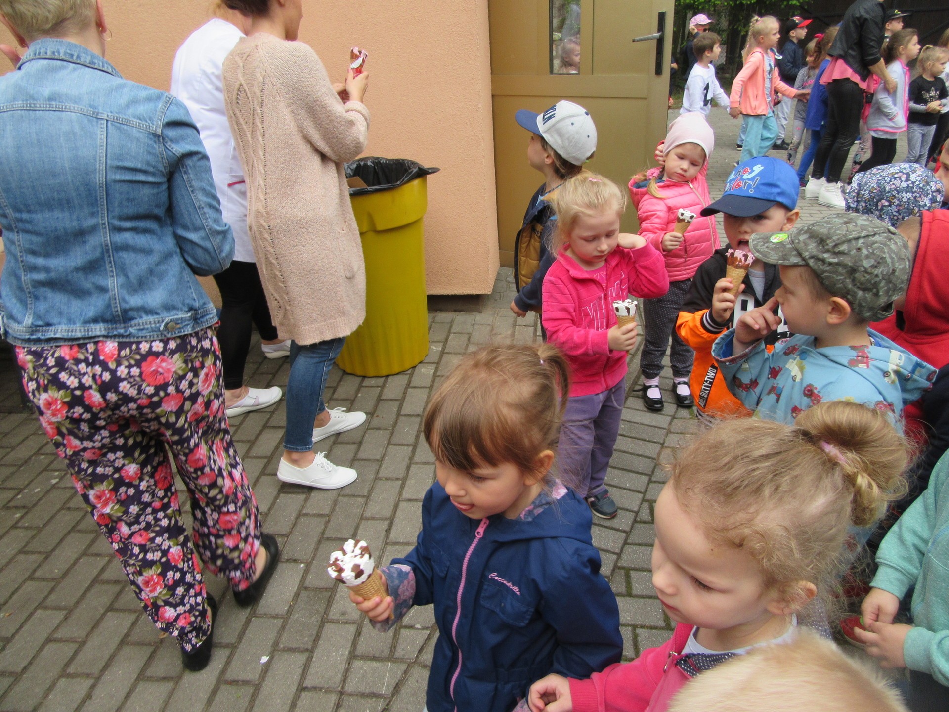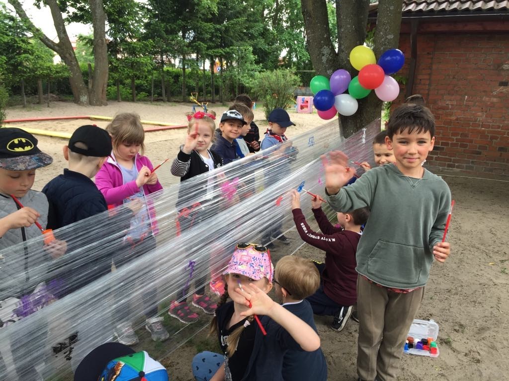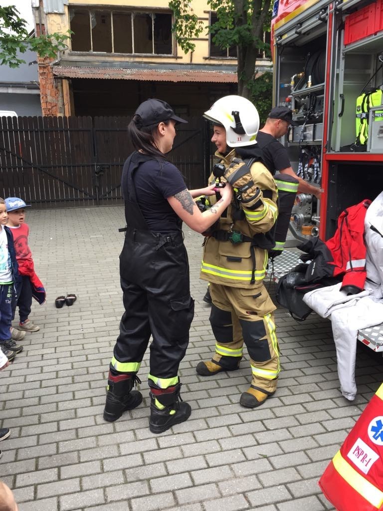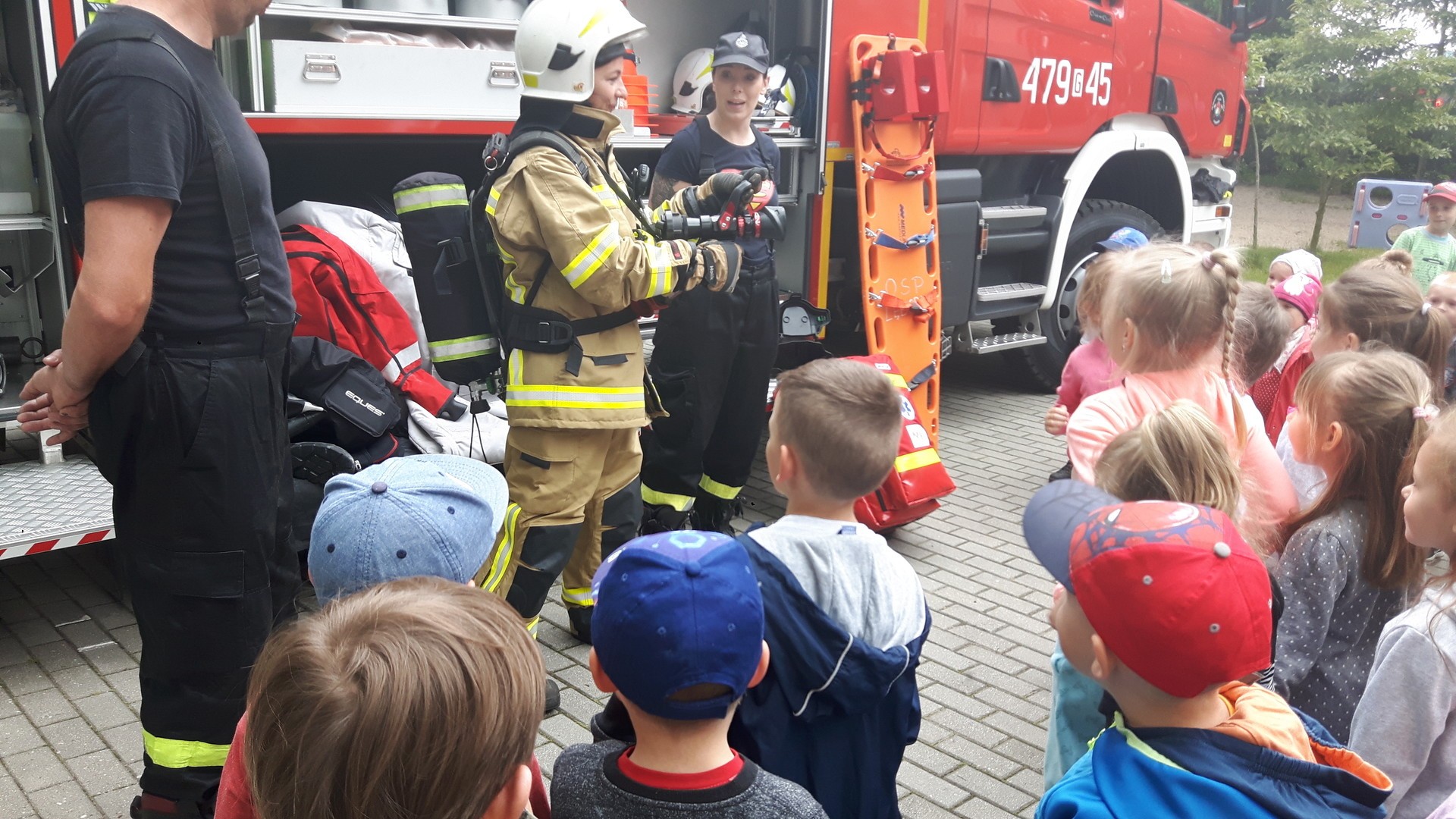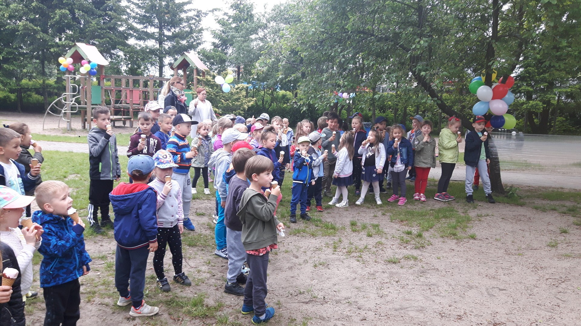 Dzień obfitował w liczne atrakcje. Na początek wóz strażacki , dzieci mogły obejrzeć go od środka a także zobaczyć jak działa wąż strażacki. Nasza Pani Dyrektor zamieniła się na chwilę w strażaka prezentując się w pełnym stroju strażackim. Tego dnia gościliśmy w naszej placówce animatora zabaw, który prowadził z dziećmi zabawy taneczne, tworzył wspaniałe bańki mydlane oraz różności z balonów. Dzieci malowały farbami na strechu oraz brały udział w zawodach sportowych. Nie zabrakło tego dnia słodkości, nasi milusińscy dostali lody oraz mogły częstować się pysznymi ciastami zrobionymi przez rodziców. Nie zabrakło też wesołych zabaw na świeżym powietrzu.