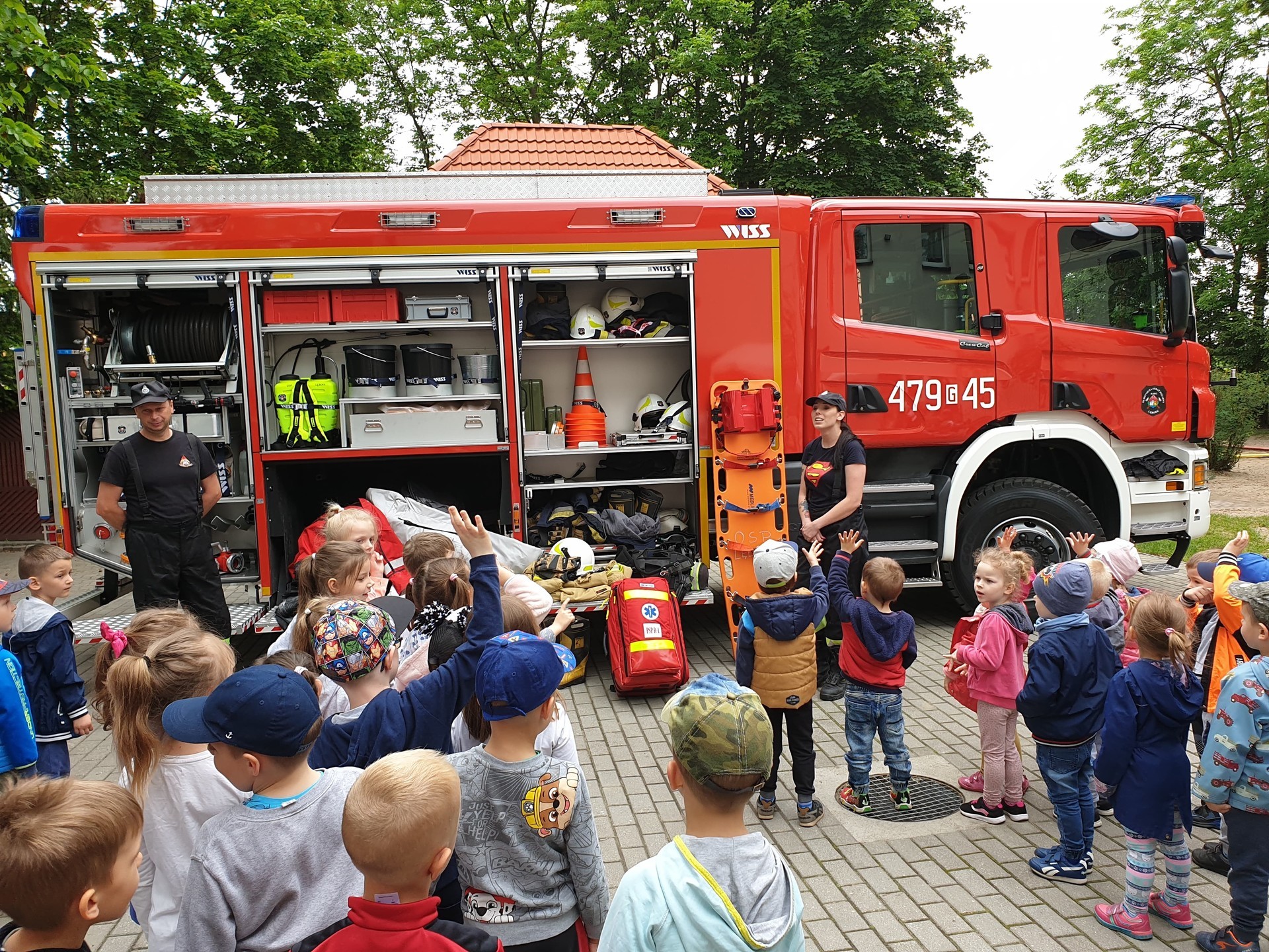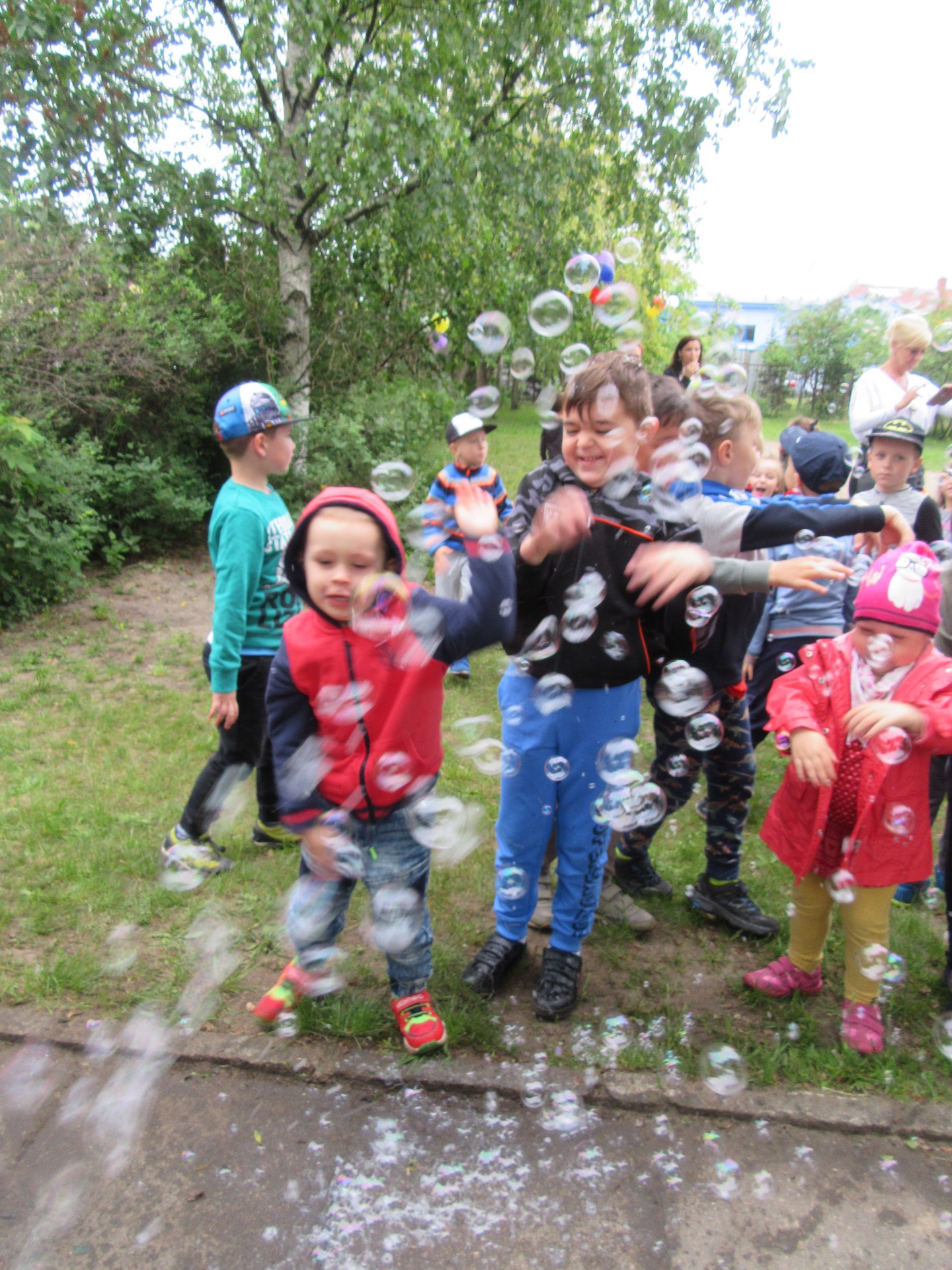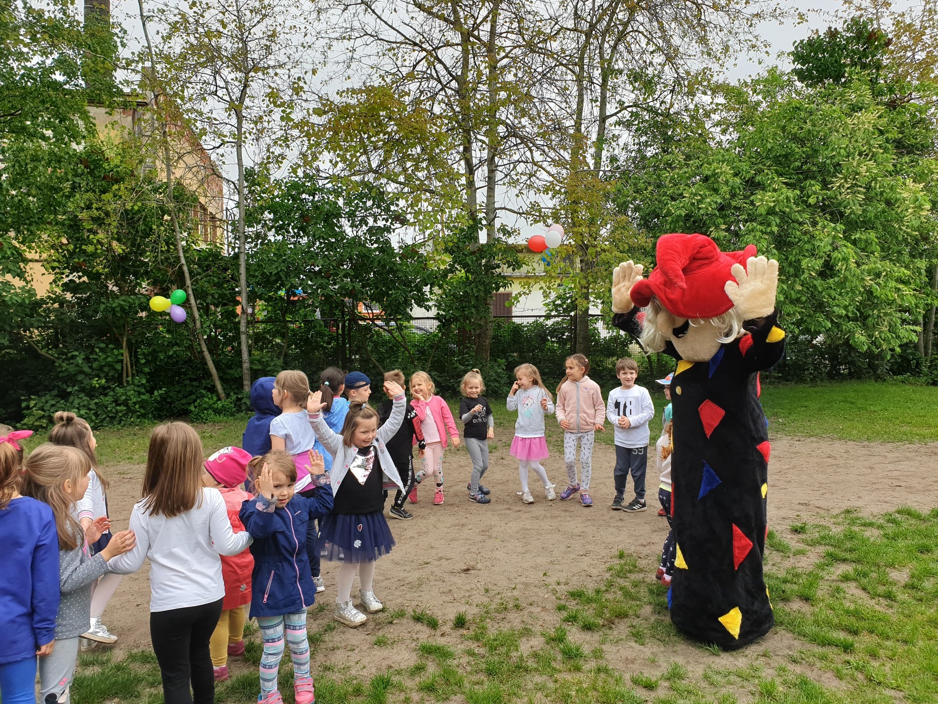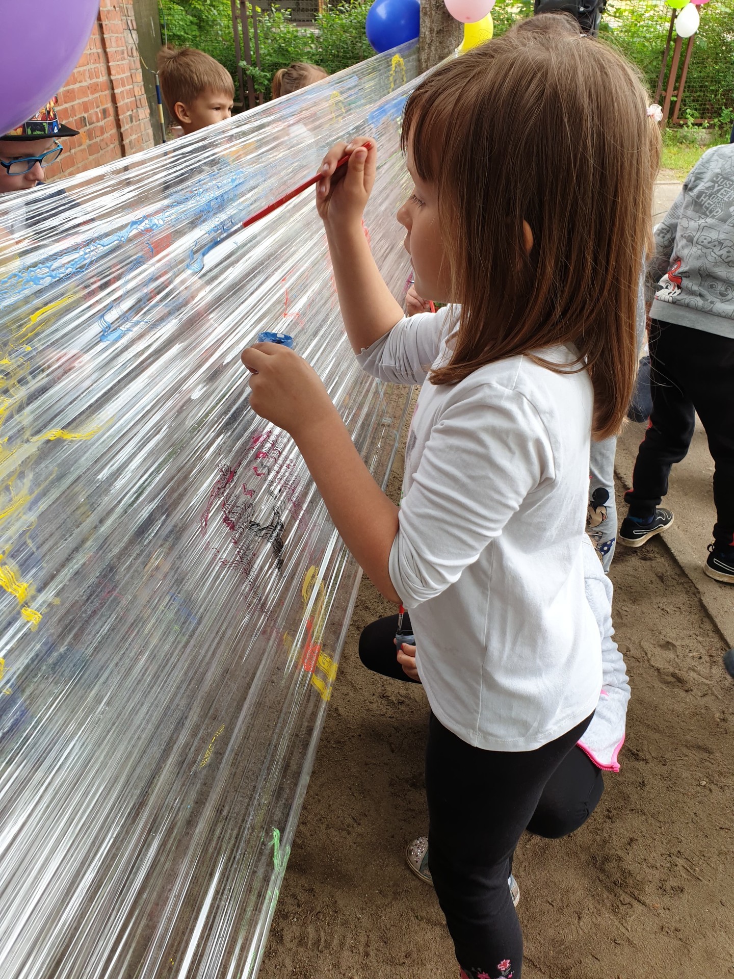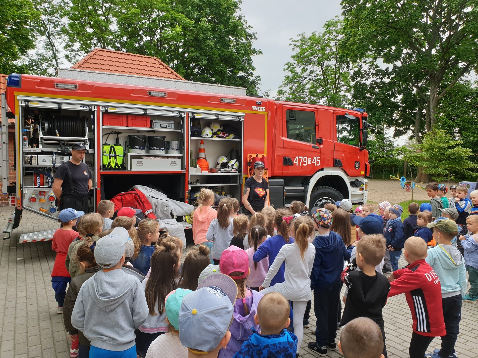 Dzień obfitował w liczne atrakcje. Na początek wóz strażacki , dzieci mogły obejrzeć go od środka a także zobaczyć jak działa wąż strażacki. Nasza Pani Dyrektor zamieniła się na chwilę w strażaka prezentując się w pełnym stroju strażackim. Tego dnia gościliśmy w naszej placówce animatora zabaw, który prowadził z dziećmi zabawy taneczne, tworzył wspaniałe bańki mydlane oraz różności z balonów. Dzieci malowały farbami na strechu oraz brały udział w zawodach sportowych. Nie zabrakło tego dnia słodkości, nasi milusińscy dostali lody oraz mogły częstować się pysznymi ciastami zrobionymi przez rodziców. Nie zabrakło też wesołych zabaw na świeżym powietrzu.