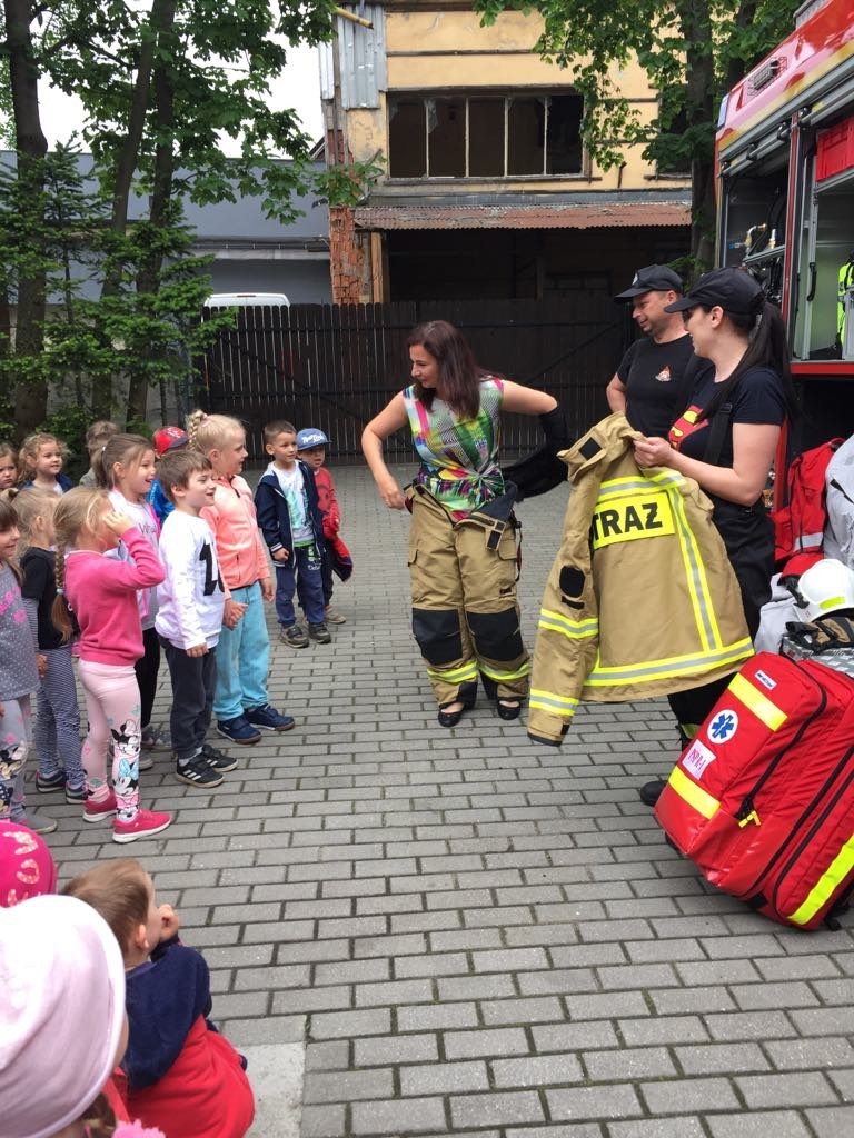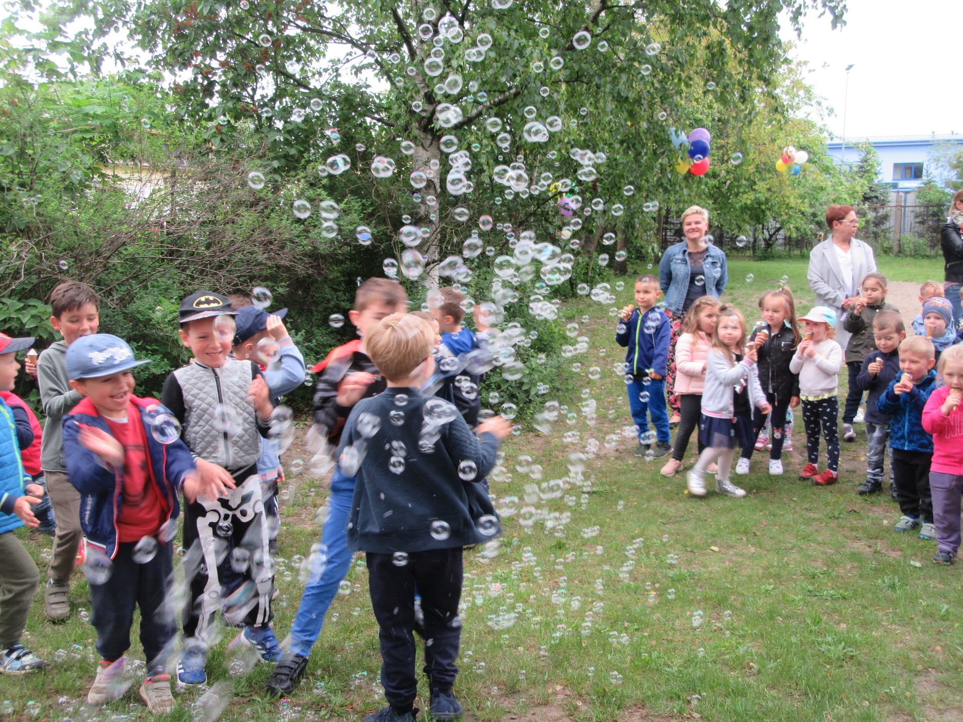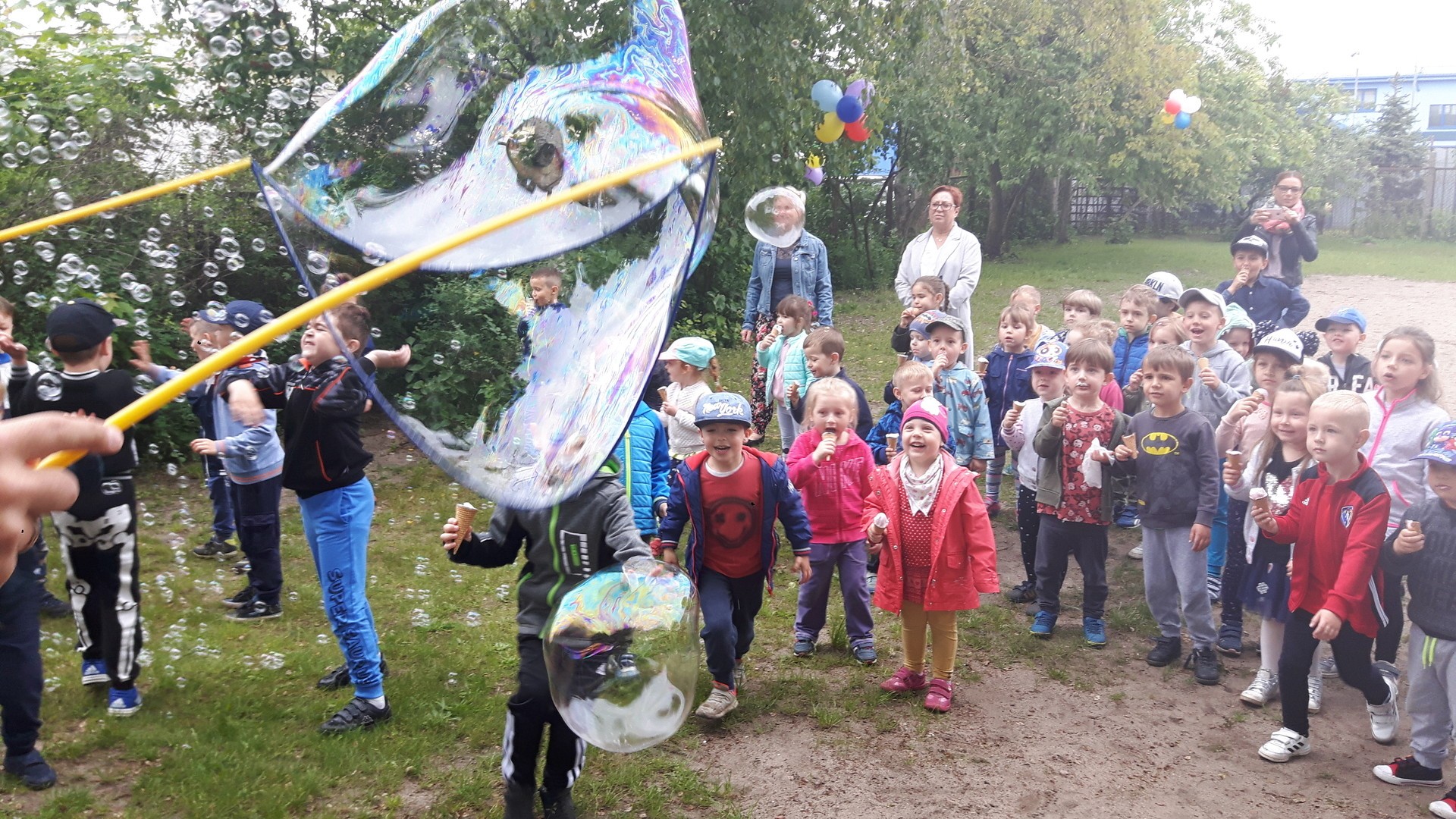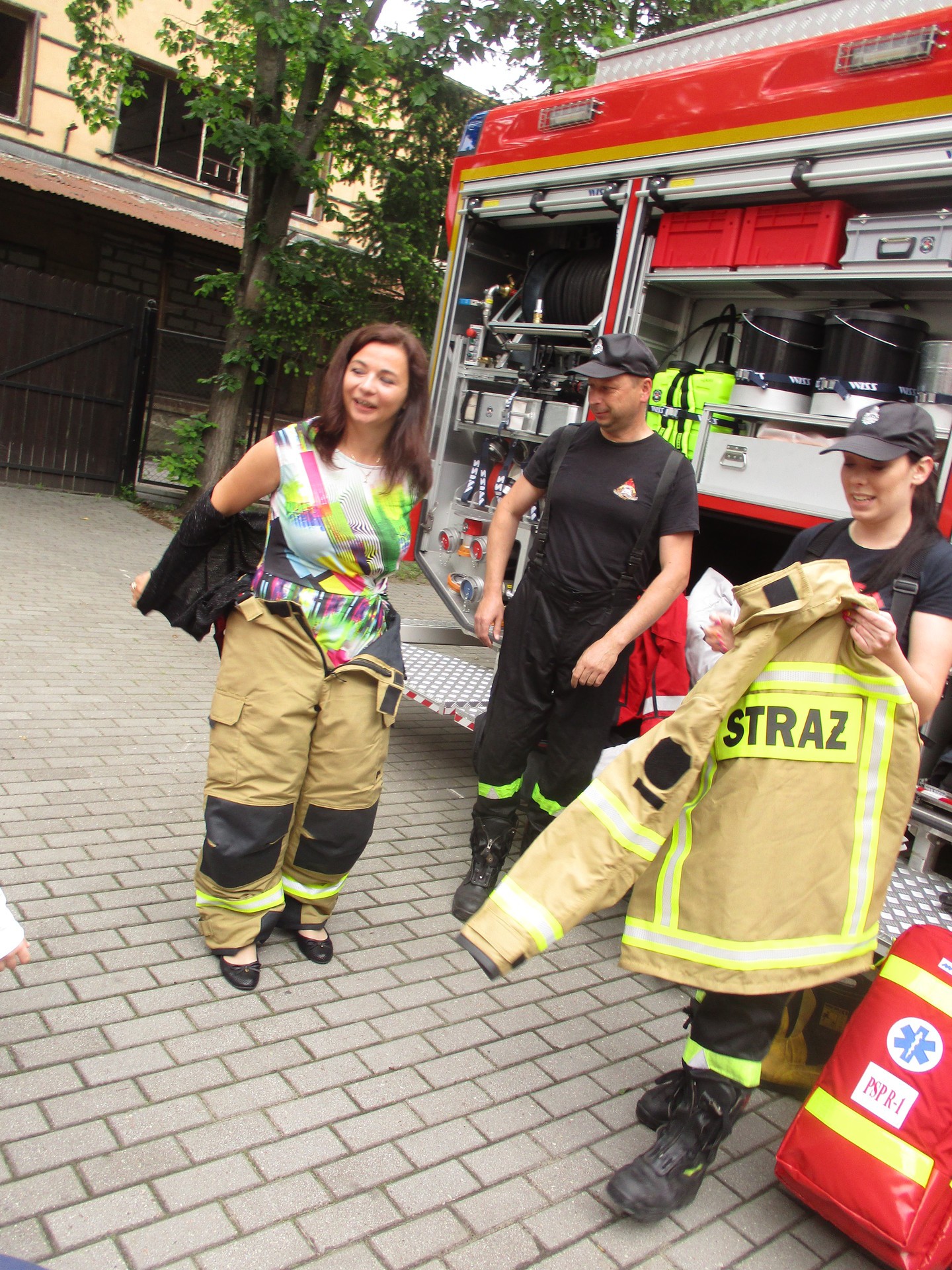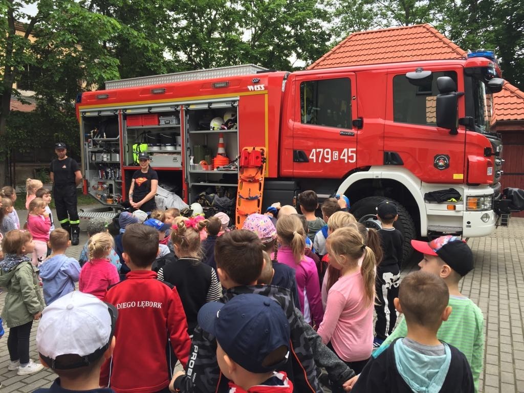 Dzień obfitował w liczne atrakcje. Na początek wóz strażacki , dzieci mogły obejrzeć go od środka a także zobaczyć jak działa wąż strażacki. Nasza Pani Dyrektor zamieniła się na chwilę w strażaka prezentując się w pełnym stroju strażackim. Tego dnia gościliśmy w naszej placówce animatora zabaw, który prowadził z dziećmi zabawy taneczne, tworzył wspaniałe bańki mydlane oraz różności z balonów. Dzieci malowały farbami na strechu oraz brały udział w zawodach sportowych. Nie zabrakło tego dnia słodkości, nasi milusińscy dostali lody oraz mogły częstować się pysznymi ciastami zrobionymi przez rodziców. Nie zabrakło też wesołych zabaw na świeżym powietrzu.