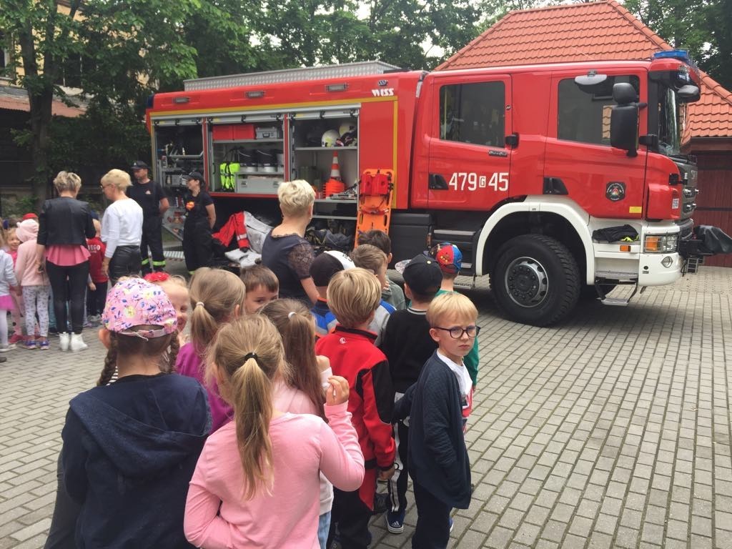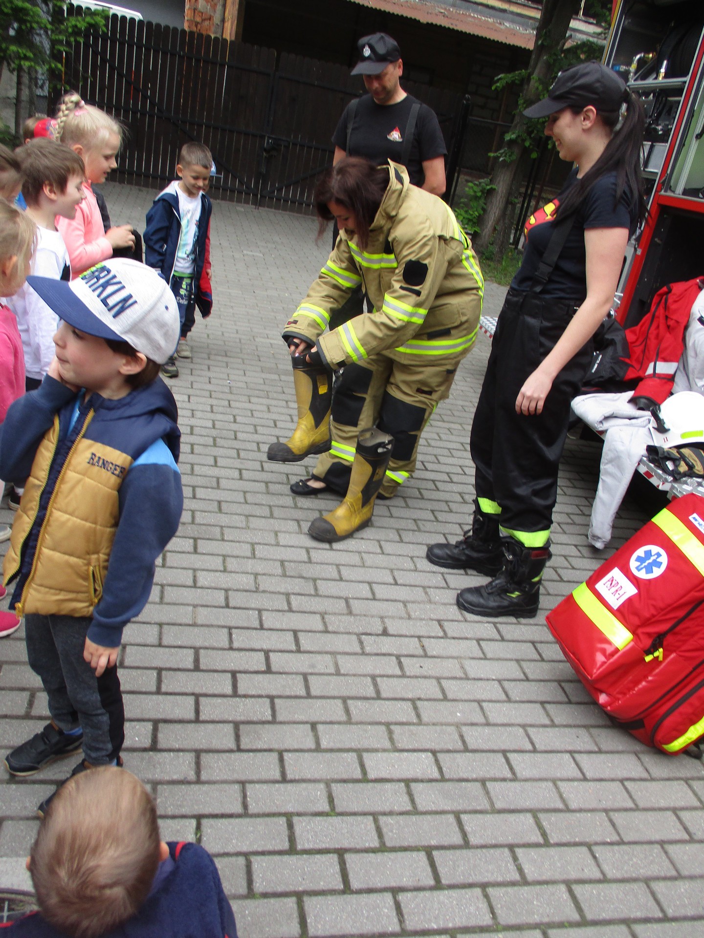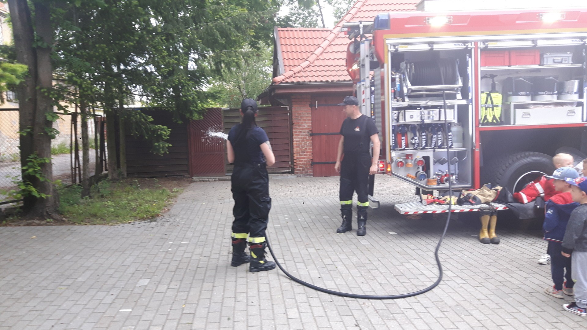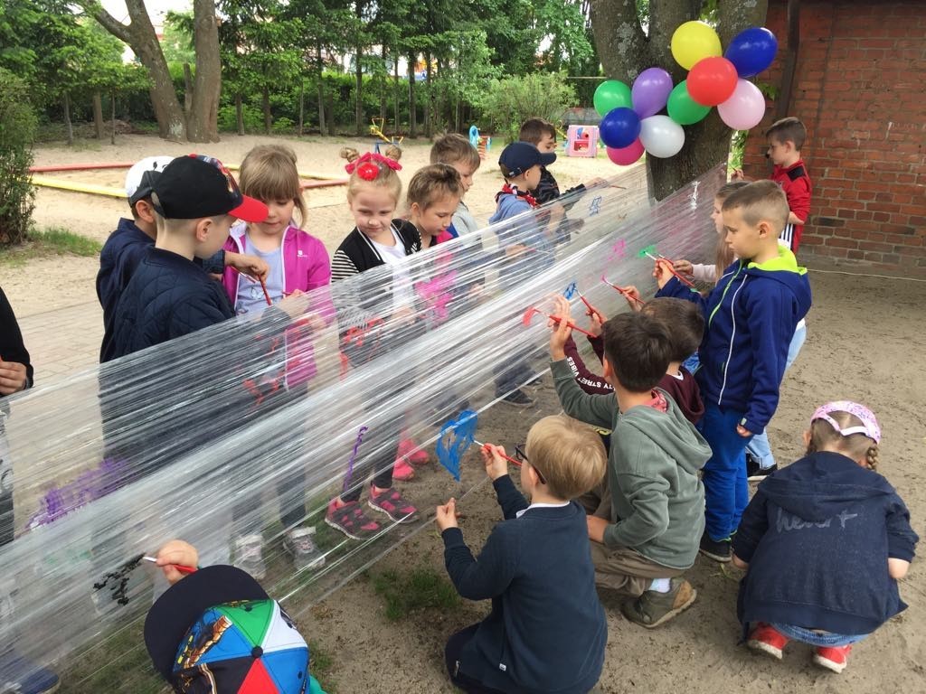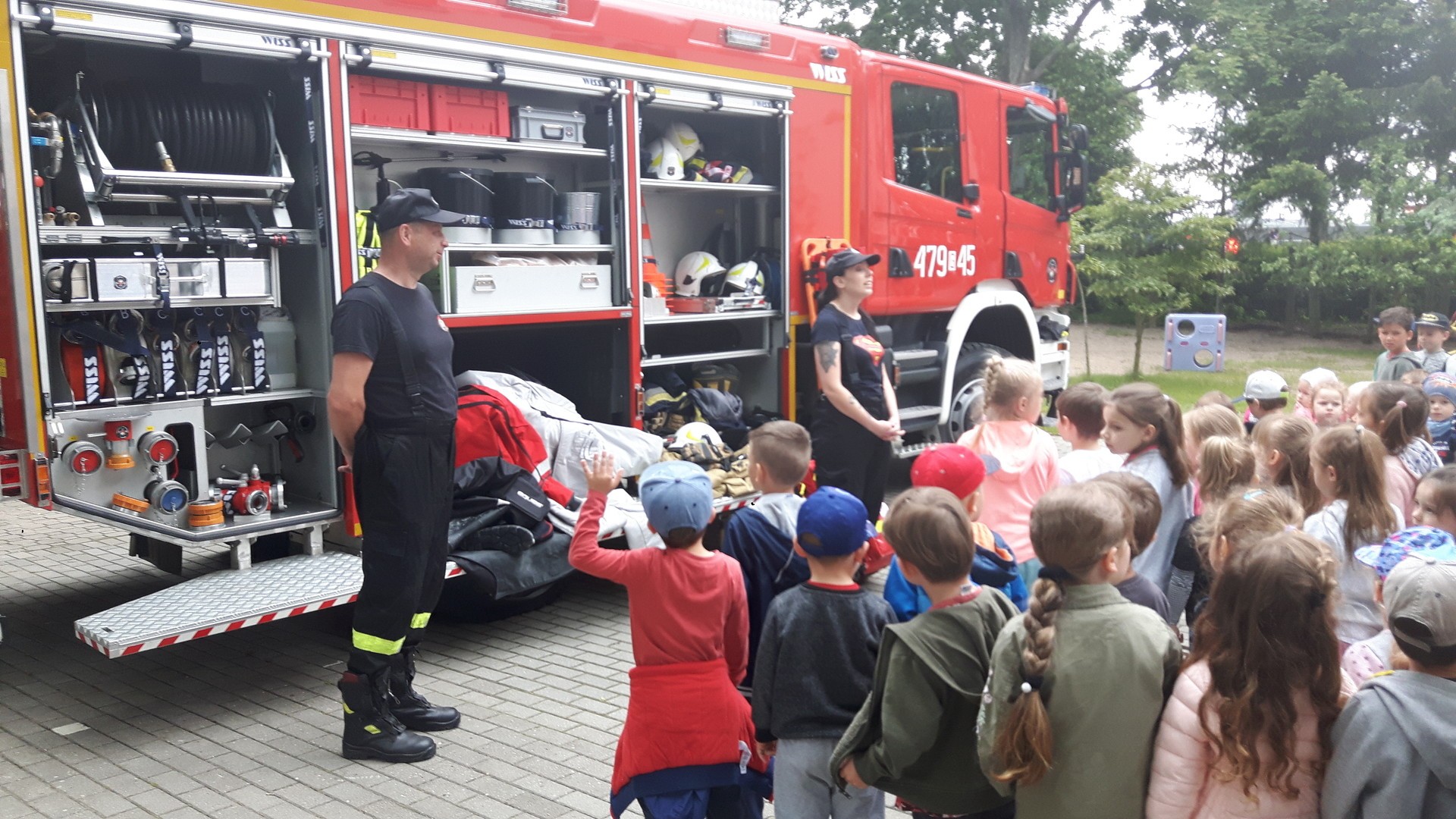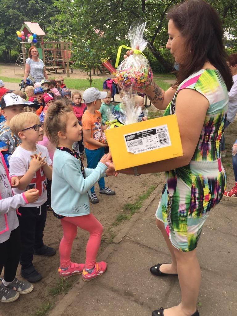 Dzień obfitował w liczne atrakcje. Na początek wóz strażacki , dzieci mogły obejrzeć go od środka a także zobaczyć jak działa wąż strażacki. Nasza Pani Dyrektor zamieniła się na chwilę w strażaka prezentując się w pełnym stroju strażackim. Tego dnia gościliśmy w naszej placówce animatora zabaw, który prowadził z dziećmi zabawy taneczne, tworzył wspaniałe bańki mydlane oraz różności z balonów. Dzieci malowały farbami na strechu oraz brały udział w zawodach sportowych. Nie zabrakło tego dnia słodkości, nasi milusińscy dostali lody oraz mogły częstować się pysznymi ciastami zrobionymi przez rodziców. Nie zabrakło też wesołych zabaw na świeżym powietrzu.