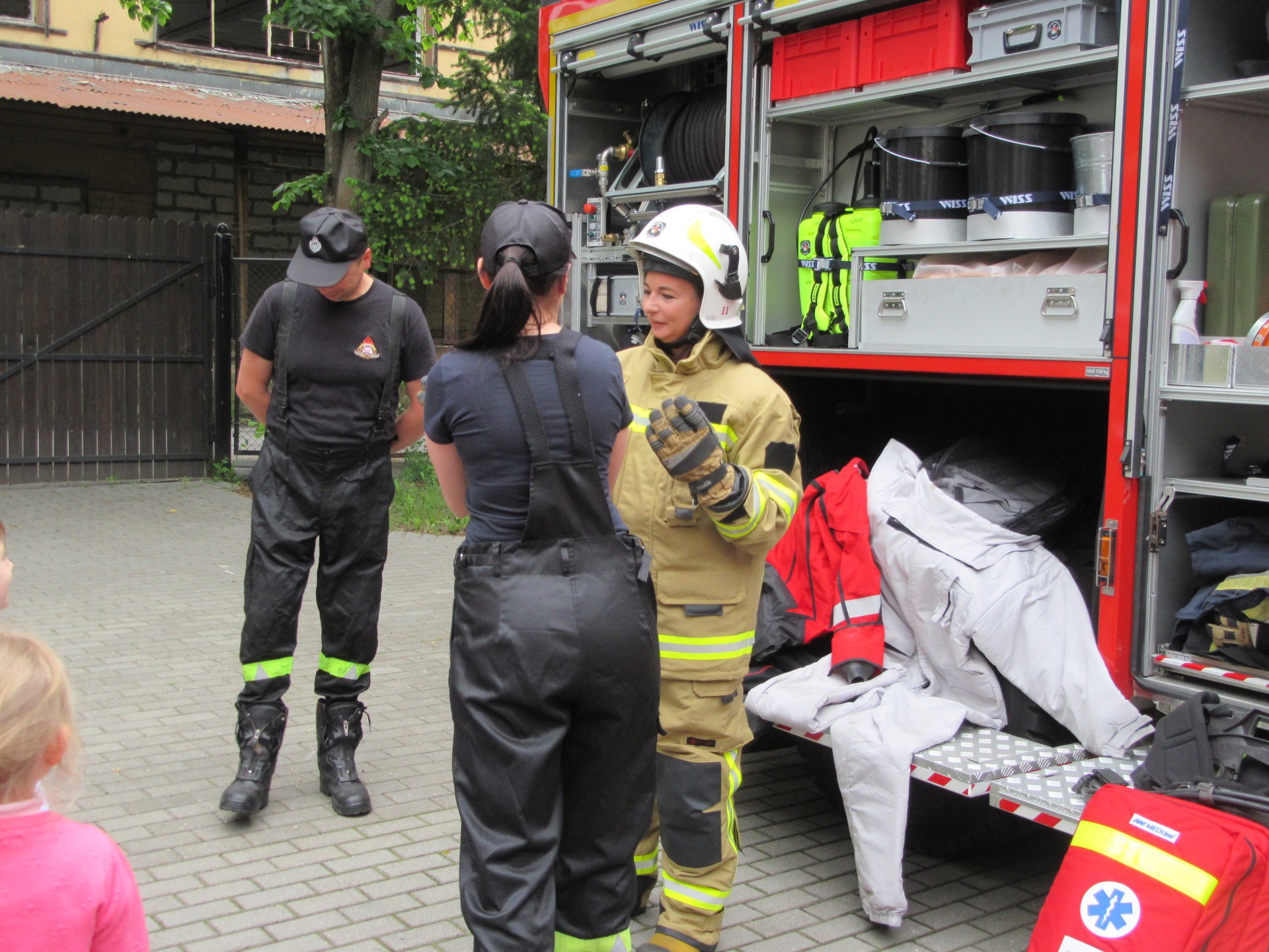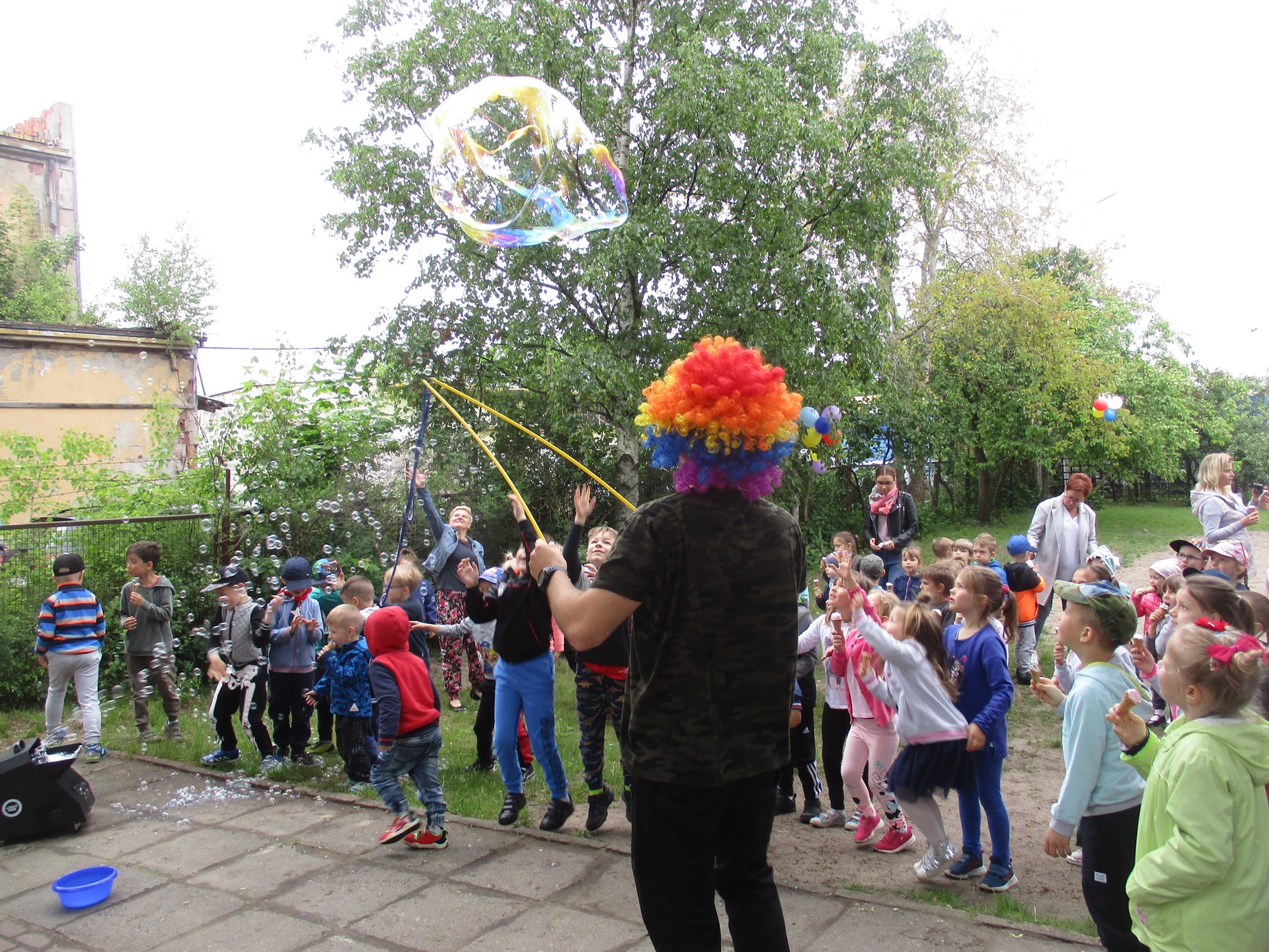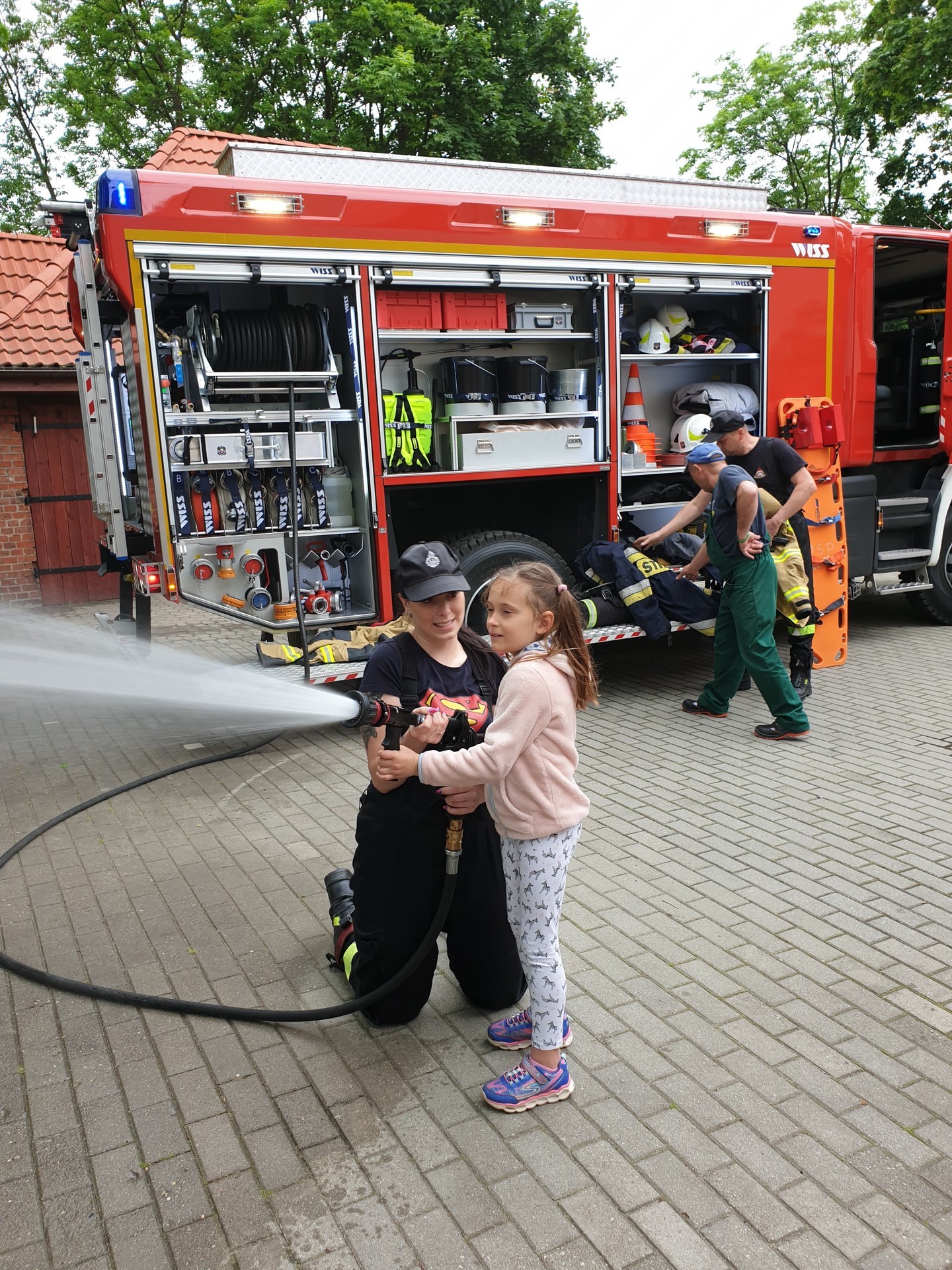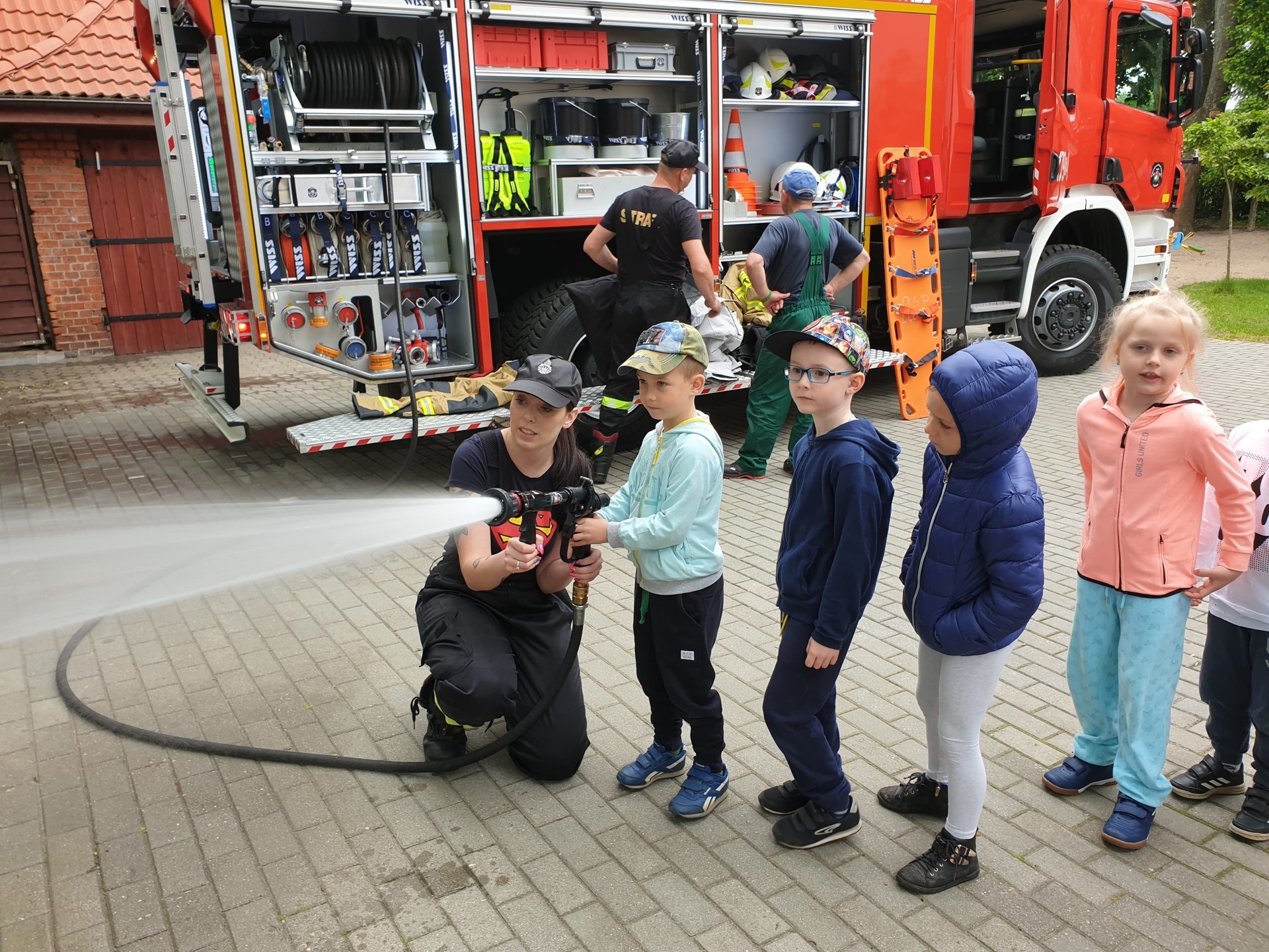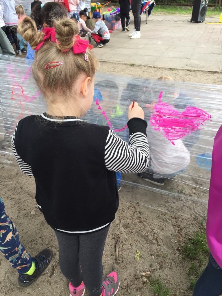 Dzień obfitował w liczne atrakcje. Na początek wóz strażacki , dzieci mogły obejrzeć go od środka a także zobaczyć jak działa wąż strażacki. Nasza Pani Dyrektor zamieniła się na chwilę w strażaka prezentując się w pełnym stroju strażackim. Tego dnia gościliśmy w naszej placówce animatora zabaw, który prowadził z dziećmi zabawy taneczne, tworzył wspaniałe bańki mydlane oraz różności z balonów. Dzieci malowały farbami na strechu oraz brały udział w zawodach sportowych. Nie zabrakło tego dnia słodkości, nasi milusińscy dostali lody oraz mogły częstować się pysznymi ciastami zrobionymi przez rodziców. Nie zabrakło też wesołych zabaw na świeżym powietrzu.
