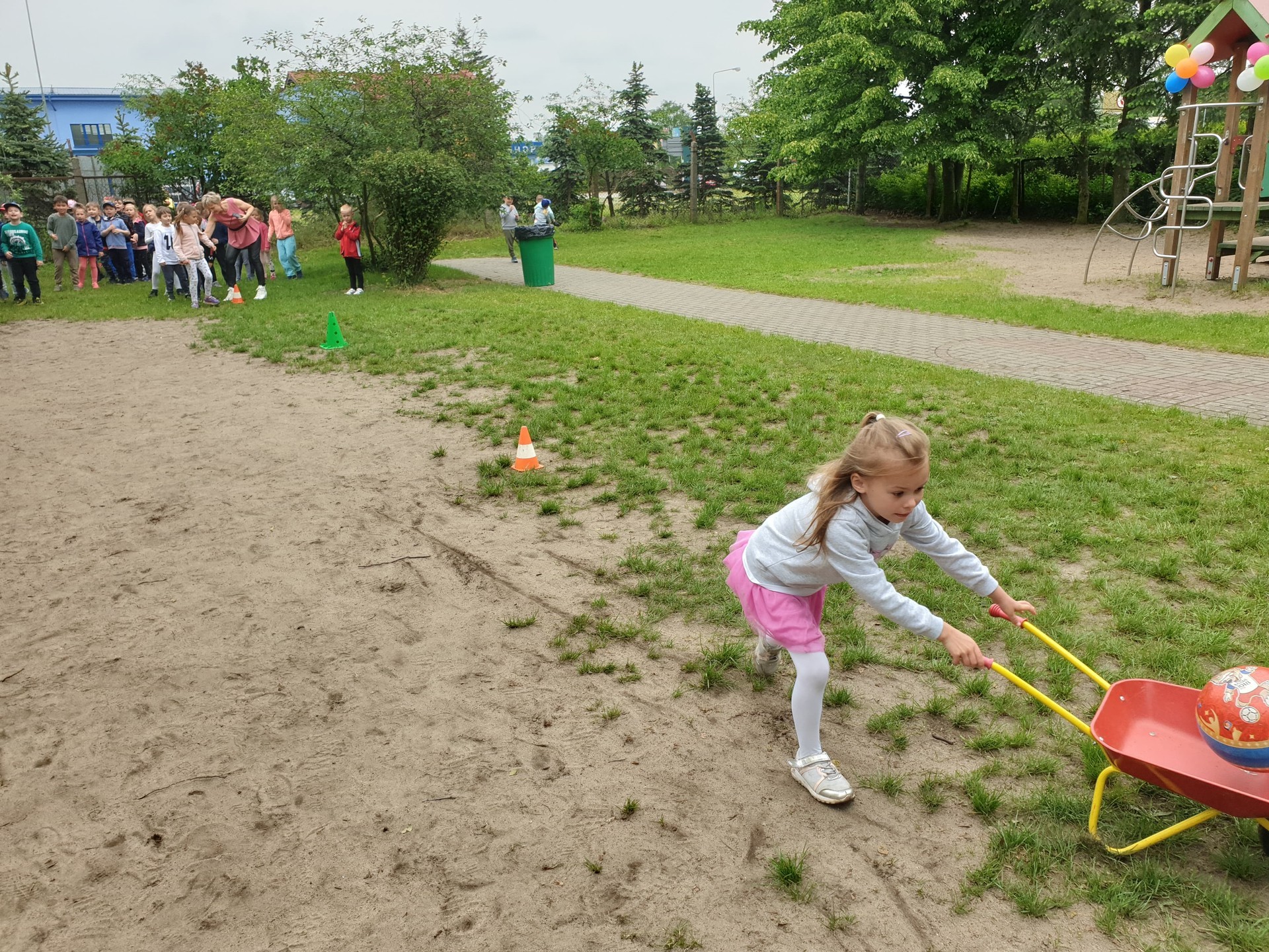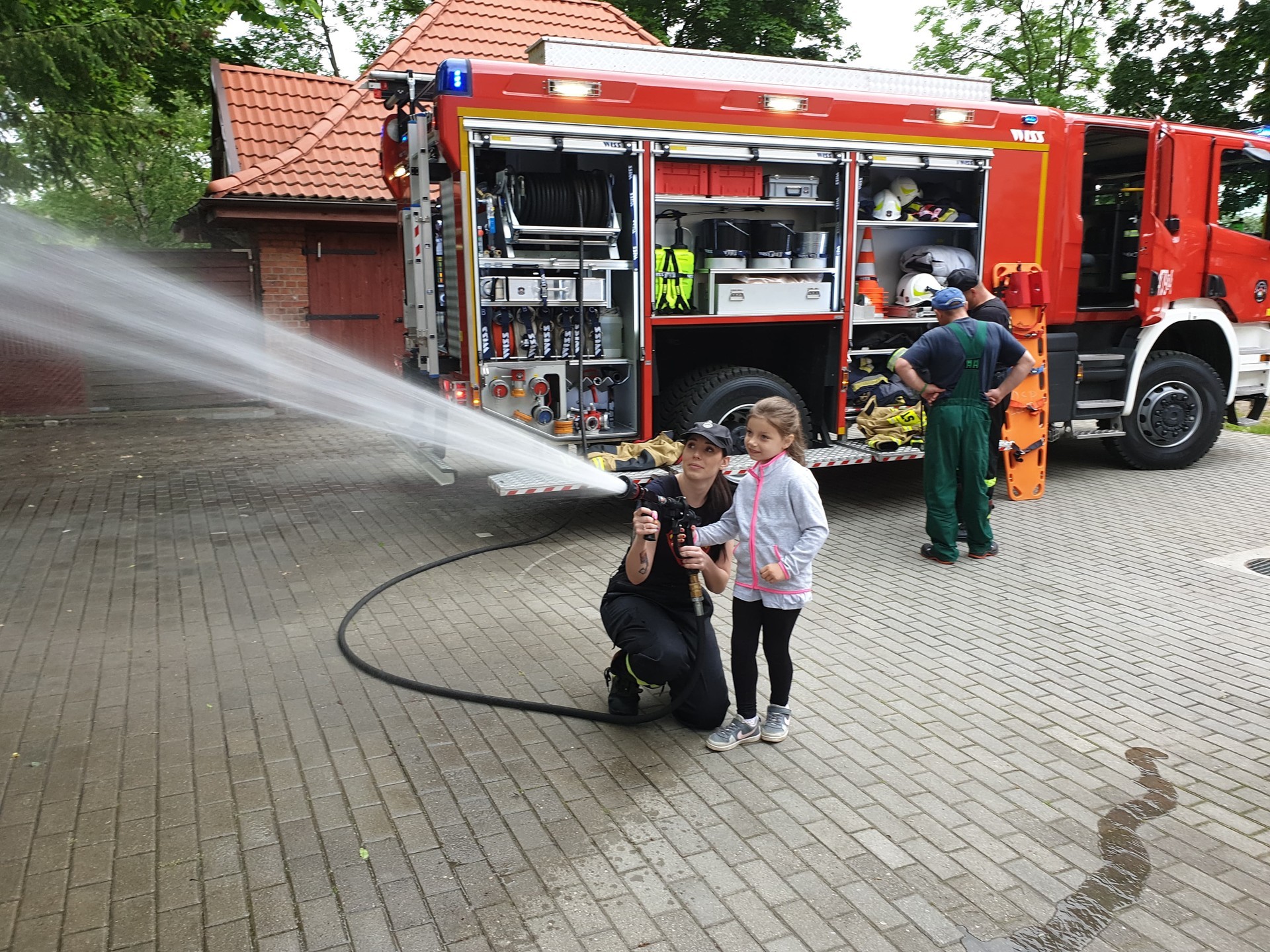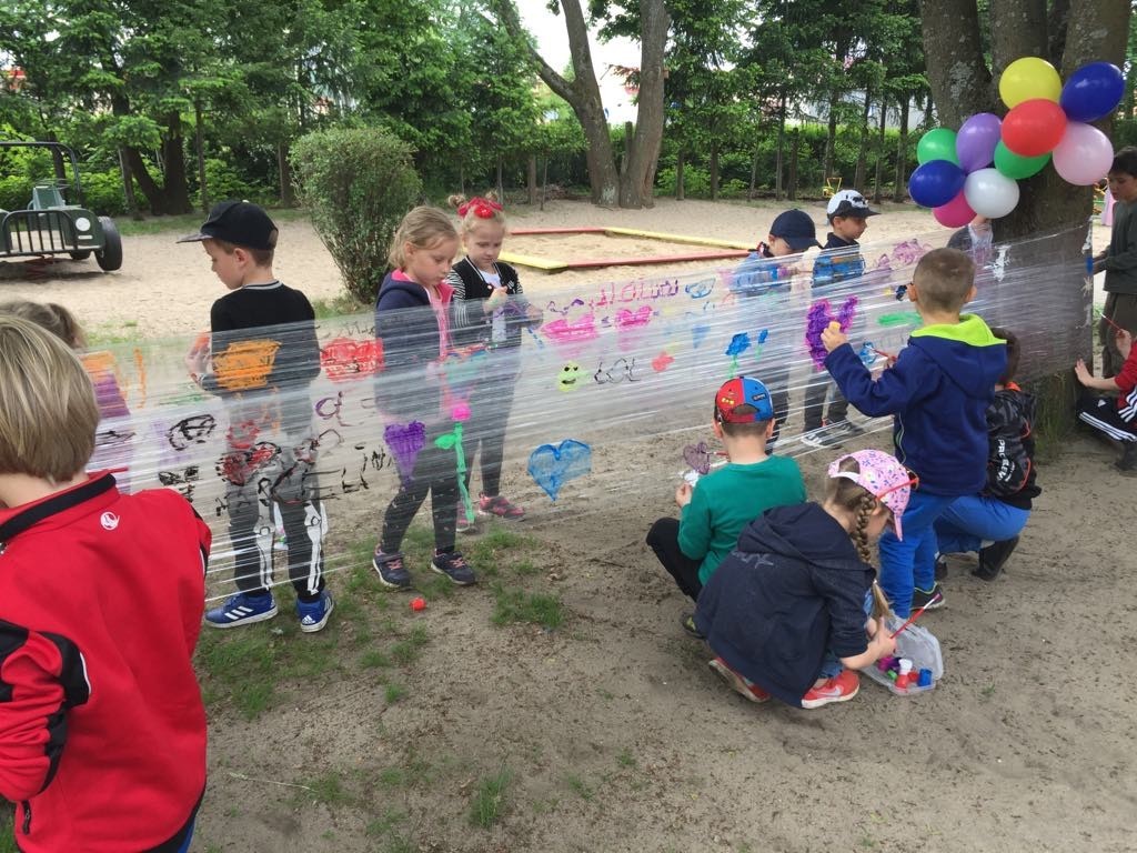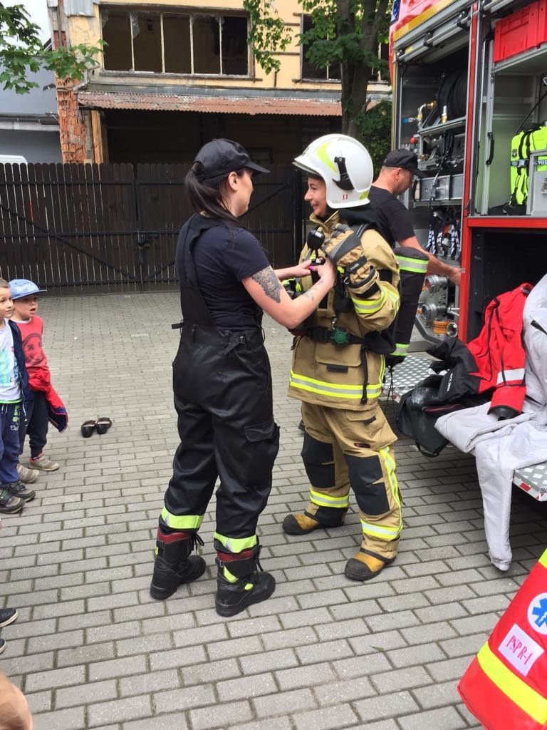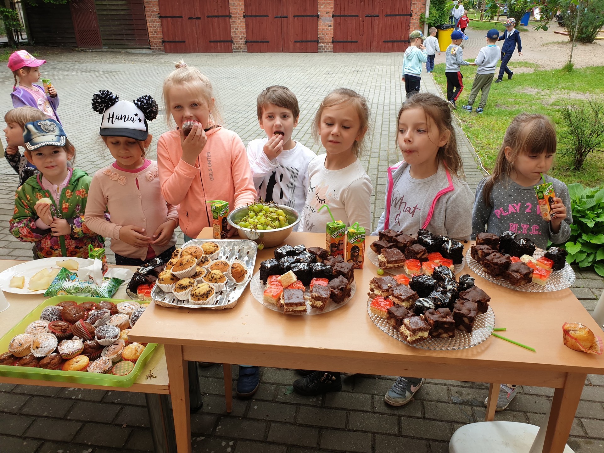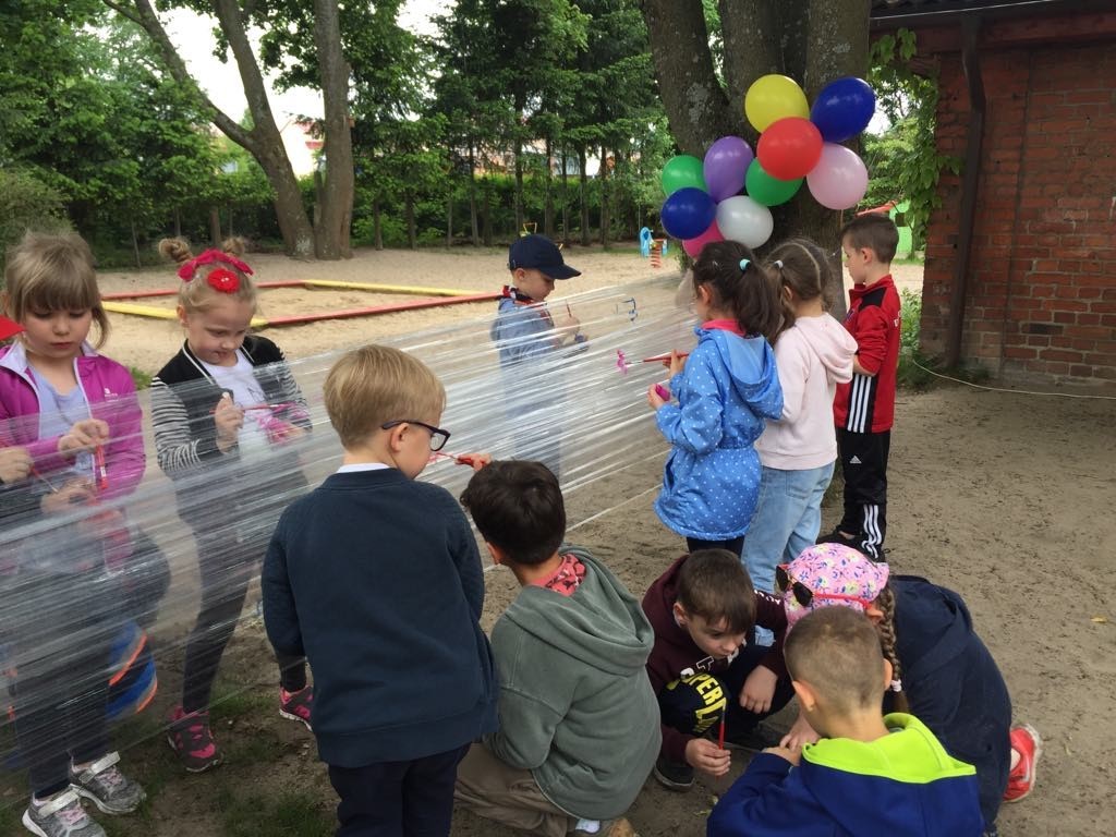 Dzień obfitował w liczne atrakcje. Na początek wóz strażacki , dzieci mogły obejrzeć go od środka a także zobaczyć jak działa wąż strażacki. Nasza Pani Dyrektor zamieniła się na chwilę w strażaka prezentując się w pełnym stroju strażackim. Tego dnia gościliśmy w naszej placówce animatora zabaw, który prowadził z dziećmi zabawy taneczne, tworzył wspaniałe bańki mydlane oraz różności z balonów. Dzieci malowały farbami na strechu oraz brały udział w zawodach sportowych. Nie zabrakło tego dnia słodkości, nasi milusińscy dostali lody oraz mogły częstować się pysznymi ciastami zrobionymi przez rodziców. Nie zabrakło też wesołych zabaw na świeżym powietrzu.