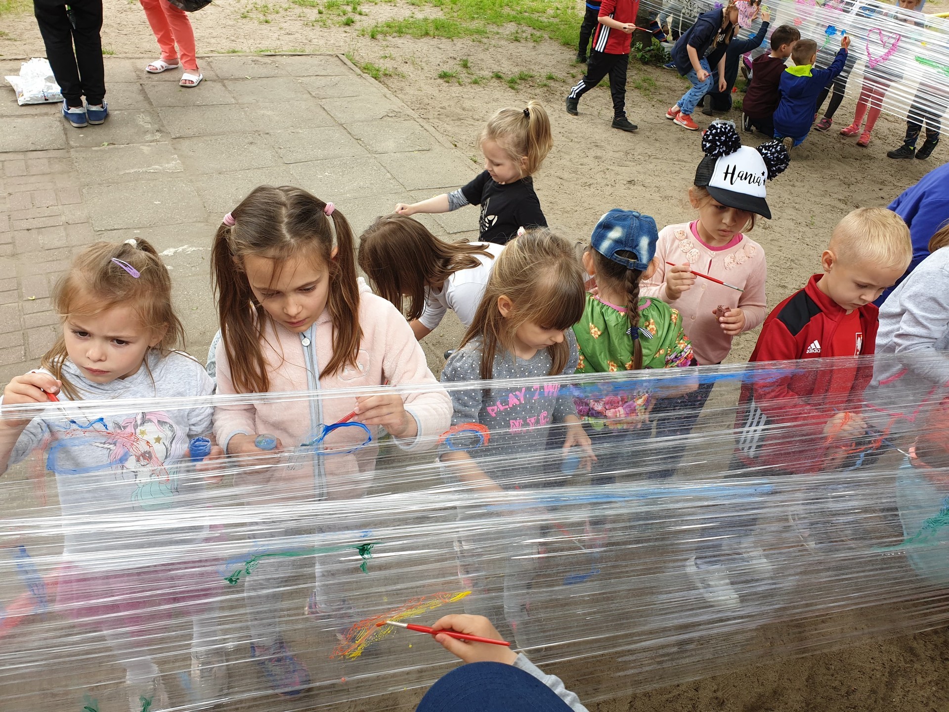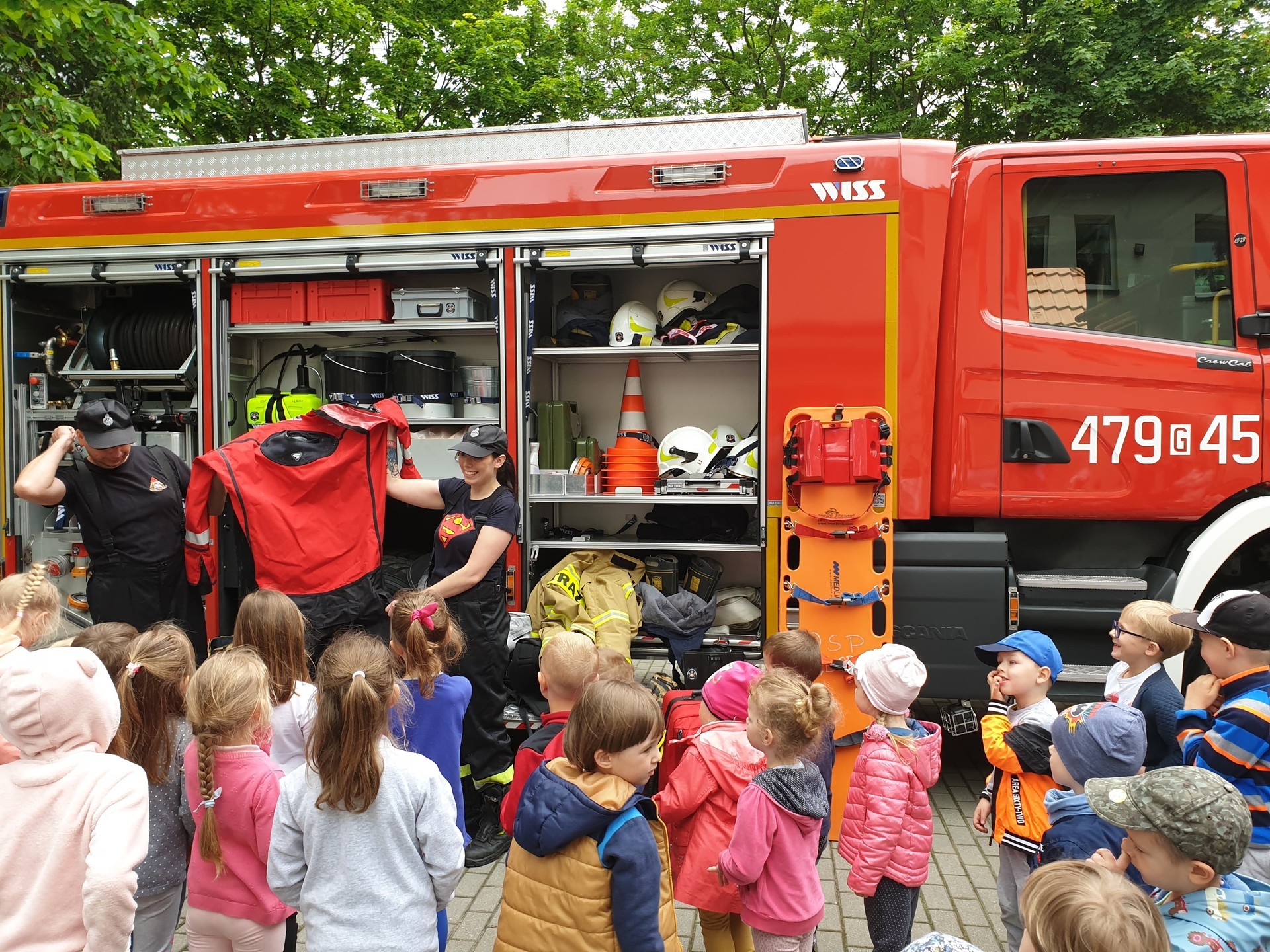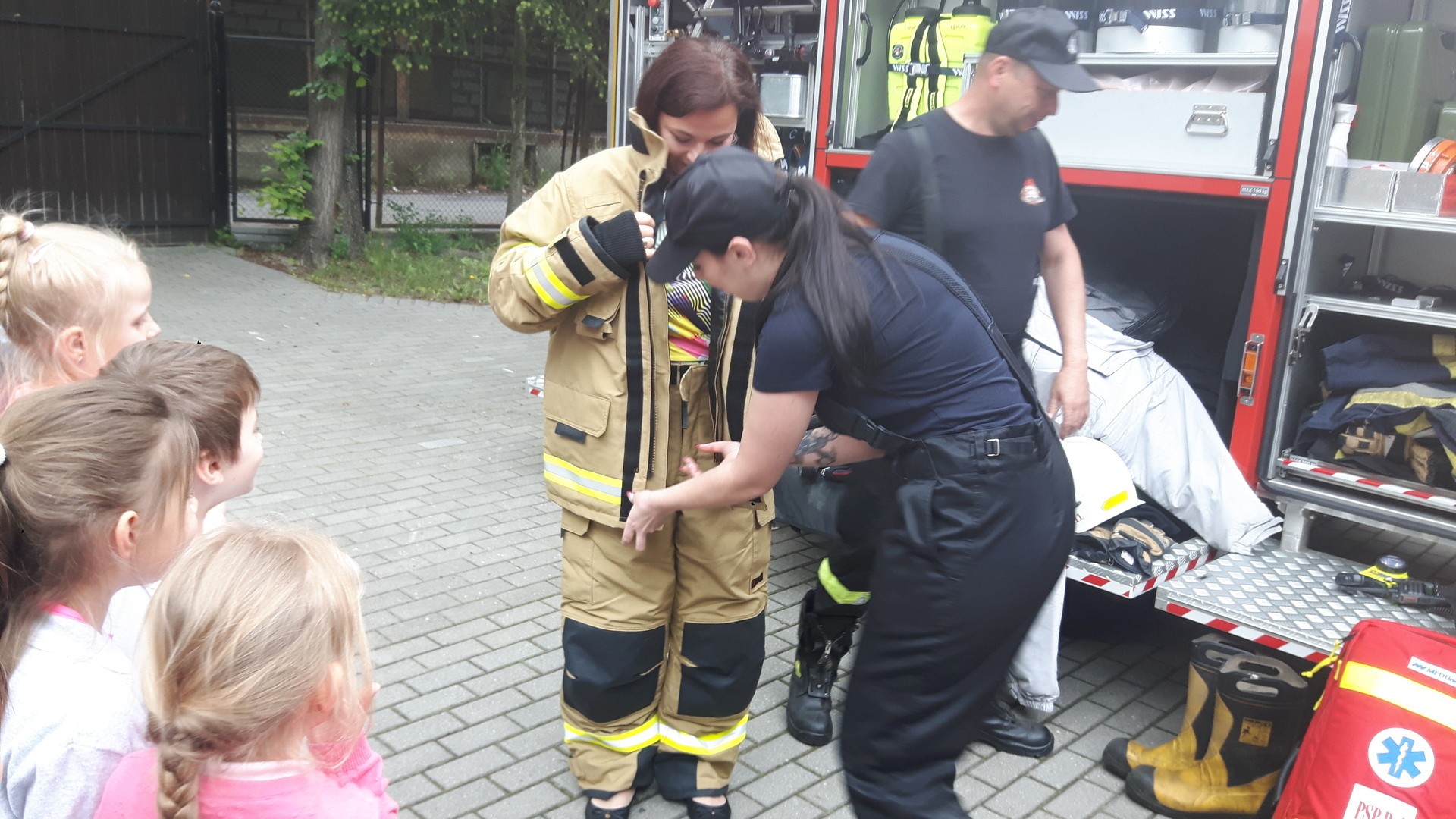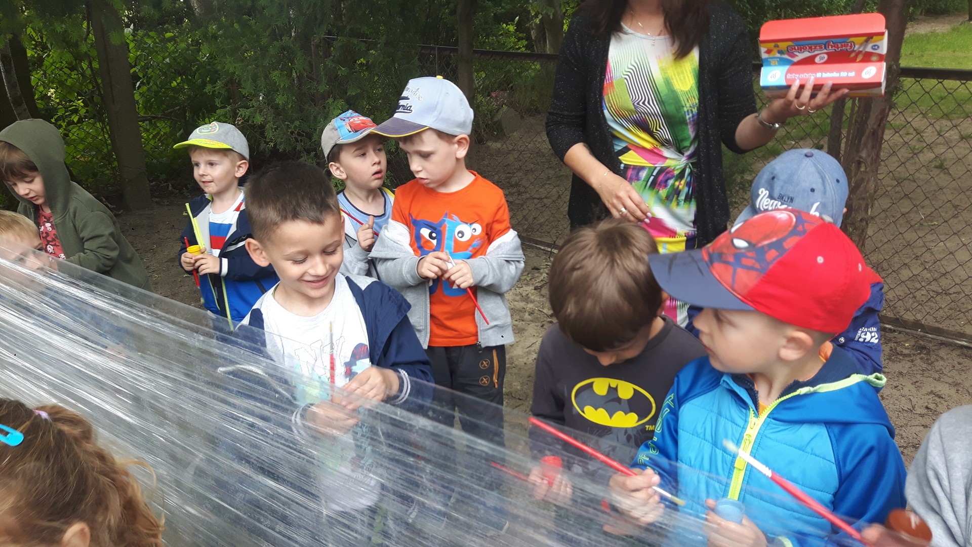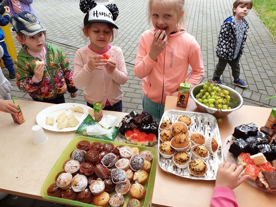 Dzień obfitował w liczne atrakcje. Na początek wóz strażacki , dzieci mogły obejrzeć go od środka a także zobaczyć jak działa wąż strażacki. Nasza Pani Dyrektor zamieniła się na chwilę w strażaka prezentując się w pełnym stroju strażackim. Tego dnia gościliśmy w naszej placówce animatora zabaw, który prowadził z dziećmi zabawy taneczne, tworzył wspaniałe bańki mydlane oraz różności z balonów. Dzieci malowały farbami na strechu oraz brały udział w zawodach sportowych. Nie zabrakło tego dnia słodkości, nasi milusińscy dostali lody oraz mogły częstować się pysznymi ciastami zrobionymi przez rodziców. Nie zabrakło też wesołych zabaw na świeżym powietrzu.