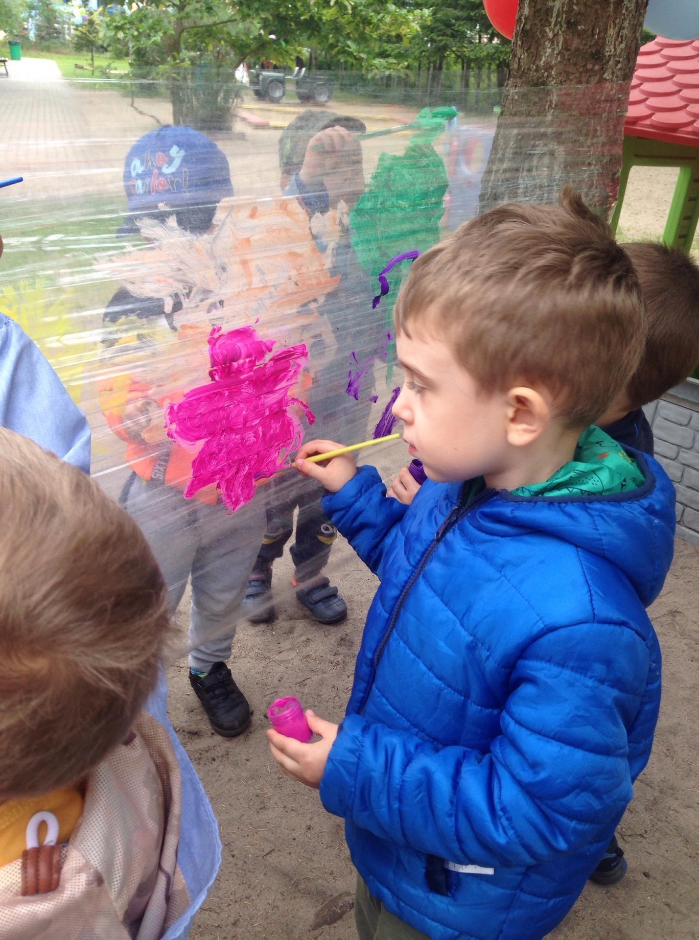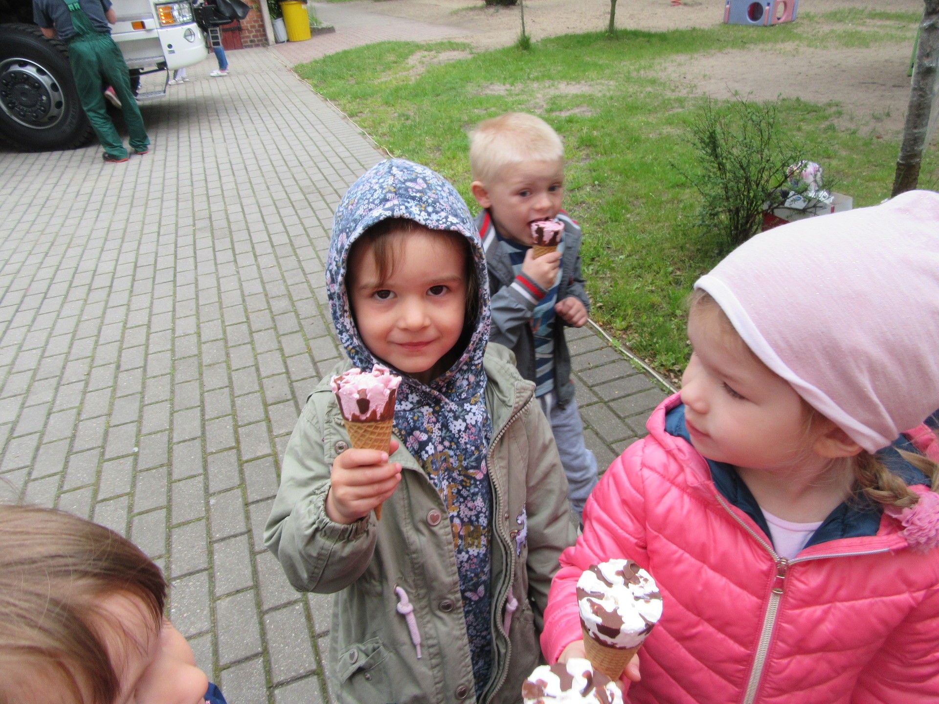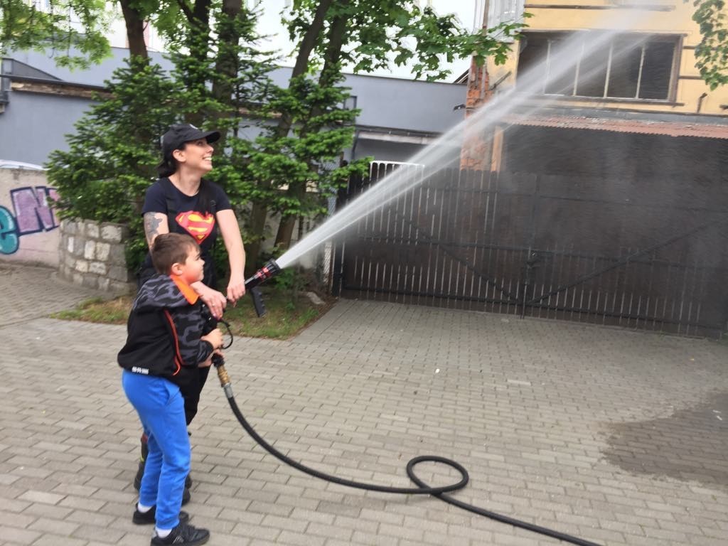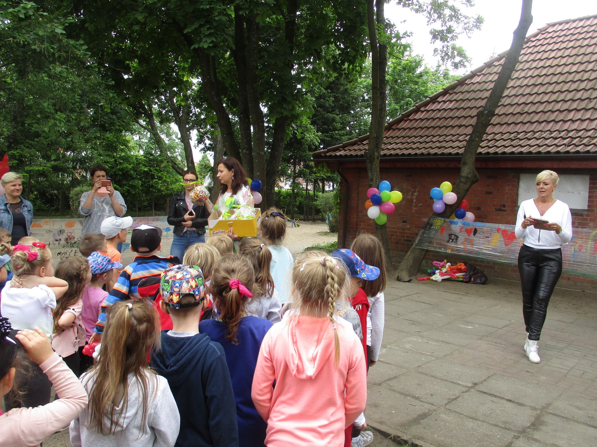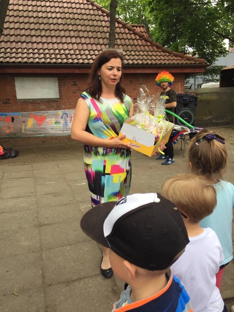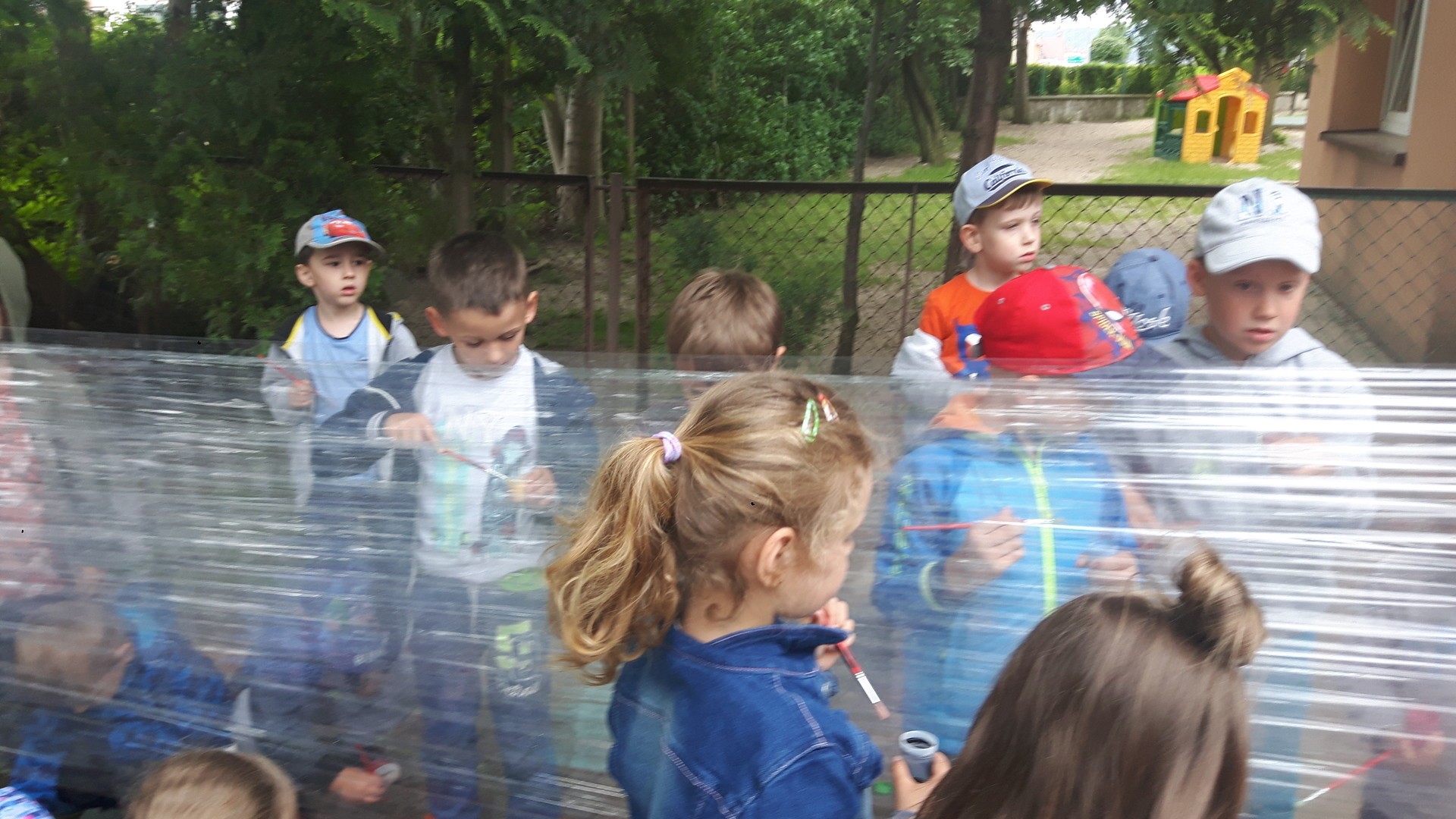 Dzień obfitował w liczne atrakcje. Na początek wóz strażacki , dzieci mogły obejrzeć go od środka a także zobaczyć jak działa wąż strażacki. Nasza Pani Dyrektor zamieniła się na chwilę w strażaka prezentując się w pełnym stroju strażackim. Tego dnia gościliśmy w naszej placówce animatora zabaw, który prowadził z dziećmi zabawy taneczne, tworzył wspaniałe bańki mydlane oraz różności z balonów. Dzieci malowały farbami na strechu oraz brały udział w zawodach sportowych. Nie zabrakło tego dnia słodkości, nasi milusińscy dostali lody oraz mogły częstować się pysznymi ciastami zrobionymi przez rodziców. Nie zabrakło też wesołych zabaw na świeżym powietrzu.