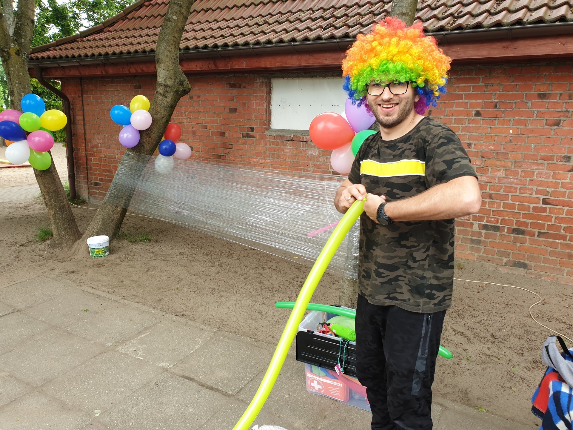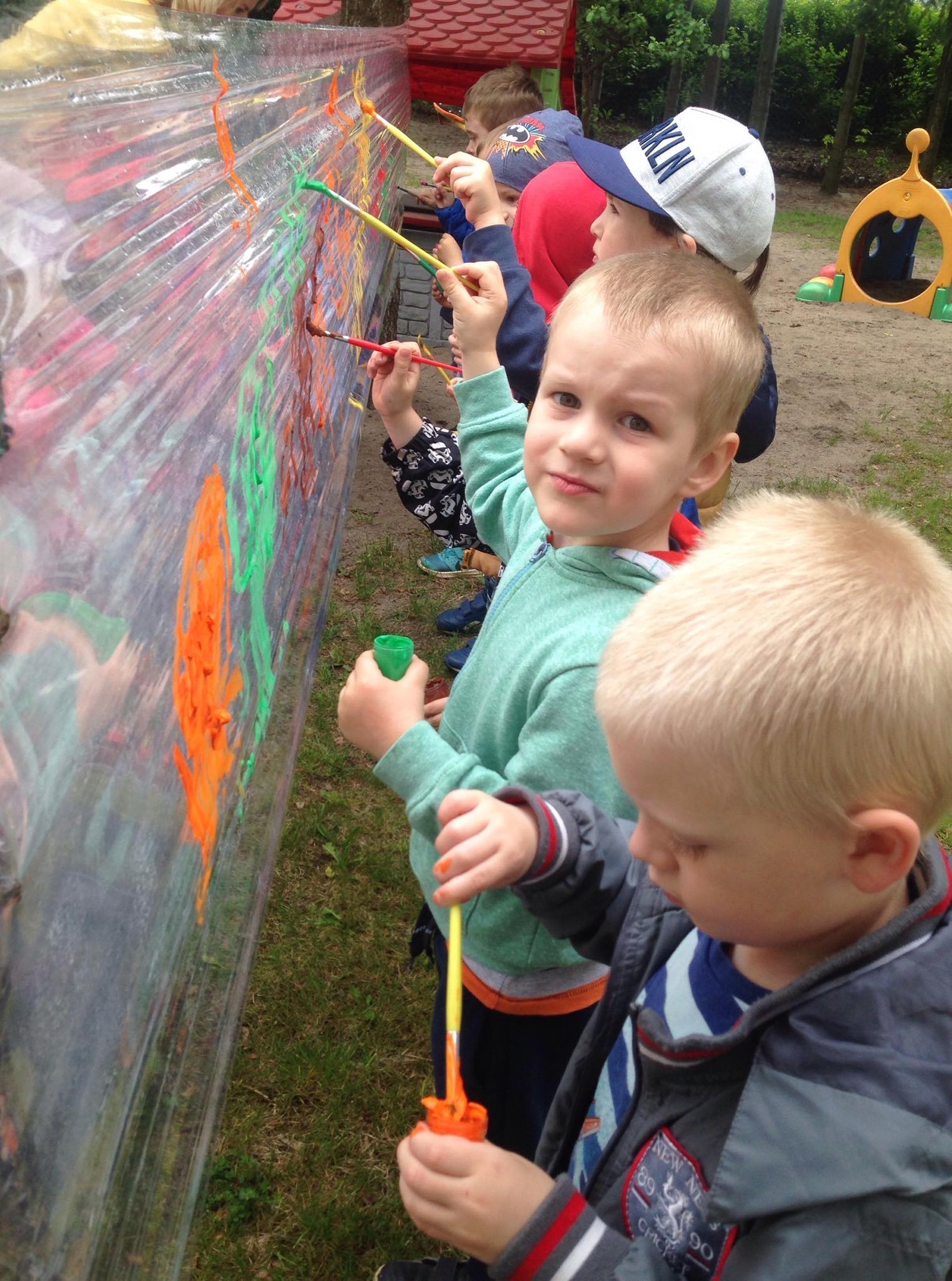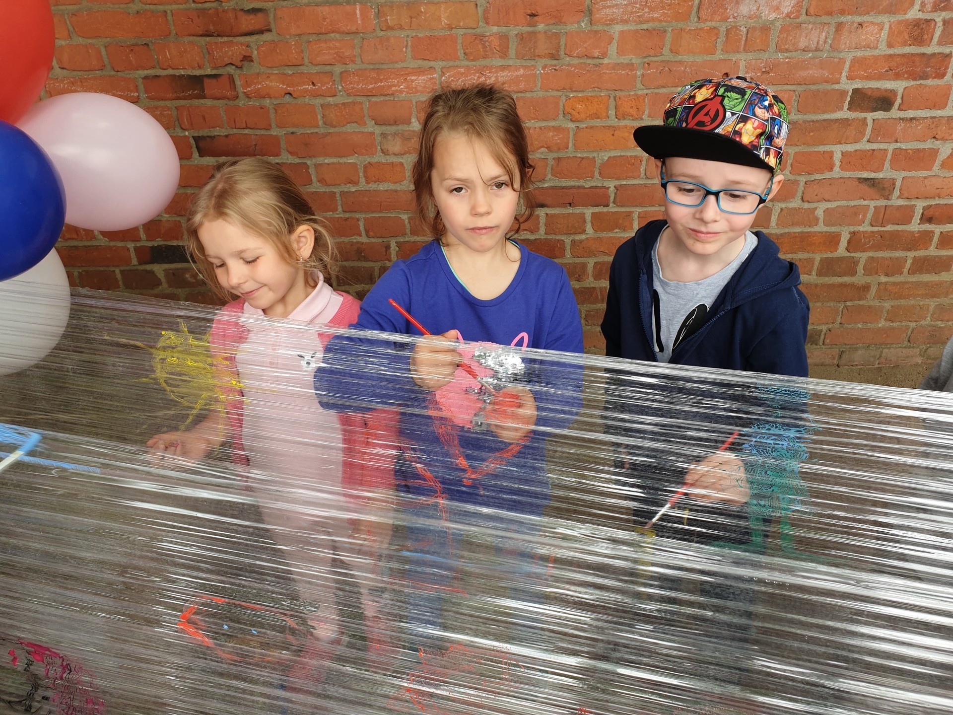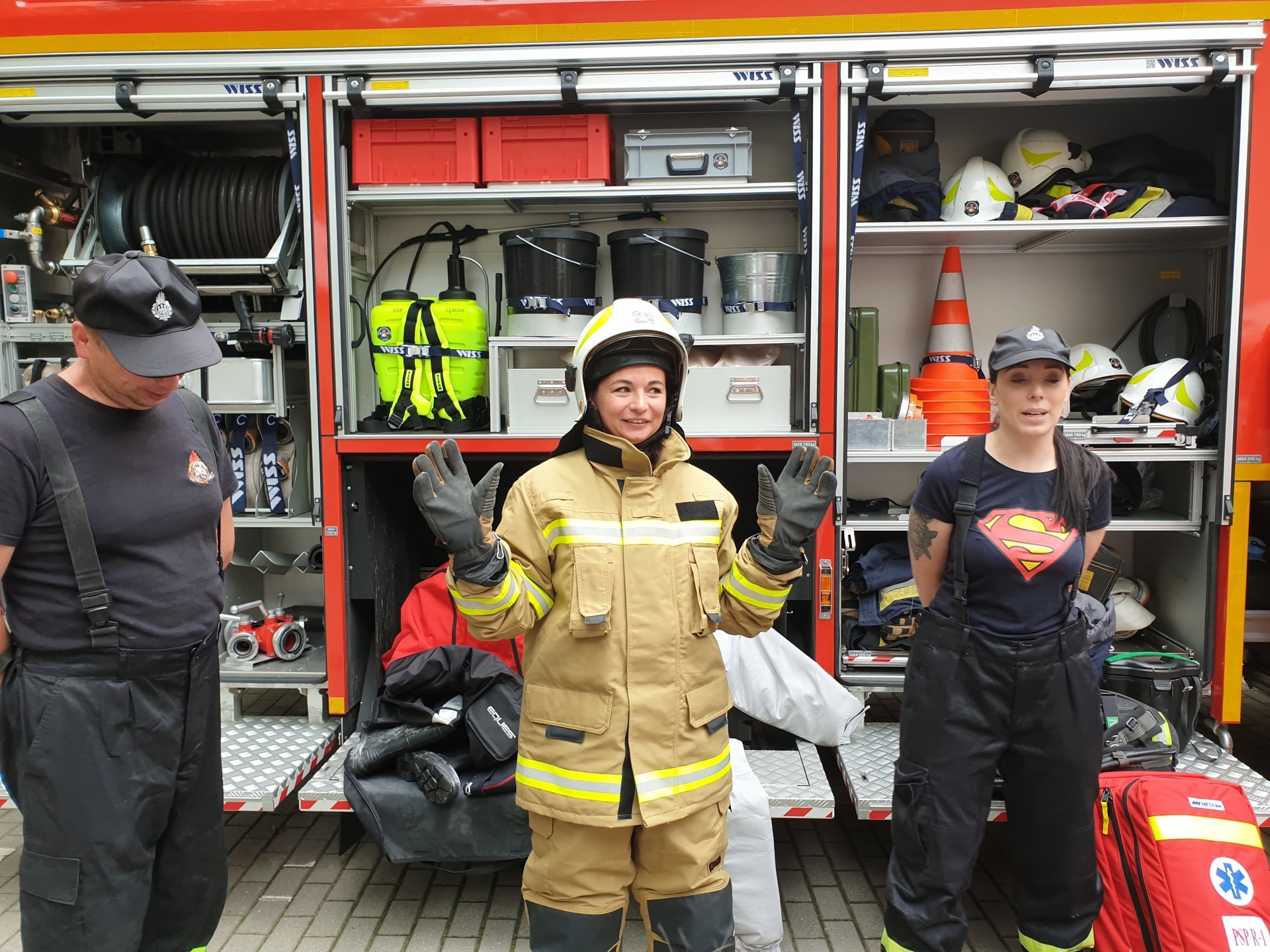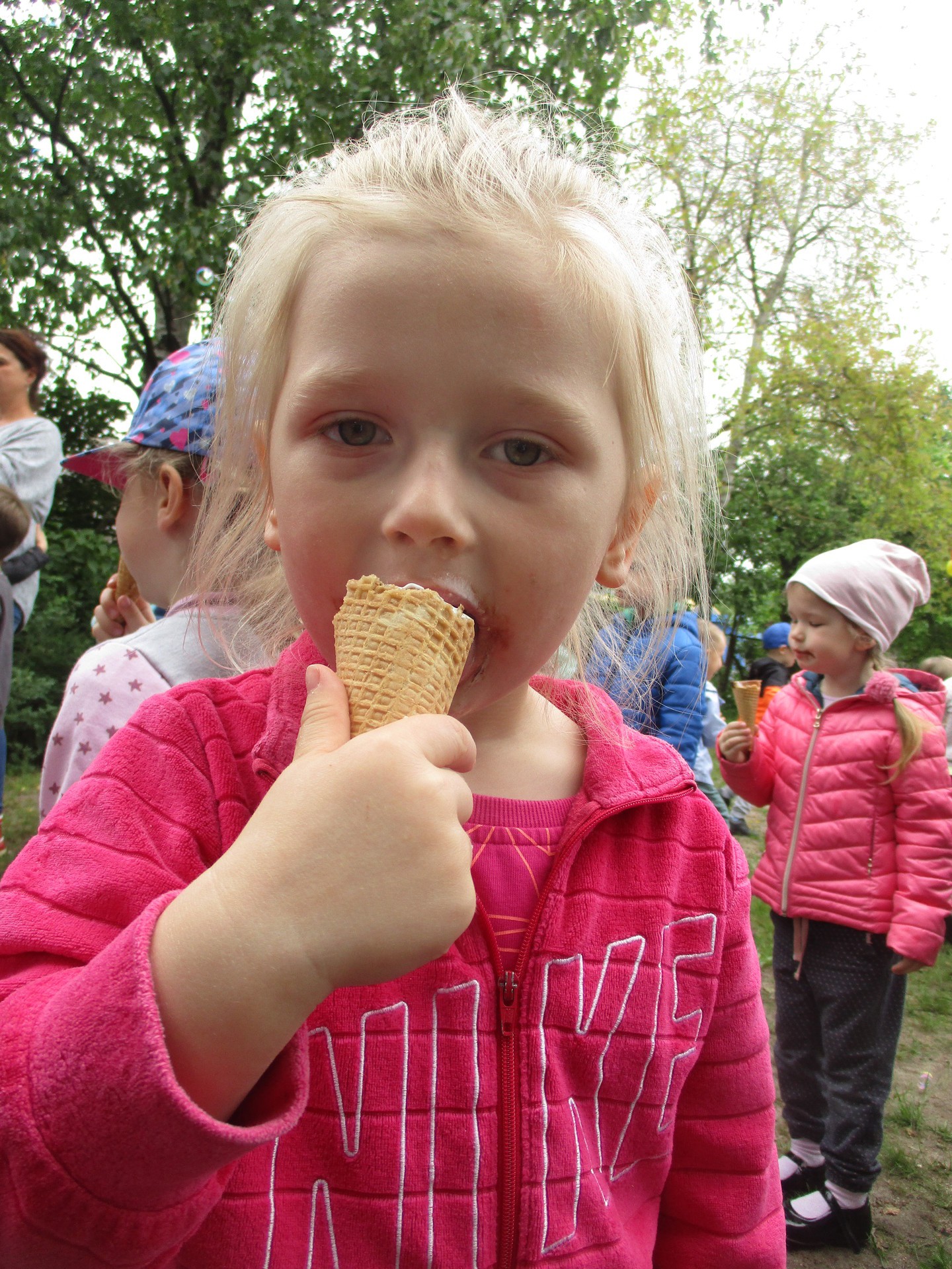 Dzień obfitował w liczne atrakcje. Na początek wóz strażacki , dzieci mogły obejrzeć go od środka a także zobaczyć jak działa wąż strażacki. Nasza Pani Dyrektor zamieniła się na chwilę w strażaka prezentując się w pełnym stroju strażackim. Tego dnia gościliśmy w naszej placówce animatora zabaw, który prowadził z dziećmi zabawy taneczne, tworzył wspaniałe bańki mydlane oraz różności z balonów. Dzieci malowały farbami na strechu oraz brały udział w zawodach sportowych. Nie zabrakło tego dnia słodkości, nasi milusińscy dostali lody oraz mogły częstować się pysznymi ciastami zrobionymi przez rodziców. Nie zabrakło też wesołych zabaw na świeżym powietrzu.