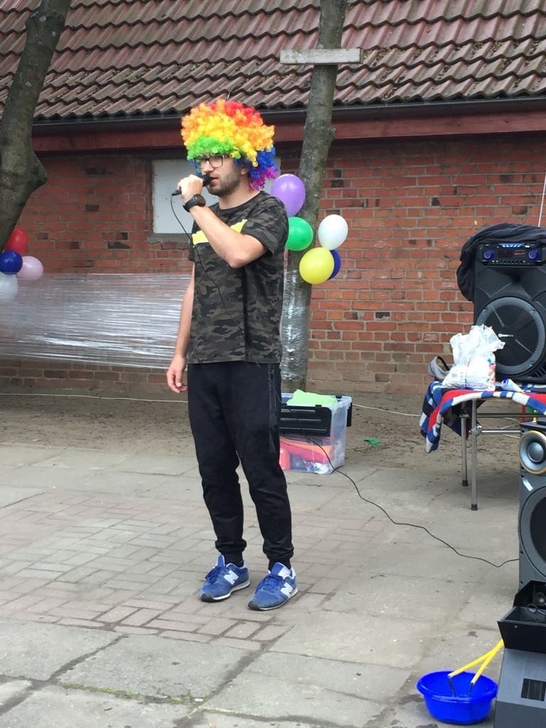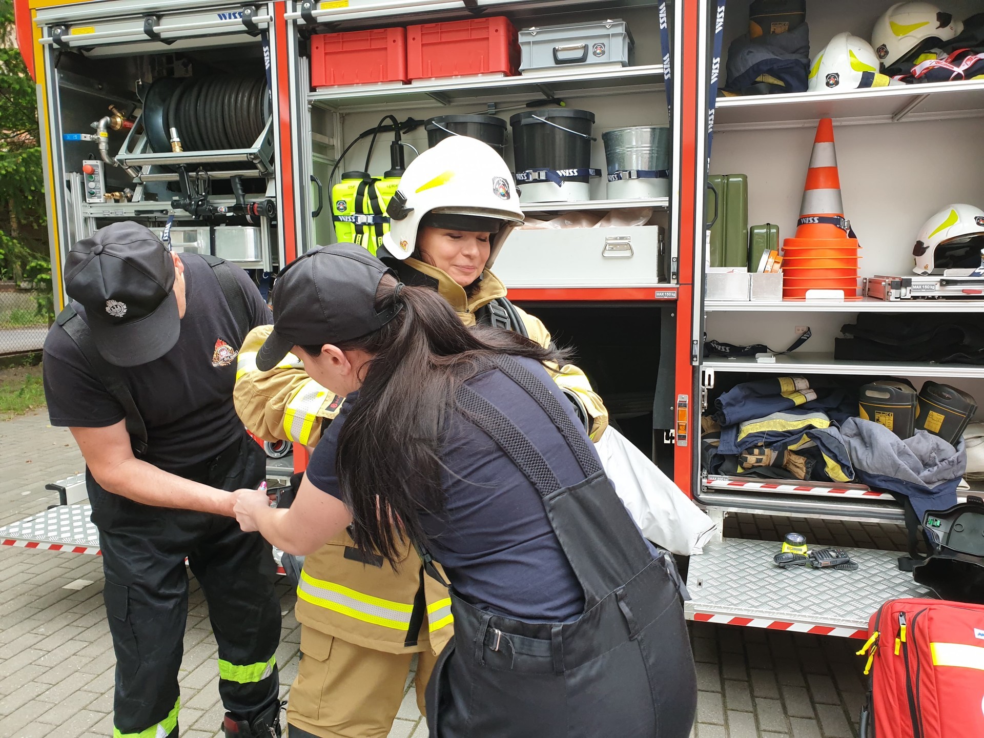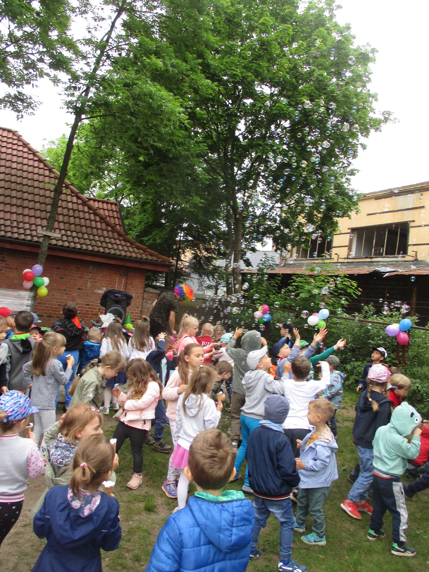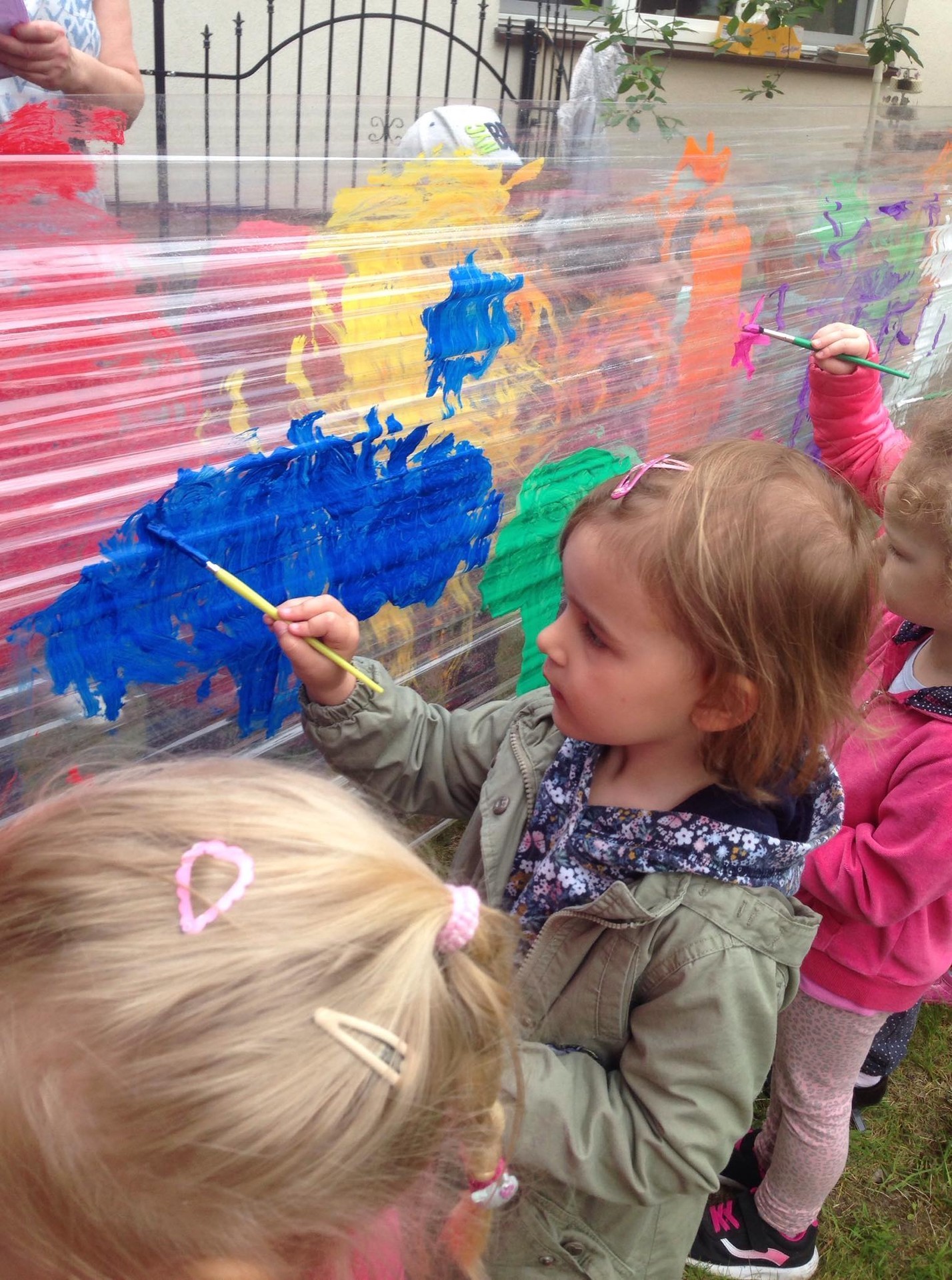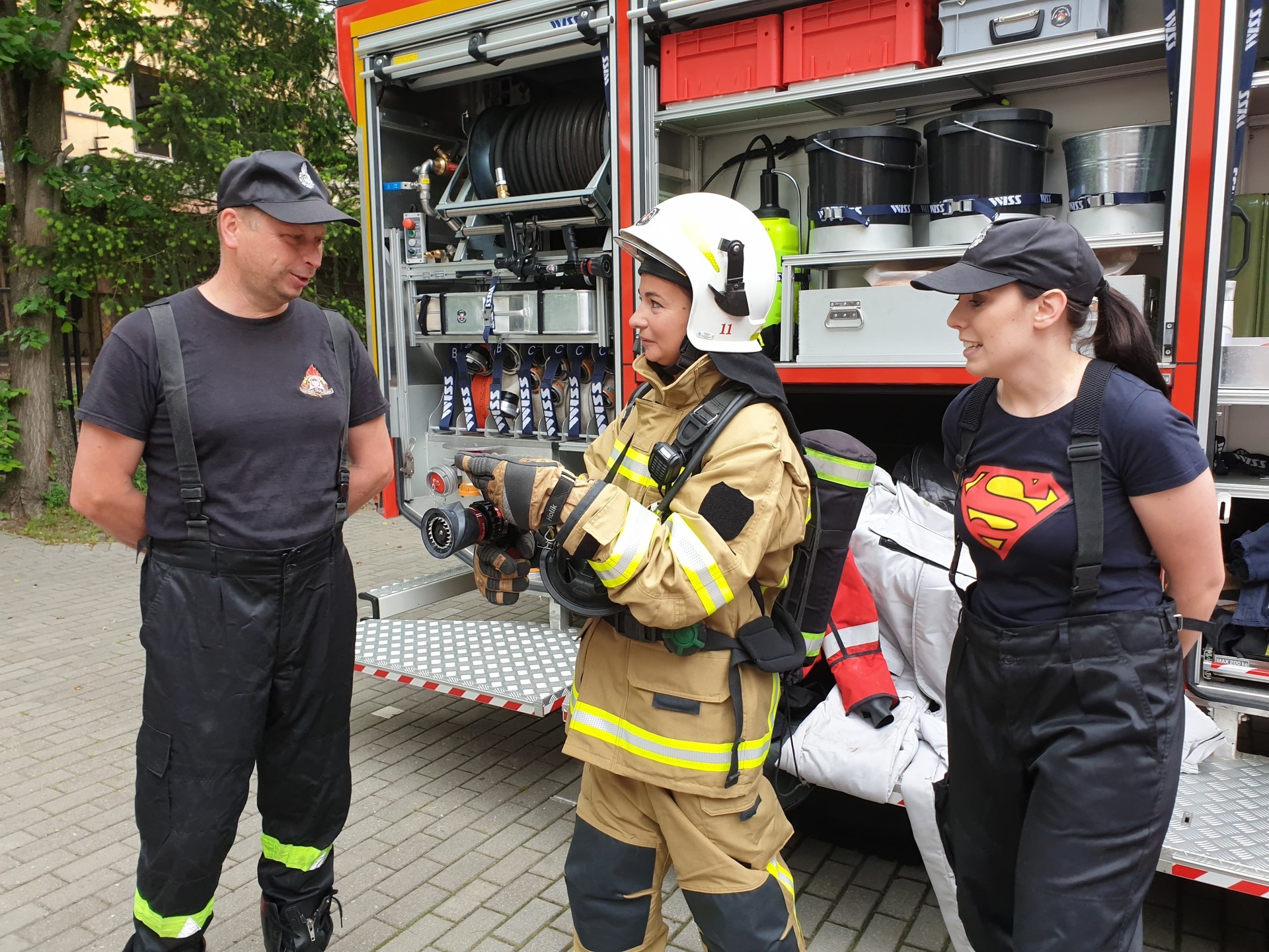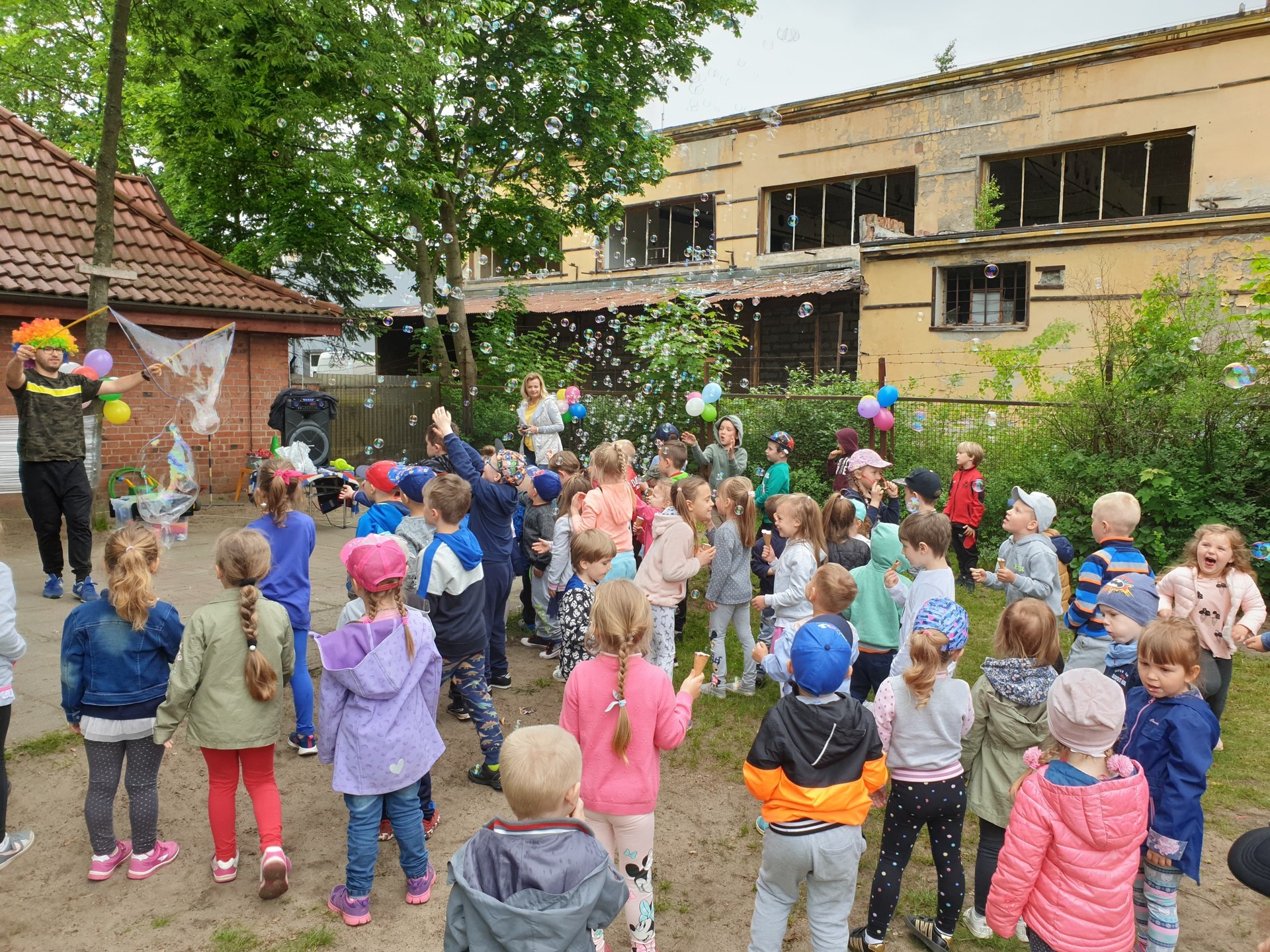 Dzień obfitował w liczne atrakcje. Na początek wóz strażacki , dzieci mogły obejrzeć go od środka a także zobaczyć jak działa wąż strażacki. Nasza Pani Dyrektor zamieniła się na chwilę w strażaka prezentując się w pełnym stroju strażackim. Tego dnia gościliśmy w naszej placówce animatora zabaw, który prowadził z dziećmi zabawy taneczne, tworzył wspaniałe bańki mydlane oraz różności z balonów. Dzieci malowały farbami na strechu oraz brały udział w zawodach sportowych. Nie zabrakło tego dnia słodkości, nasi milusińscy dostali lody oraz mogły częstować się pysznymi ciastami zrobionymi przez rodziców. Nie zabrakło też wesołych zabaw na świeżym powietrzu.