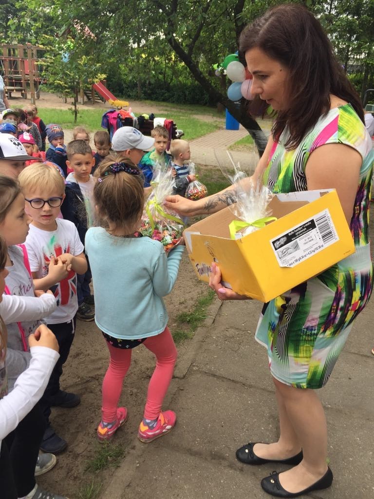 Na zakończenie dnia każda grupa otrzymała małą niespodziankę od Pani Dyrektor (wielki worek cukierków) I choć przedszkolaki codziennie otrzymują wiele miłości i serca od rodzin i nauczycielek, w tym czasie czuły się naprawdę wyjątkowo, uśmiech nikomu nie schodził z twarzy. Dzień pełen wrażeń szybko się skończył, ale wspomnienia pozostaną na długo.