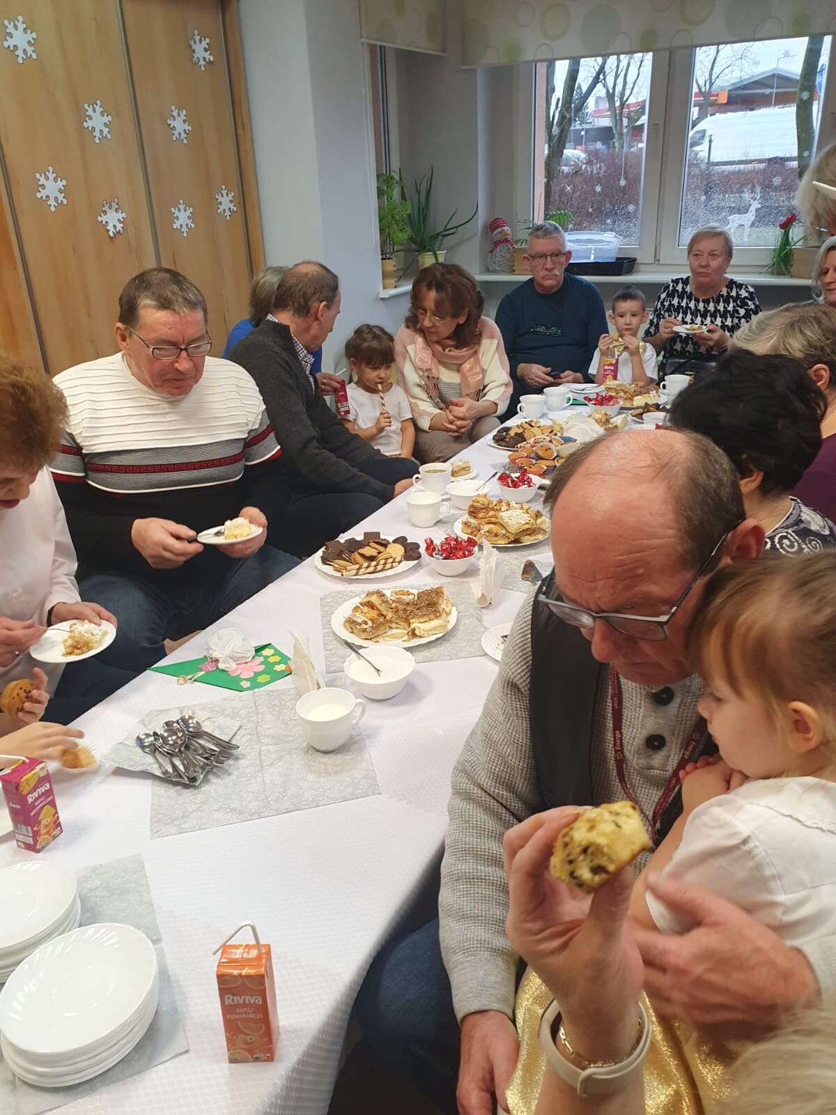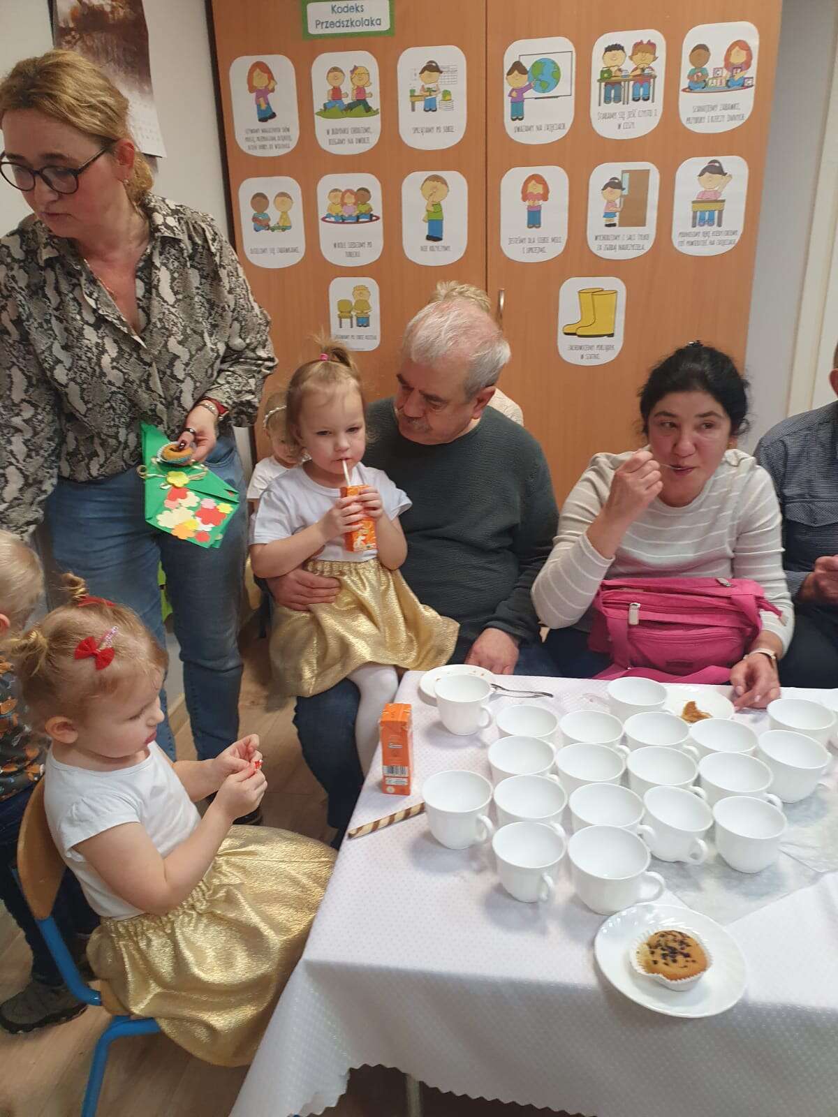 Dziadkowie z wnukami przy stole