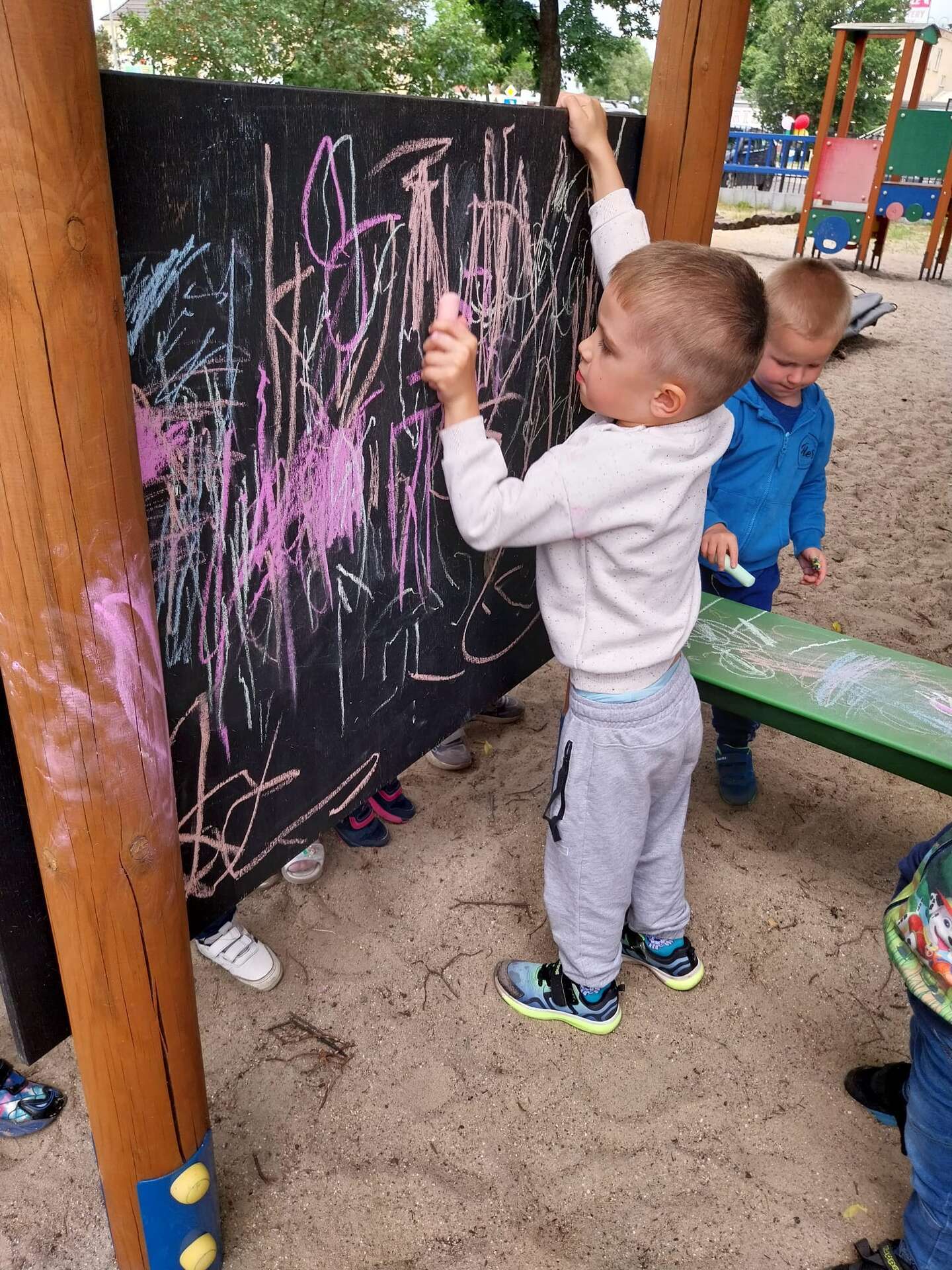 Dzieci rysują kredą