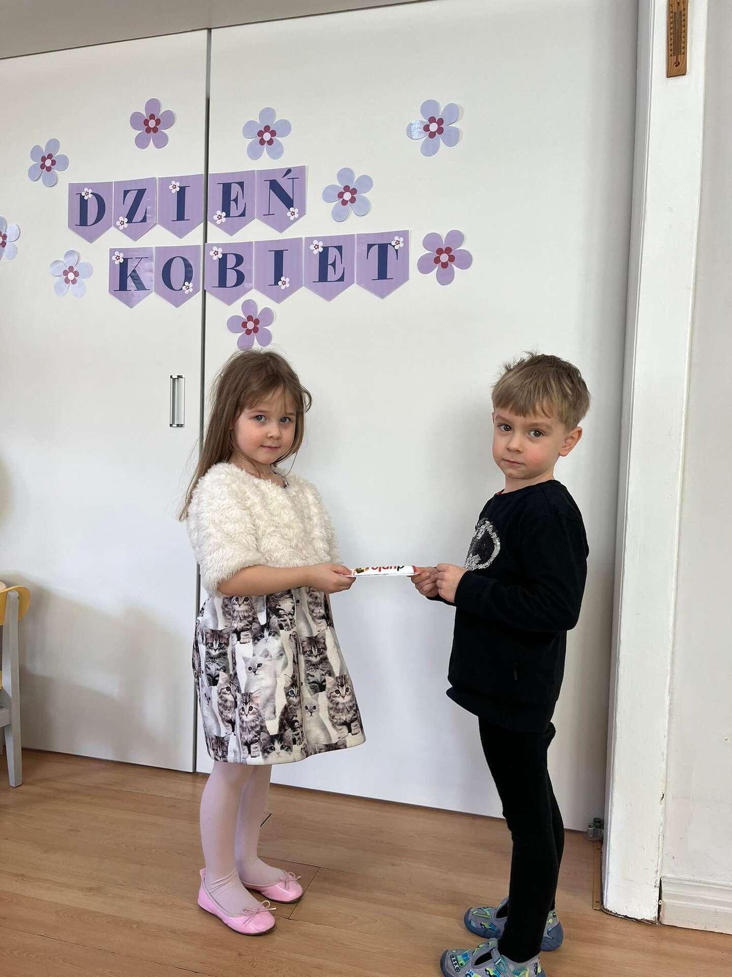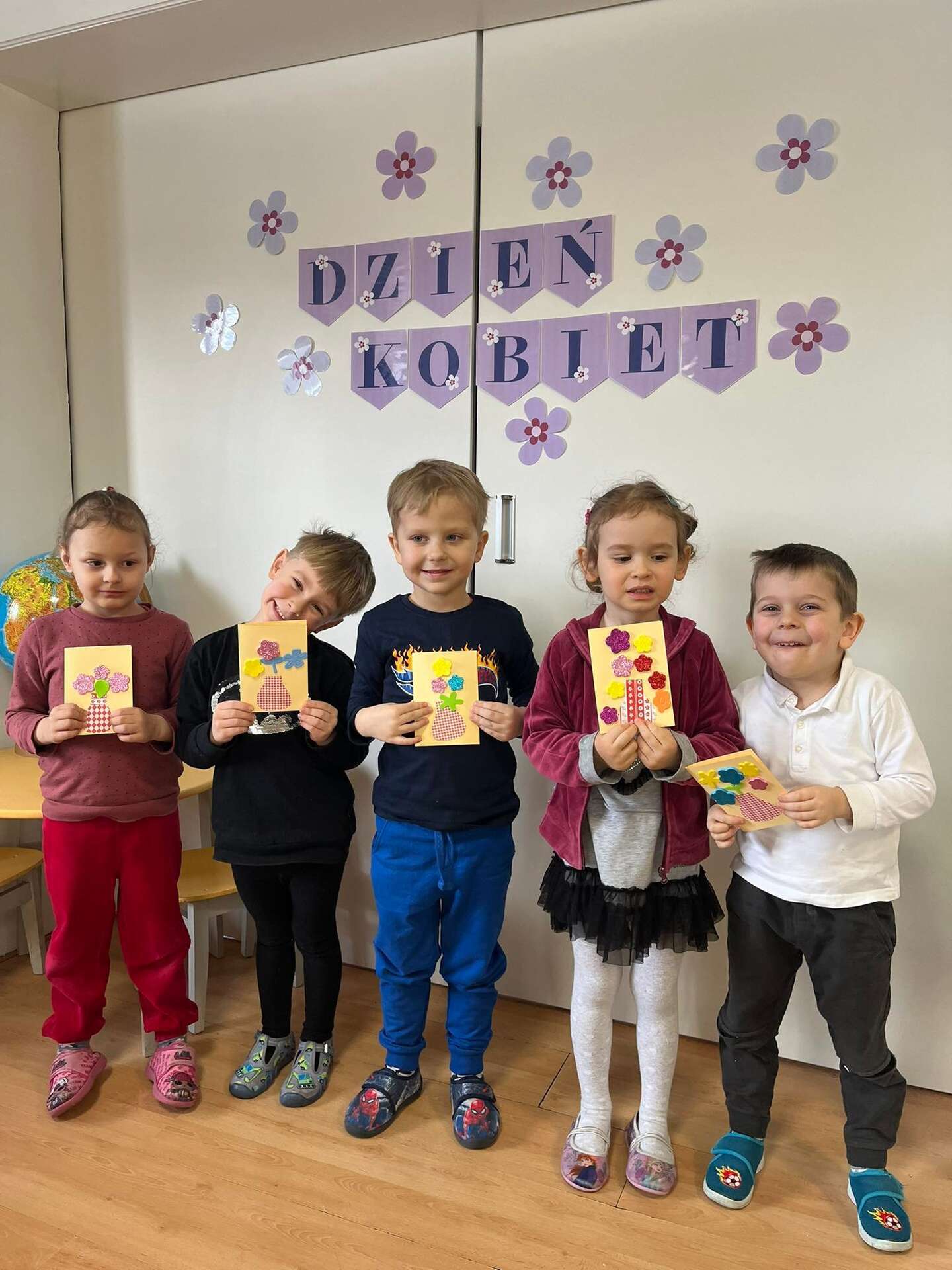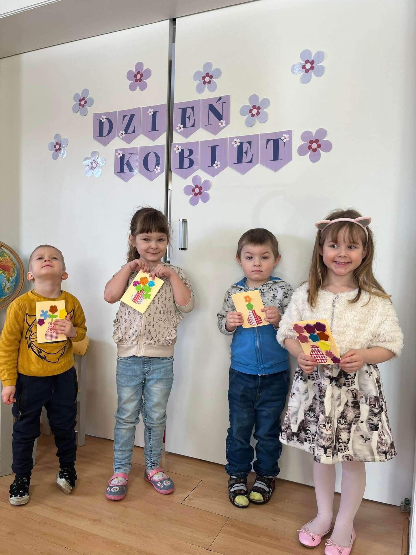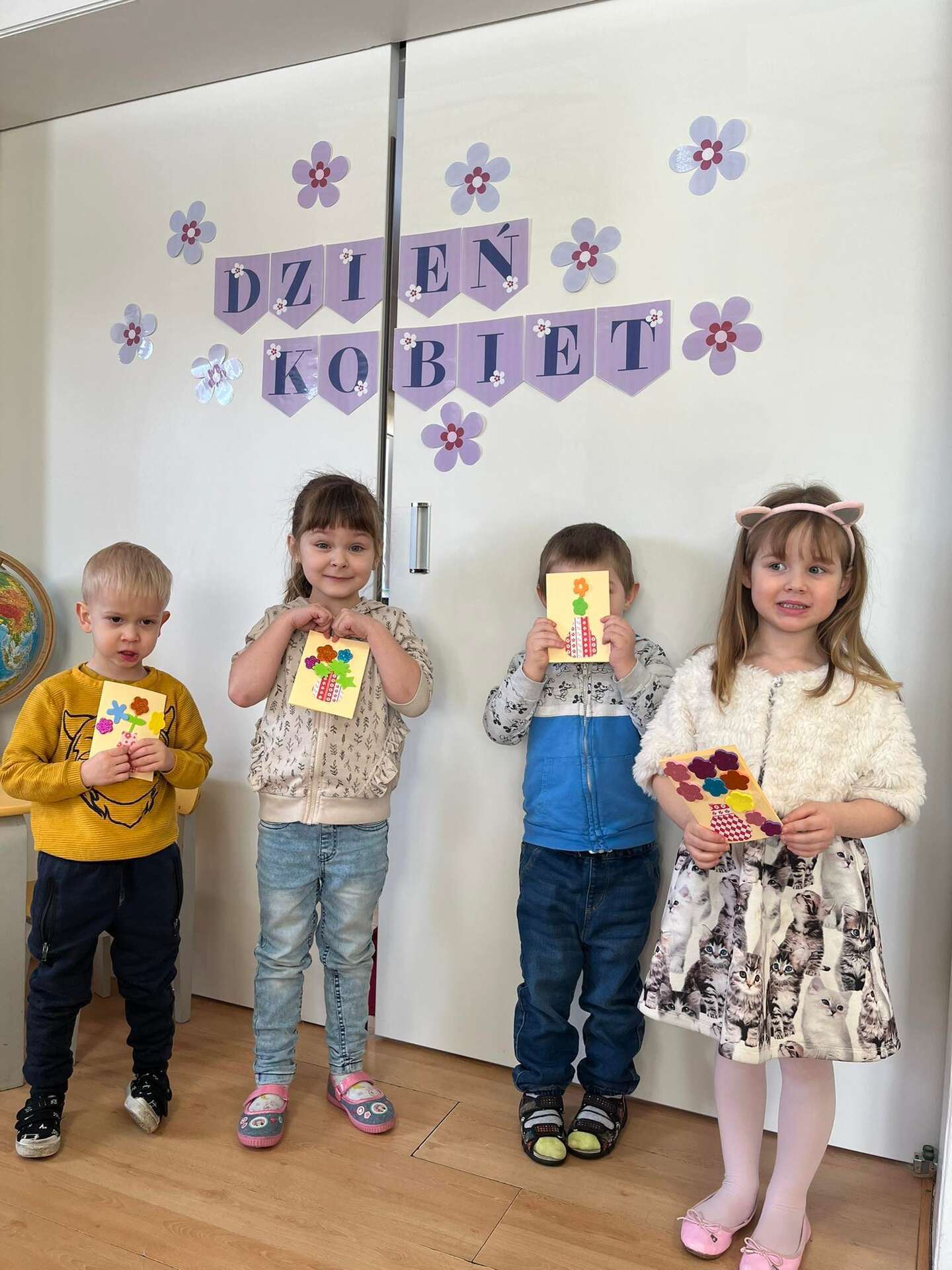 Dzieci stoją z laurkami