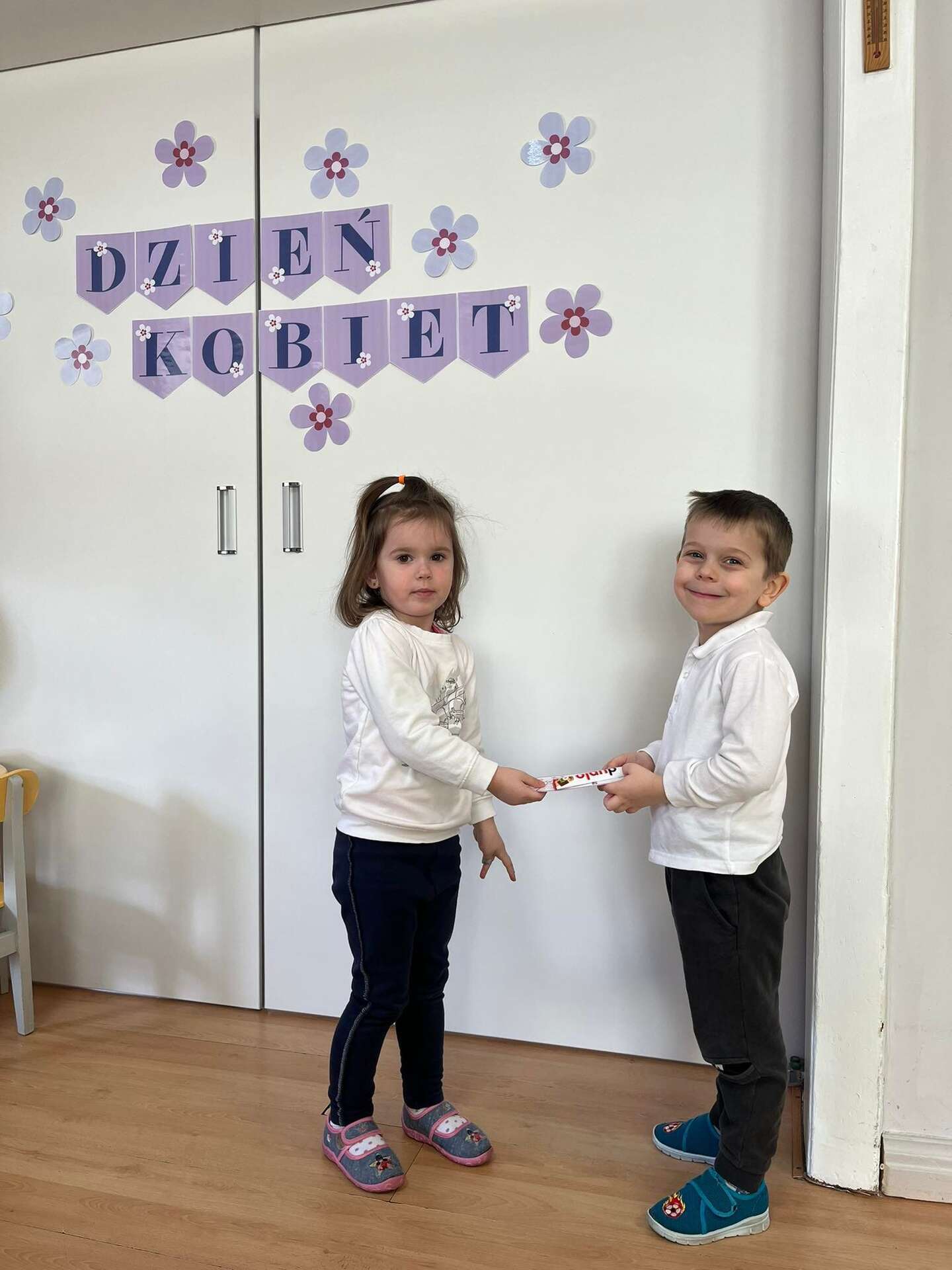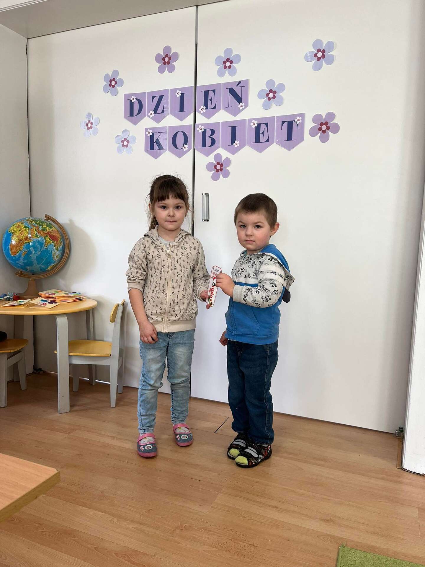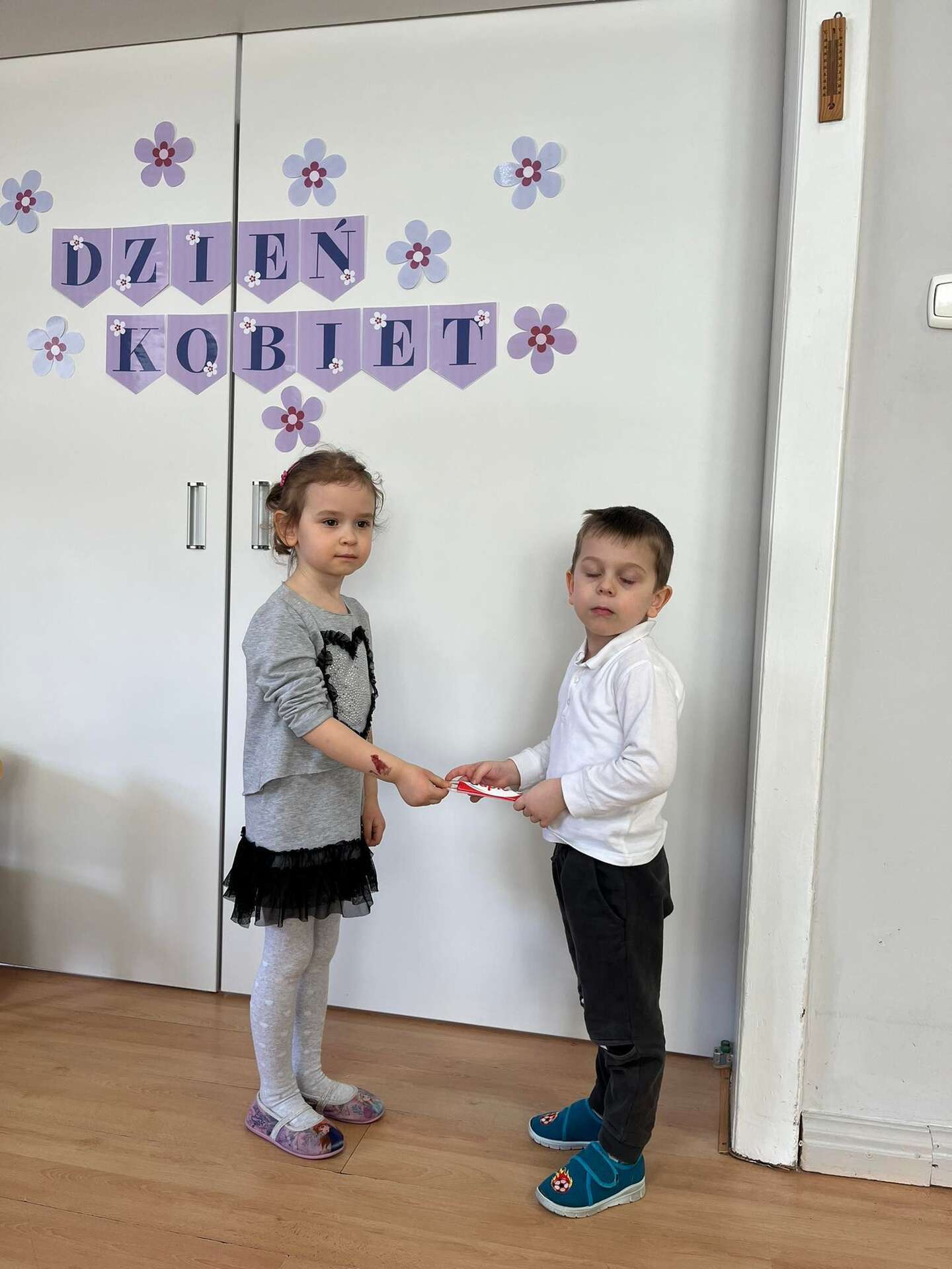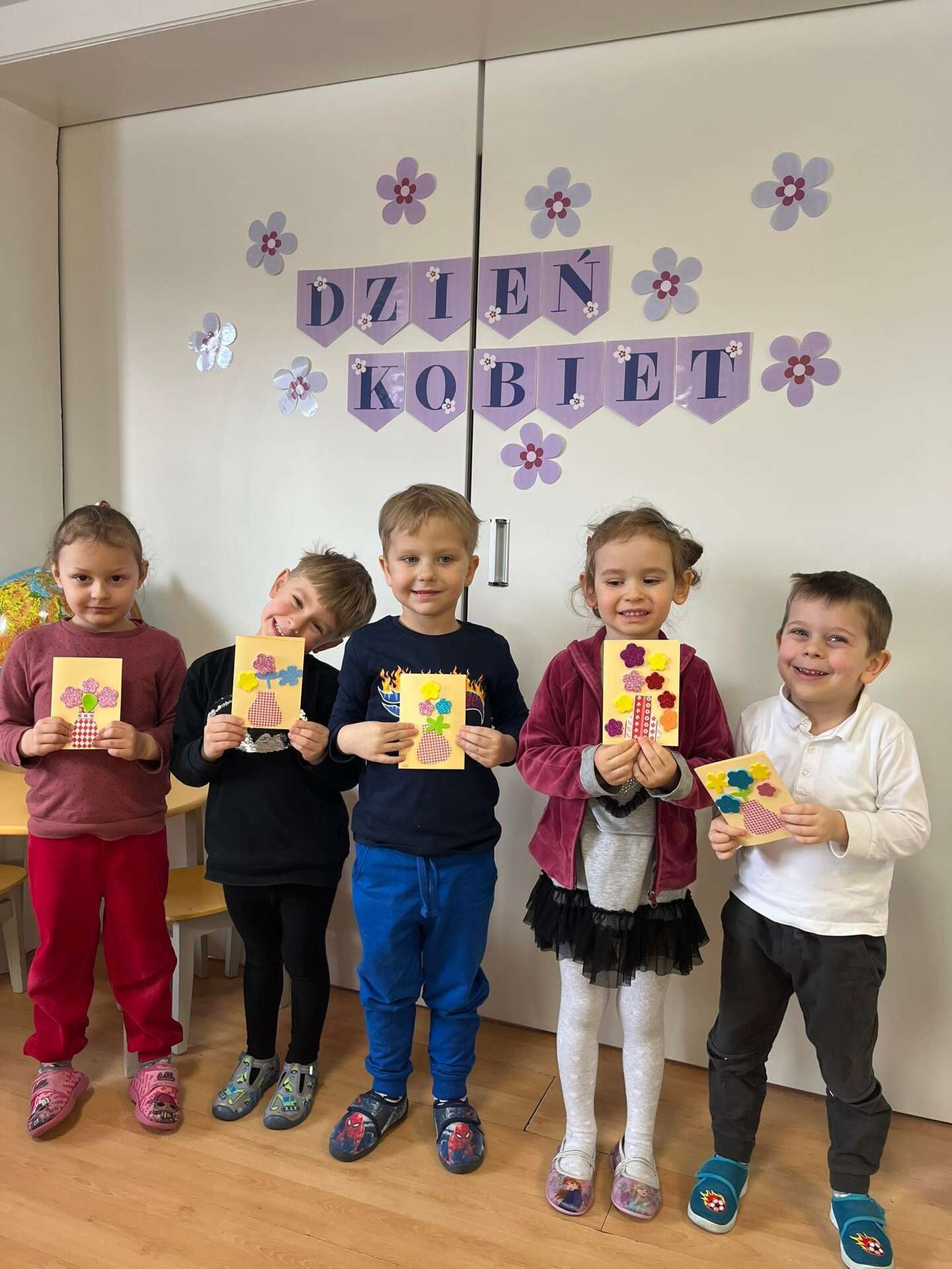Dzieci stoją z laurkami