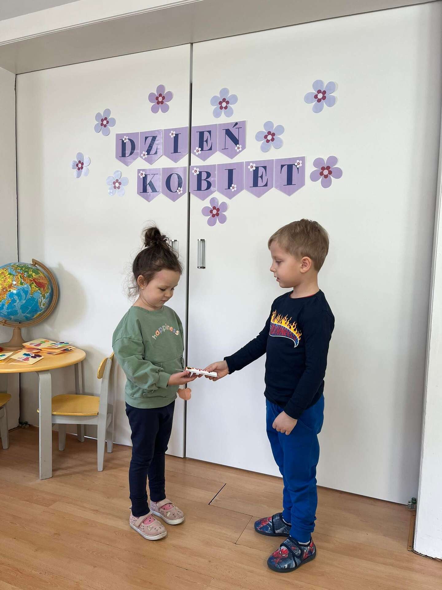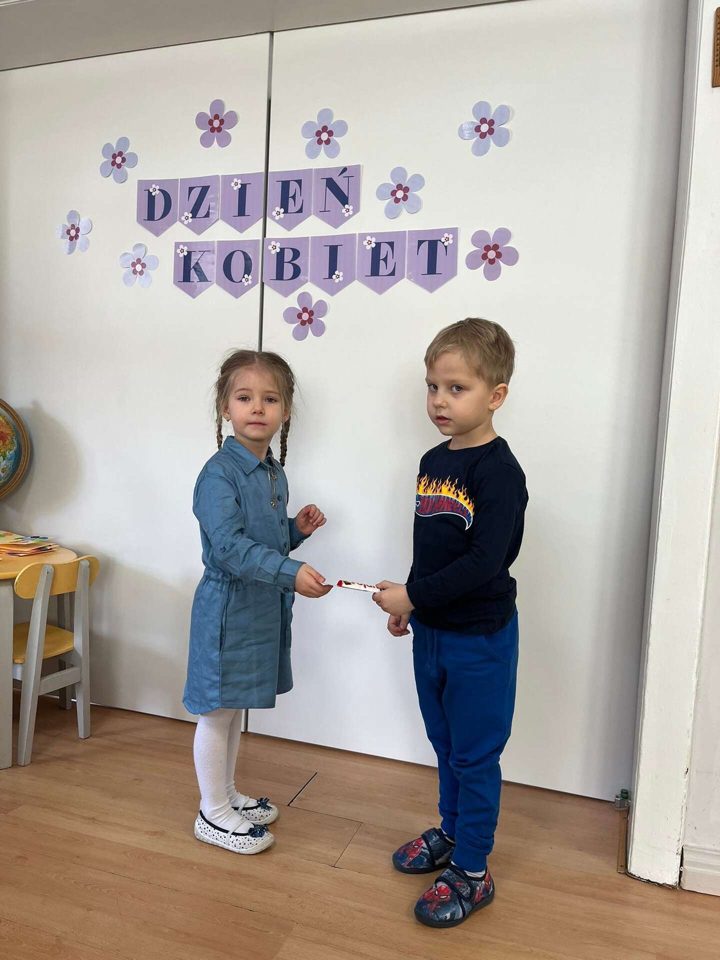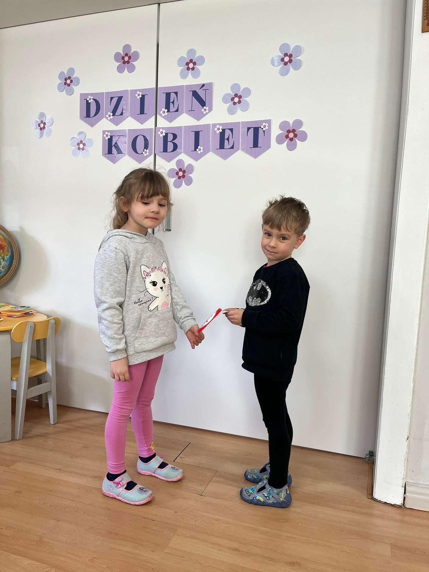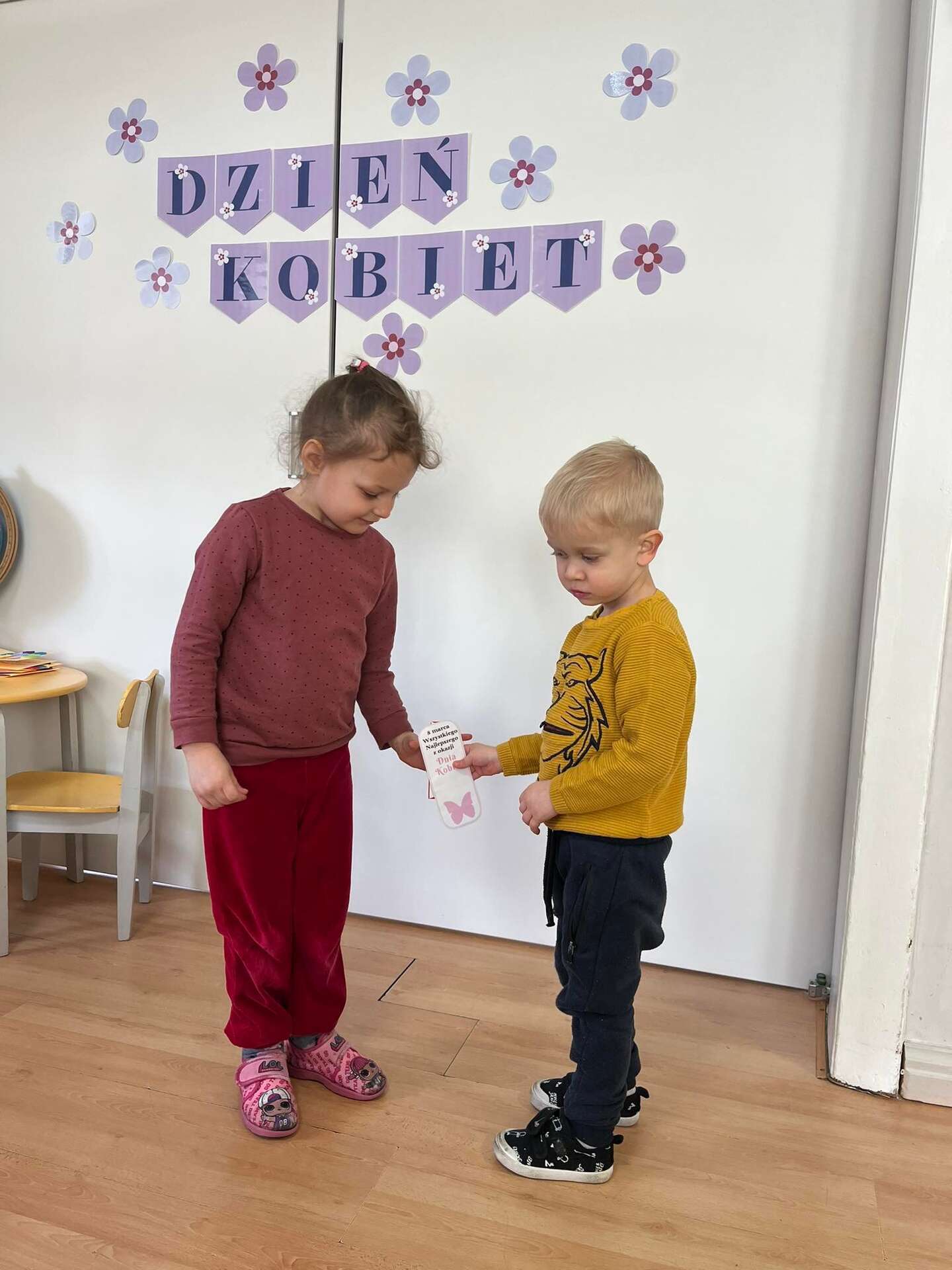 Chłopiec wręcz upominek dziewczynce