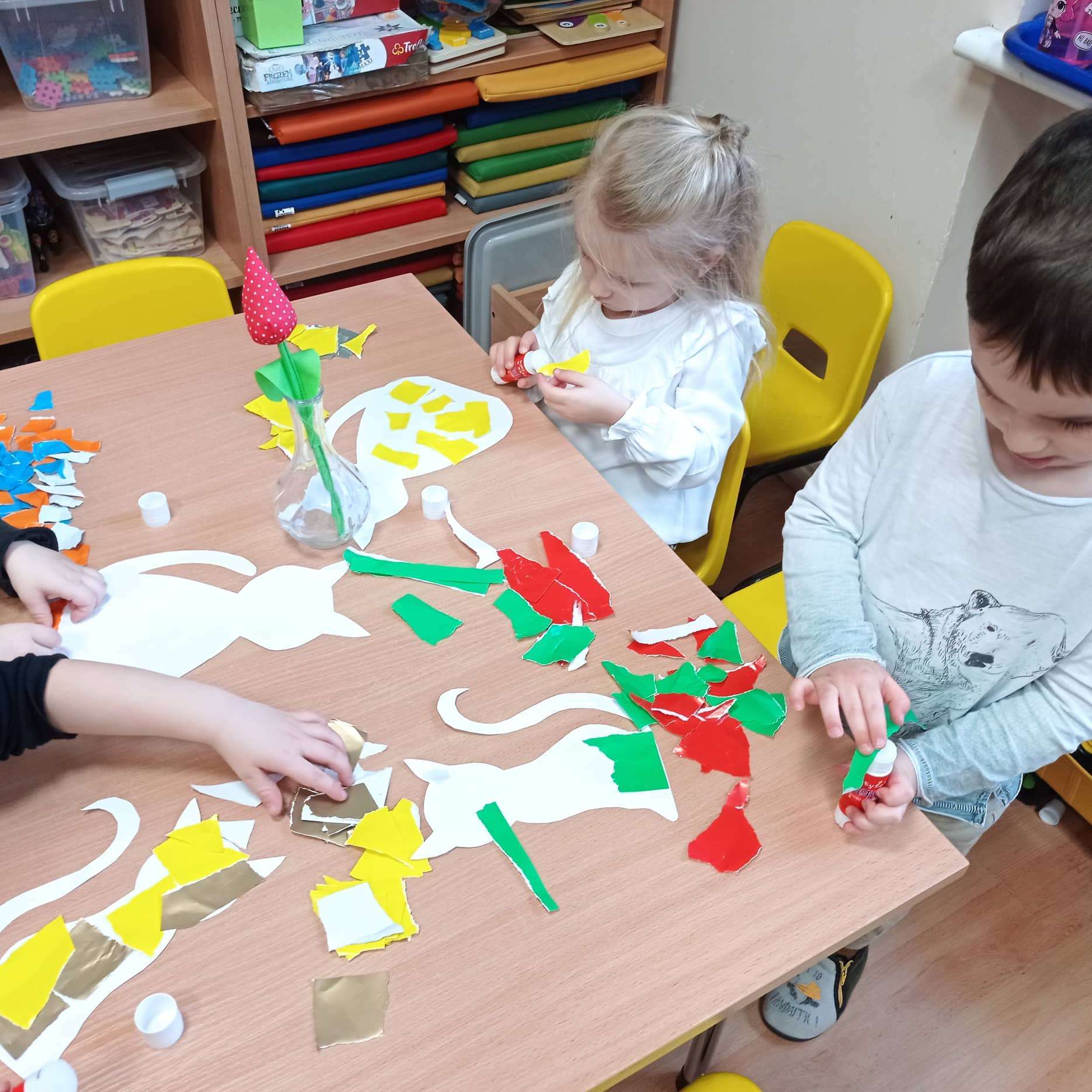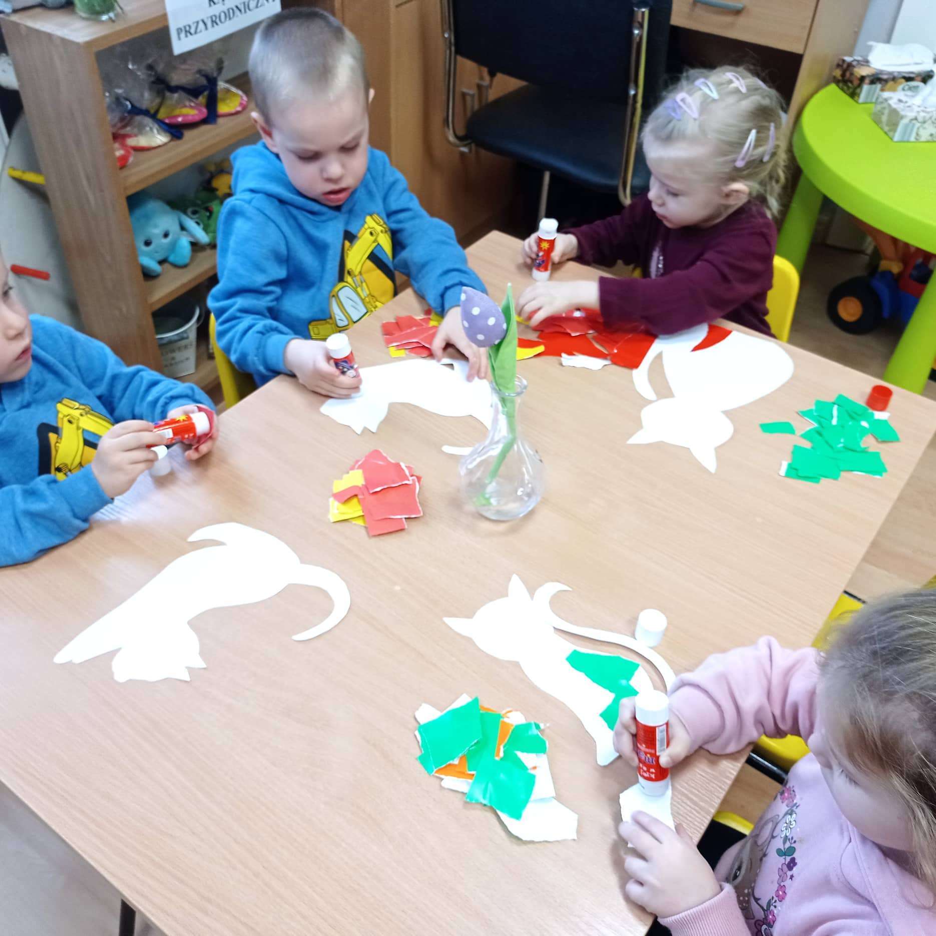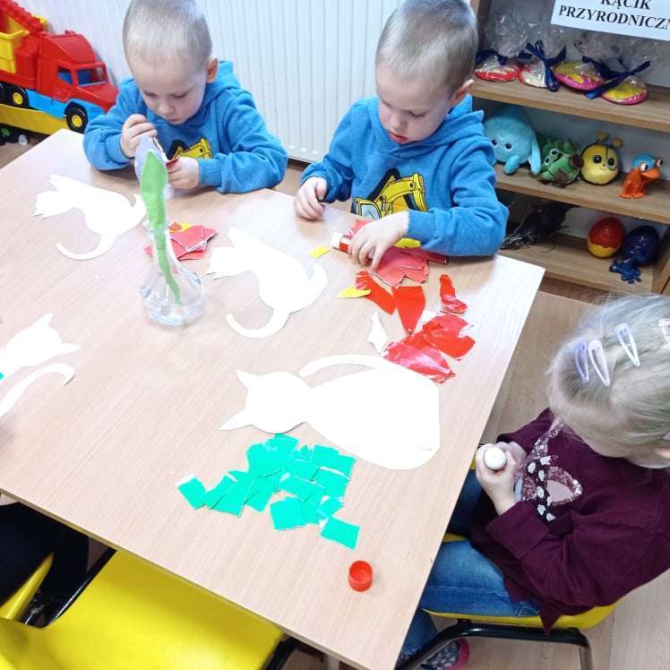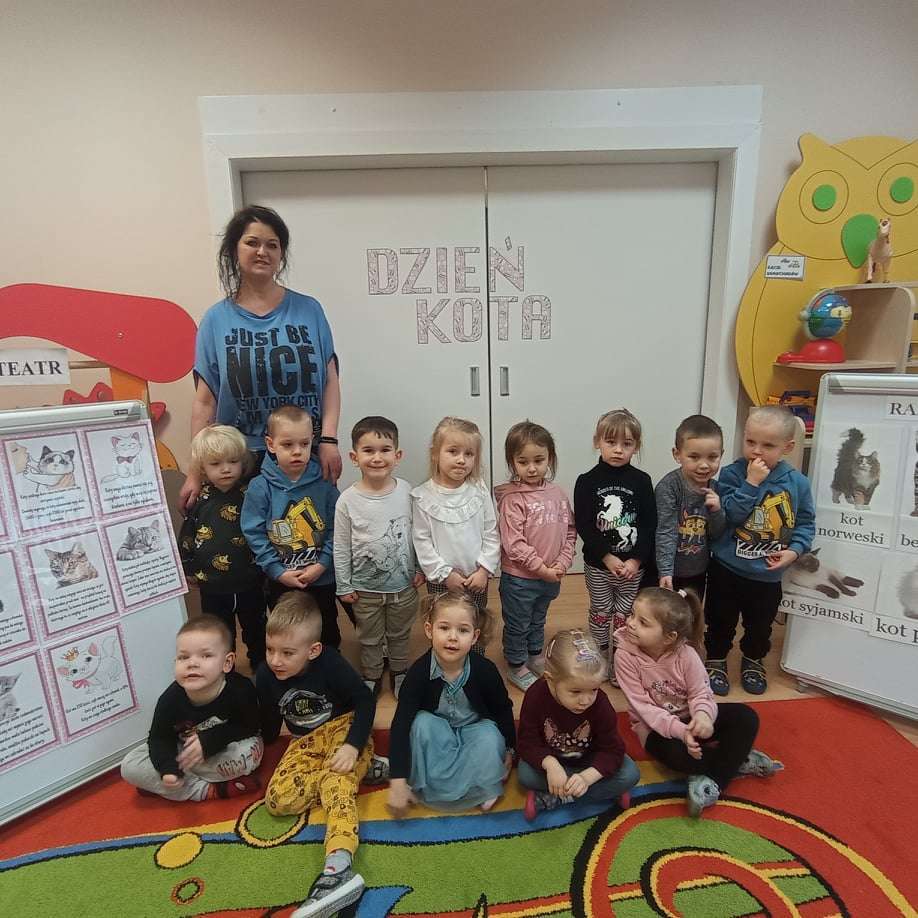 17 lutego obchodziliśmy Międzynarodowy Dzień Kota. Święto to obchodzi się, aby podkreślić znaczenie kotów w życiu człowieka a także uwrażliwić ludzi na często trudny los tych czworonogów. Dzieci poznały nowe wiersze i piosenki o kotkach oraz dowiedziały się w jaki sposób należy dbać o swoich kocich przyjaciół. Uczestniczyły również w zabawach i konkursach, podczas których mogły naśladować zachowanie kotów. Na zajęciach plastycznych wykonały prace przedstawiające bohaterów tego święta.