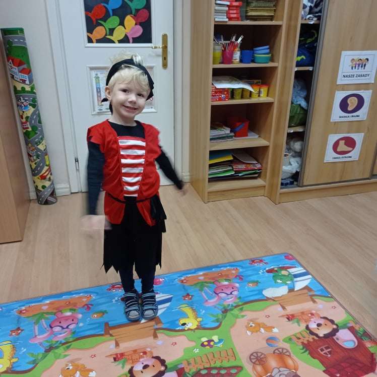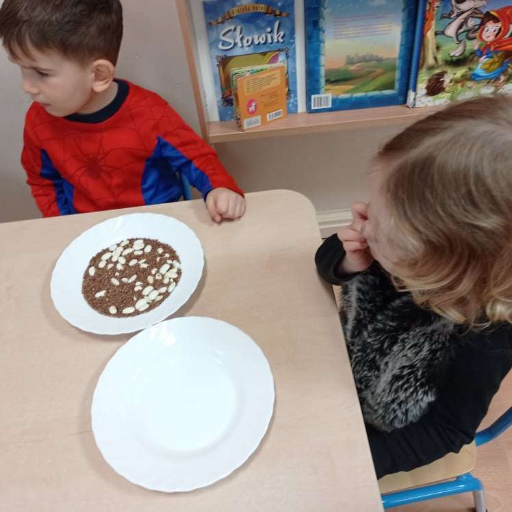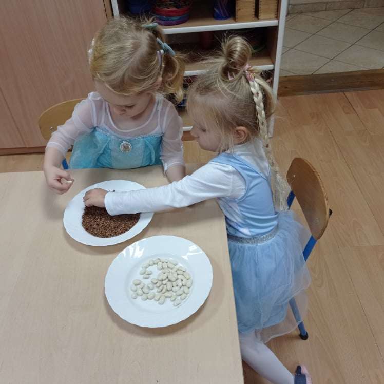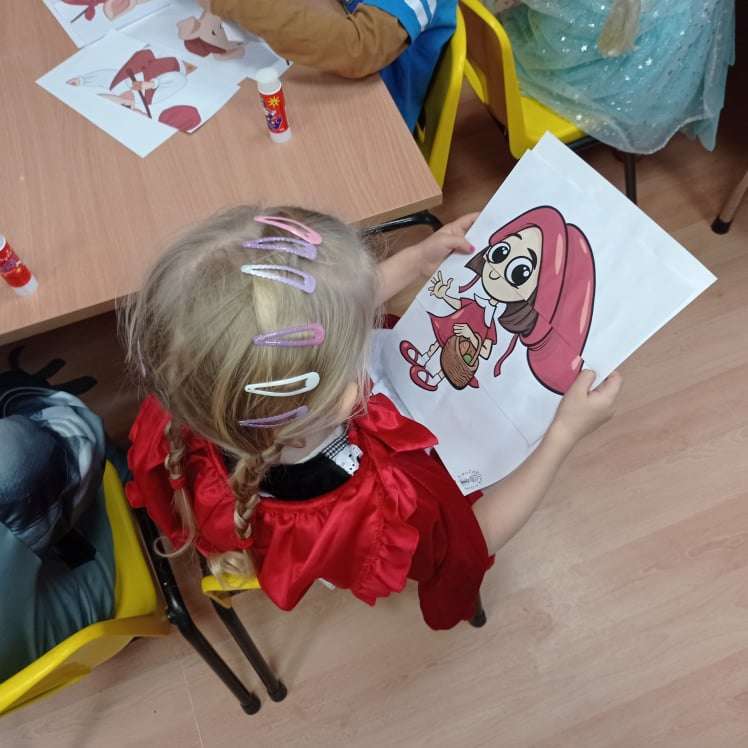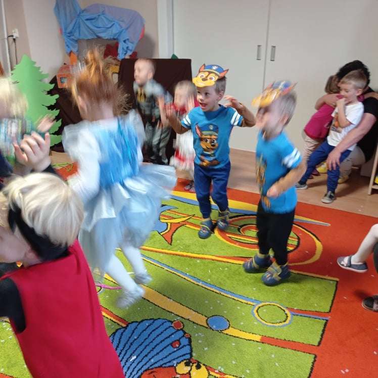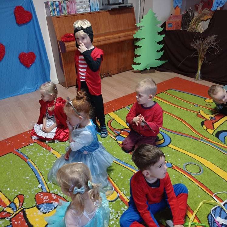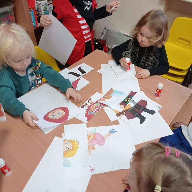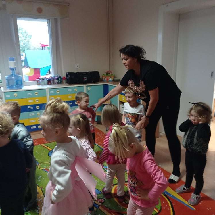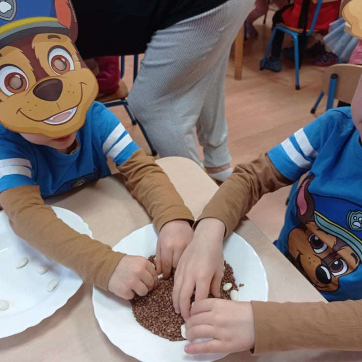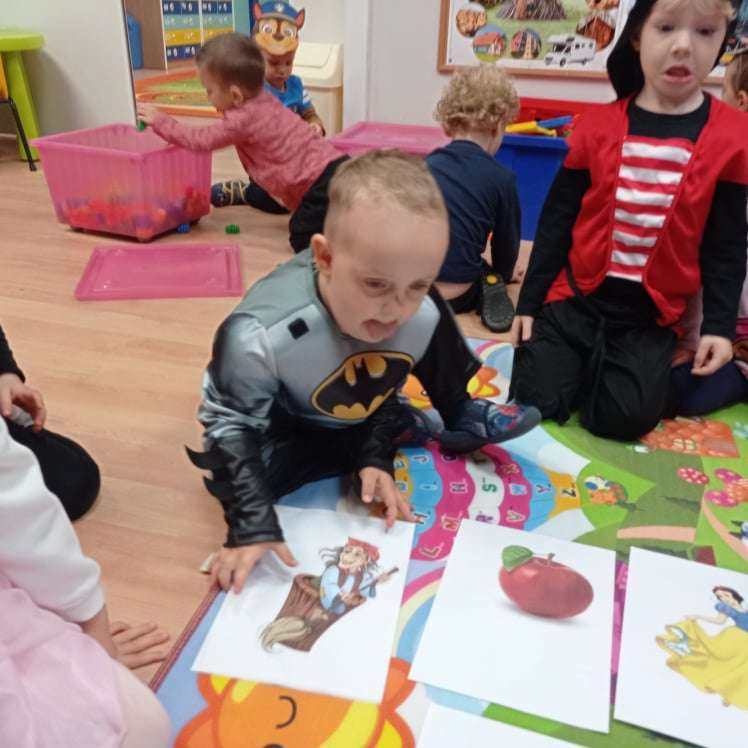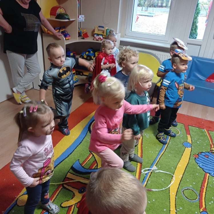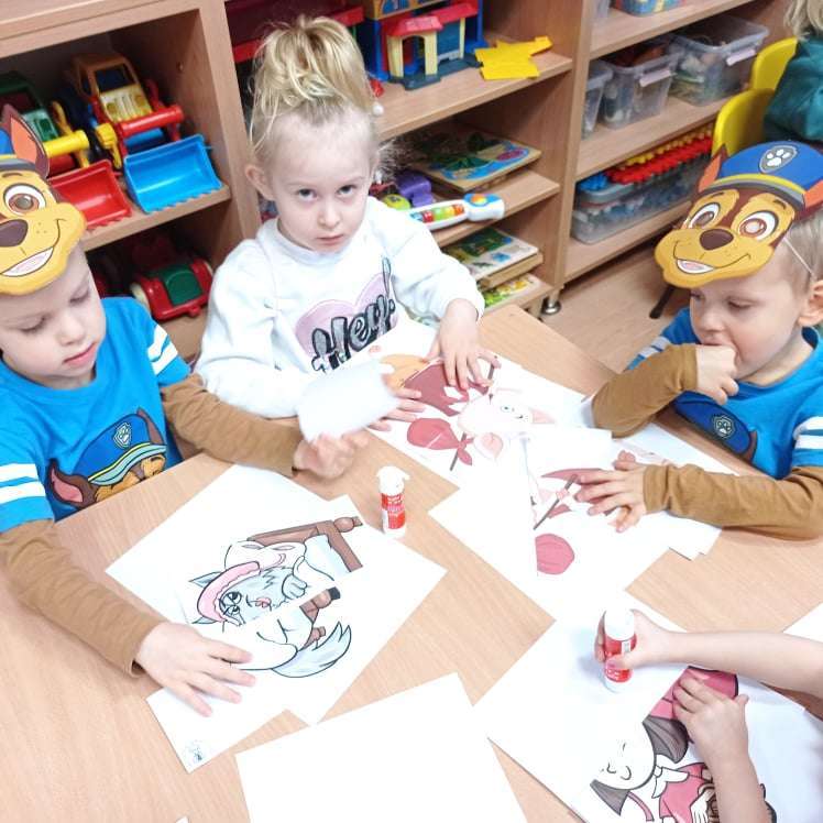 Tego dnia dzieci z grupy I spędziły czas na zabawach wymagających wykazania się znajomością treści bajek, tych znanych i mniej znanych. Dzieci rozwiązywały zagadki, rozpoznawały bajkę po rekwizycie, pomagały Kopciuszkowi oddzielić fasolę od kaszy, układały bajkowe puzzle i przyklejały na kartkę. Były muzyczne zgadywanki bajkowe, zabawy ruchowe oraz prezentacja dziecięcych bajkowych przebrań. Przedszkolaki dostały również zadanie do domu. Dzieci bardzo dobrze znają bajki i świetnie radziły sobie z zadaniami.