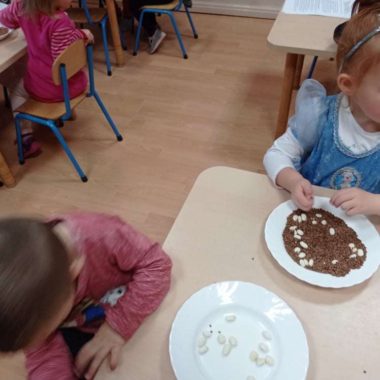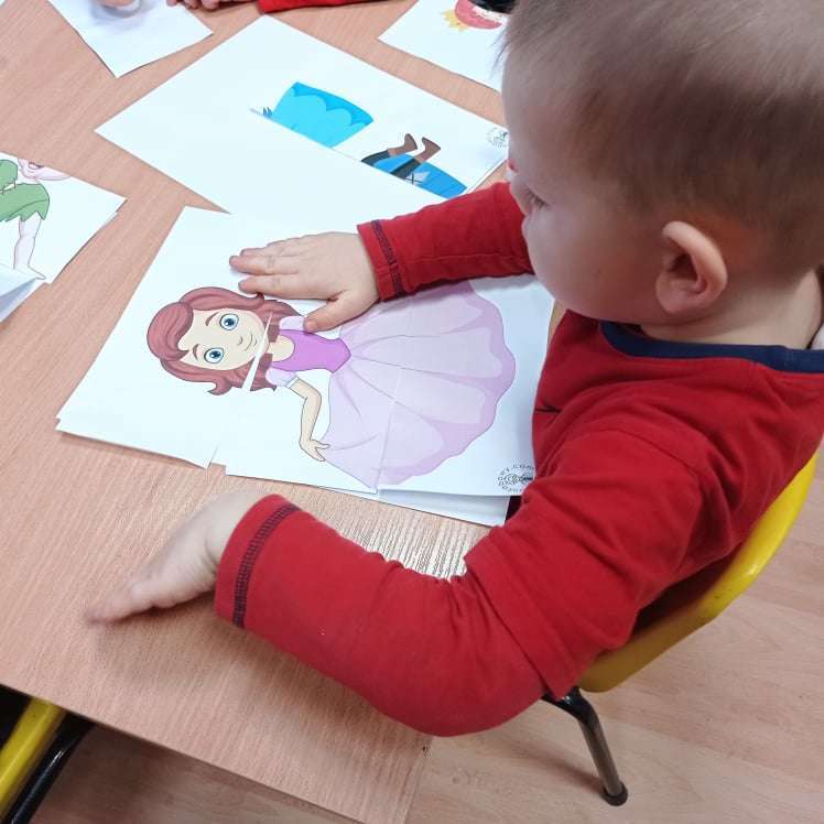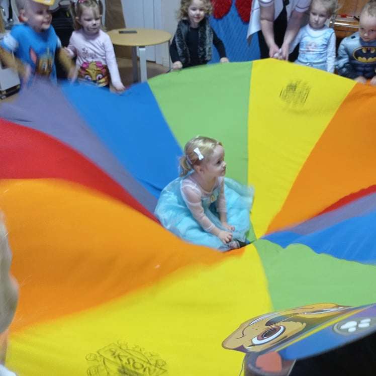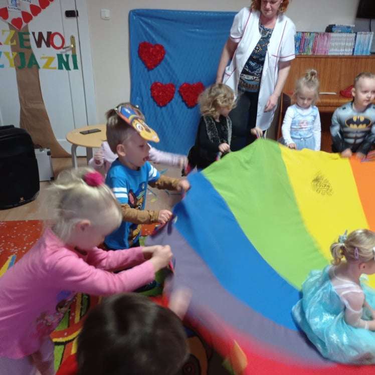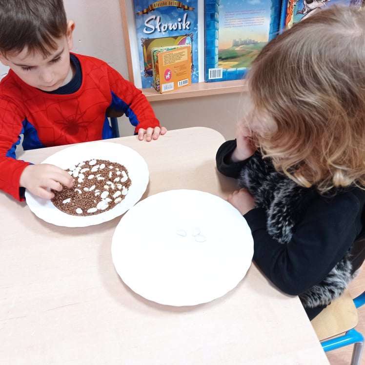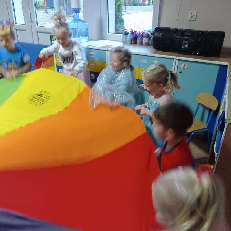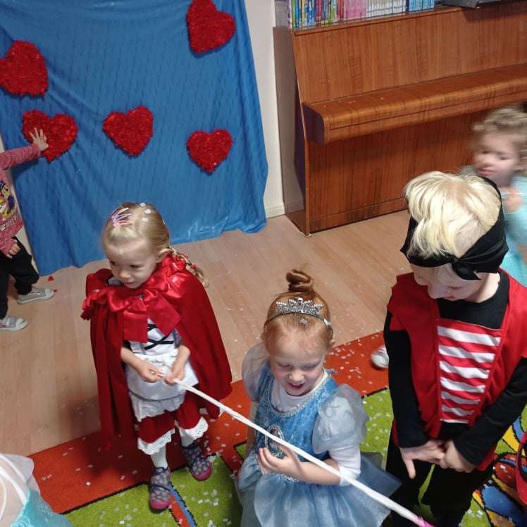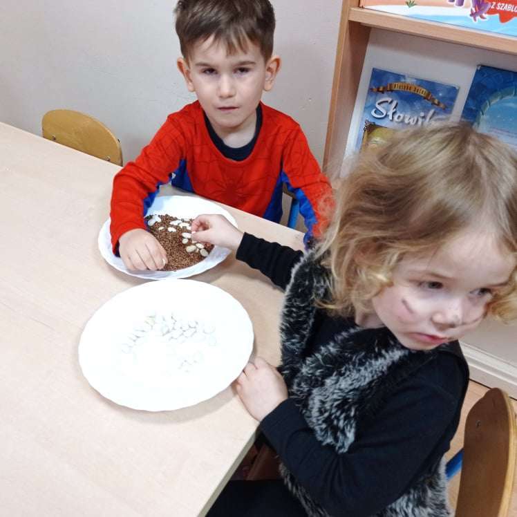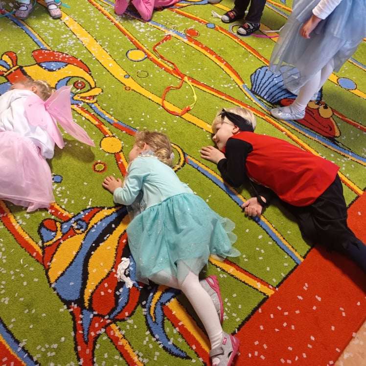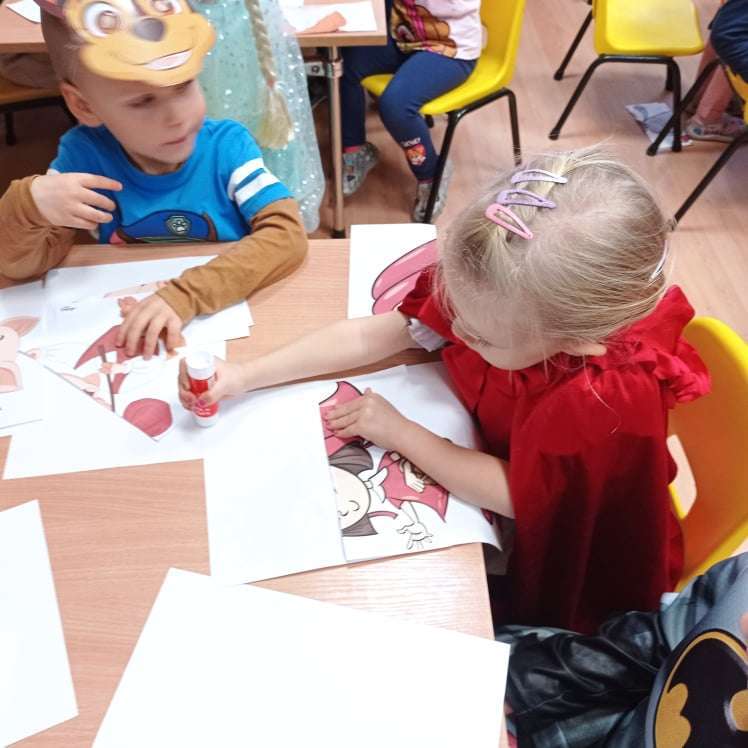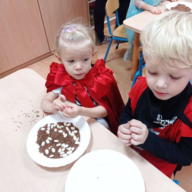 Tego dnia dzieci z grupy I spędziły czas na zabawach wymagających wykazania się znajomością treści bajek, tych znanych i mniej znanych. Dzieci rozwiązywały zagadki, rozpoznawały bajkę po rekwizycie, pomagały Kopciuszkowi oddzielić fasolę od kaszy, układały bajkowe puzzle i przyklejały na kartkę. Były muzyczne zgadywanki bajkowe, zabawy ruchowe oraz prezentacja dziecięcych bajkowych przebrań. Przedszkolaki dostały również zadanie do domu. Dzieci bardzo dobrze znają bajki i świetnie radziły sobie z zadaniami.