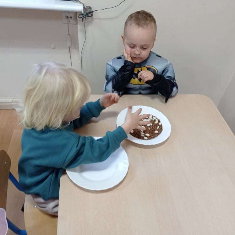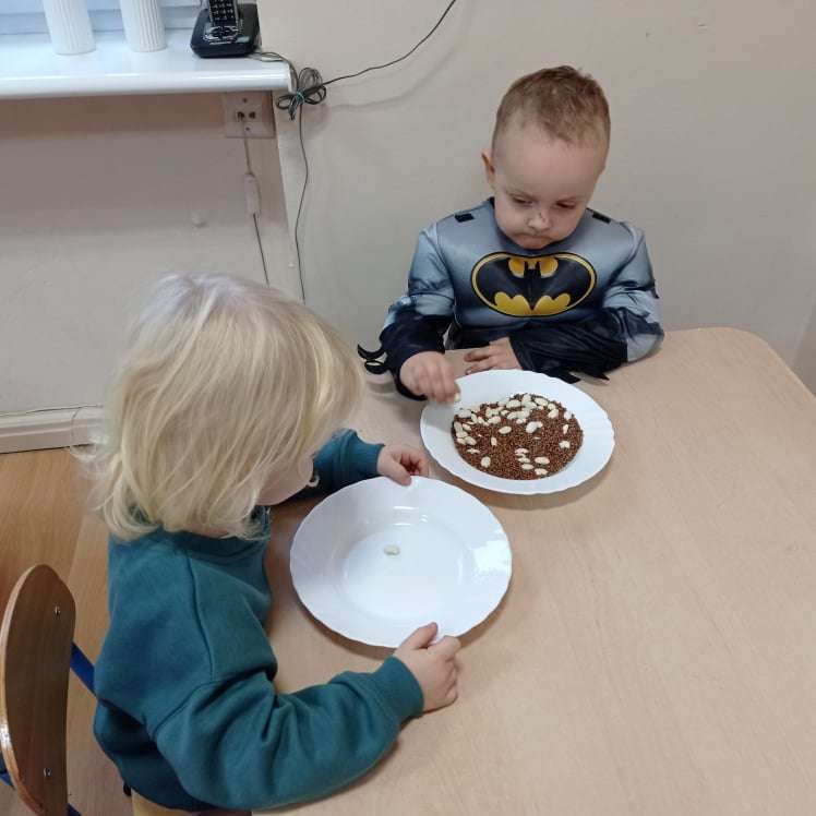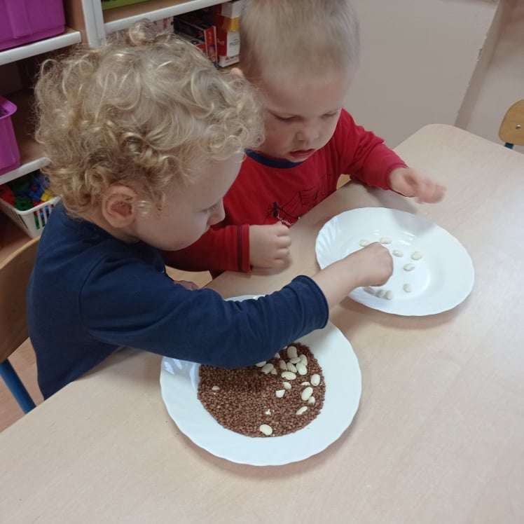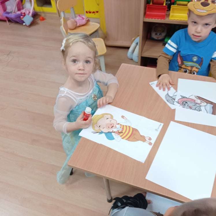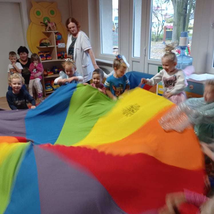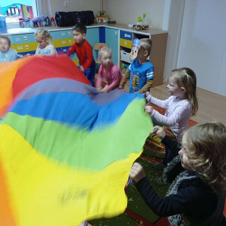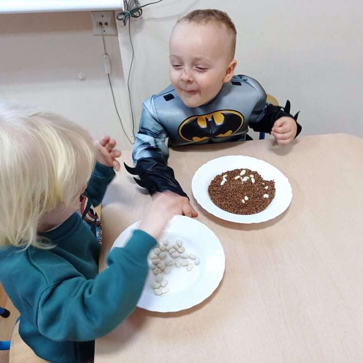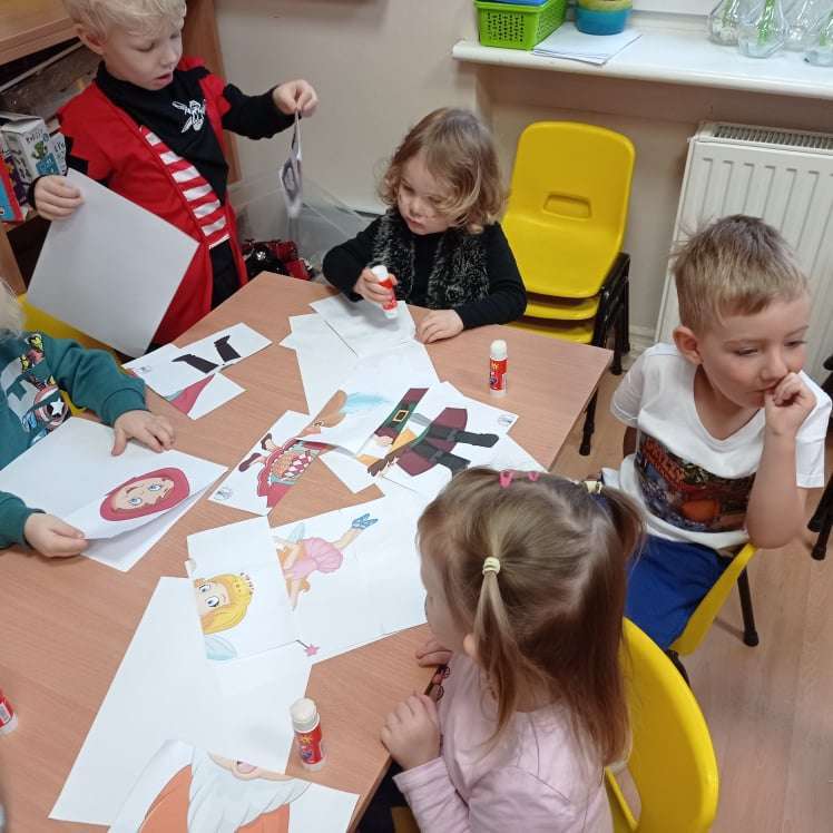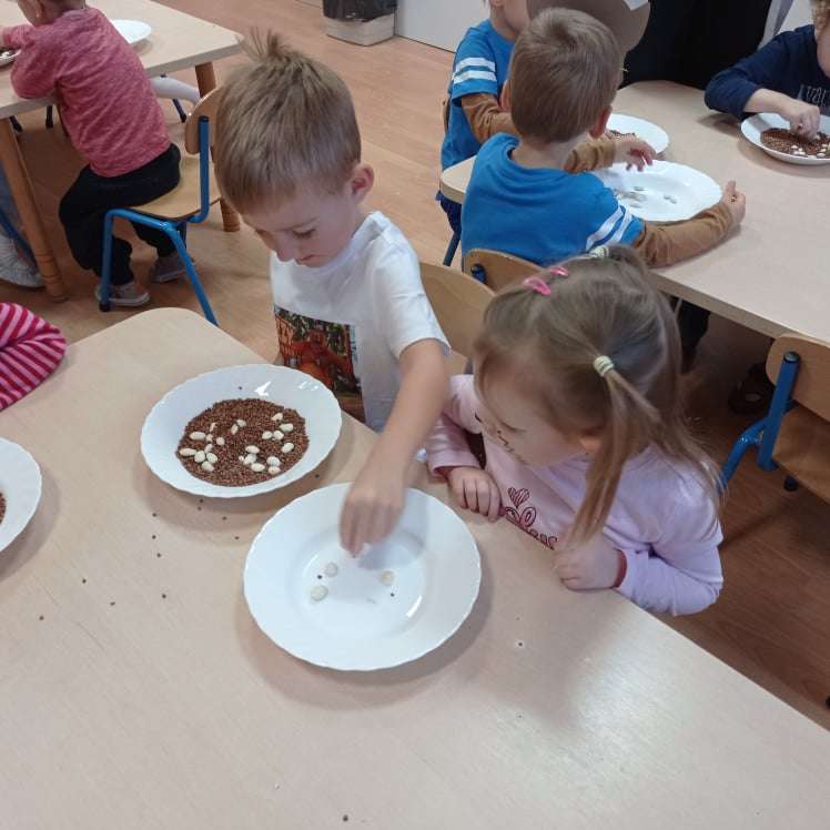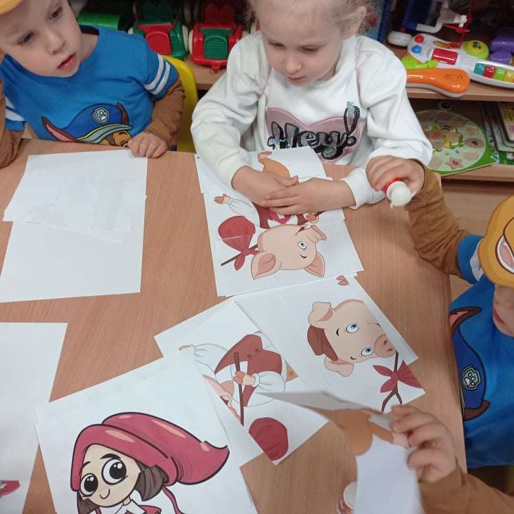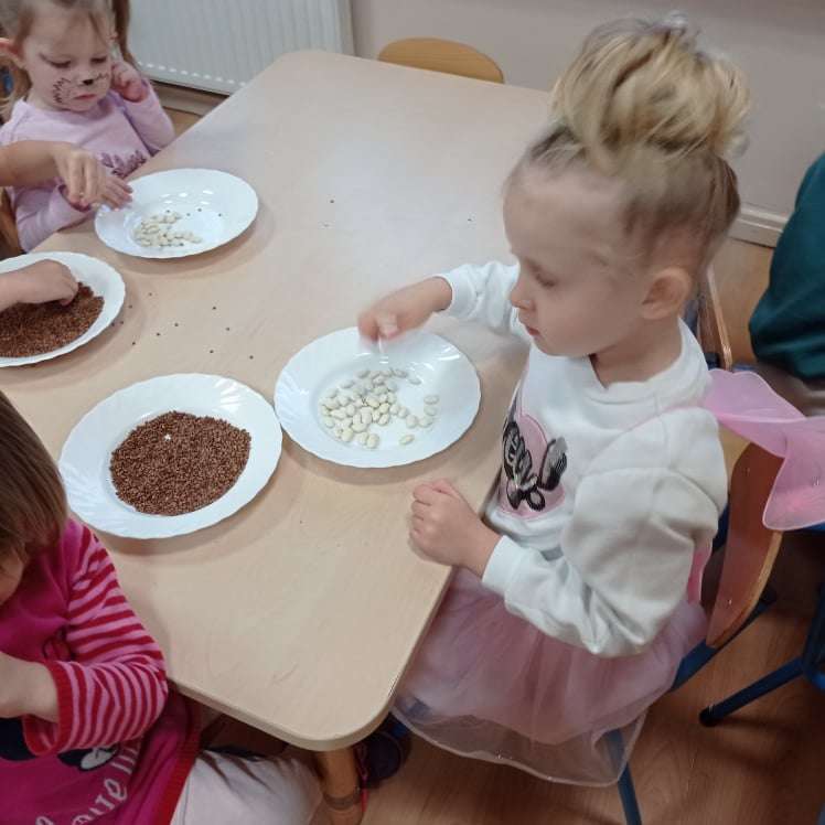Tego dnia dzieci z grupy I spędziły czas na zabawach wymagających wykazania się znajomością treści bajek, tych znanych i mniej znanych. Dzieci rozwiązywały zagadki, rozpoznawały bajkę po rekwizycie, pomagały Kopciuszkowi oddzielić fasolę od kaszy, układały bajkowe puzzle i przyklejały na kartkę. Były muzyczne zgadywanki bajkowe, zabawy ruchowe oraz prezentacja dziecięcych bajkowych przebrań. Przedszkolaki dostały również zadanie do domu. Dzieci bardzo dobrze znają bajki i świetnie radziły sobie z zadaniami.