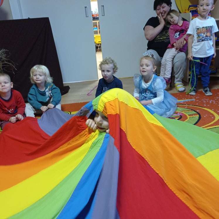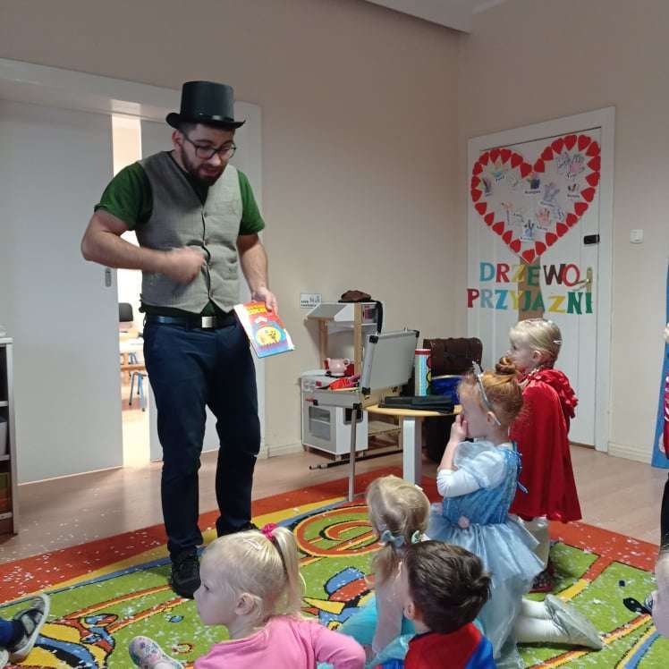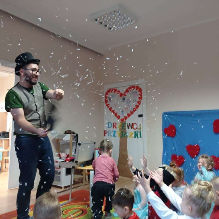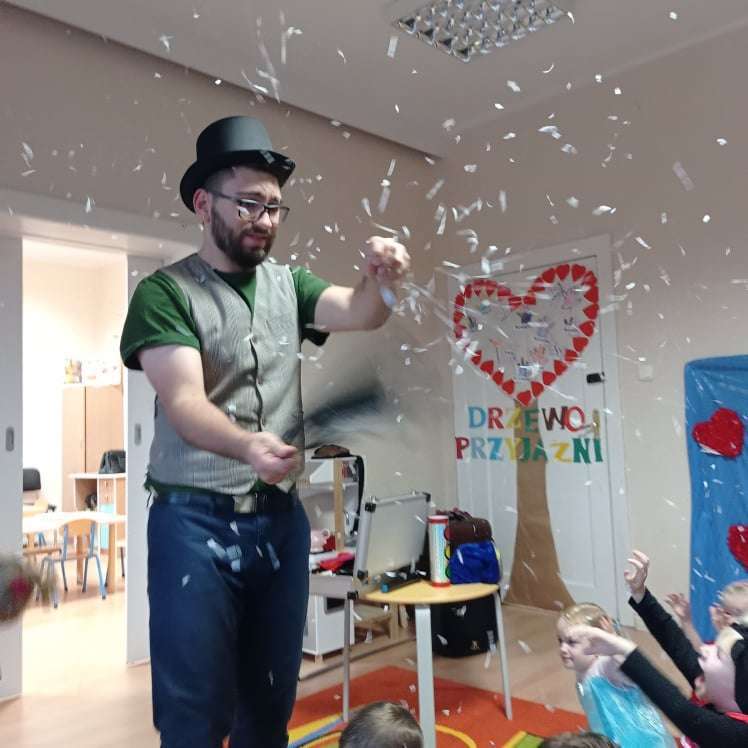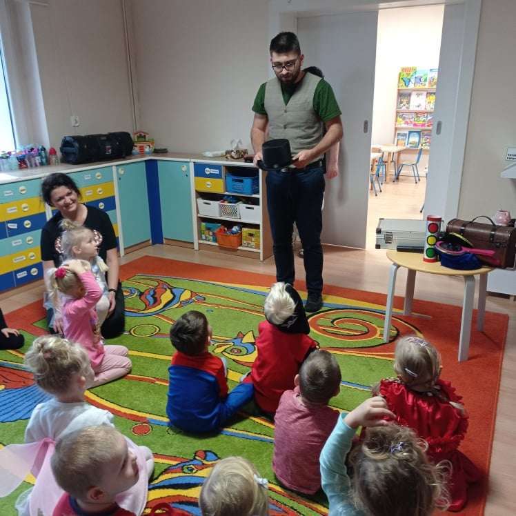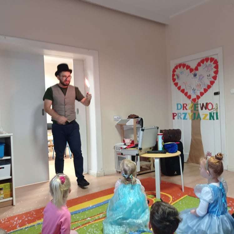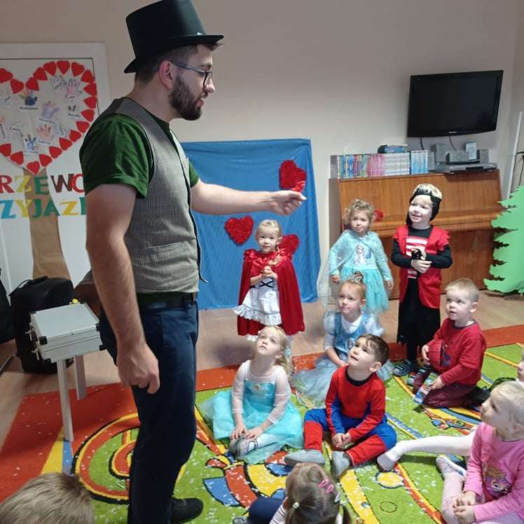 Wielką frajdę sprawił dzieciom animator Amigol, który wprowadził je w świat magii, sprawił, że dzieci śmiały się przez całą godzinę (panie również ). Mamy nadzieję, że rodzice powyciągają te czerwone chustki z nosków dzieci, które to magik (niby) im włożył. :-).