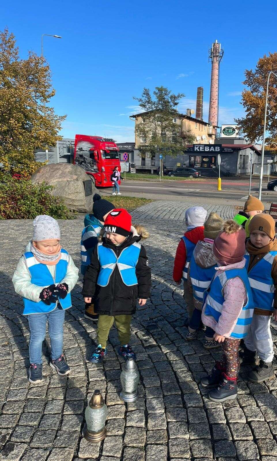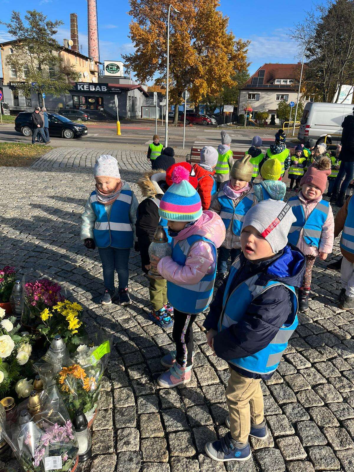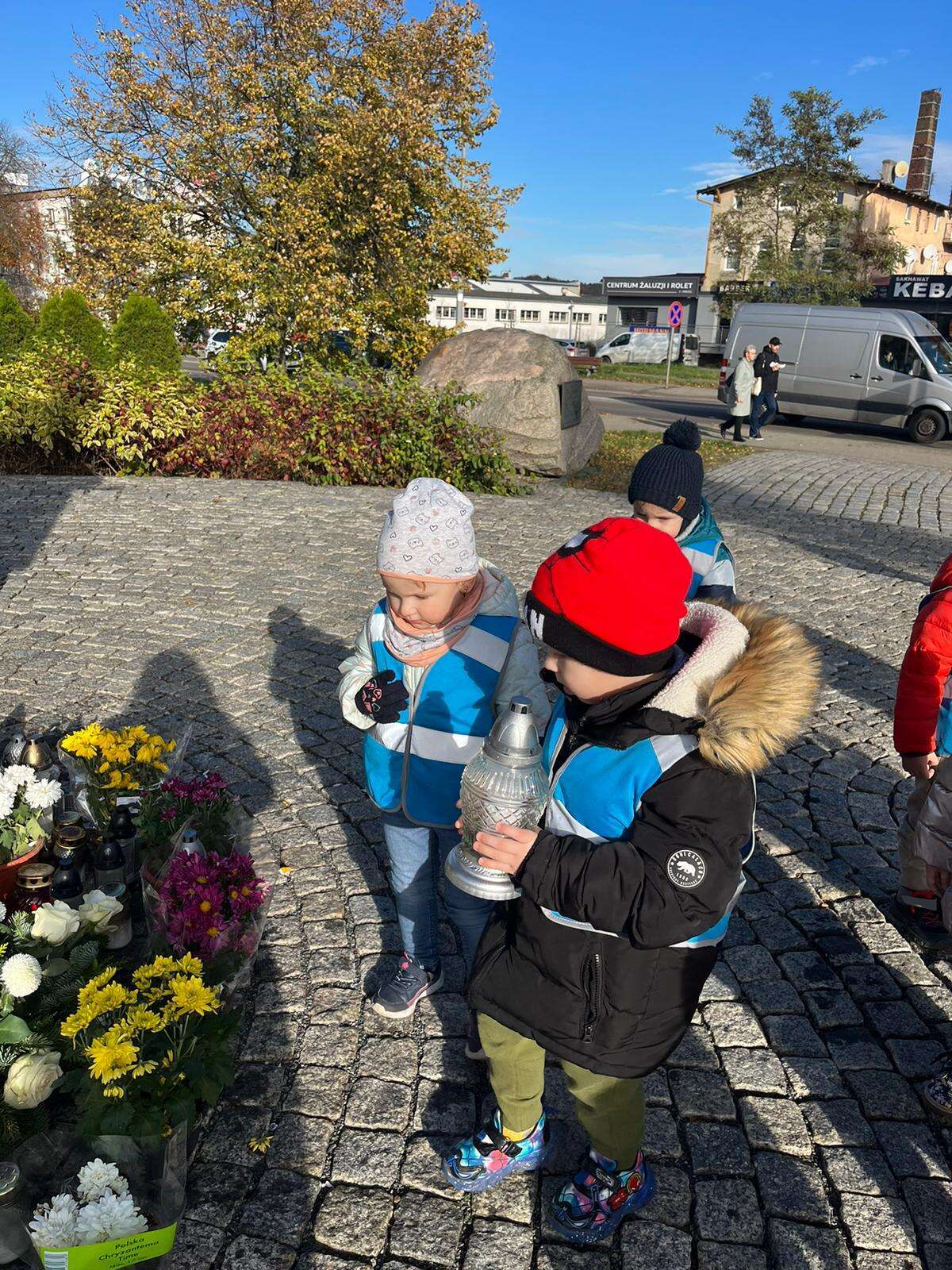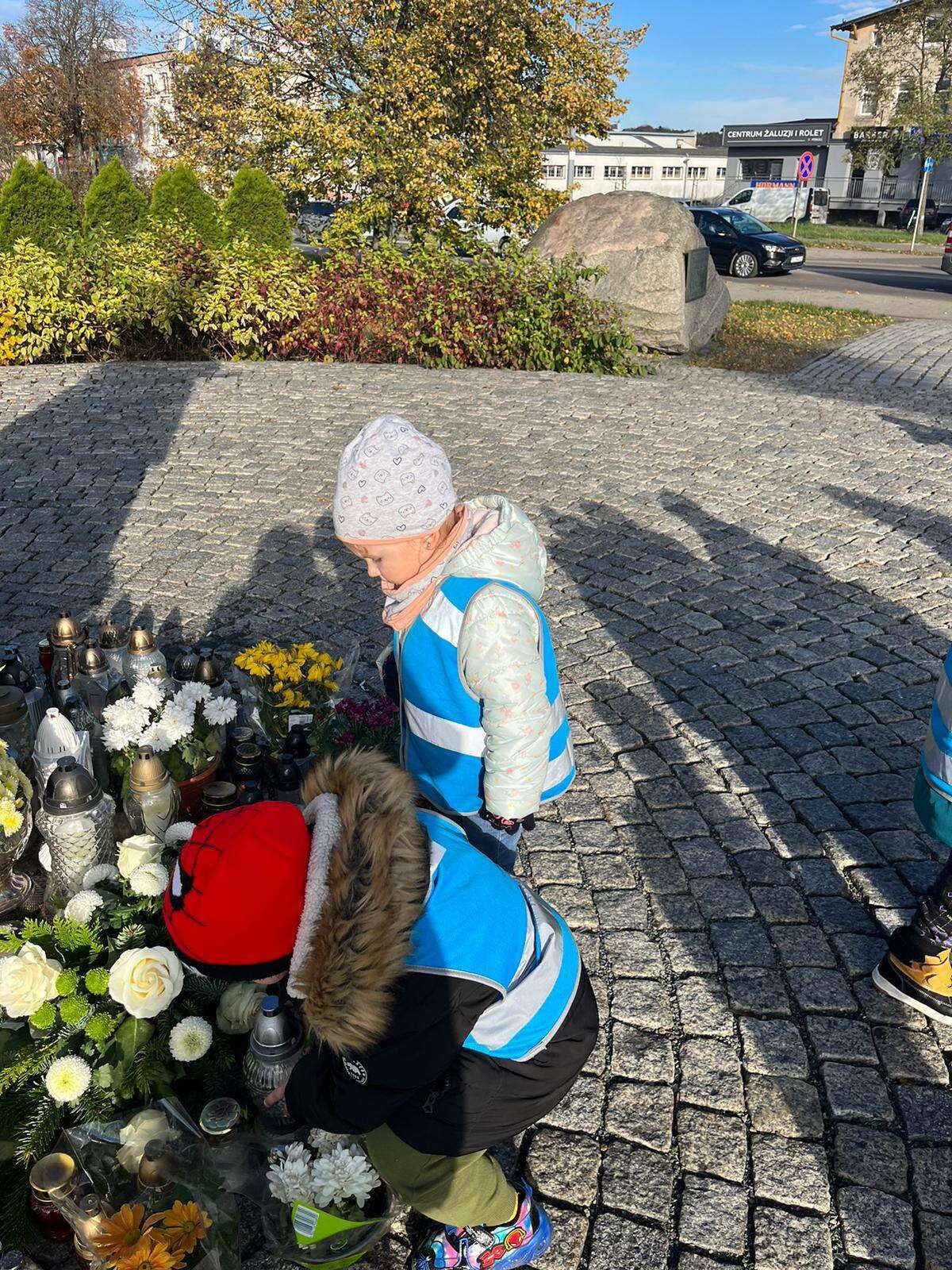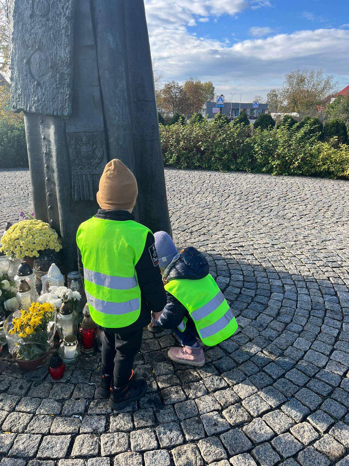 Dzieci stawiają znicz