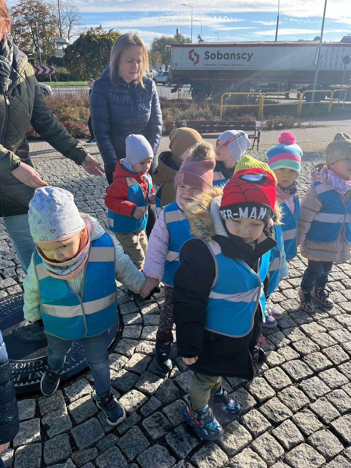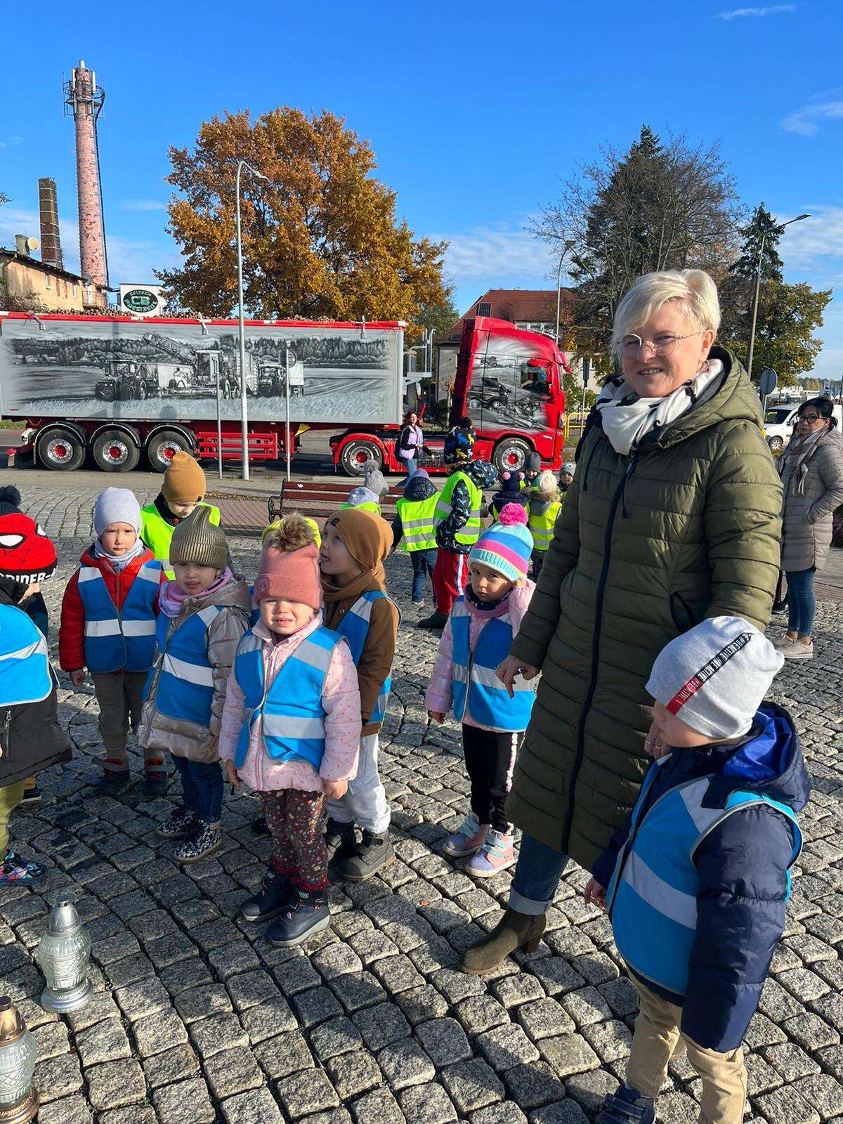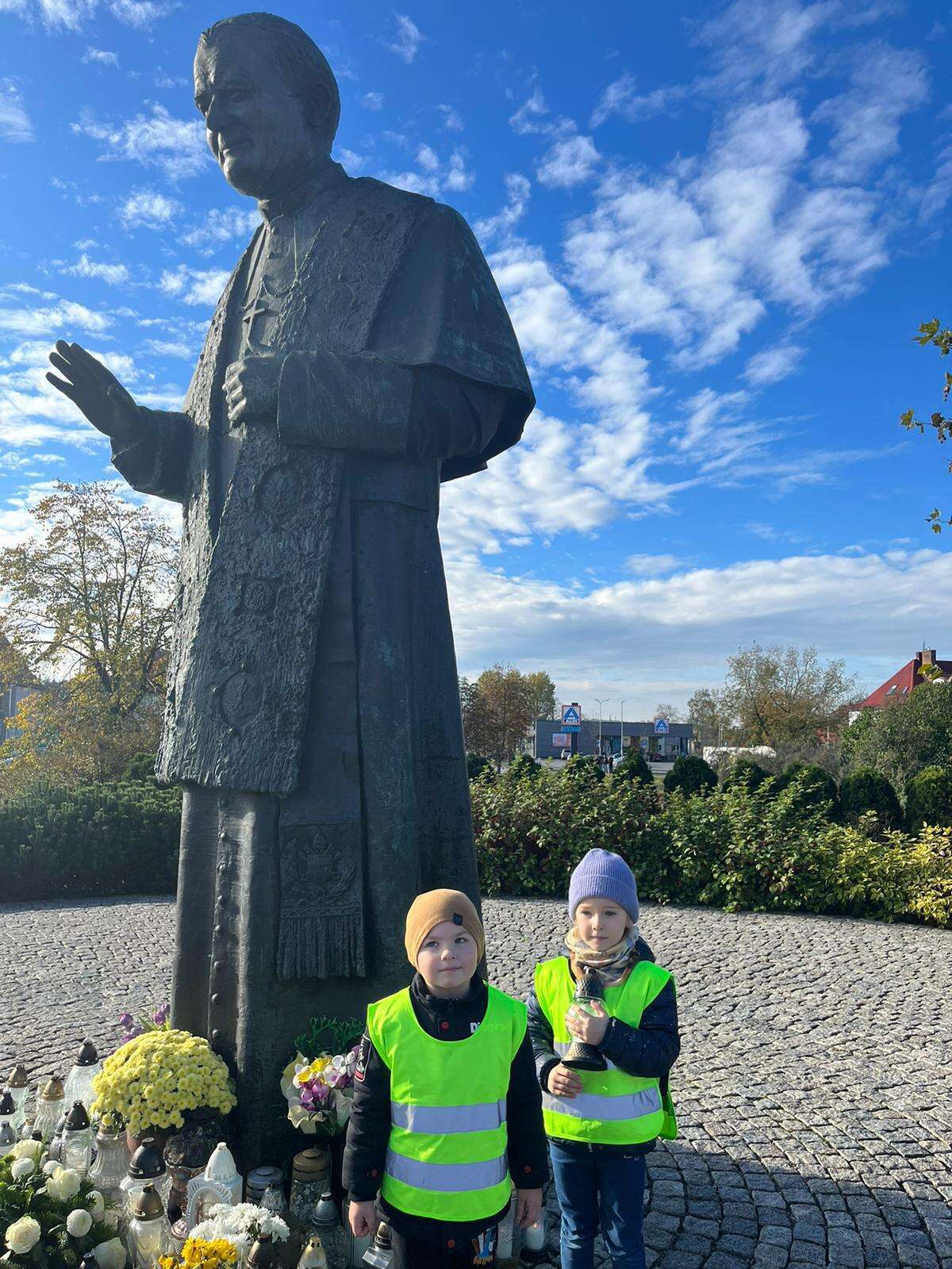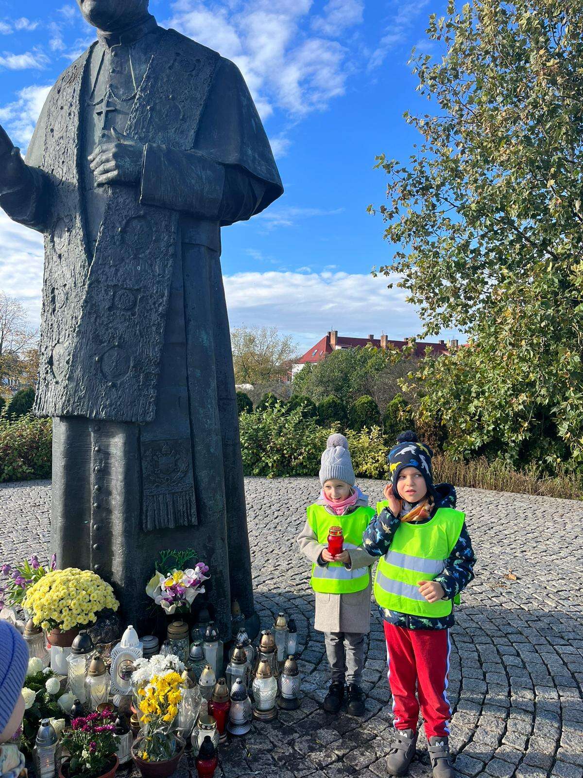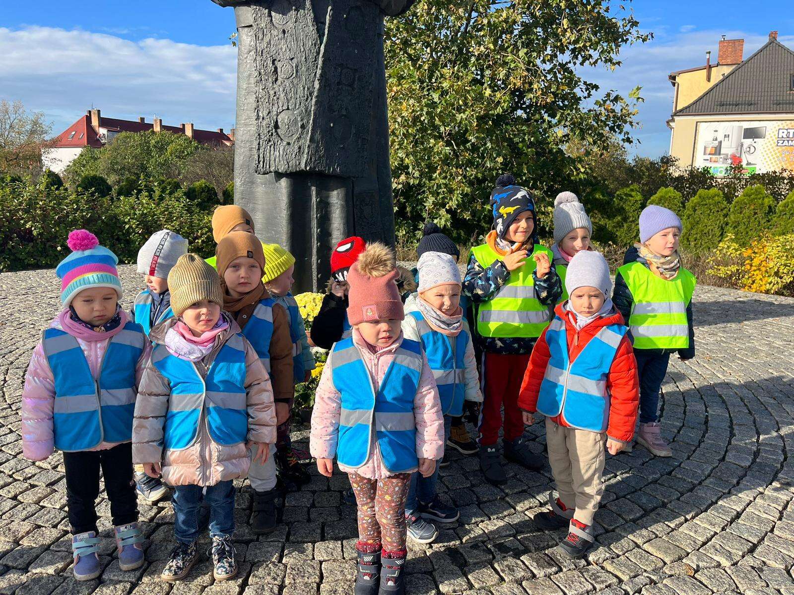 dzieci przed pomnikiem