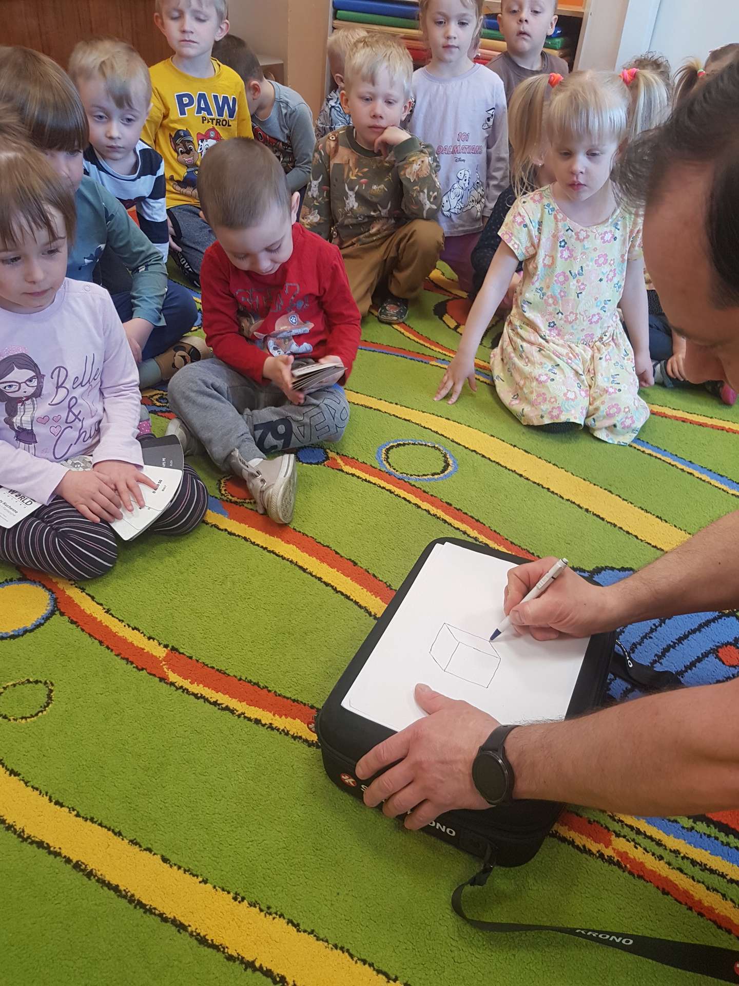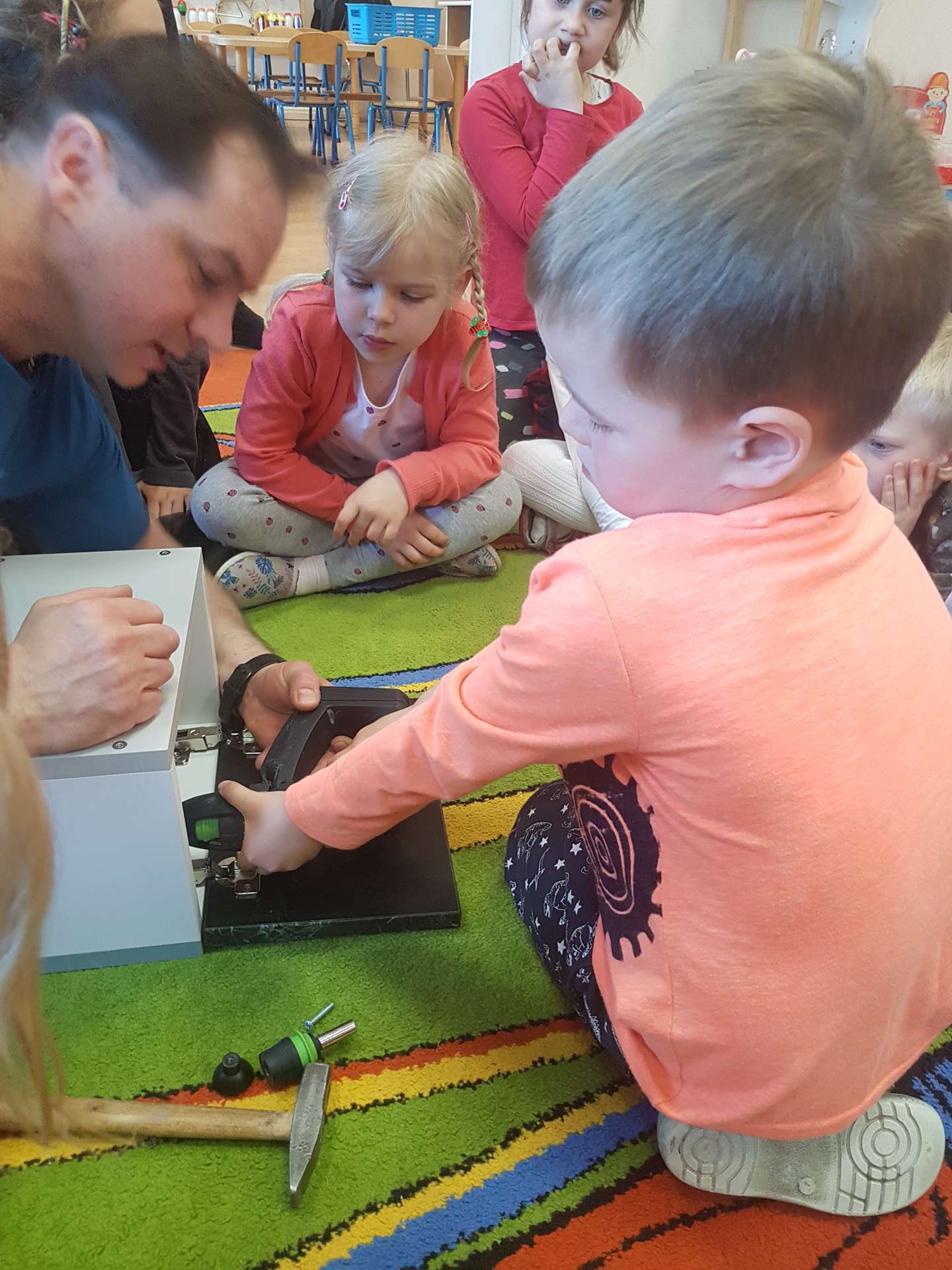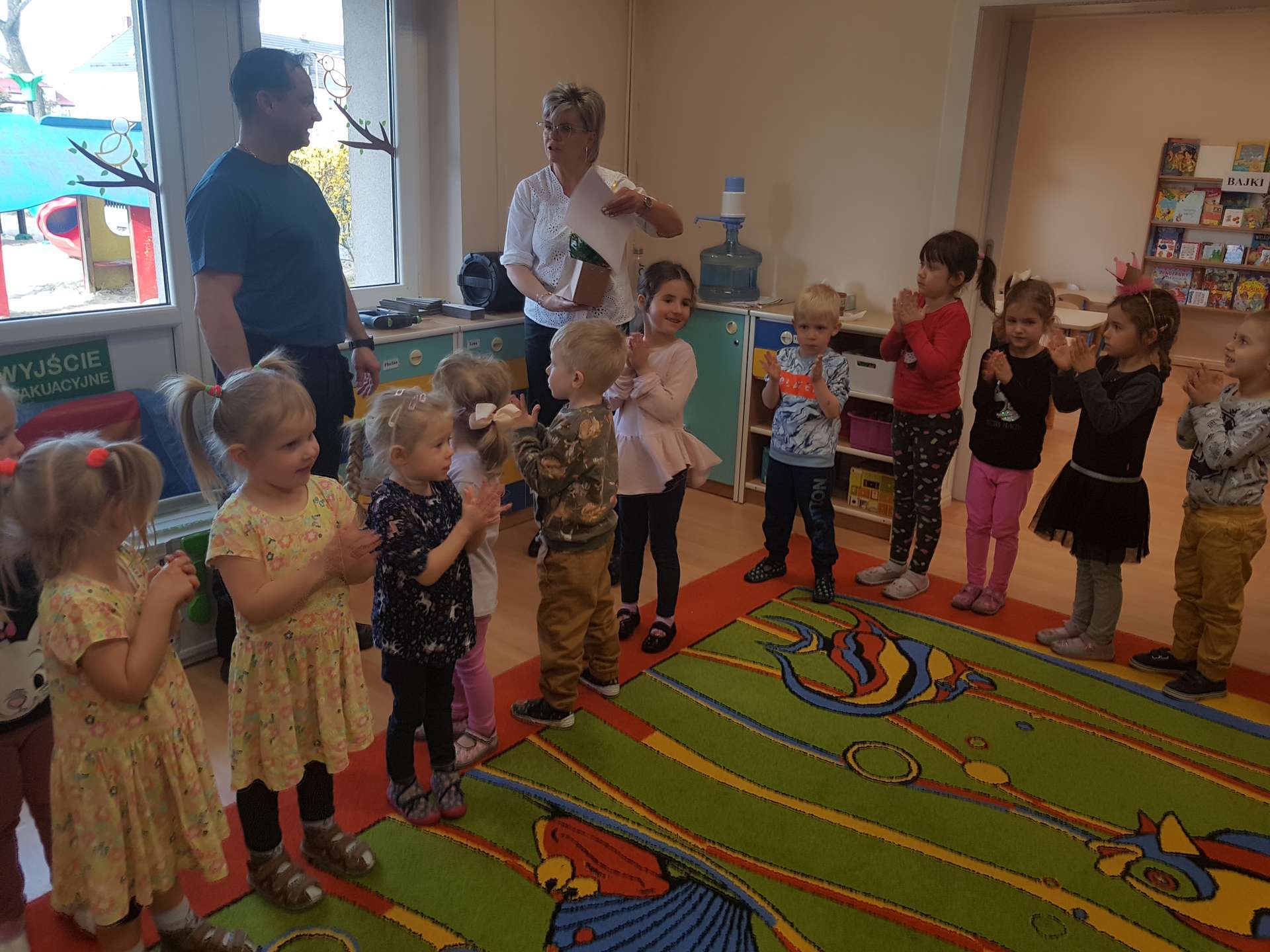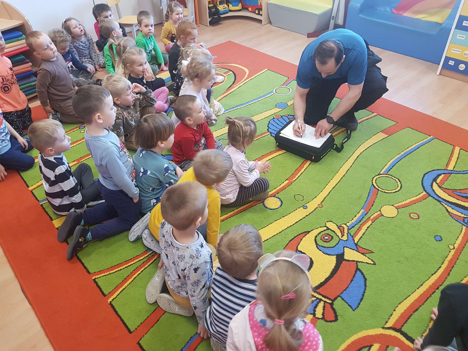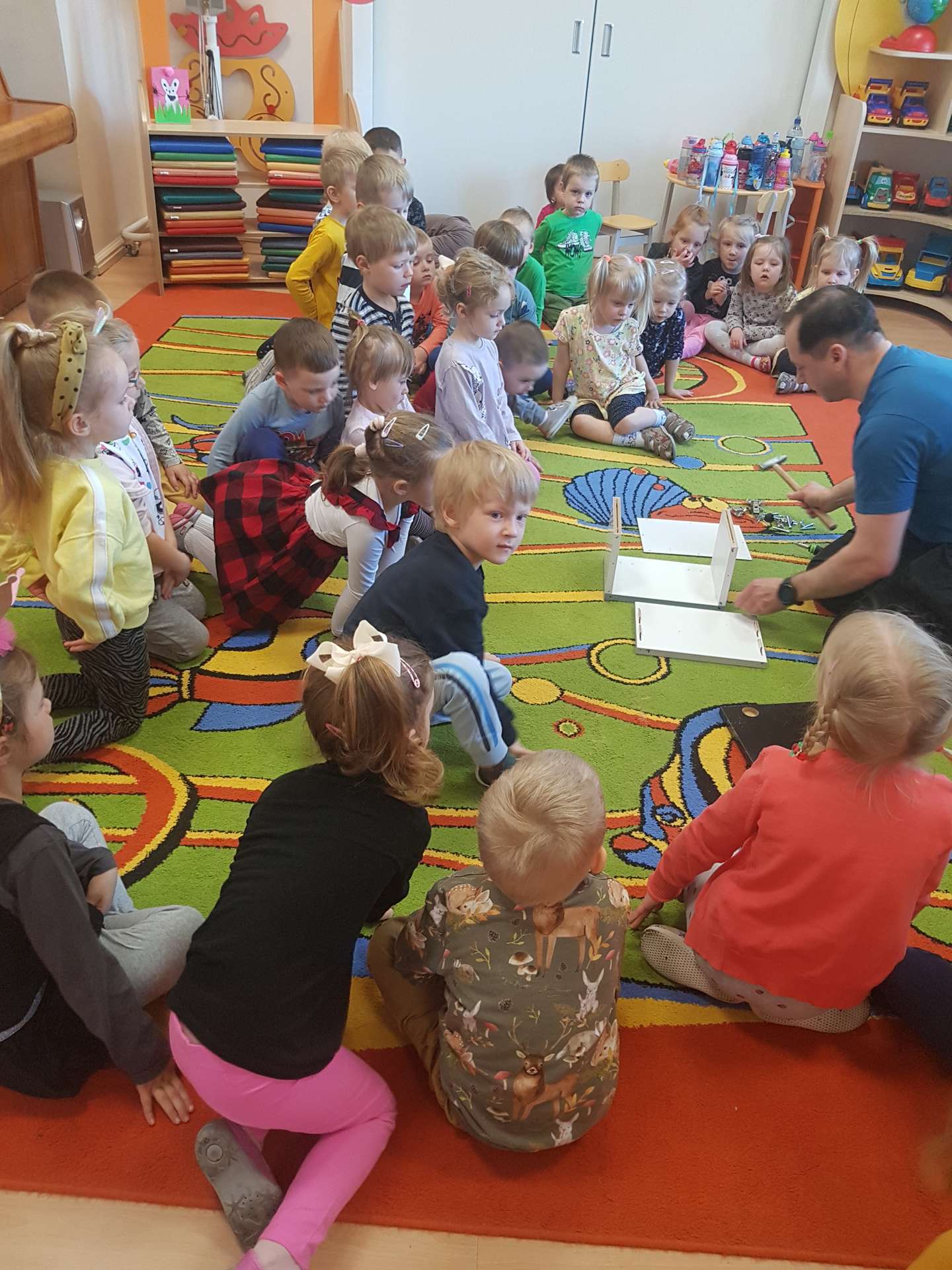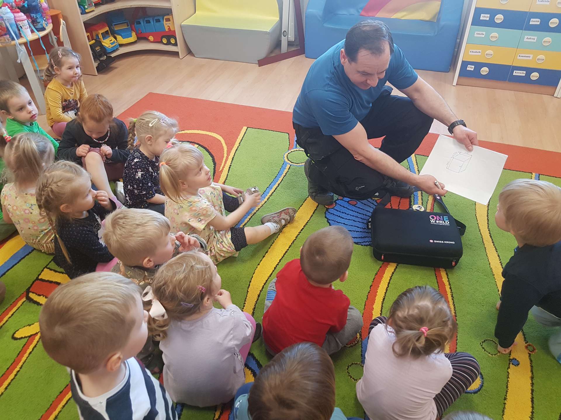I kolejny gość w naszym przedszkolu w ramach cyklu zajęć "Poznajemy zawody". Tym razem dzieci najmłodsze poznały pracę stolarza. Pan Andrzej Lewandowski bardzo ciekawie opowiedział dzieciom, jak wygląda praca stolarza. Przedstawił narzędzia stolarskie, materiał, z jakiego wykonuje się meble, opowiedział o procesie powstawania różnych elementów stolarskich. Pokazał dzieciom także wzorniki kolorów płyt i drewna Zwrócił także uwagę na to, że stolarz musi być bardzo precyzyjny. Dużą frajdą dla dzieci było wspólne zbudowanie szafki na klocki. Przybijanie gwoździ i wkręcanie śrubek to nie tylko radość dla chłopców. Dziewczynki również chętnie wykonywały te czynności.