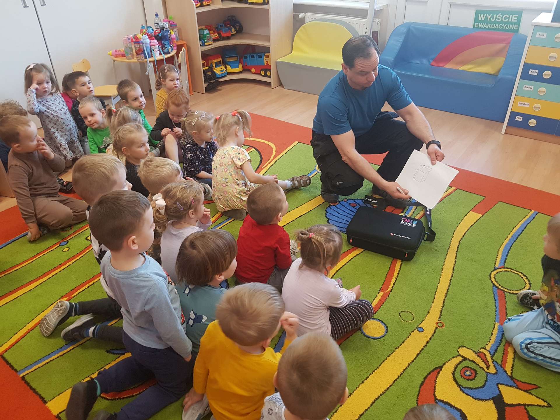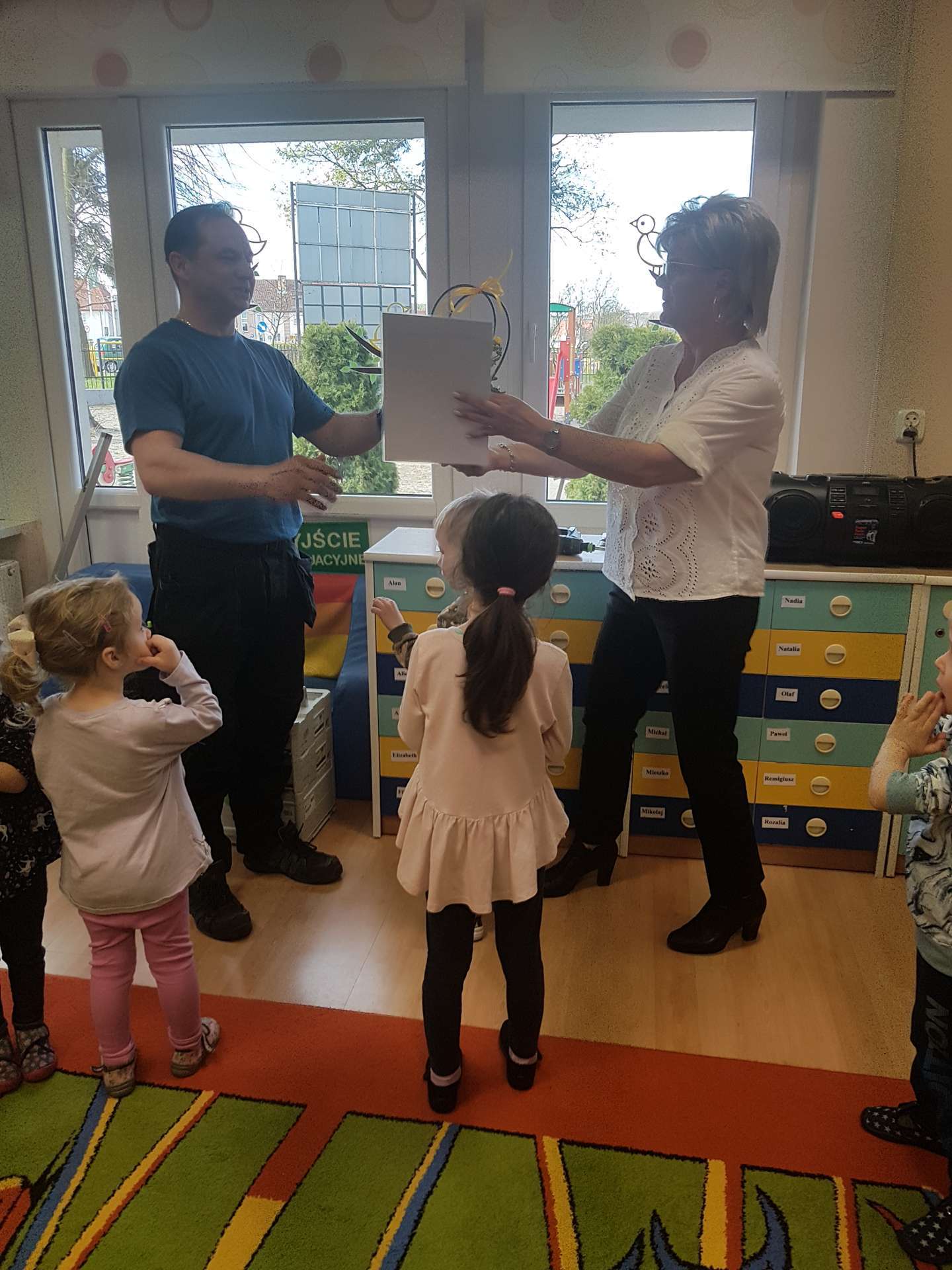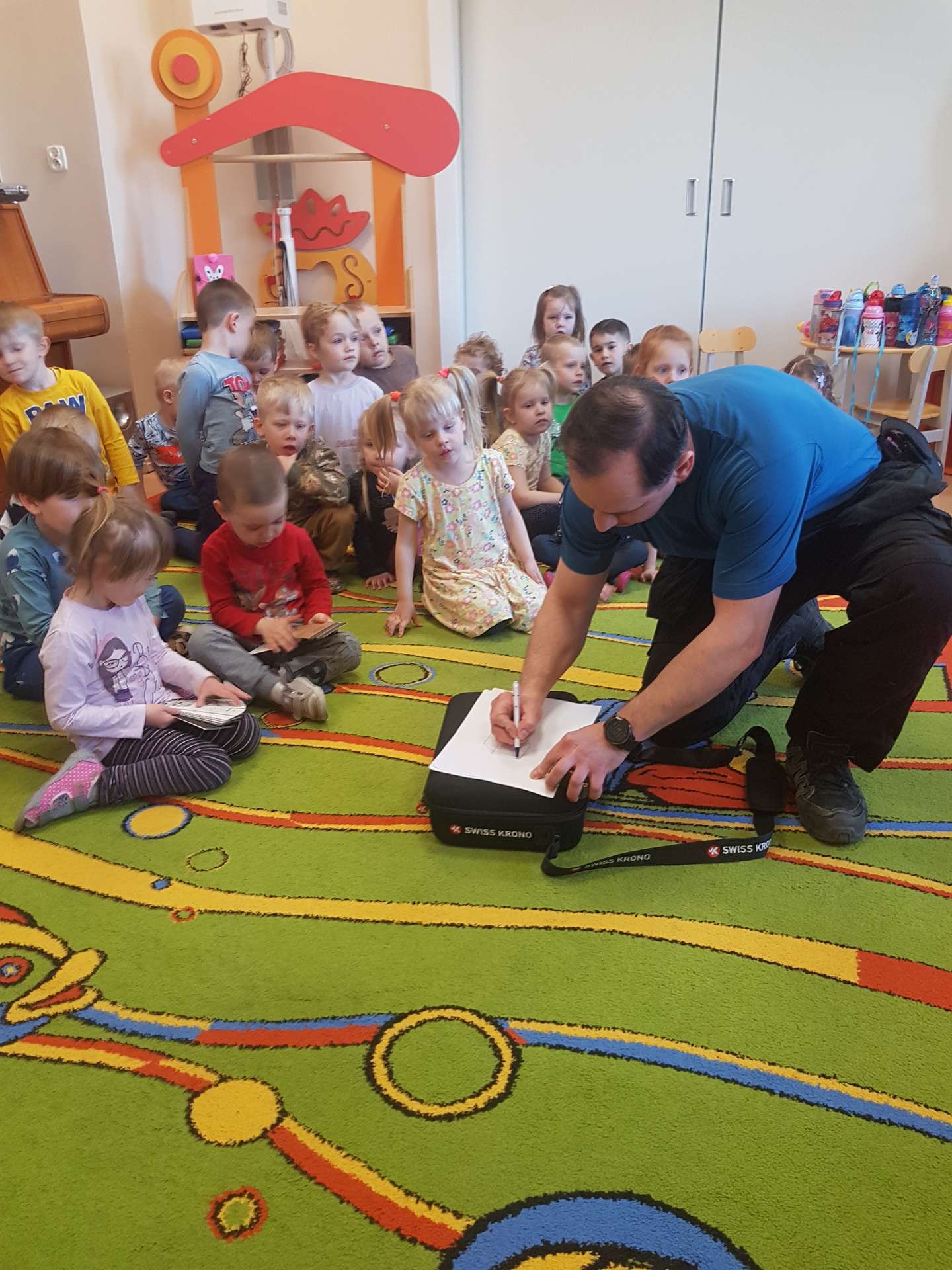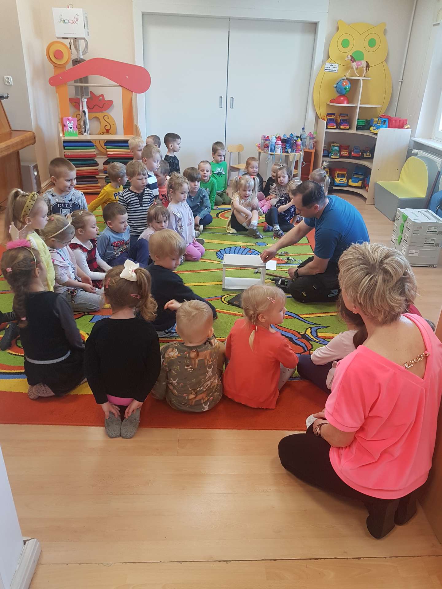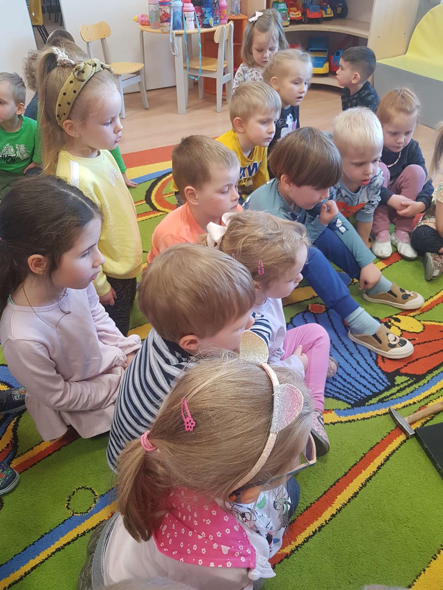 I kolejny gość w naszym przedszkolu w ramach cyklu zajęć "Poznajemy zawody". Tym razem dzieci najmłodsze poznały pracę stolarza. Pan Andrzej Lewandowski bardzo ciekawie opowiedział dzieciom, jak wygląda praca stolarza. Przedstawił narzędzia stolarskie, materiał, z jakiego wykonuje się meble, opowiedział o procesie powstawania różnych elementów stolarskich. Pokazał dzieciom także wzorniki kolorów płyt i drewna Zwrócił także uwagę na to, że stolarz musi być bardzo precyzyjny. Dużą frajdą dla dzieci było wspólne zbudowanie szafki na klocki. Przybijanie gwoździ i wkręcanie śrubek to nie tylko radość dla chłopców. Dziewczynki również chętnie wykonywały te czynności.