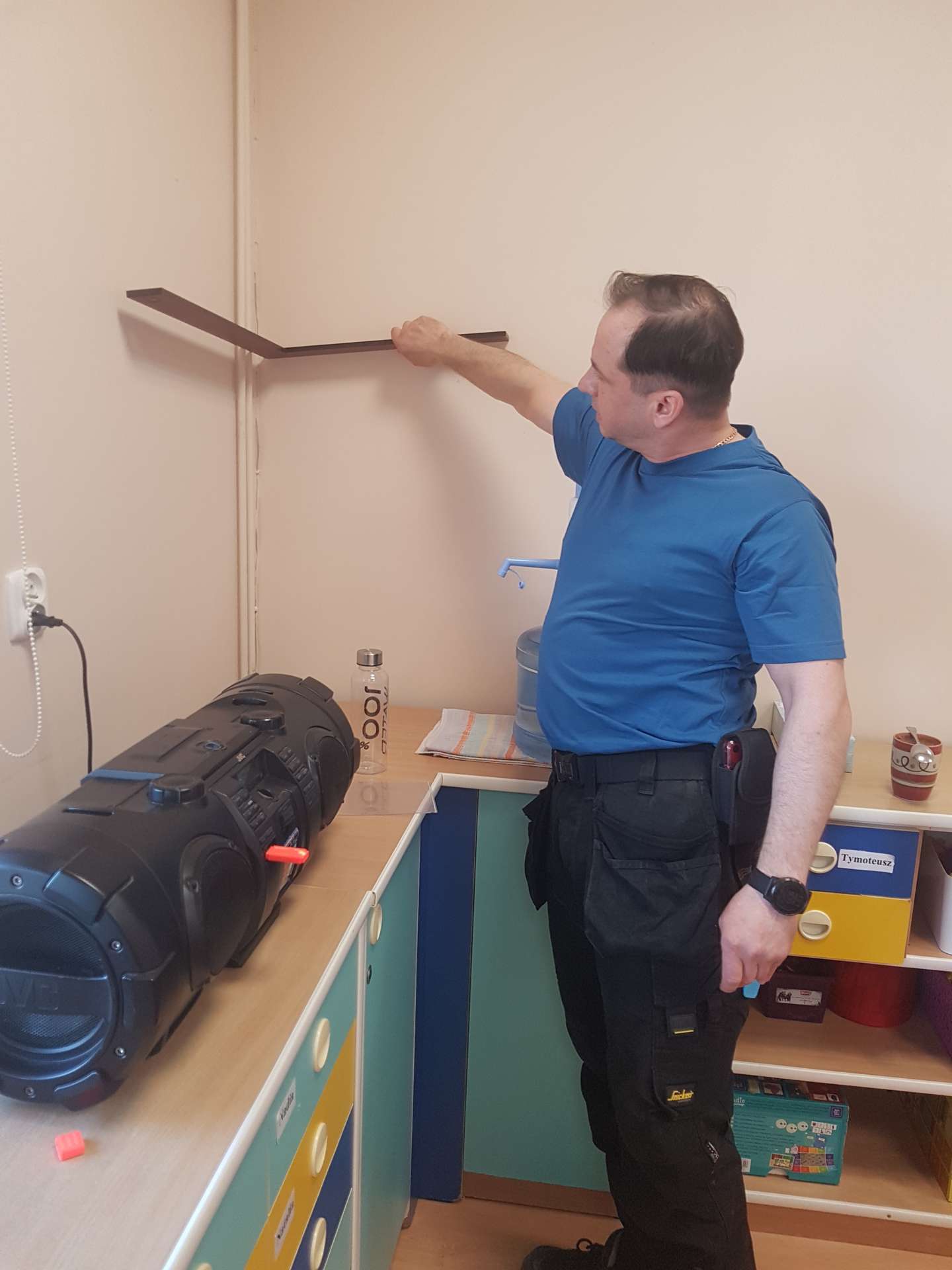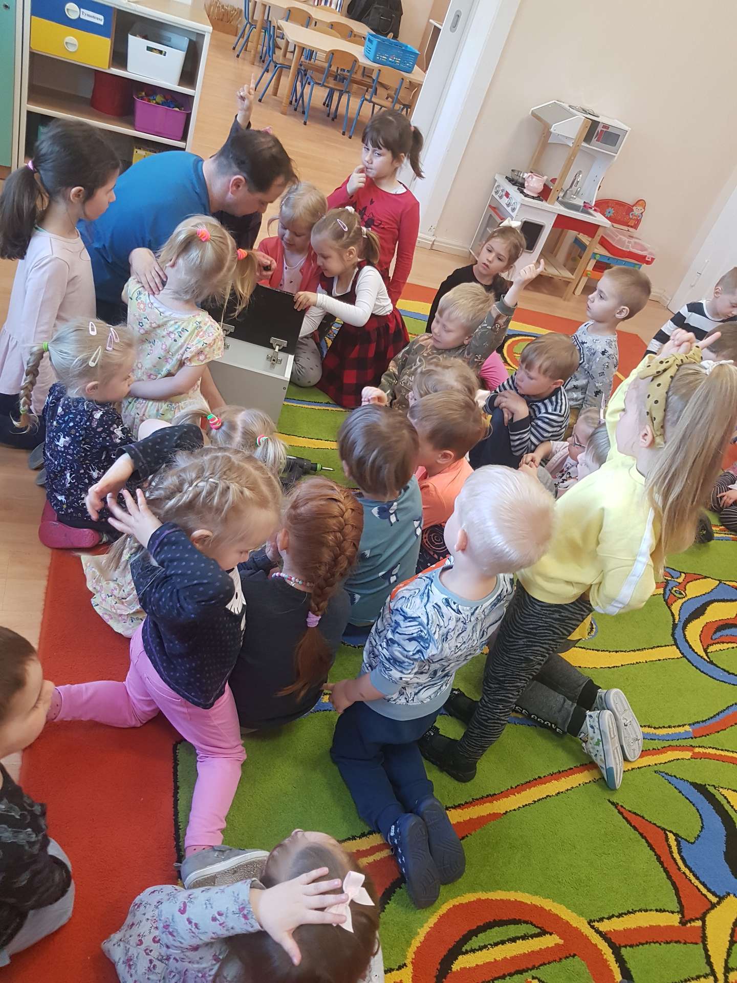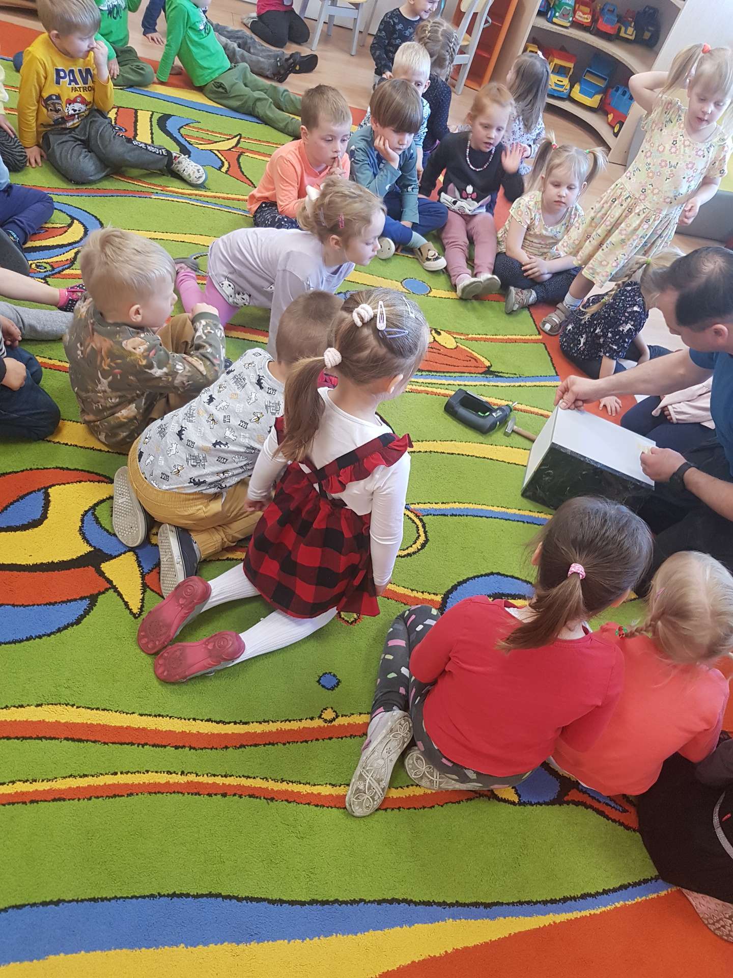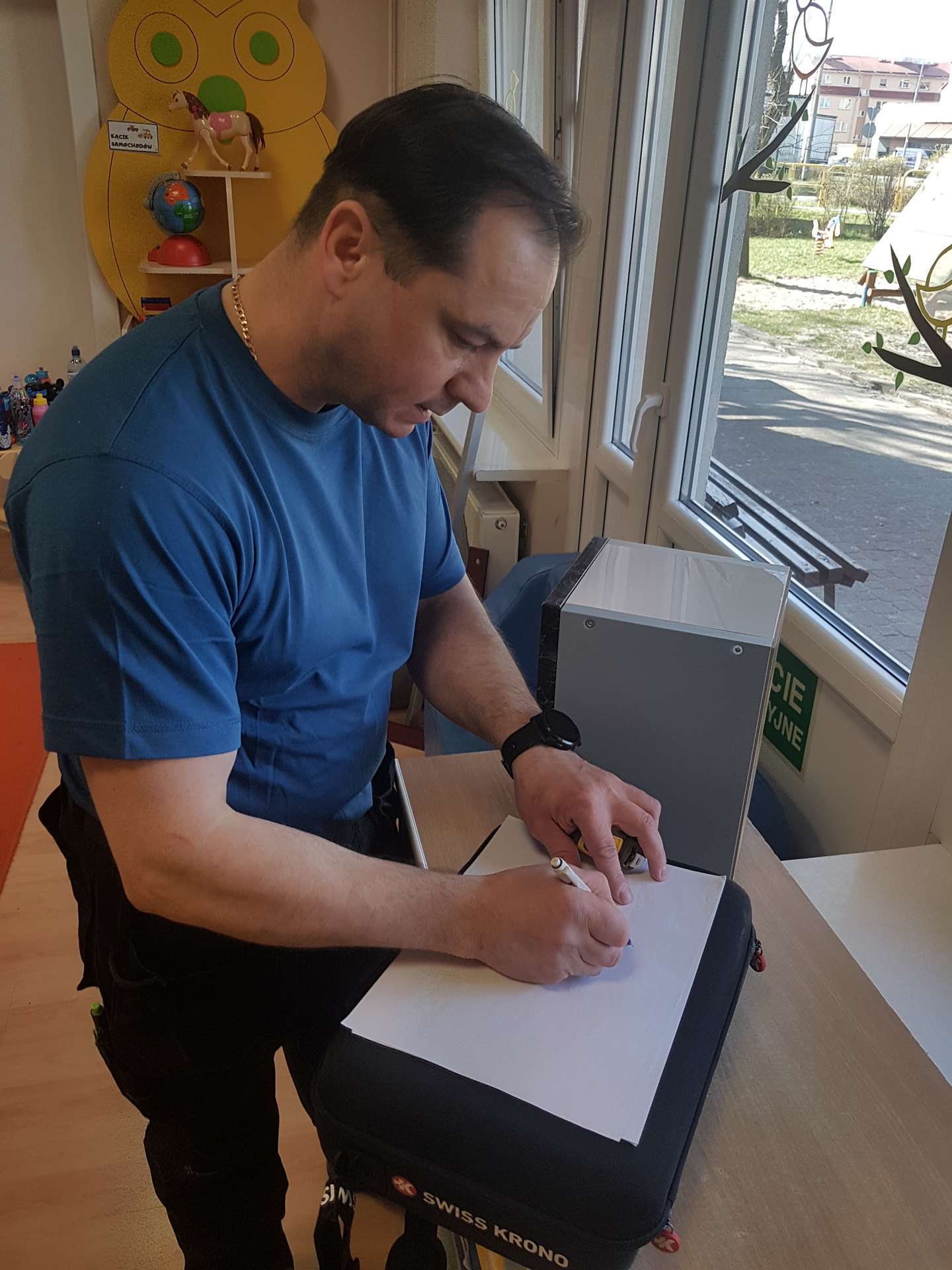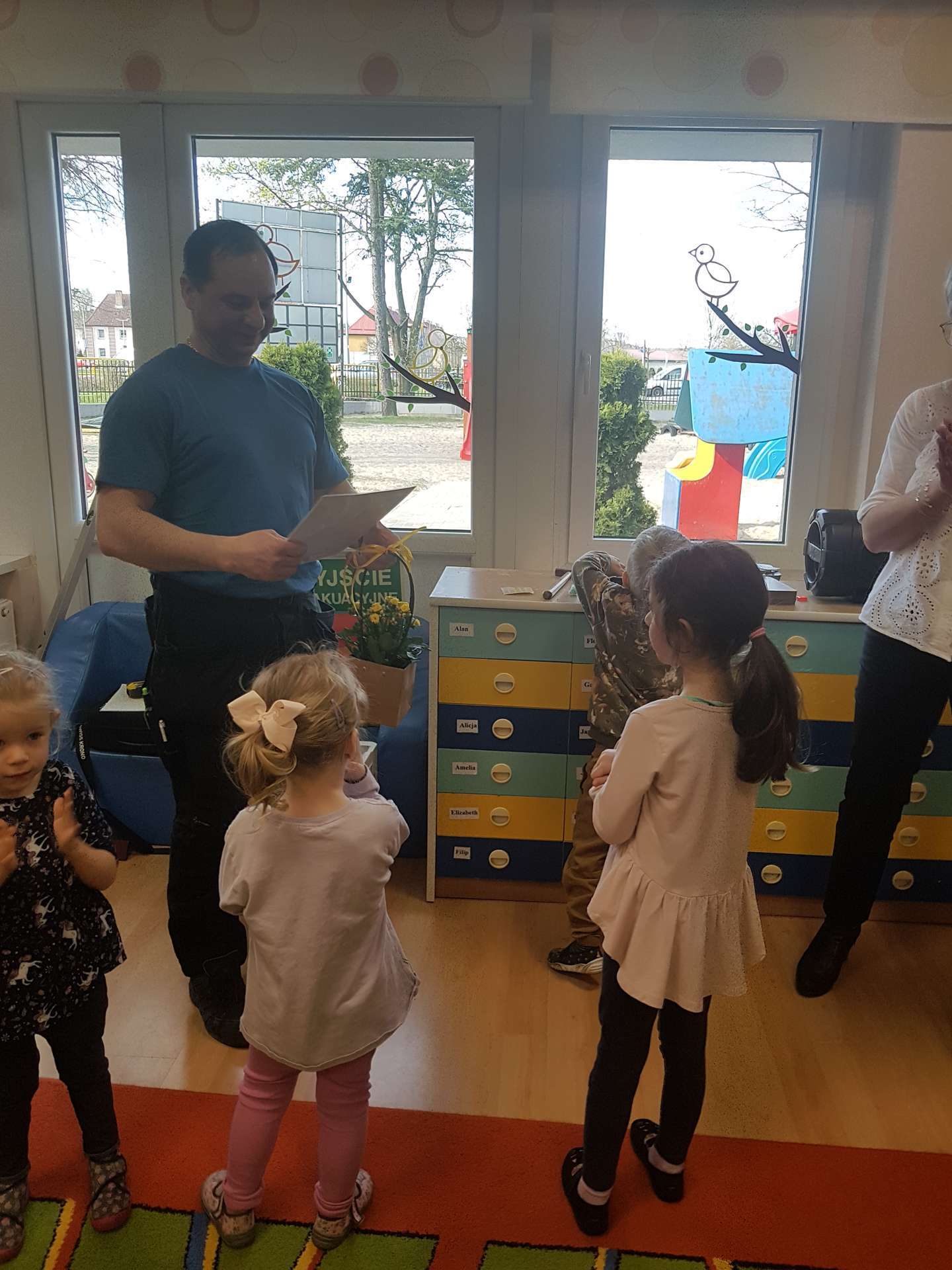 I kolejny gość w naszym przedszkolu w ramach cyklu zajęć "Poznajemy zawody". Tym razem dzieci najmłodsze poznały pracę stolarza. Pan Andrzej Lewandowski bardzo ciekawie opowiedział dzieciom, jak wygląda praca stolarza. Przedstawił narzędzia stolarskie, materiał, z jakiego wykonuje się meble, opowiedział o procesie powstawania różnych elementów stolarskich. Pokazał dzieciom także wzorniki kolorów płyt i drewna Zwrócił także uwagę na to, że stolarz musi być bardzo precyzyjny. Dużą frajdą dla dzieci było wspólne zbudowanie szafki na klocki. Przybijanie gwoździ i wkręcanie śrubek to nie tylko radość dla chłopców. Dziewczynki również chętnie wykonywały te czynności.