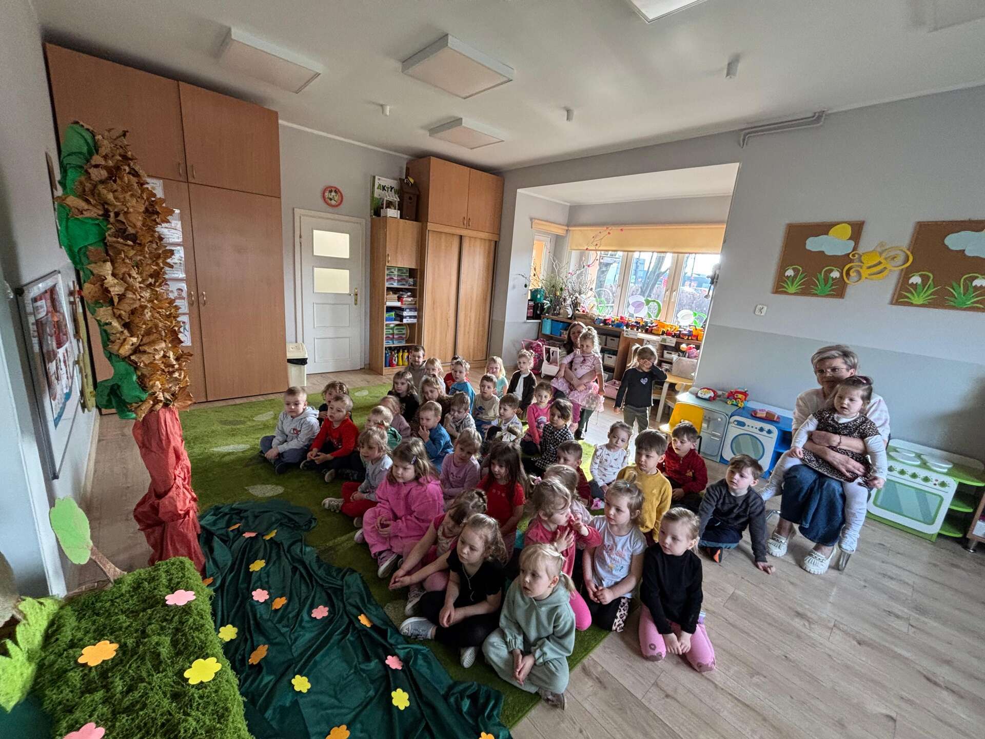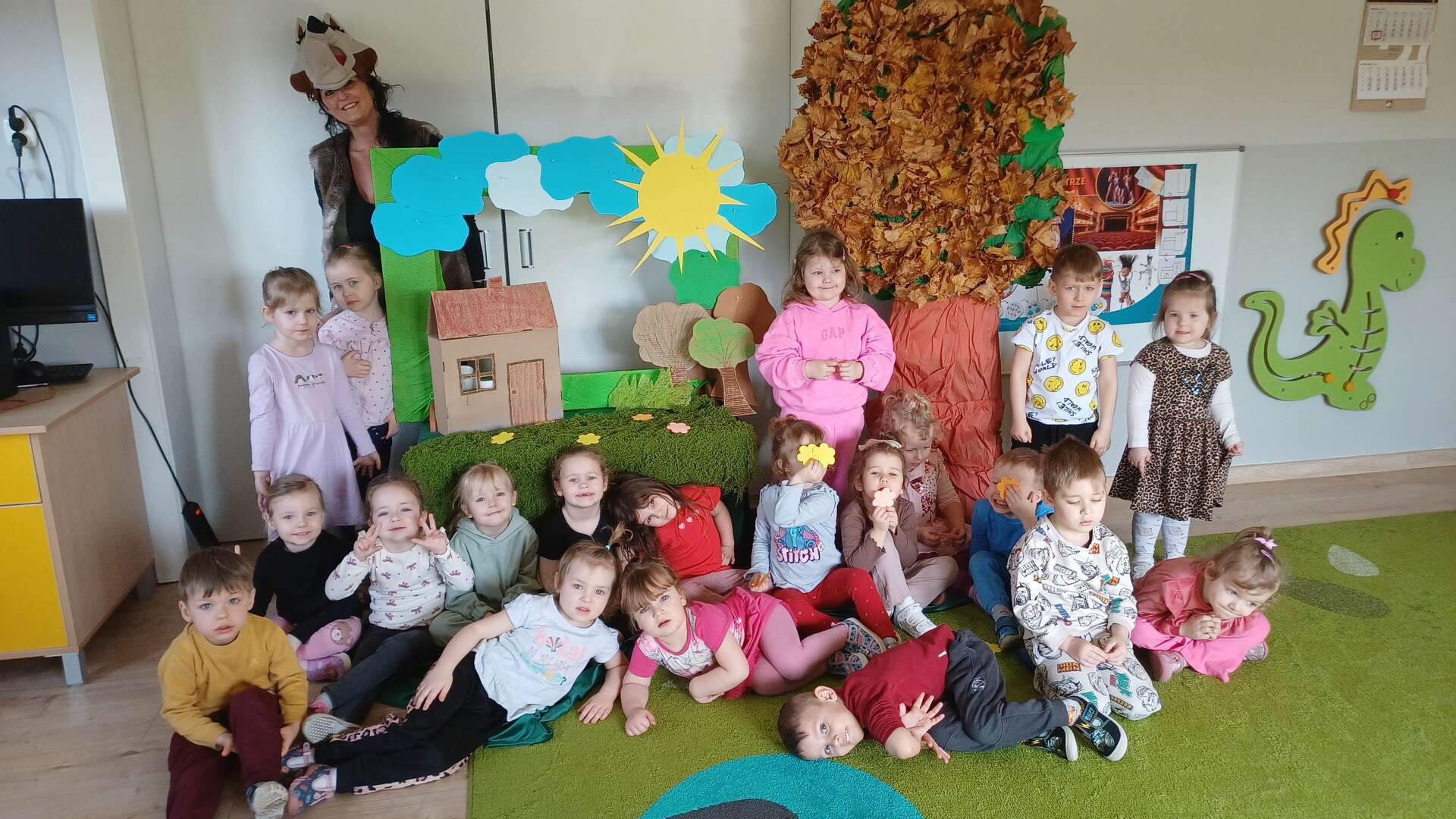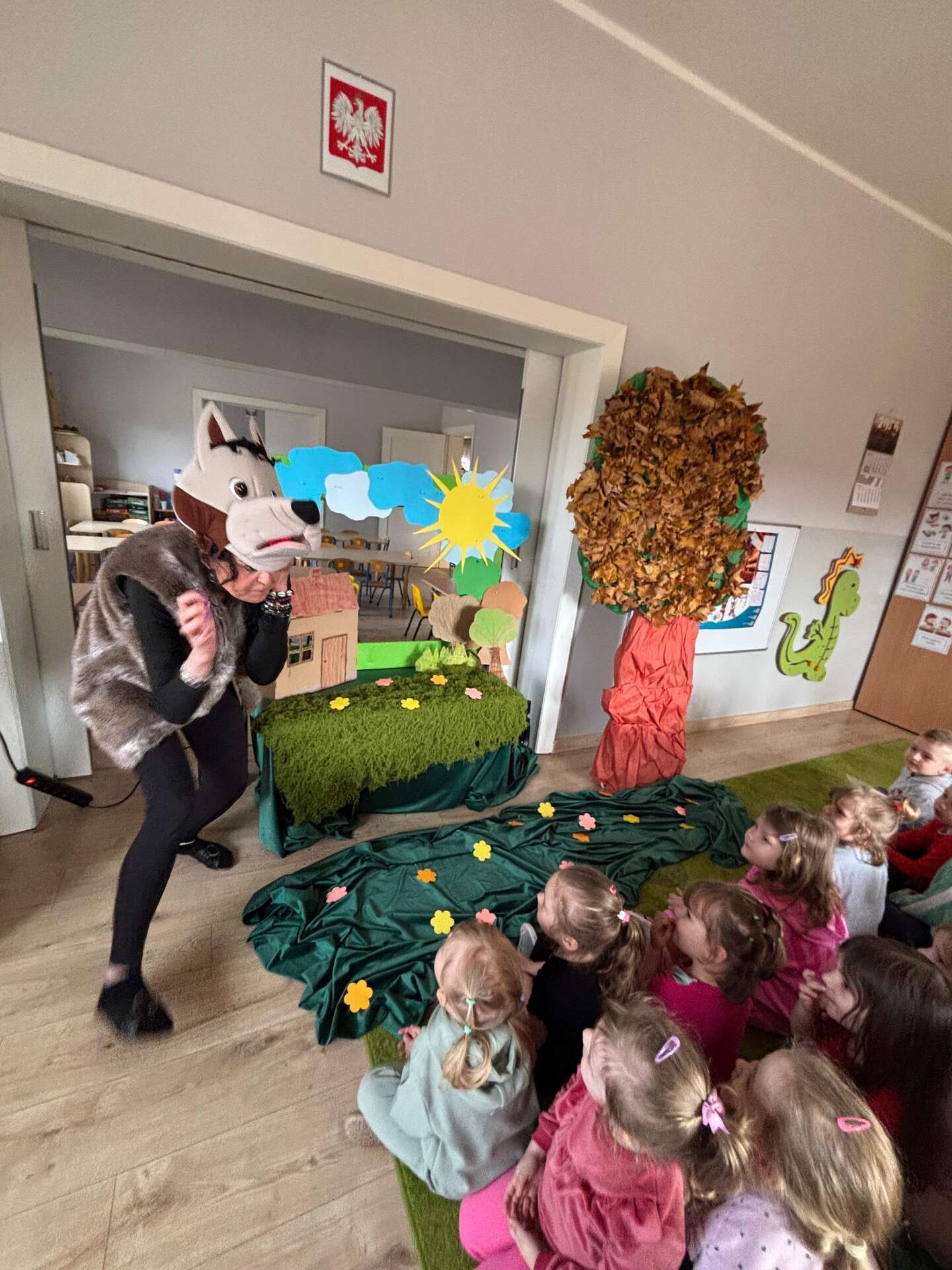 W ramach Narodowego Programu Rozwoju Czytelnictwa grupy I i II obejrzały teatrzyk "Czerwony Kapturek". Teatrzyk inspirowany ludową baśnią dostarczył najmłodszym wielu pozytywnych wrażeń, wprowadził w magiczny świat, a co najważniejsze pokazał jak zwalczać zło.