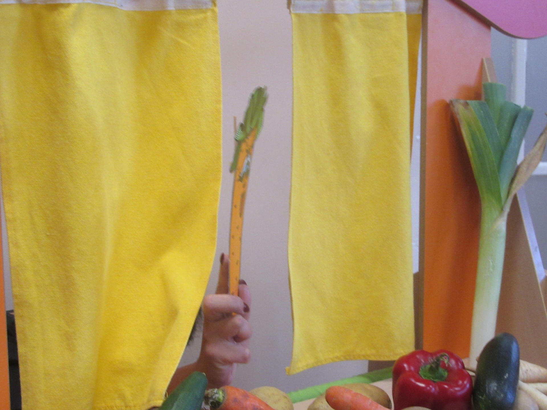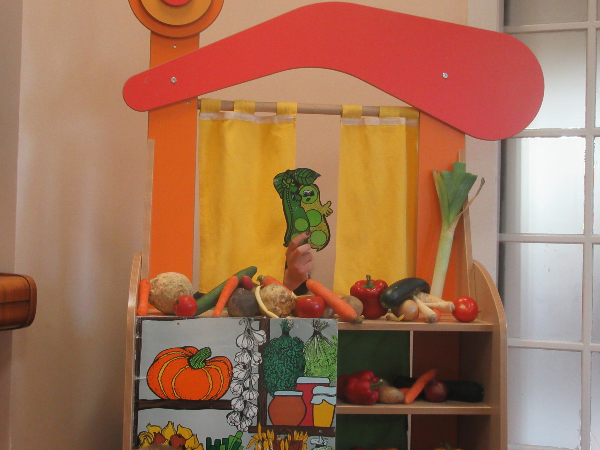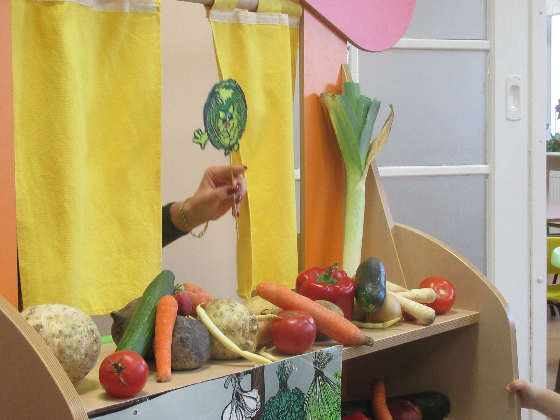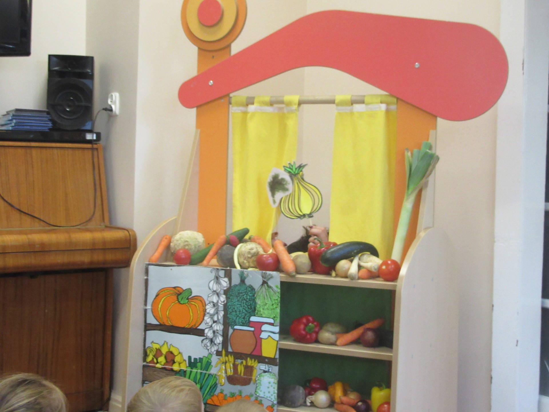 Dzisiaj dzieci z grupy I i II miały okazję obejrzeć teatrzyk pt. " Na straganie". Przedszkolakom bardzo podobały się kłótnie warzyw na co reagowały głośnym śmiechem. Po teatrzyku dzieci rozmawiały o tym dlaczego powinniśmy je jeść.