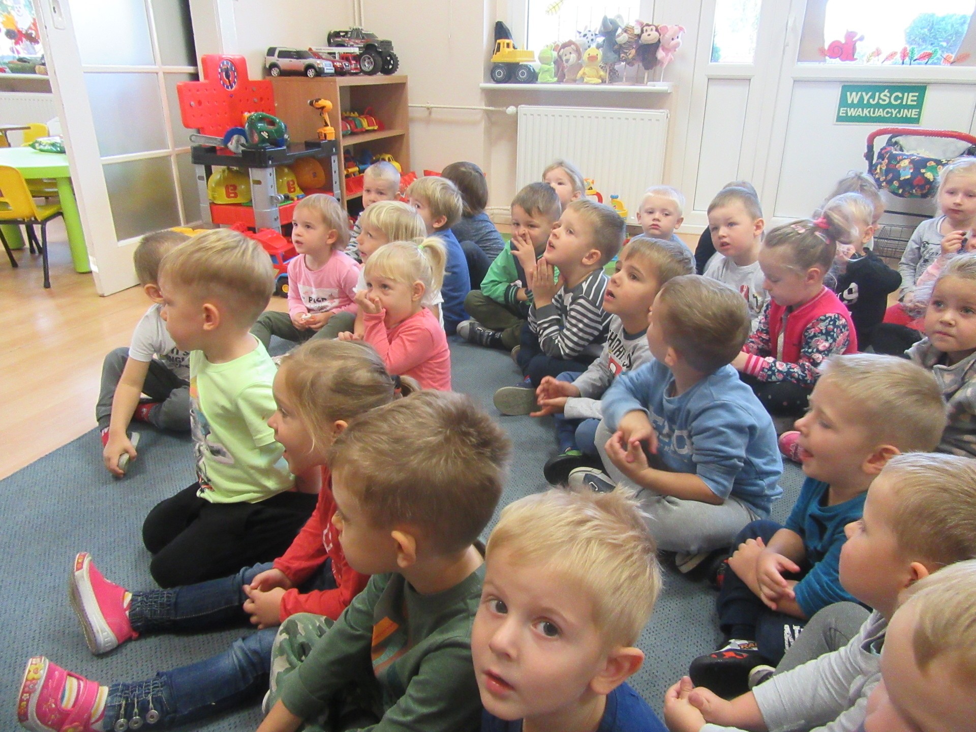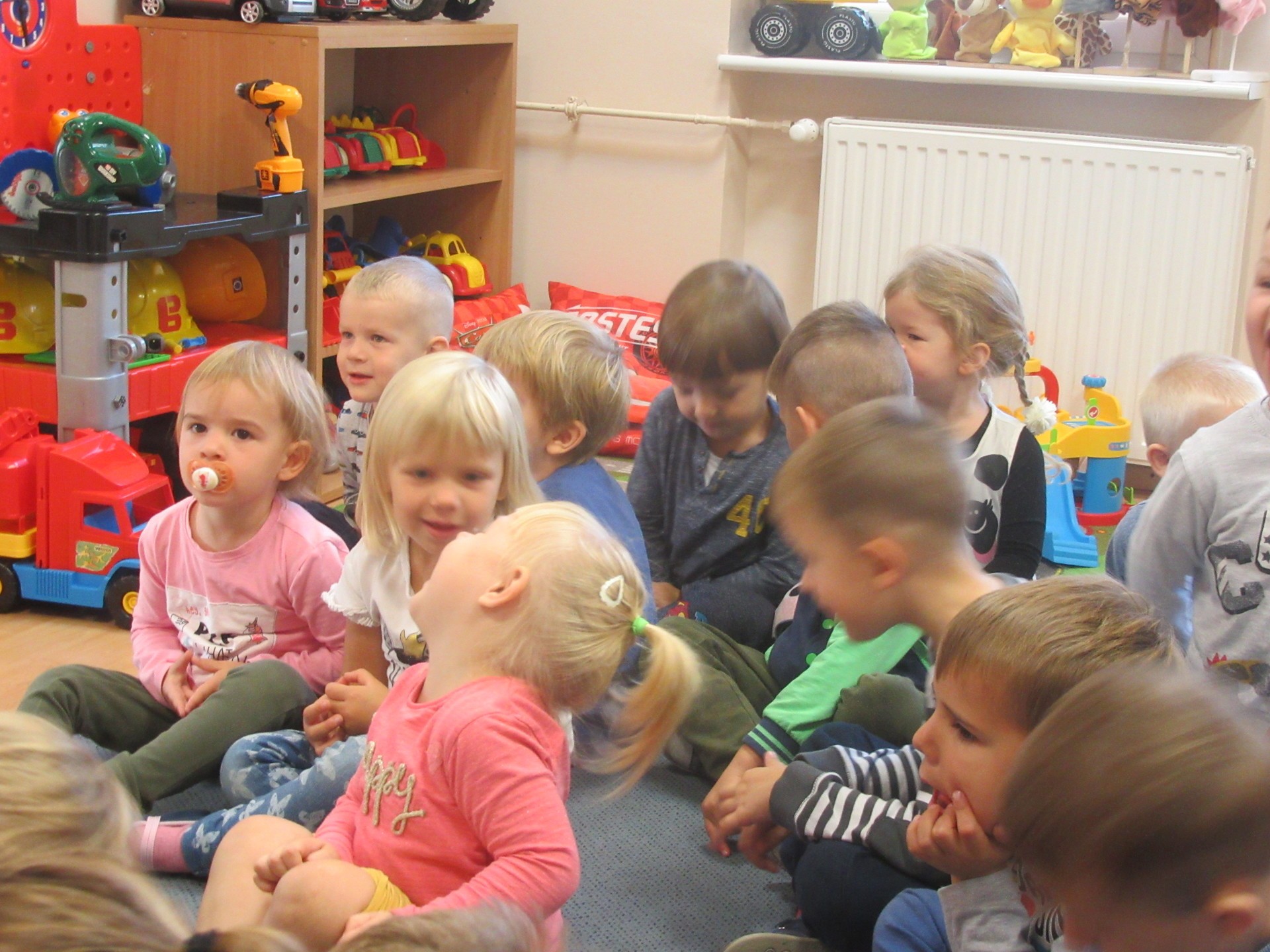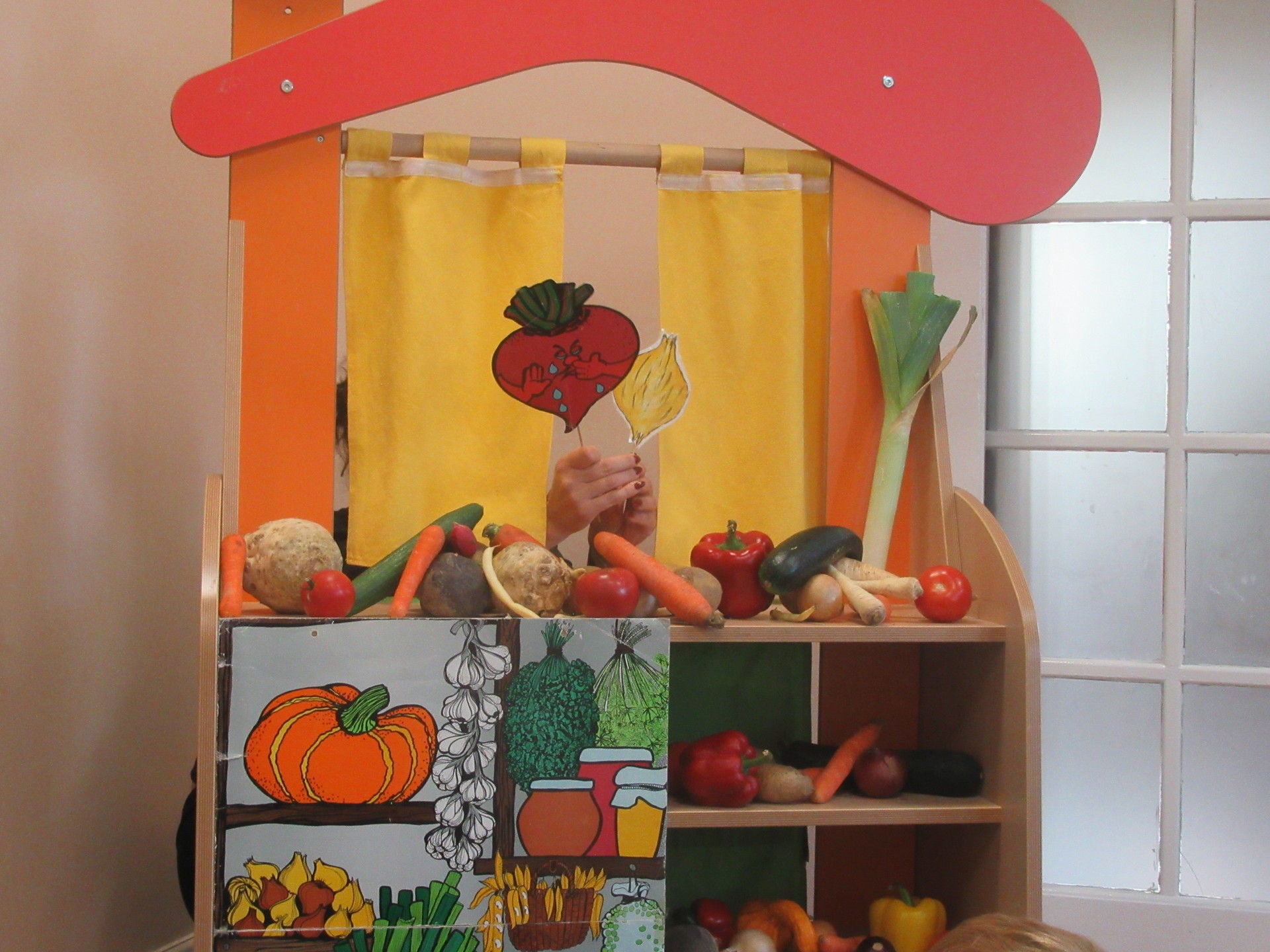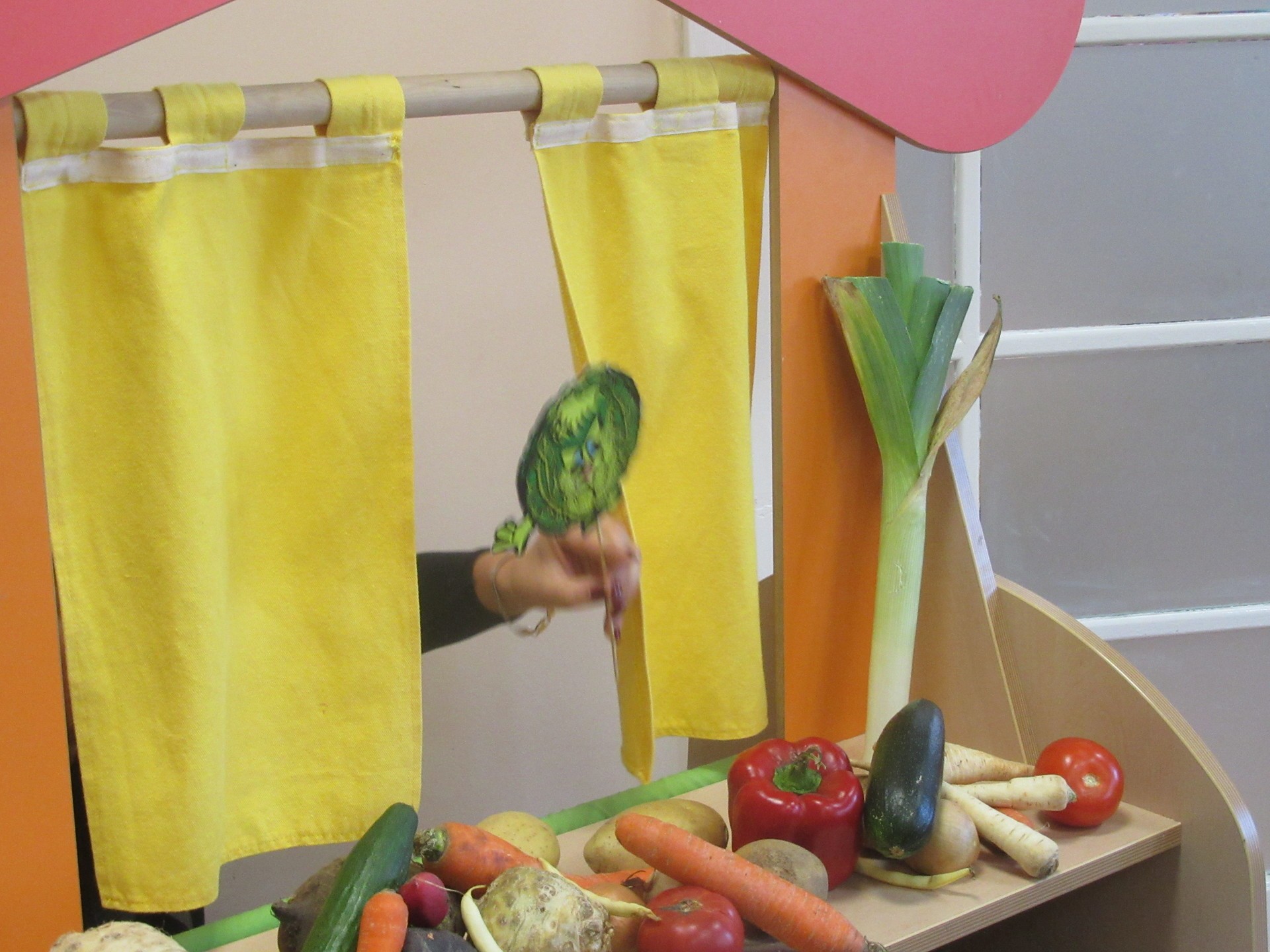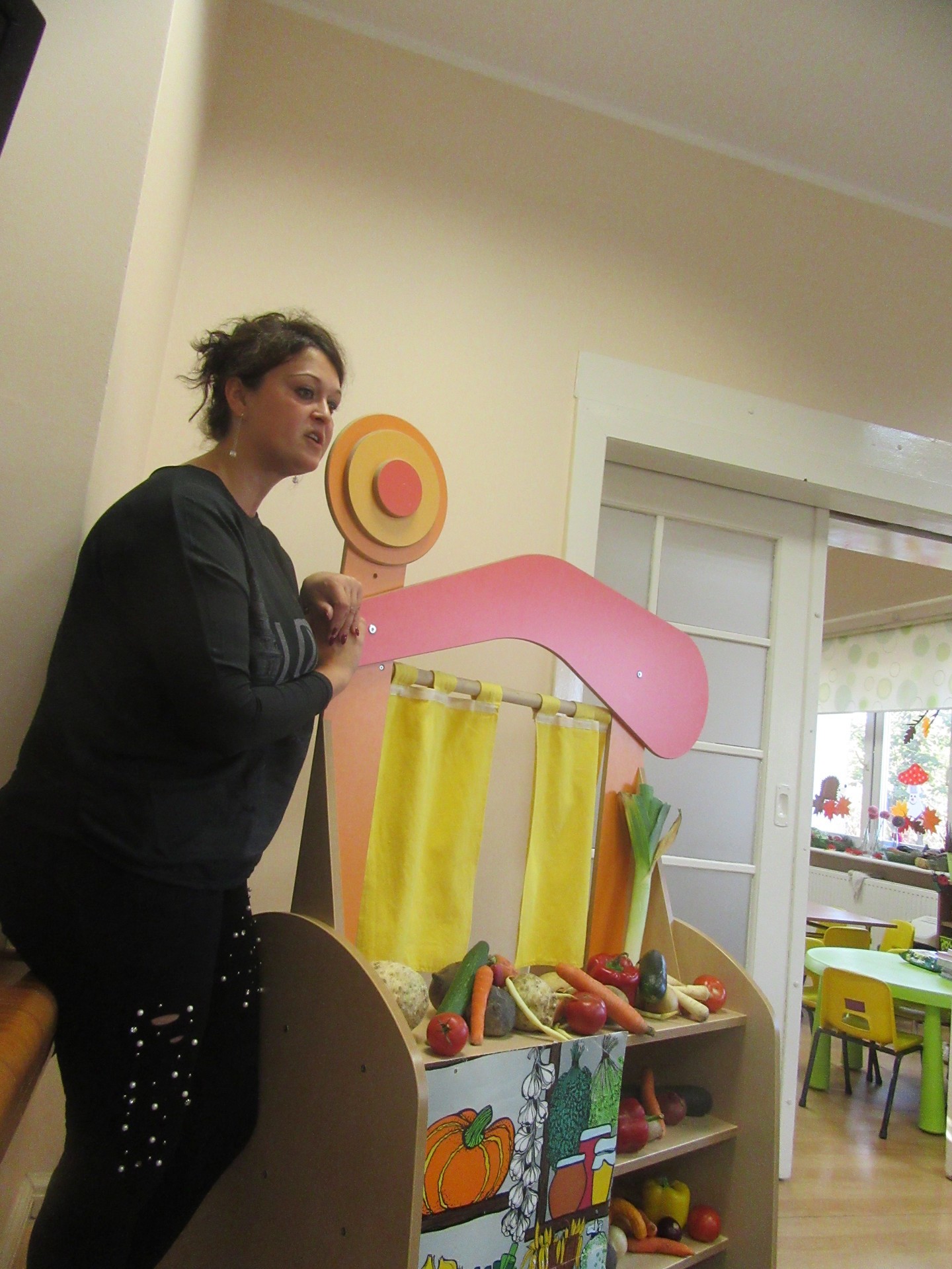 Dzisiaj dzieci z grupy I i II miały okazję obejrzeć teatrzyk pt. " Na straganie". Przedszkolakom bardzo podobały się kłótnie warzyw na co reagowały głośnym śmiechem. Po teatrzyku dzieci rozmawiały o tym dlaczego powinniśmy je jeść.