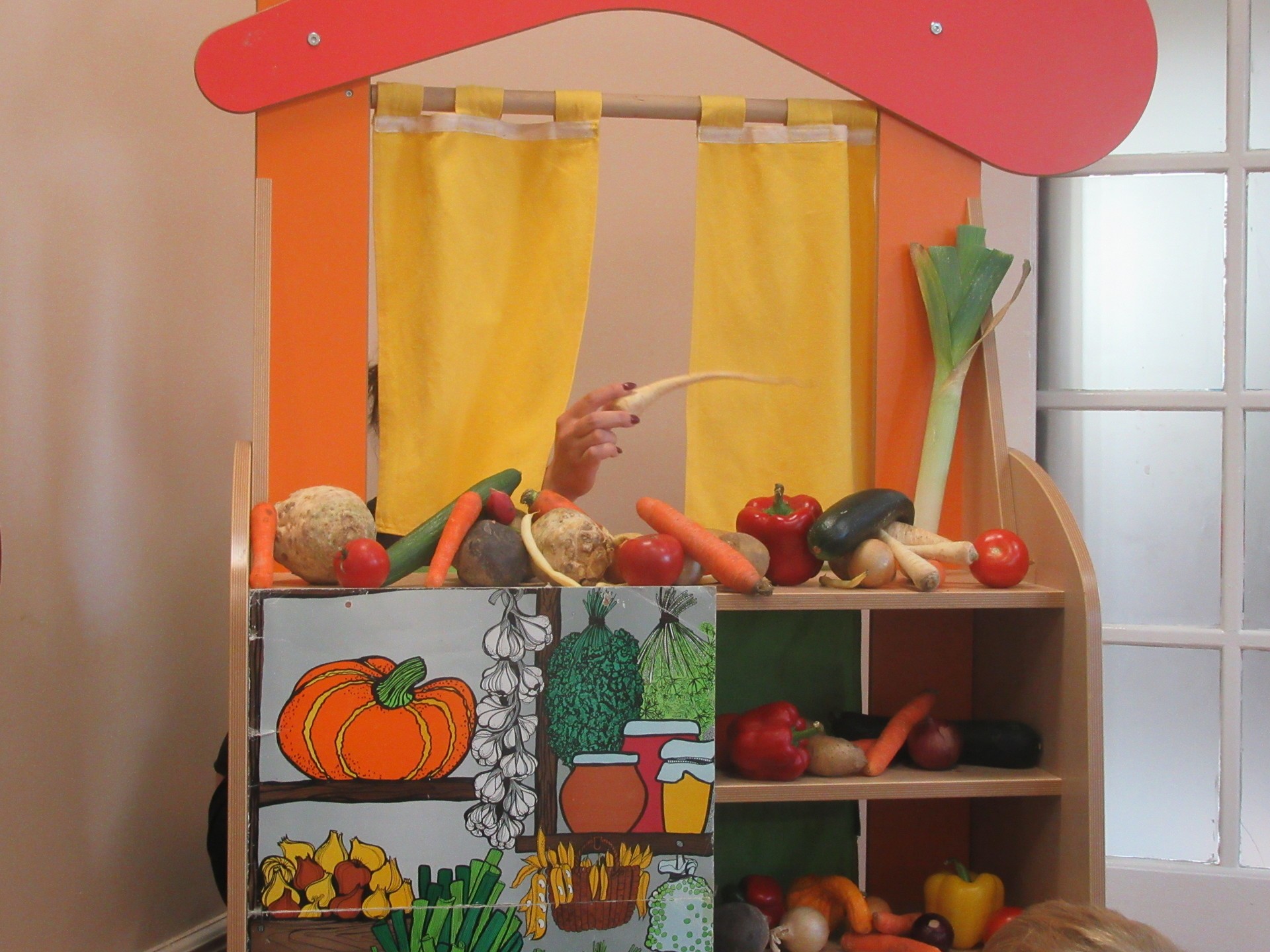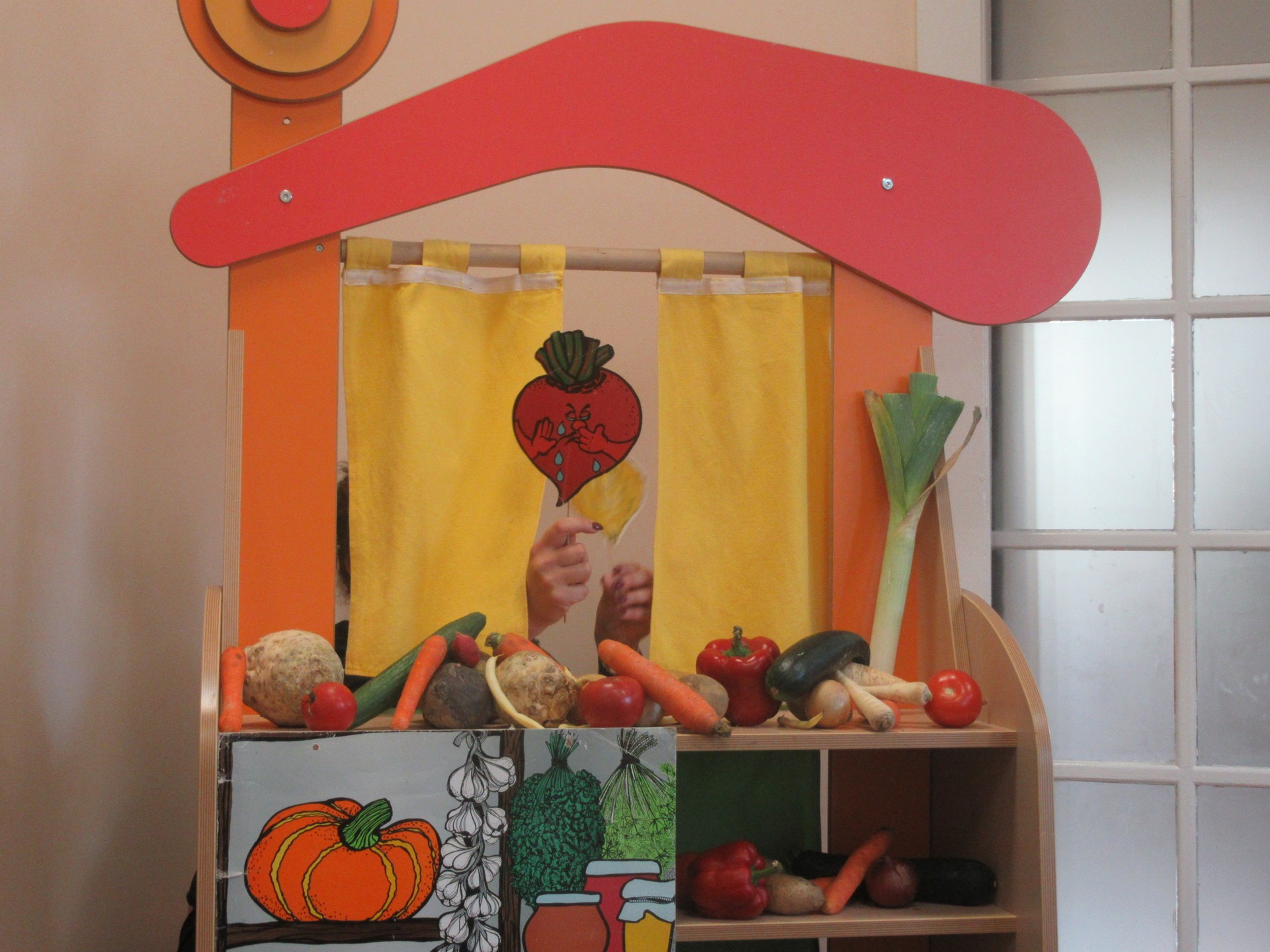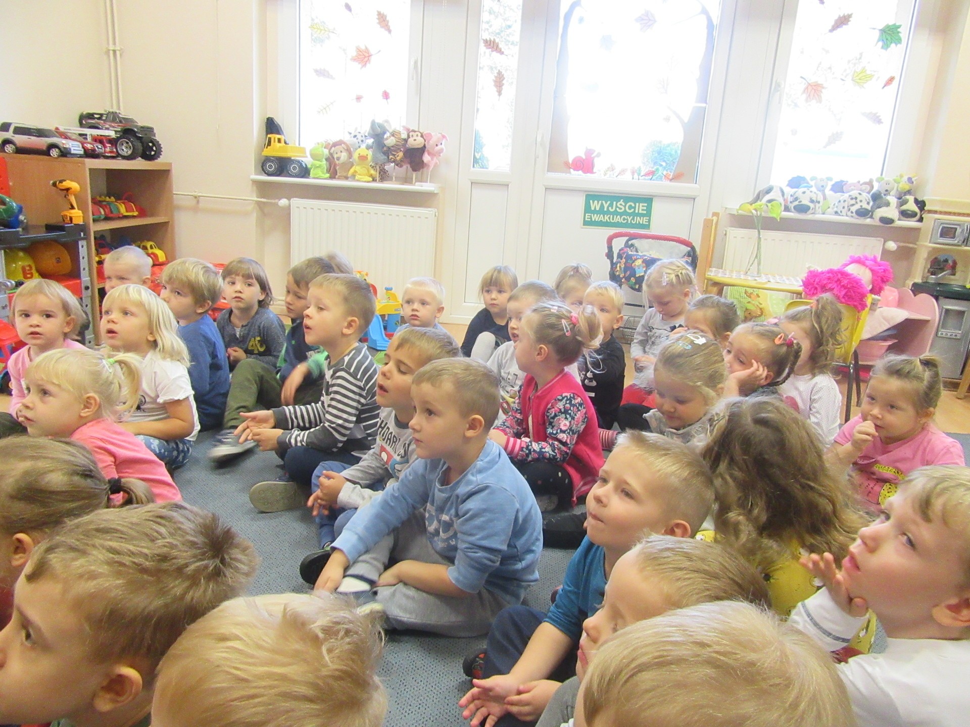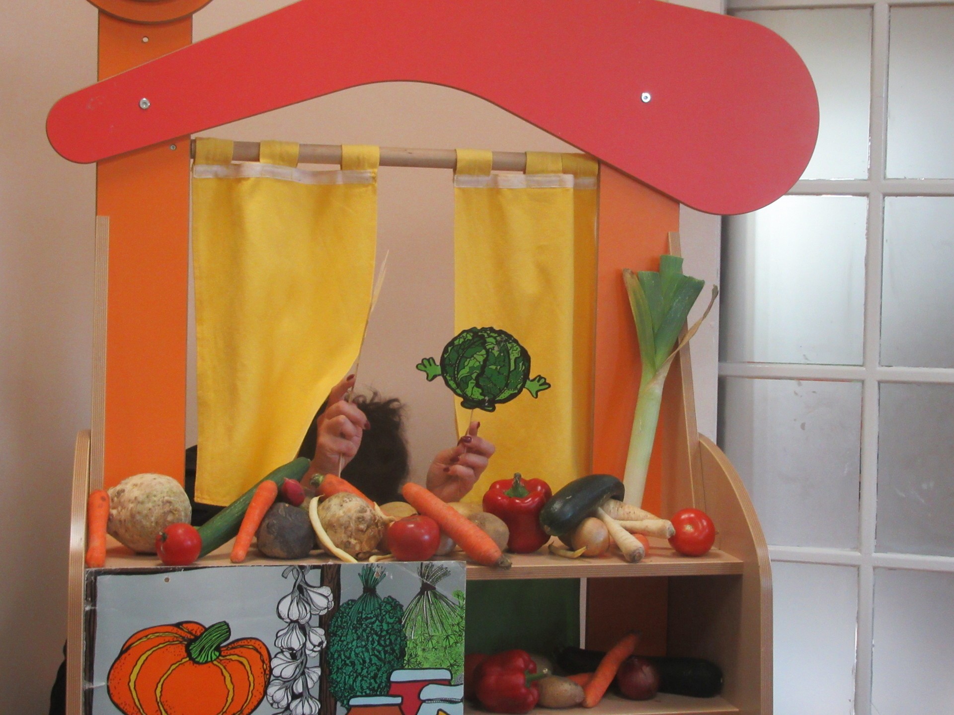 Dzisiaj dzieci z grupy I i II miały okazję obejrzeć teatrzyk pt. " Na straganie". Przedszkolakom bardzo podobały się kłótnie warzyw na co reagowały głośnym śmiechem. Po teatrzyku dzieci rozmawiały o tym dlaczego powinniśmy je jeść.