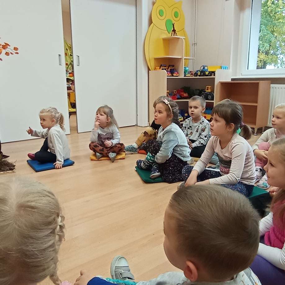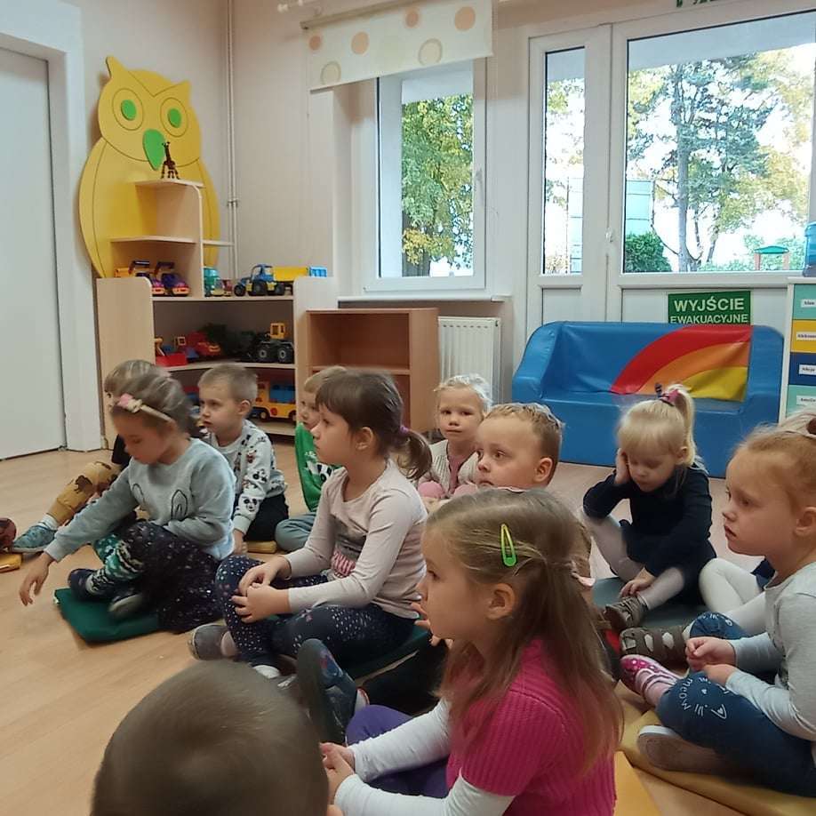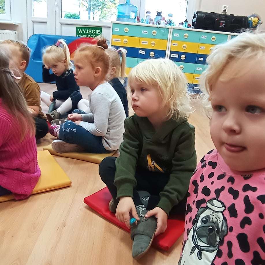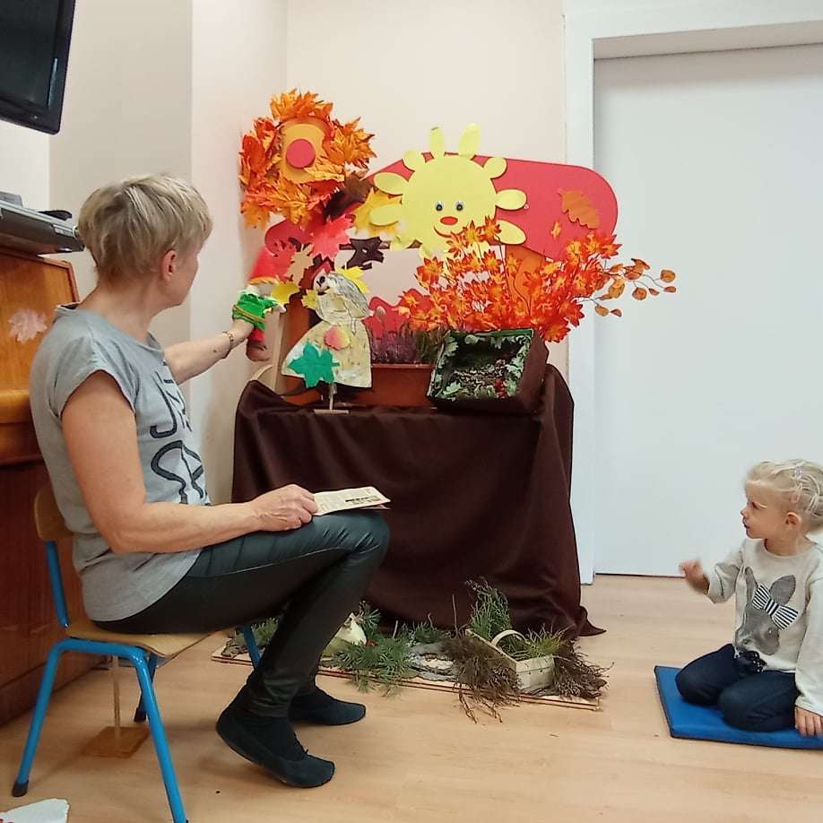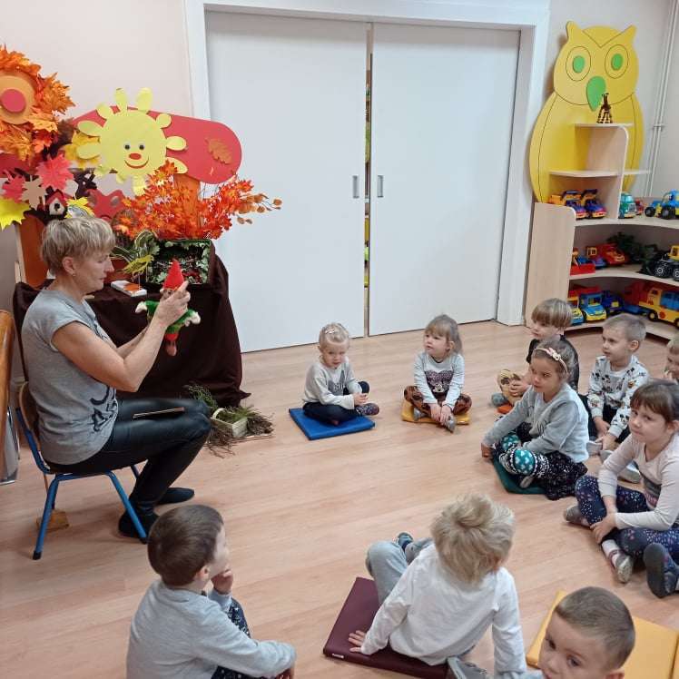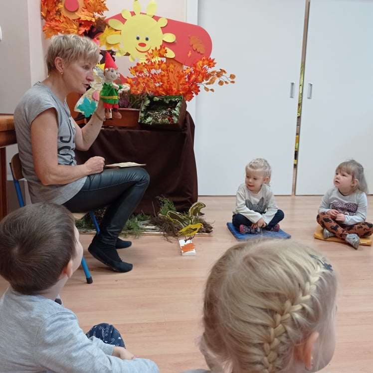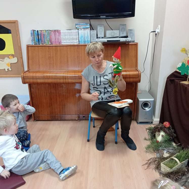 Dzieci z GR I i II z wielkim zainteresowaniem oglądały dzisiaj teatrzyk i słuchały opowieści o "Przygodach krasnala Hałabały".