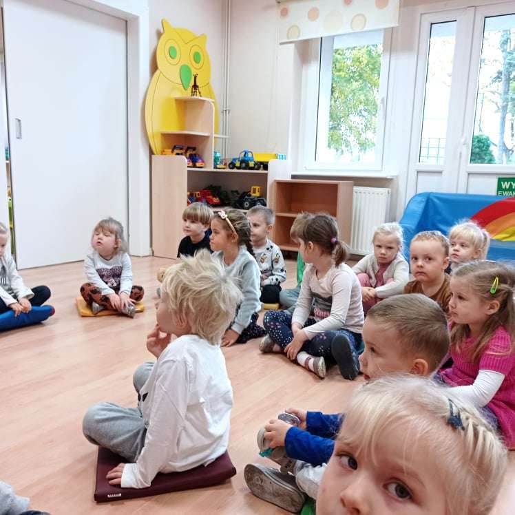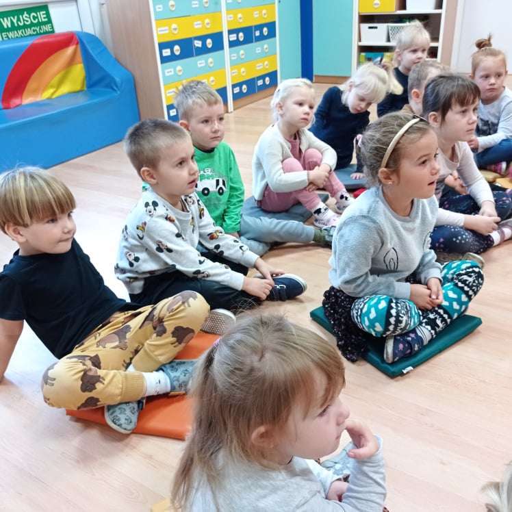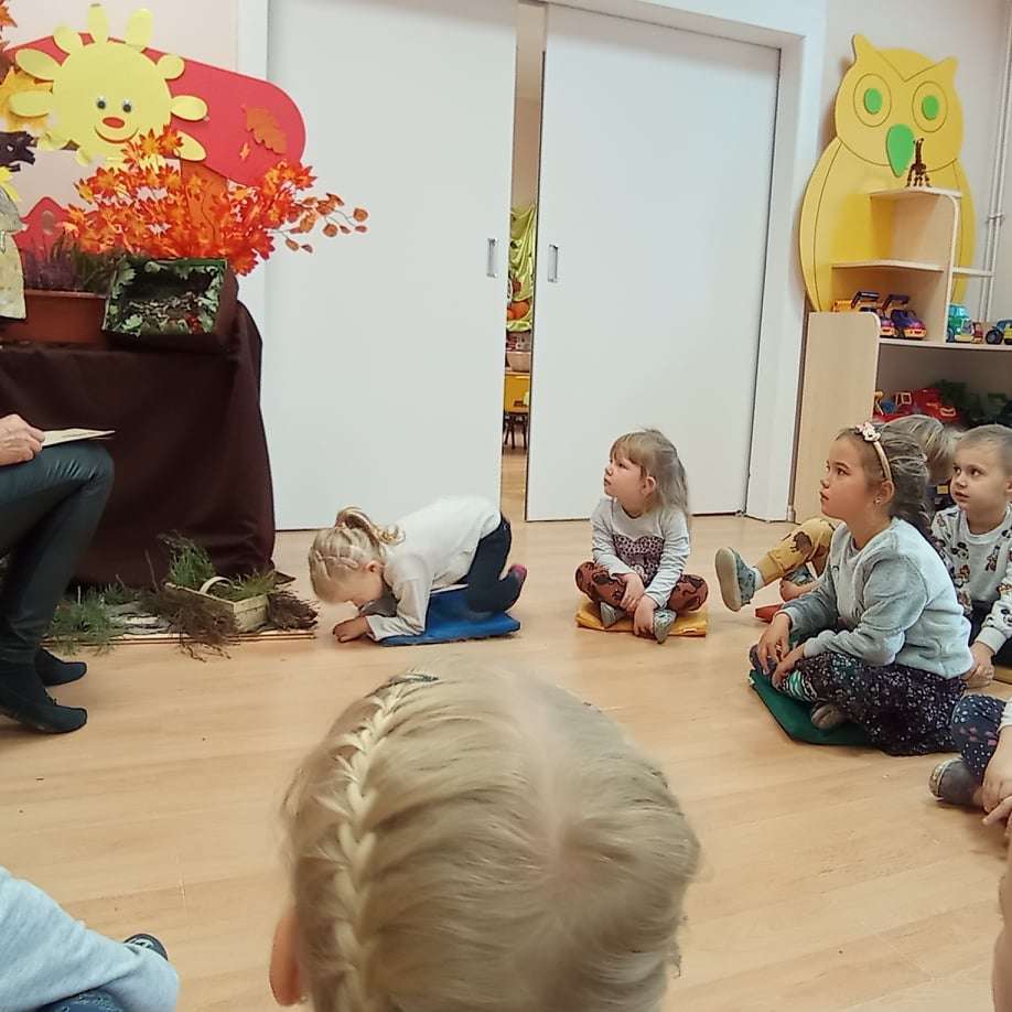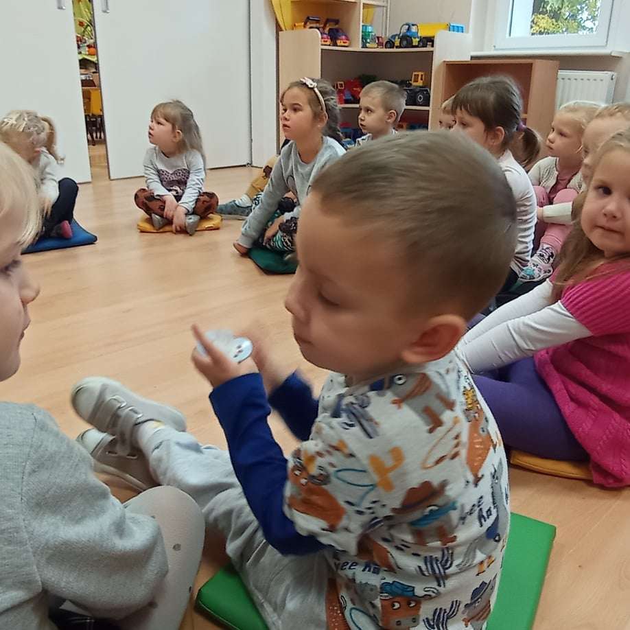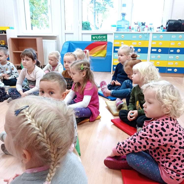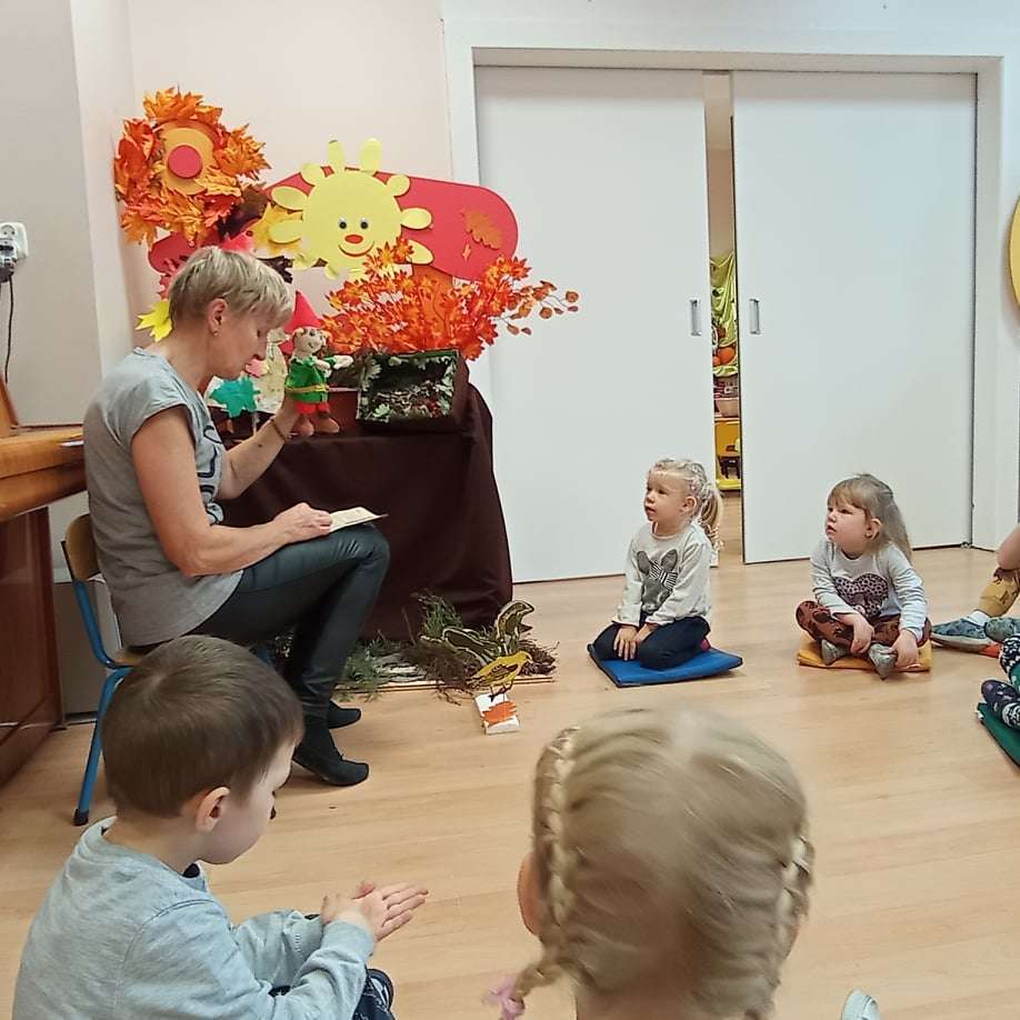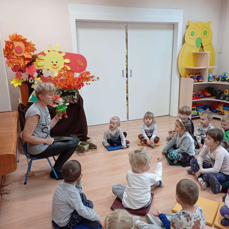 Dzieci z GR I i II z wielkim zainteresowaniem oglądały dzisiaj teatrzyk i słuchały opowieści o "Przygodach krasnala Hałabały".